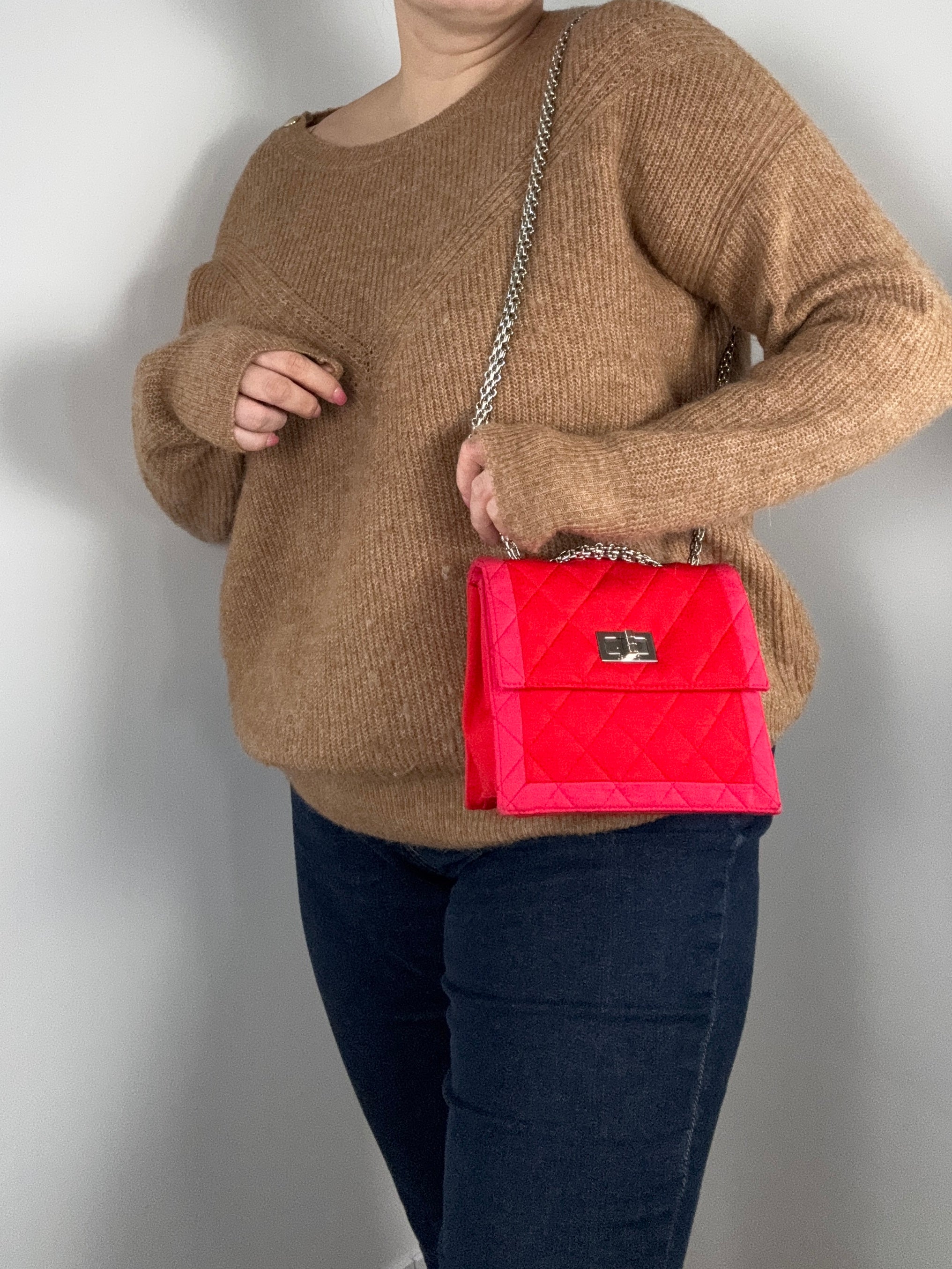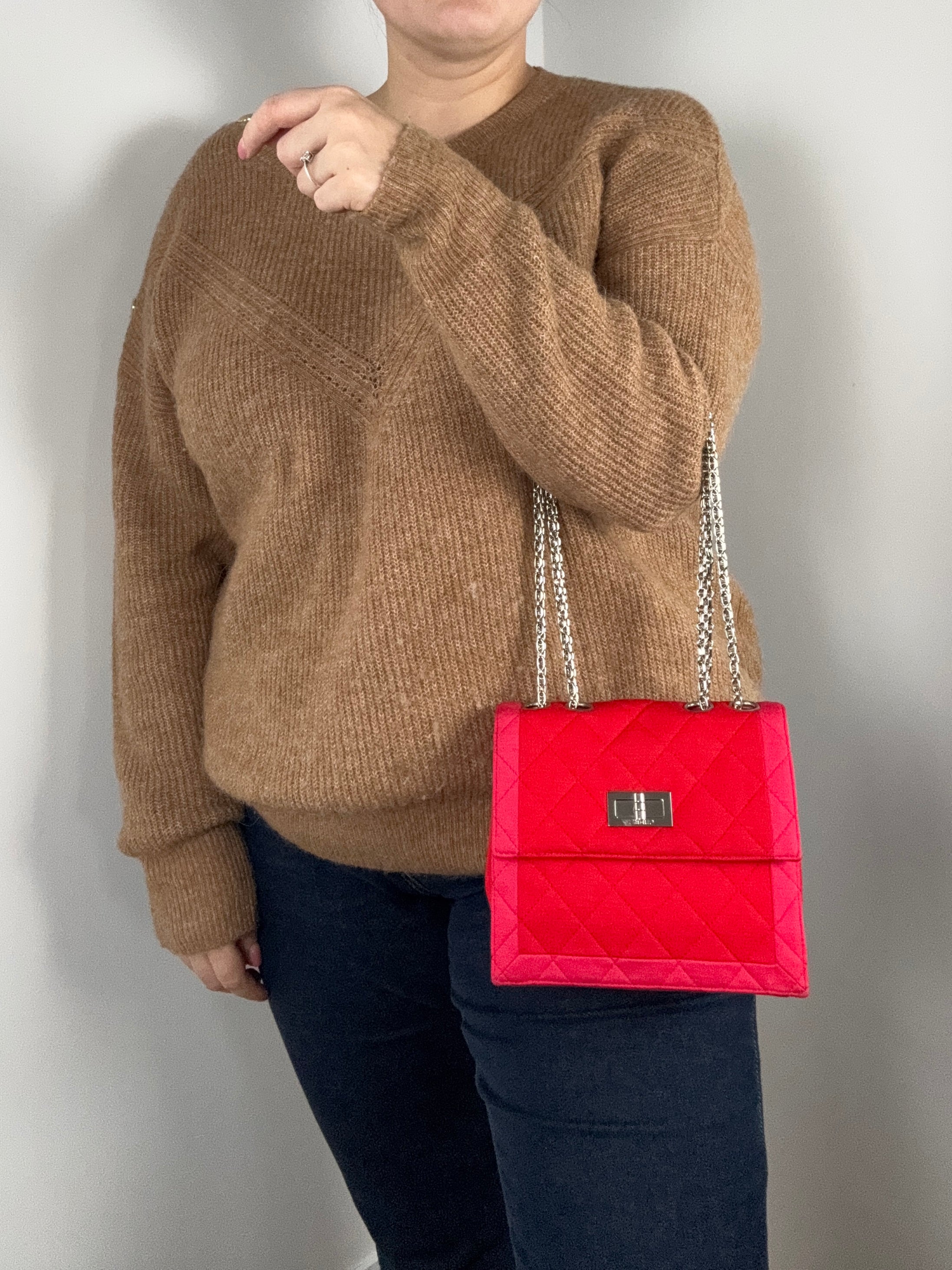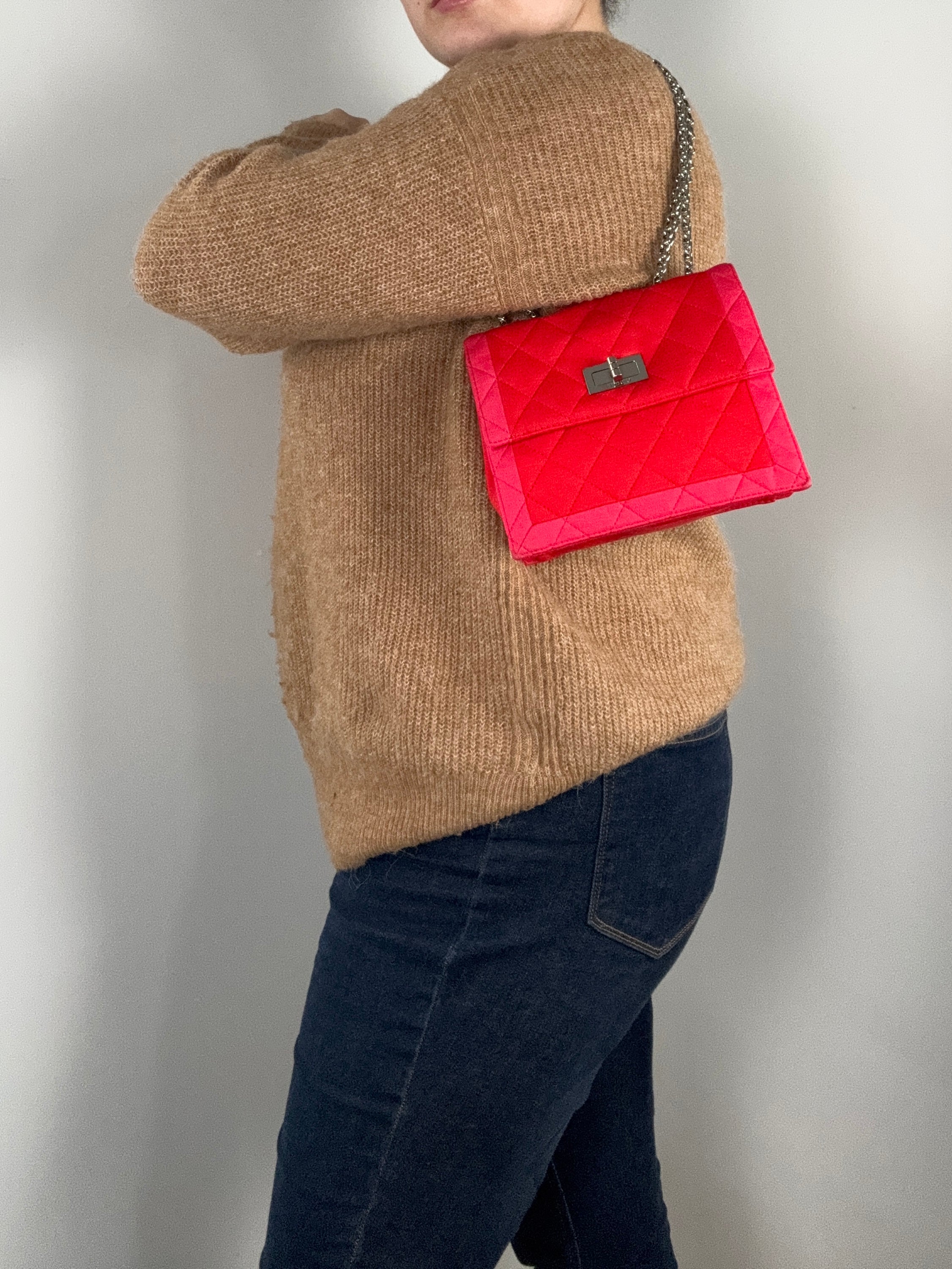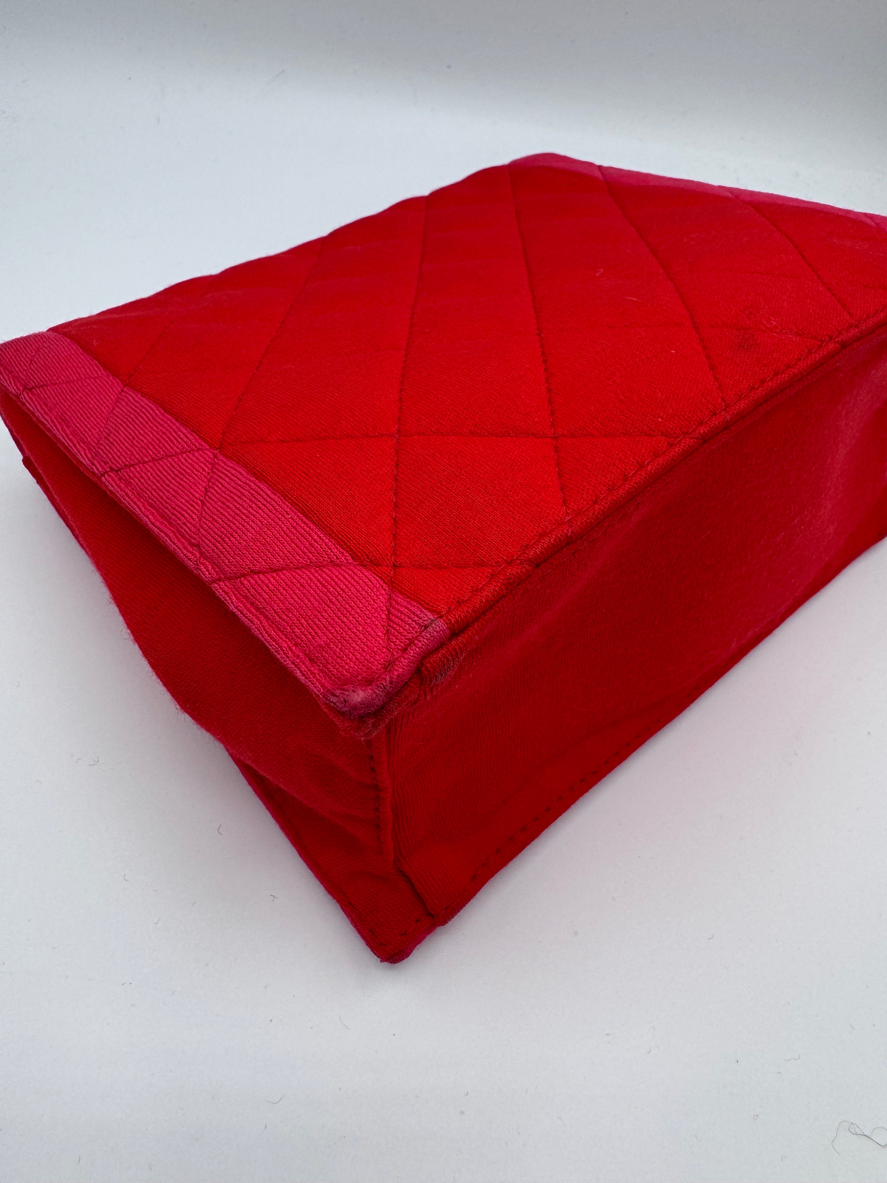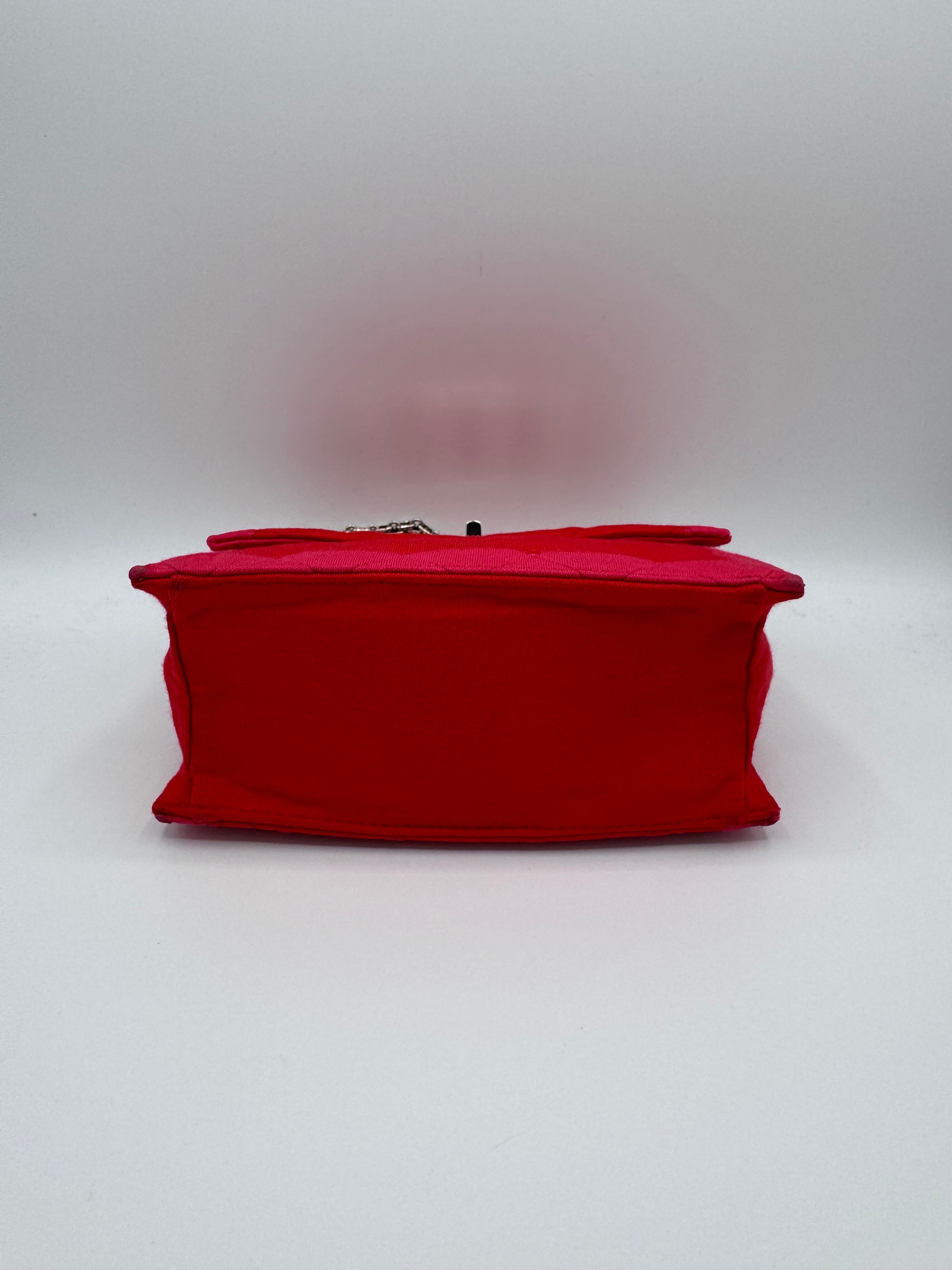 Sac Colelction Défilé 2.55 de chez Chanel, en jersey rouge et rose, bijouterie argent, en très bon état.