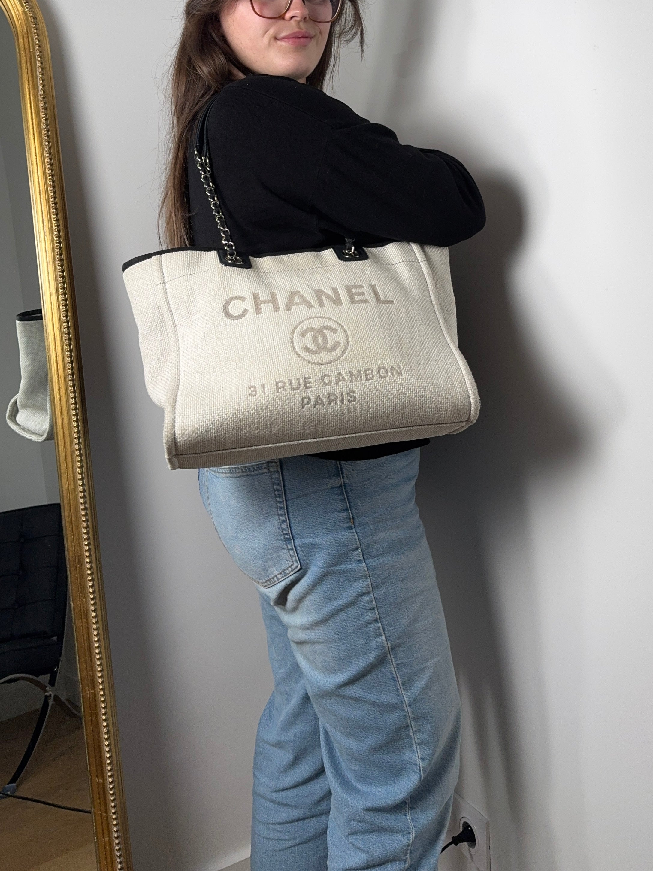 Sac Chanel Deauville medium toile écrue