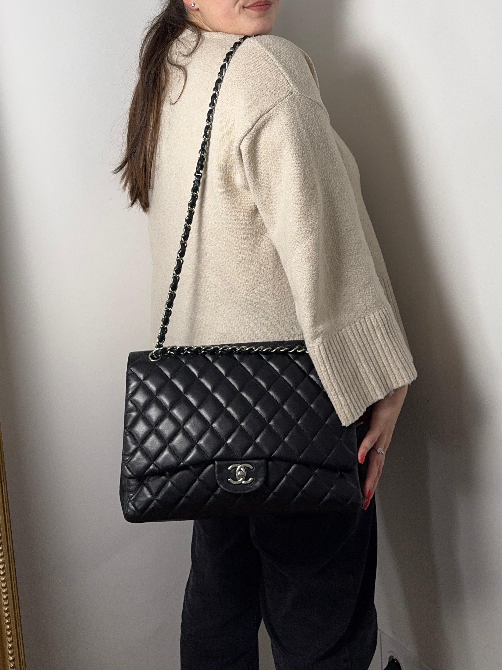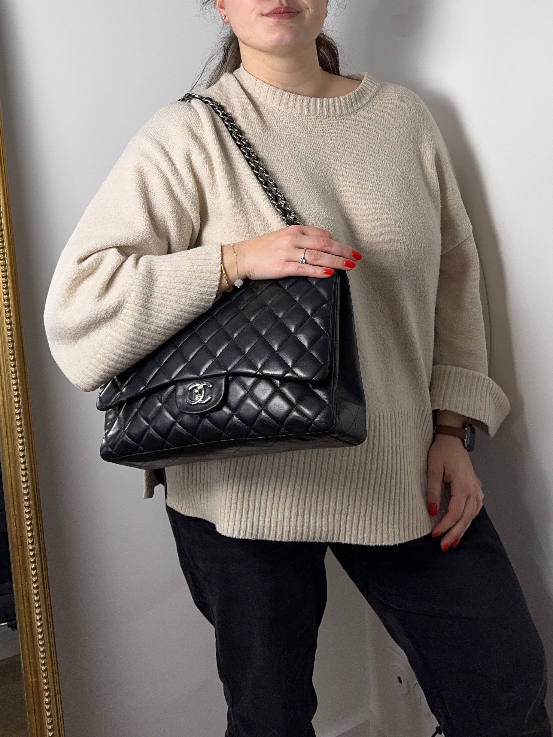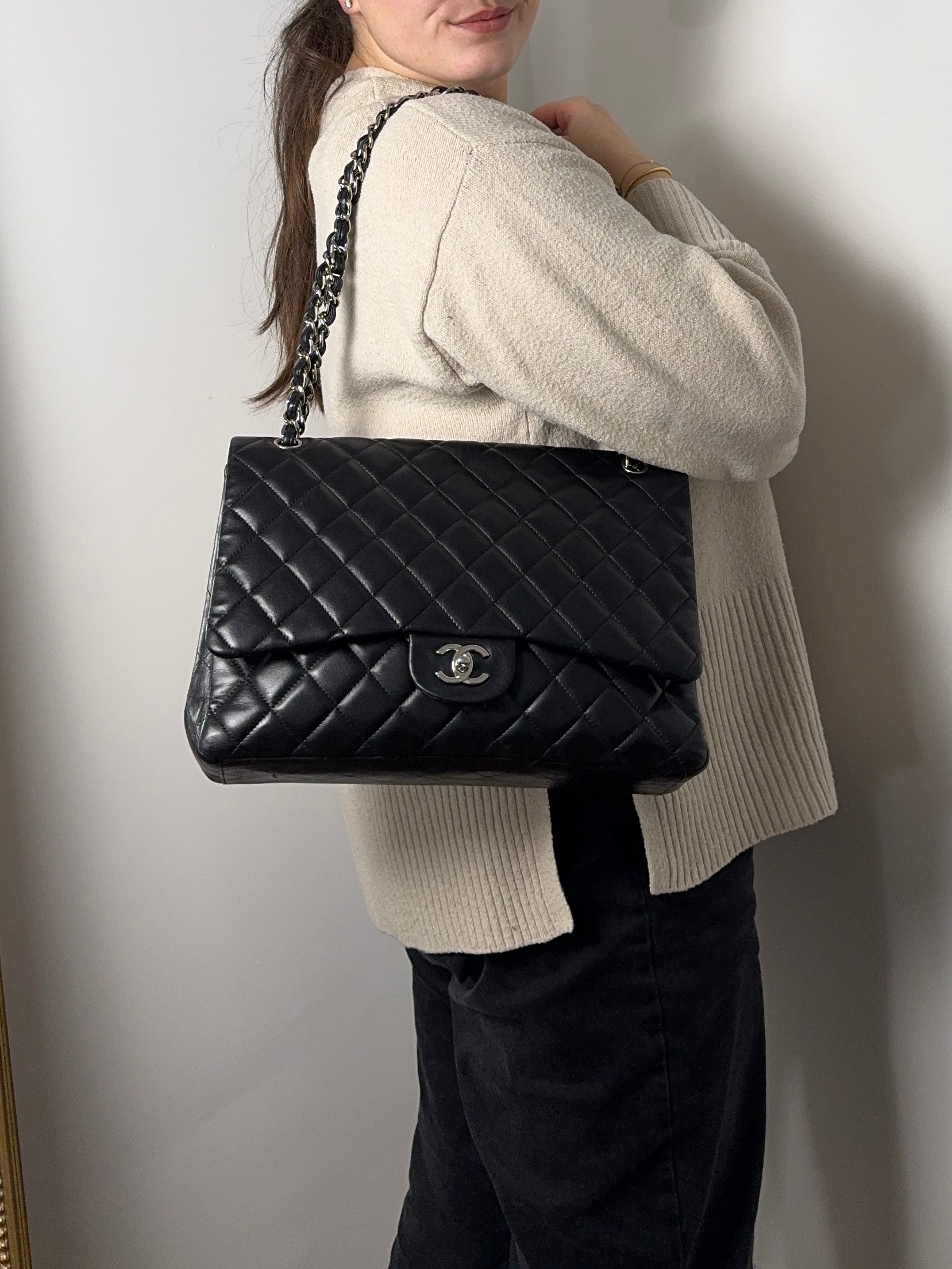 Sac Chanel Maxi Jumbo Timeless noir, en très bon état.