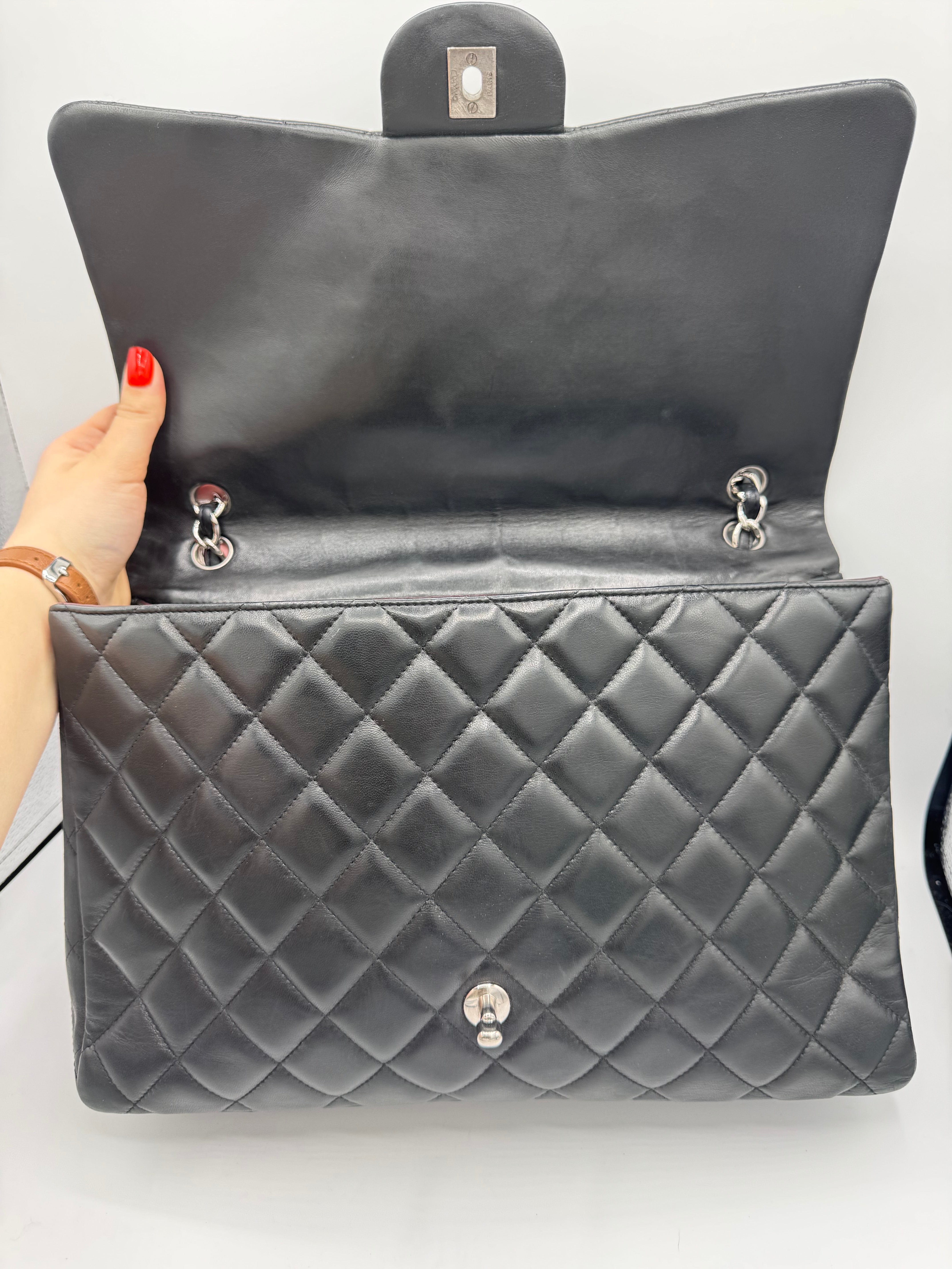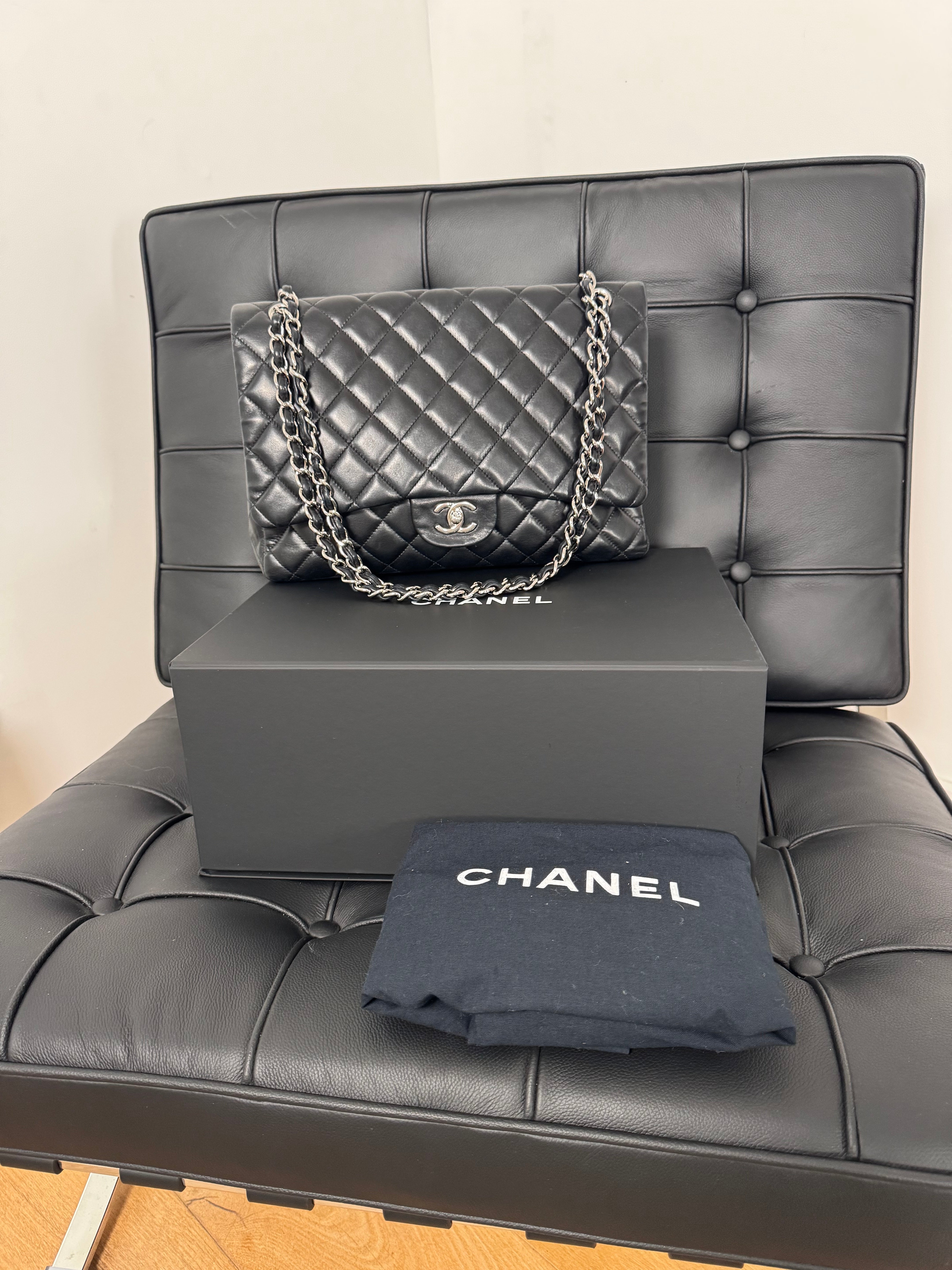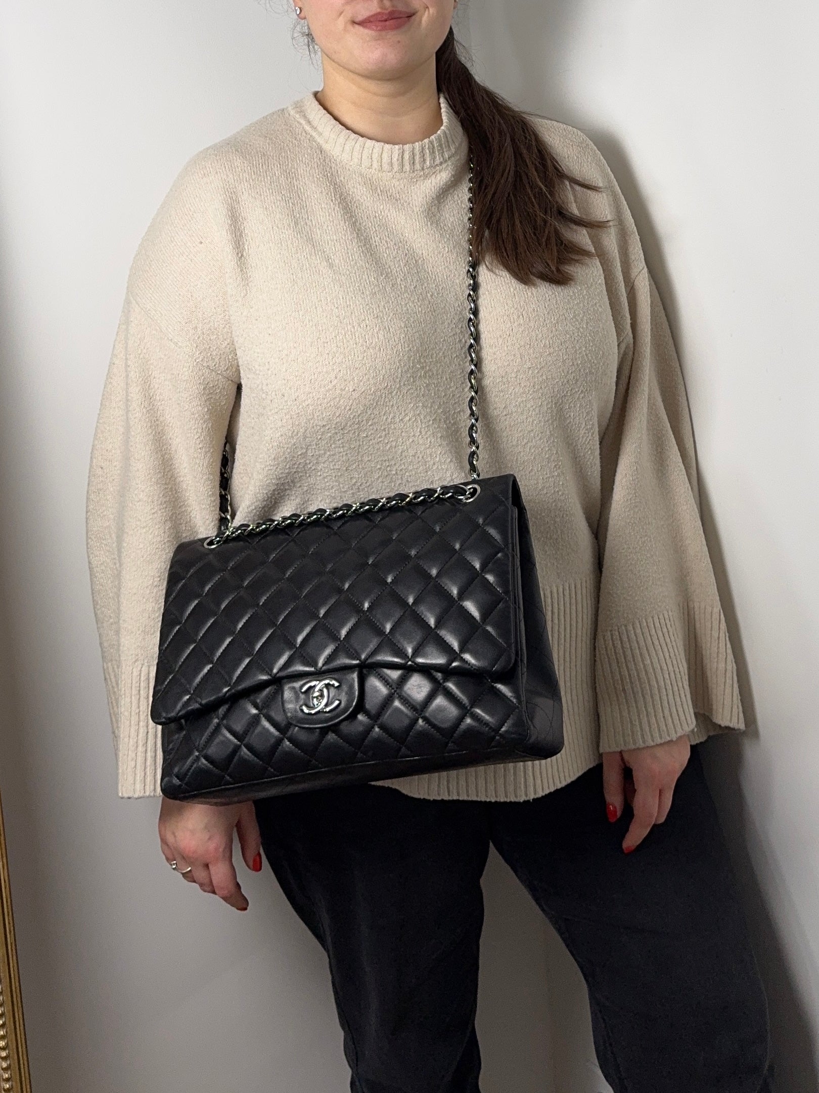 Sac Chanel Maxi Jumbo Timeless noir, en très bon état.