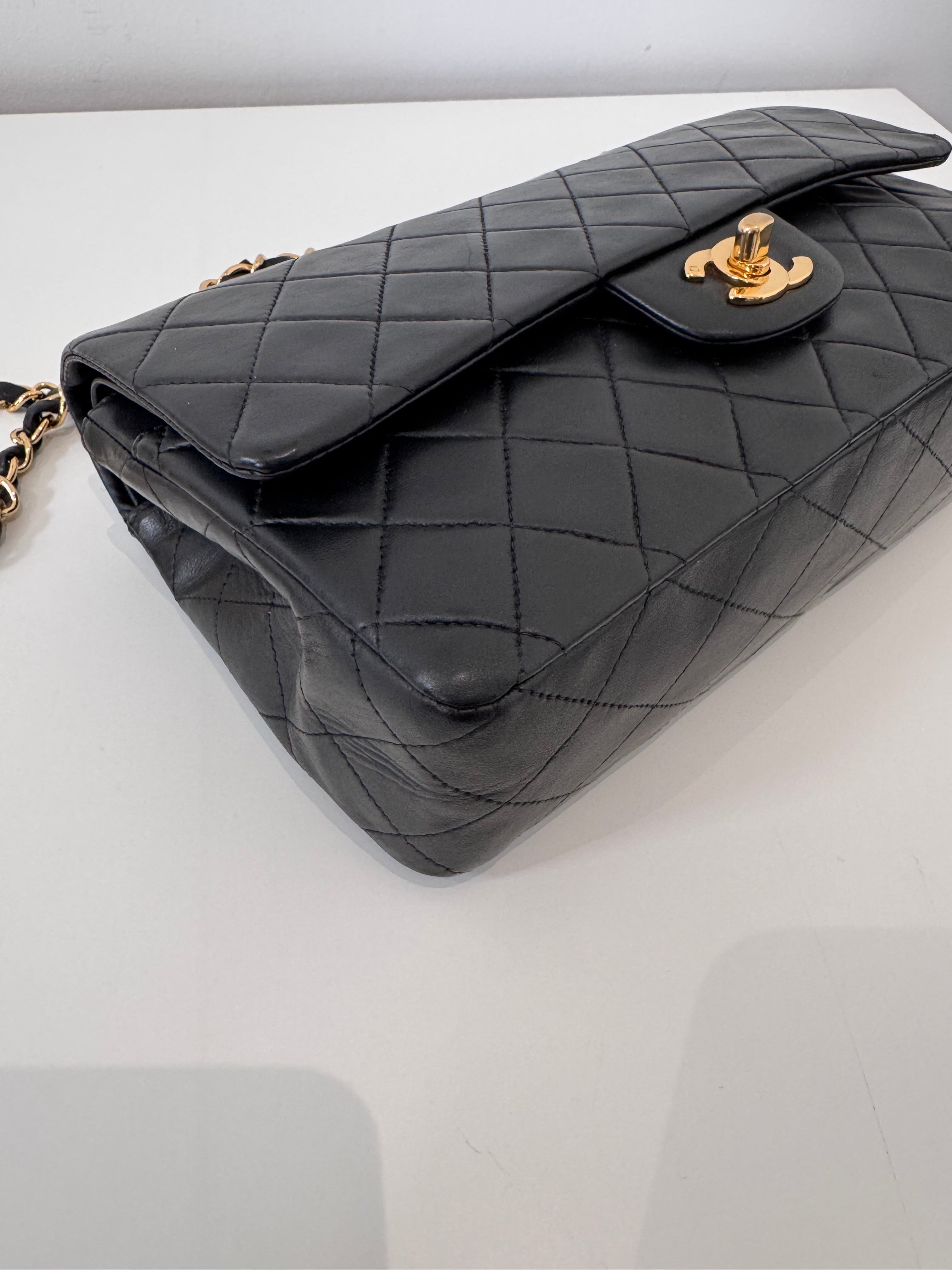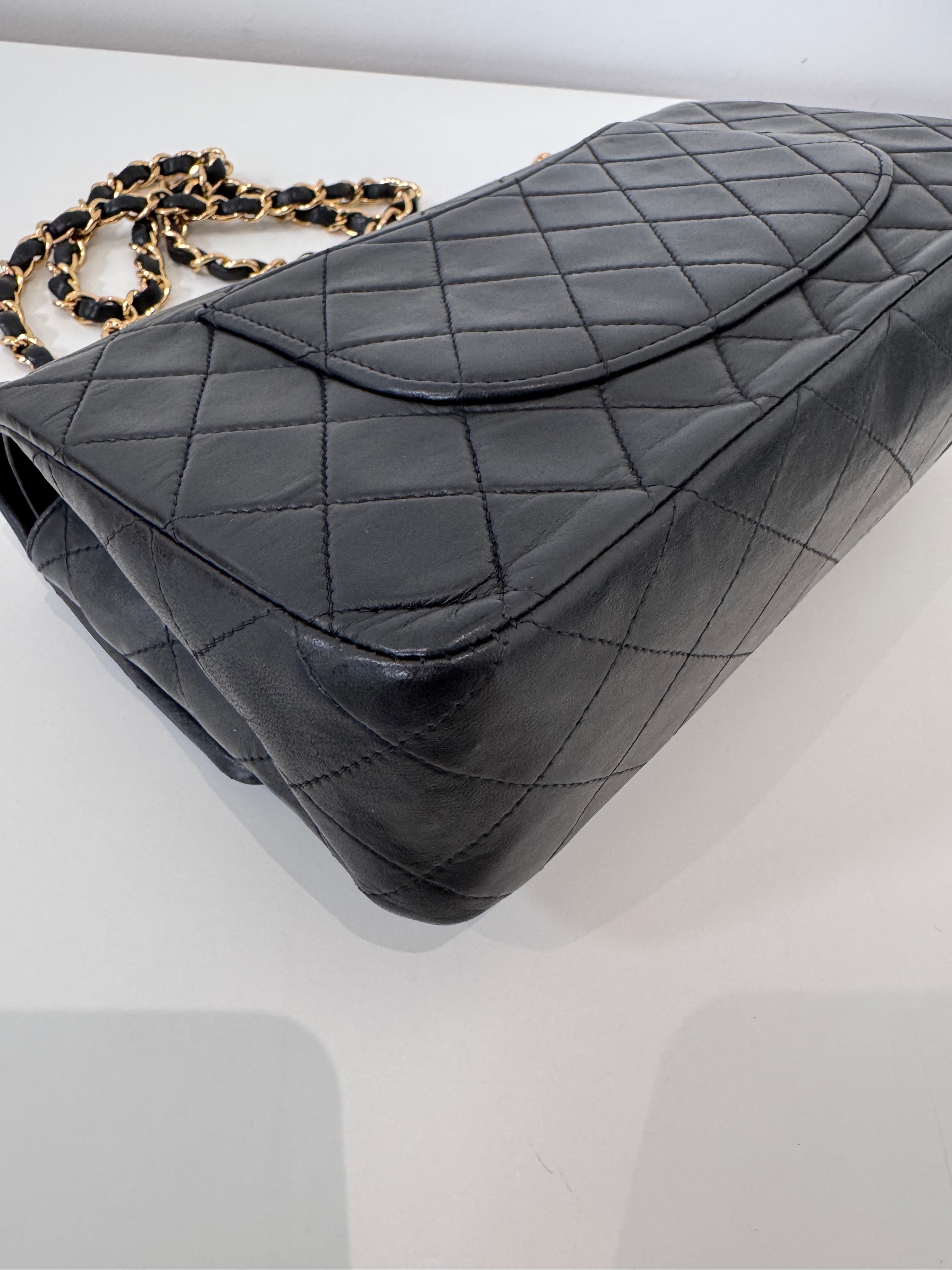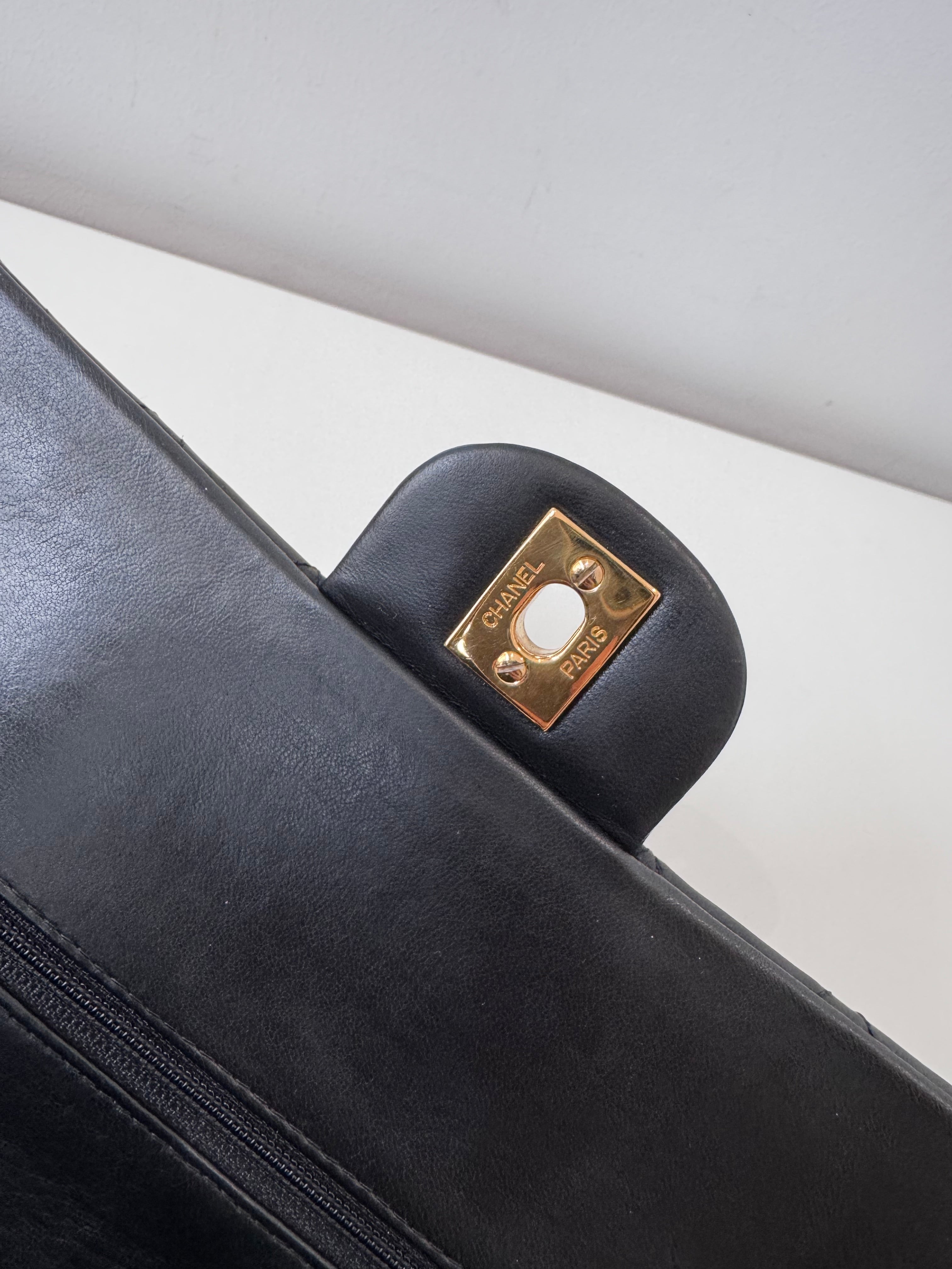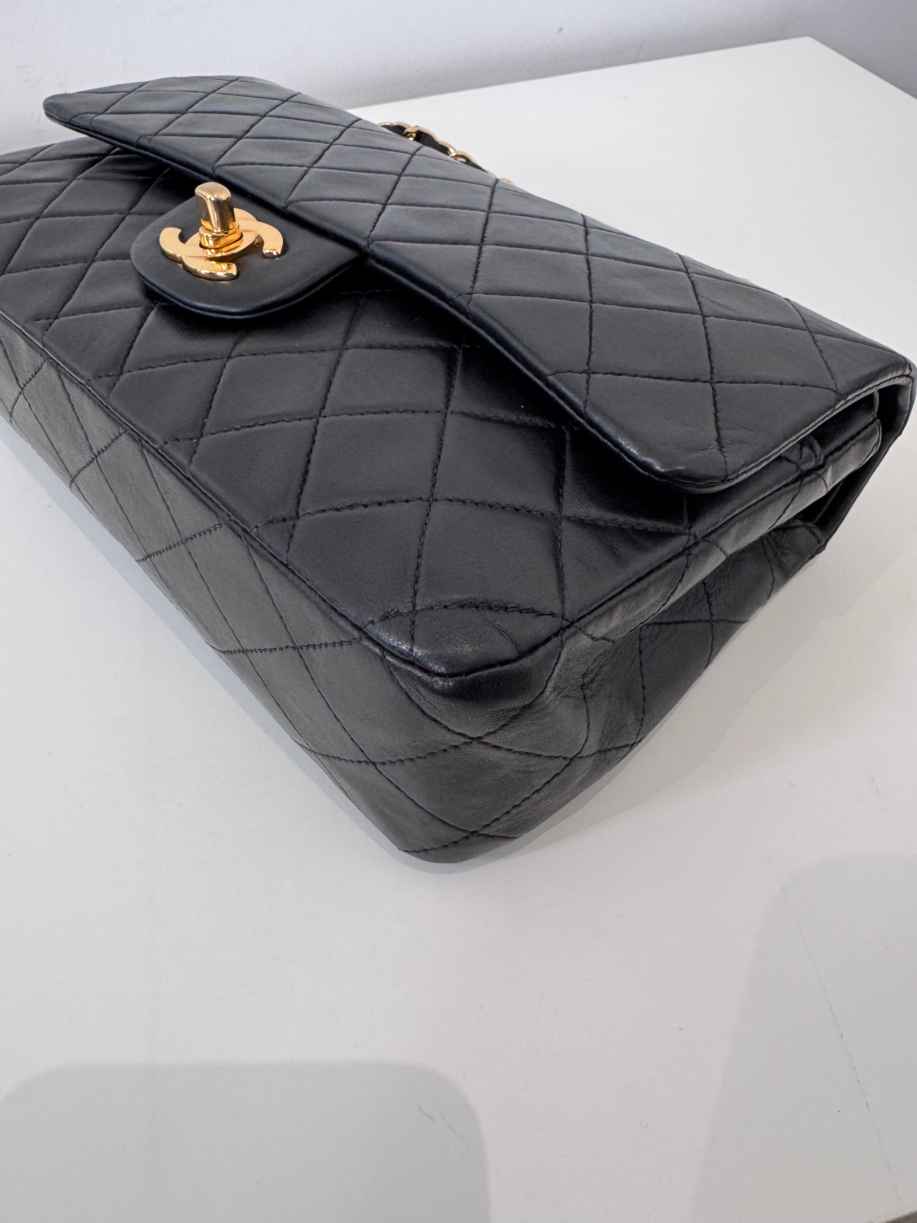 Sac Chanel Timeless 25 cm en cuir d’agneau noir en excellent état.