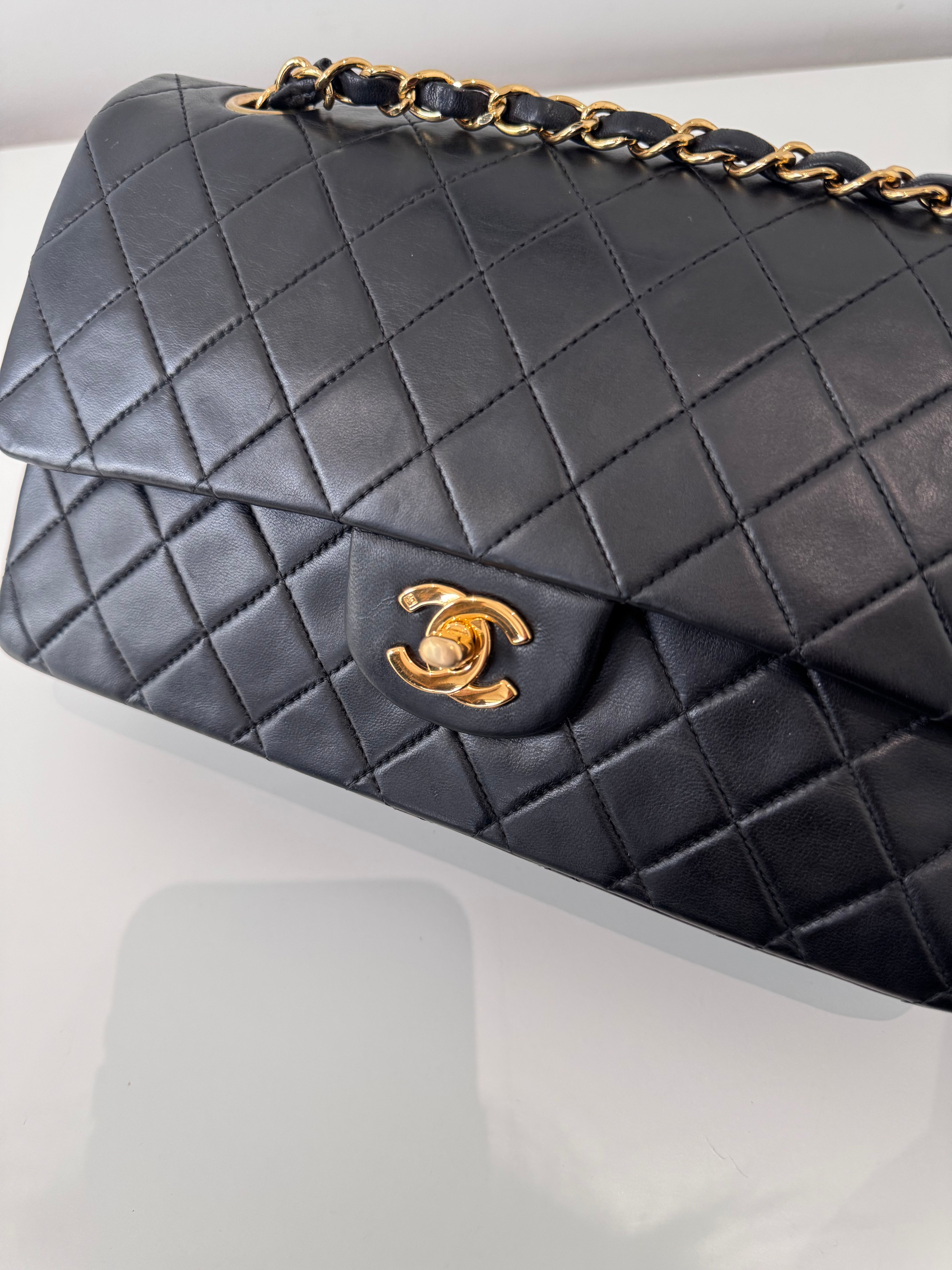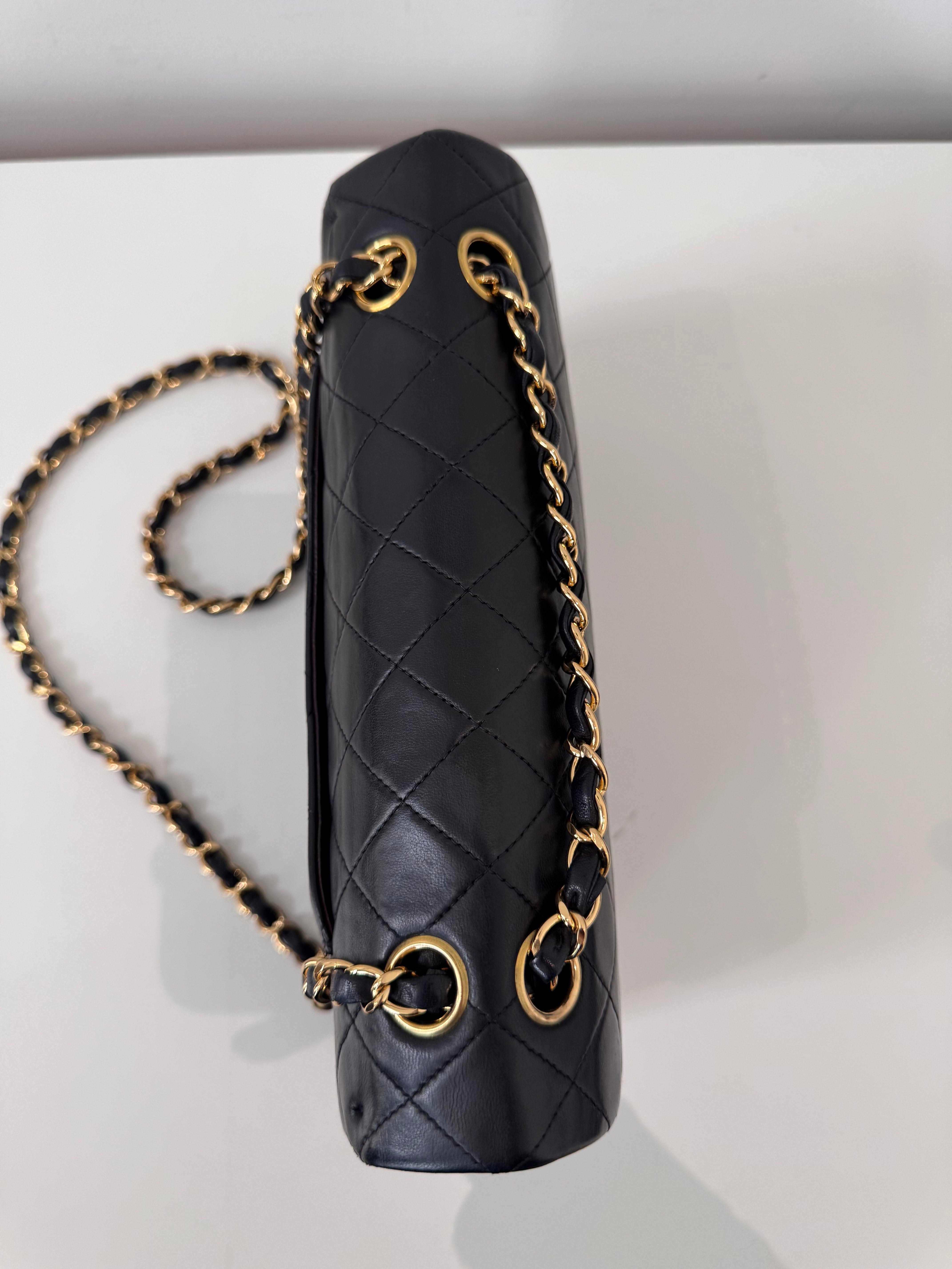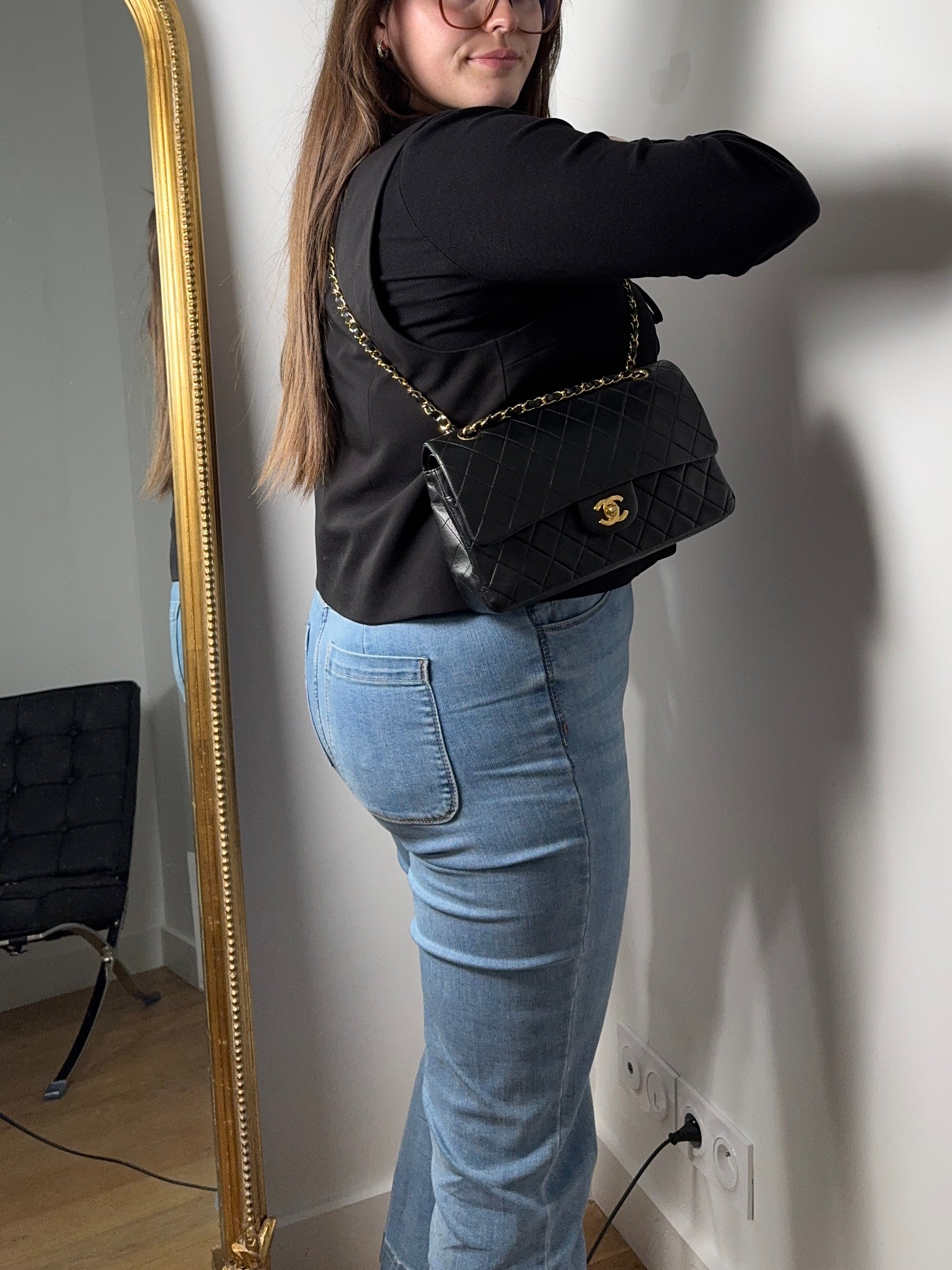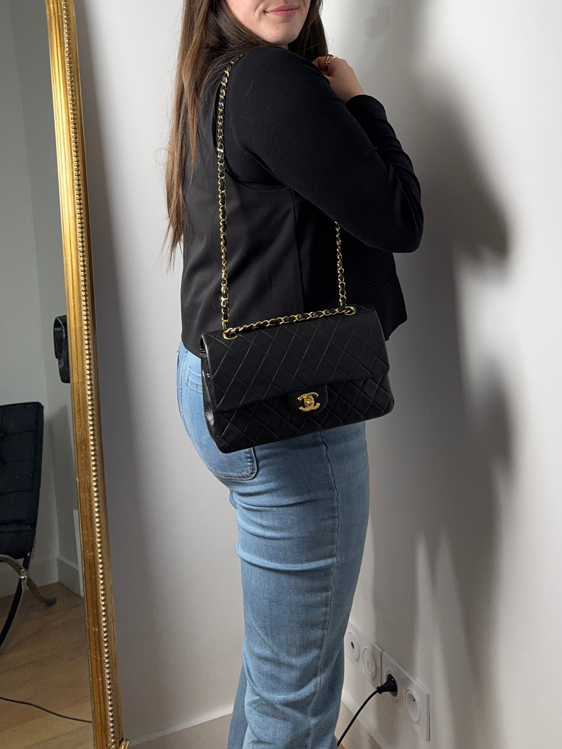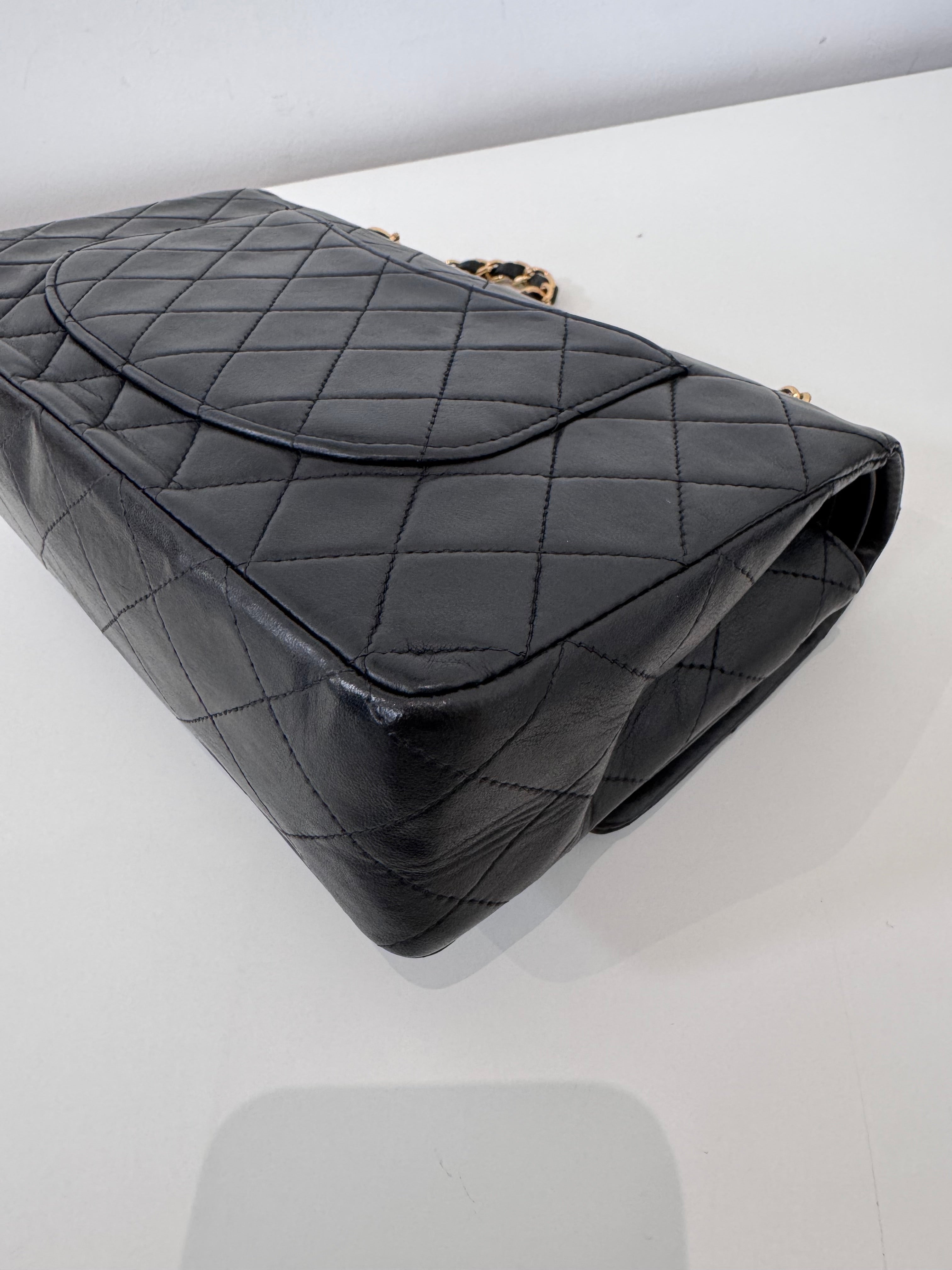Sac Chanel Timeless 25 cm en cuir d’agneau noir en excellent état.