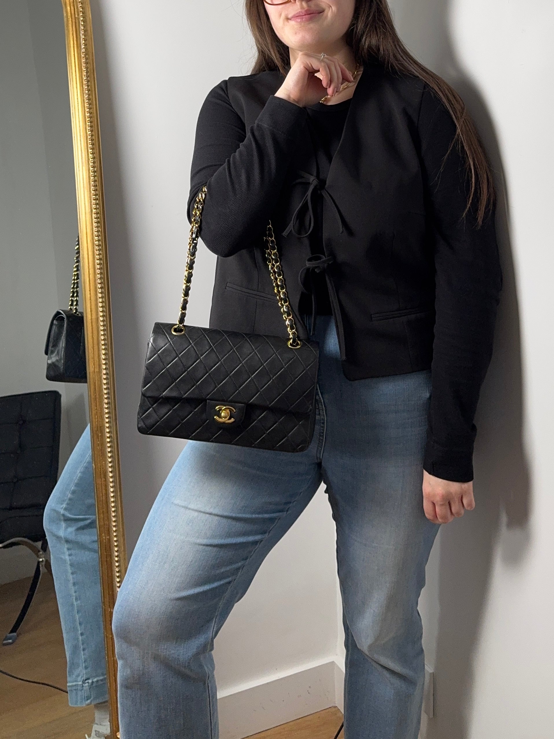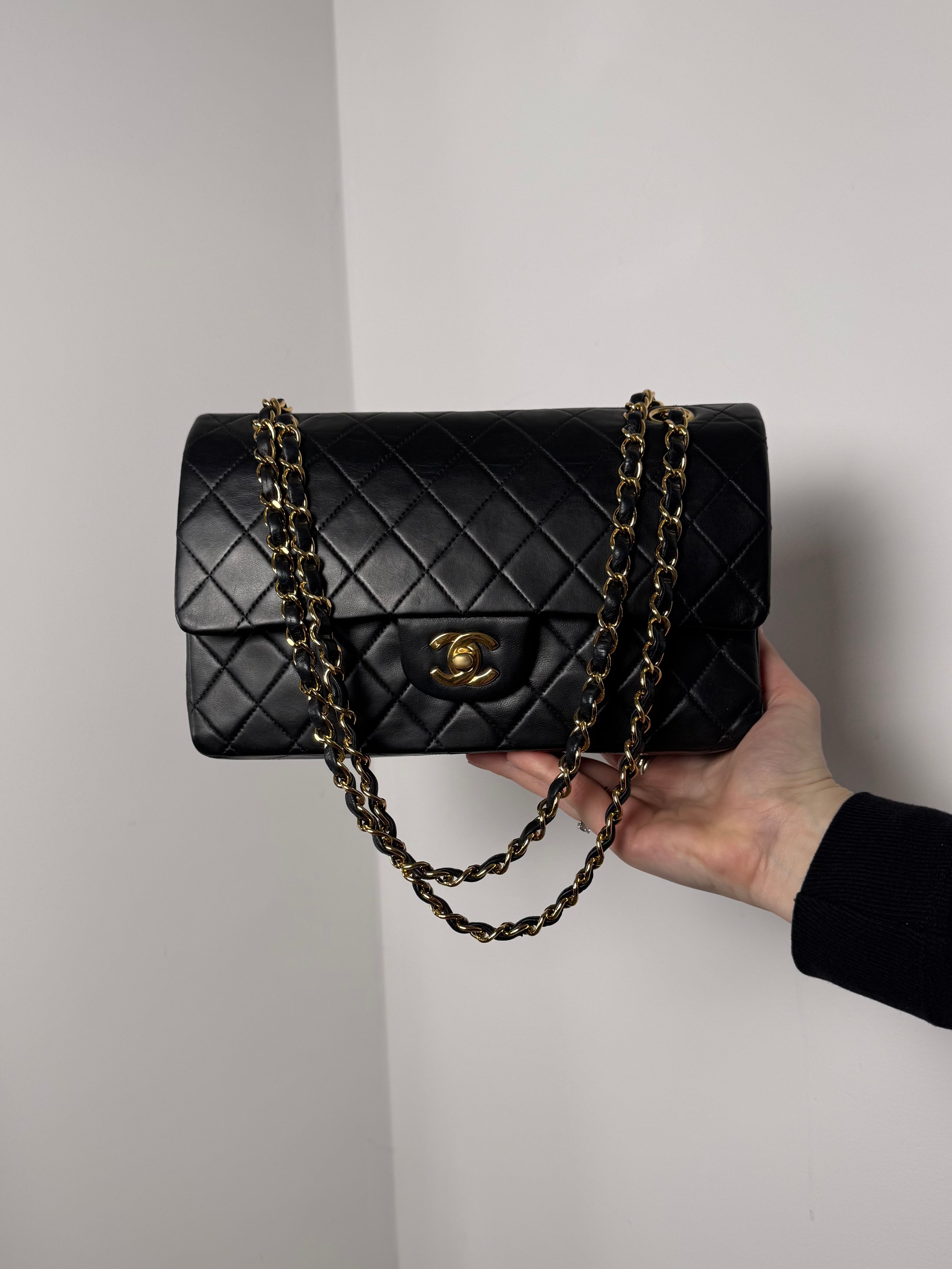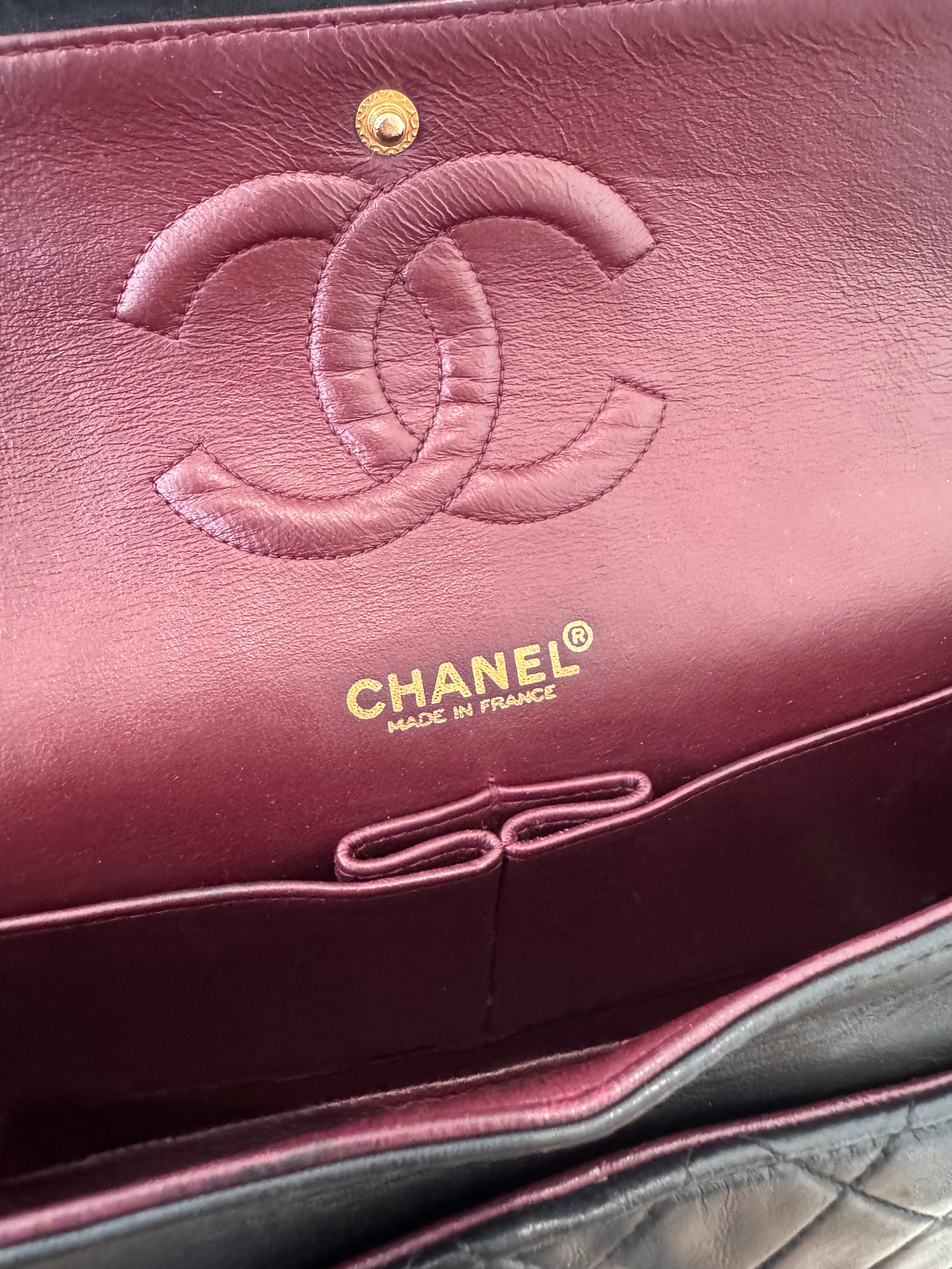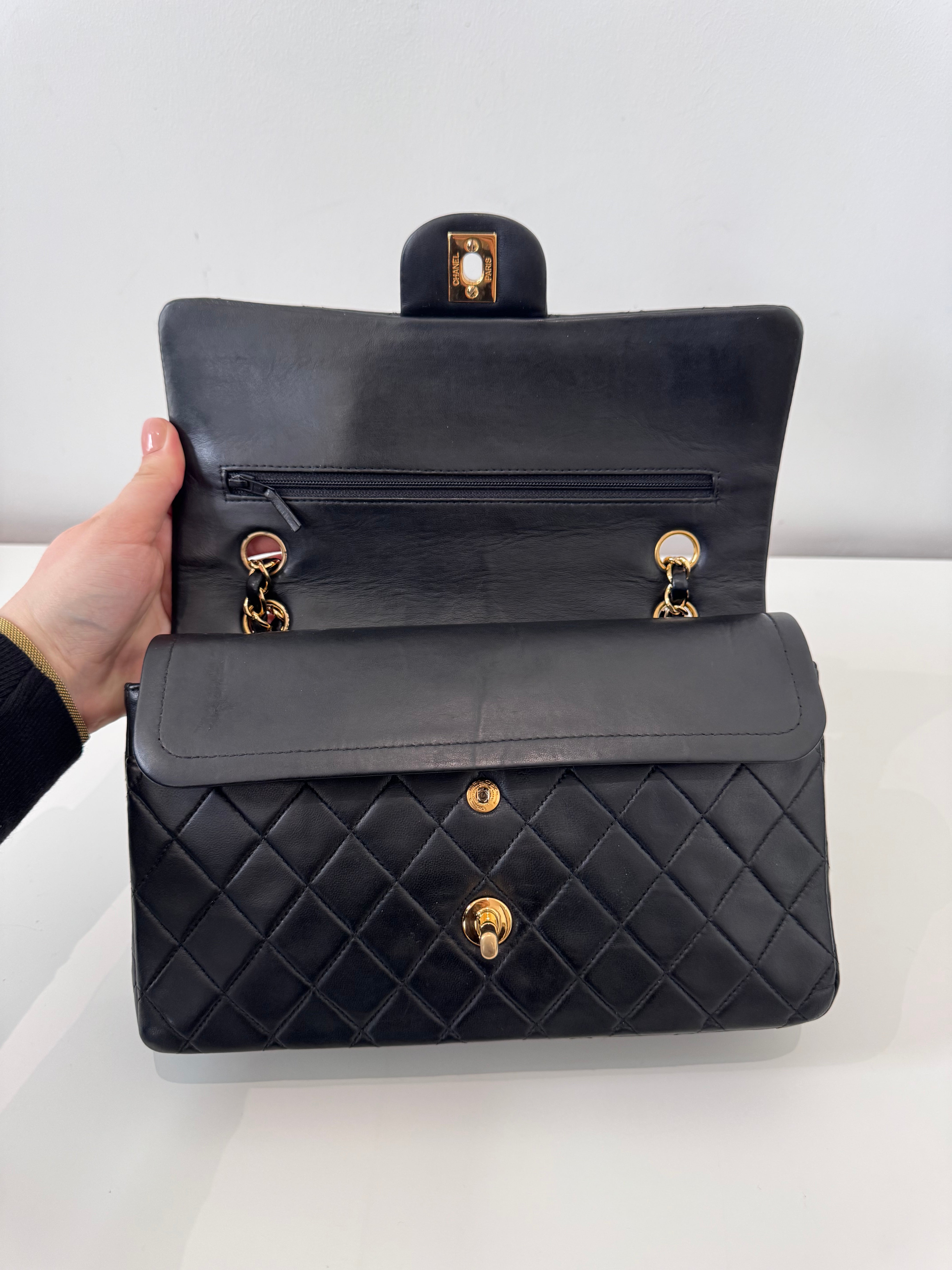 Sac Chanel Timeless 25 cm en cuir d’agneau noir en excellent état.