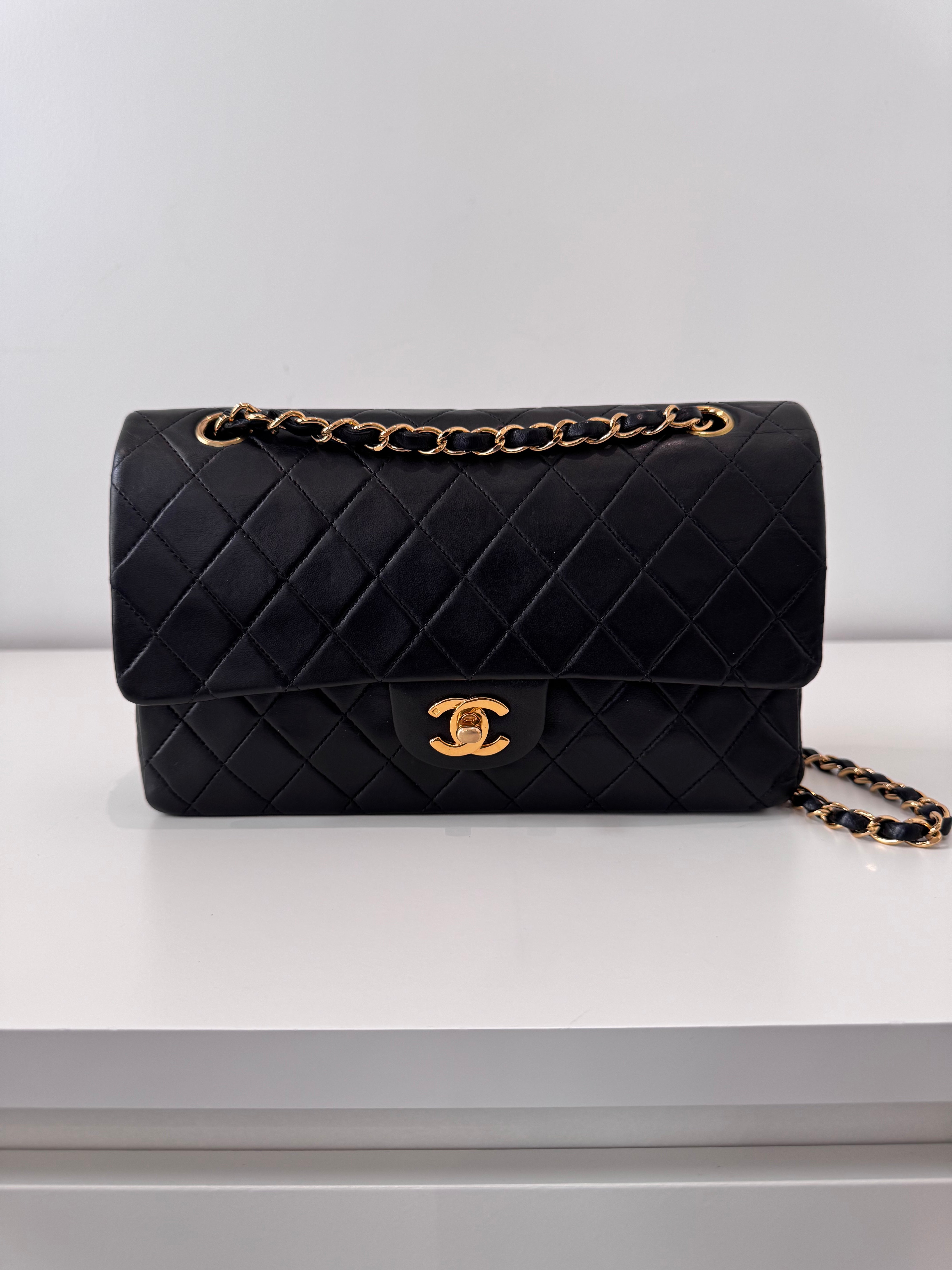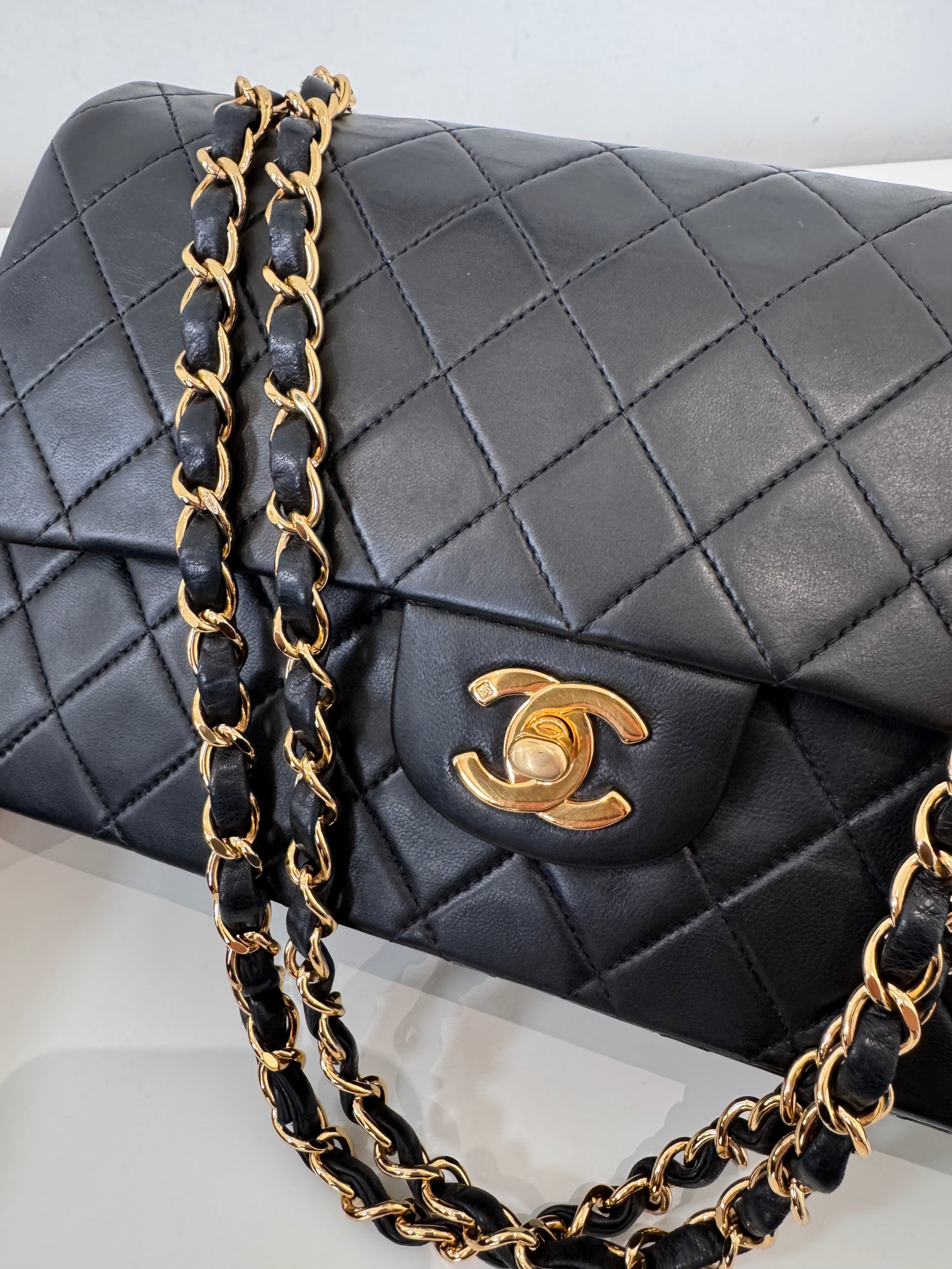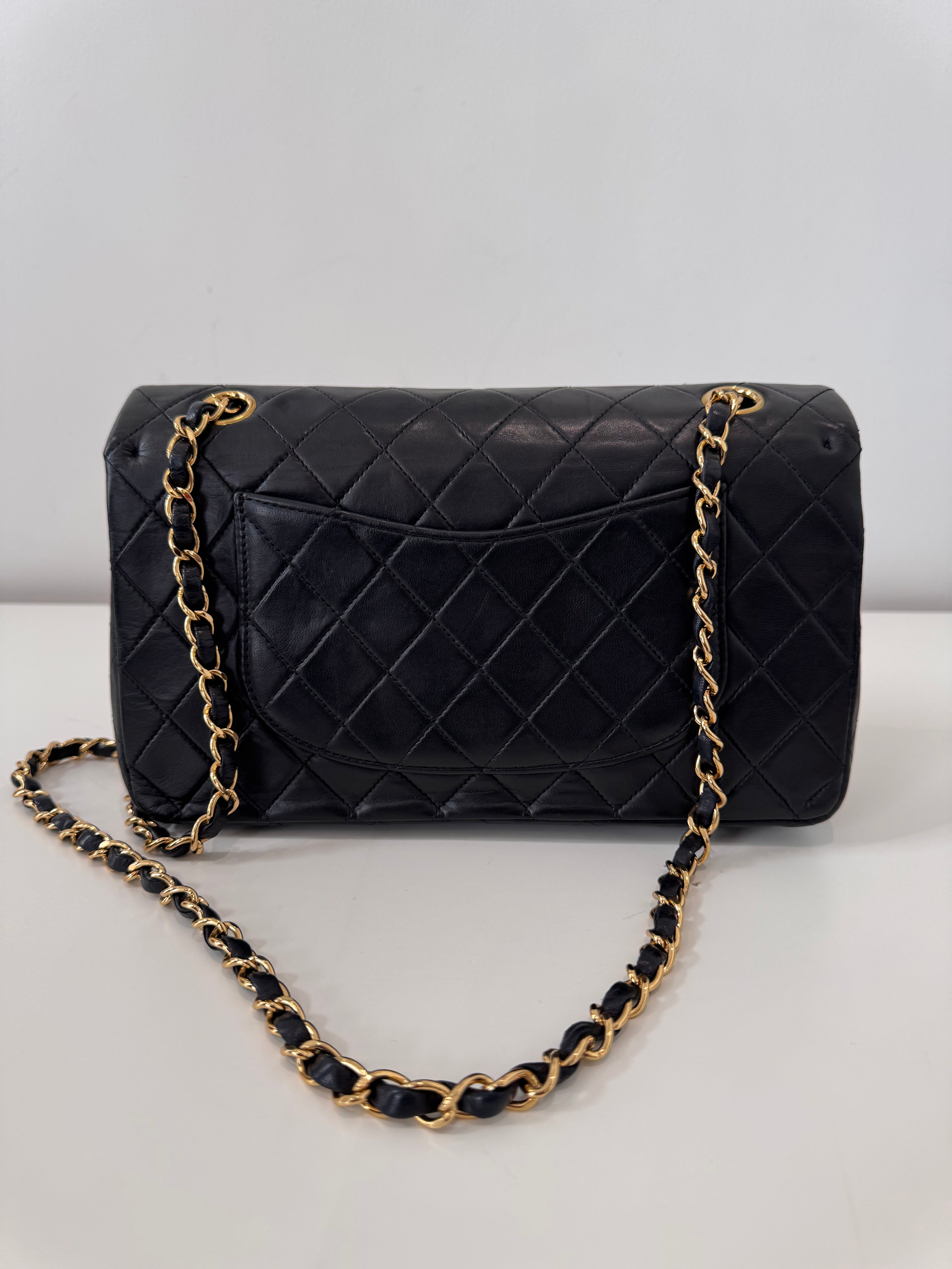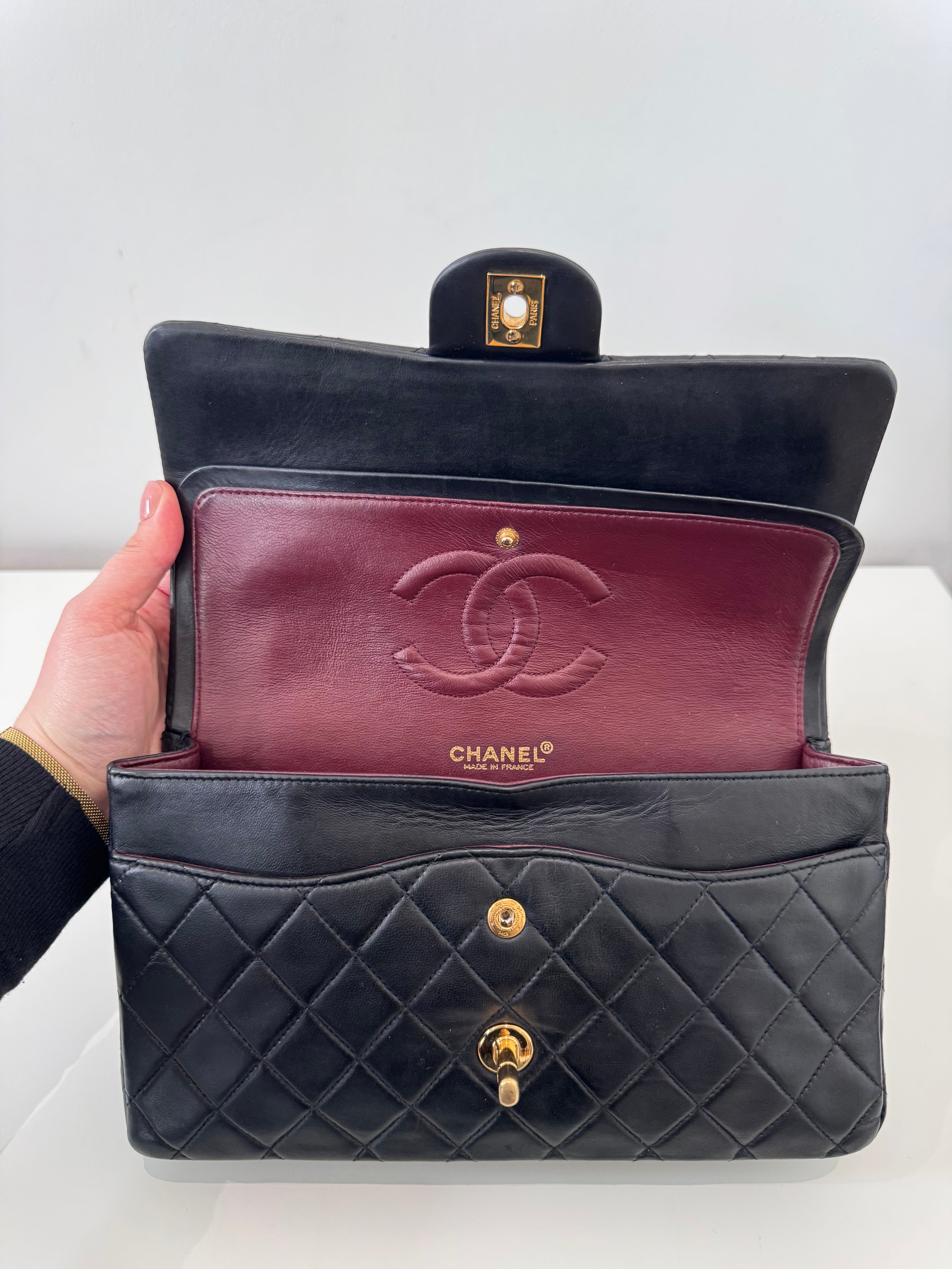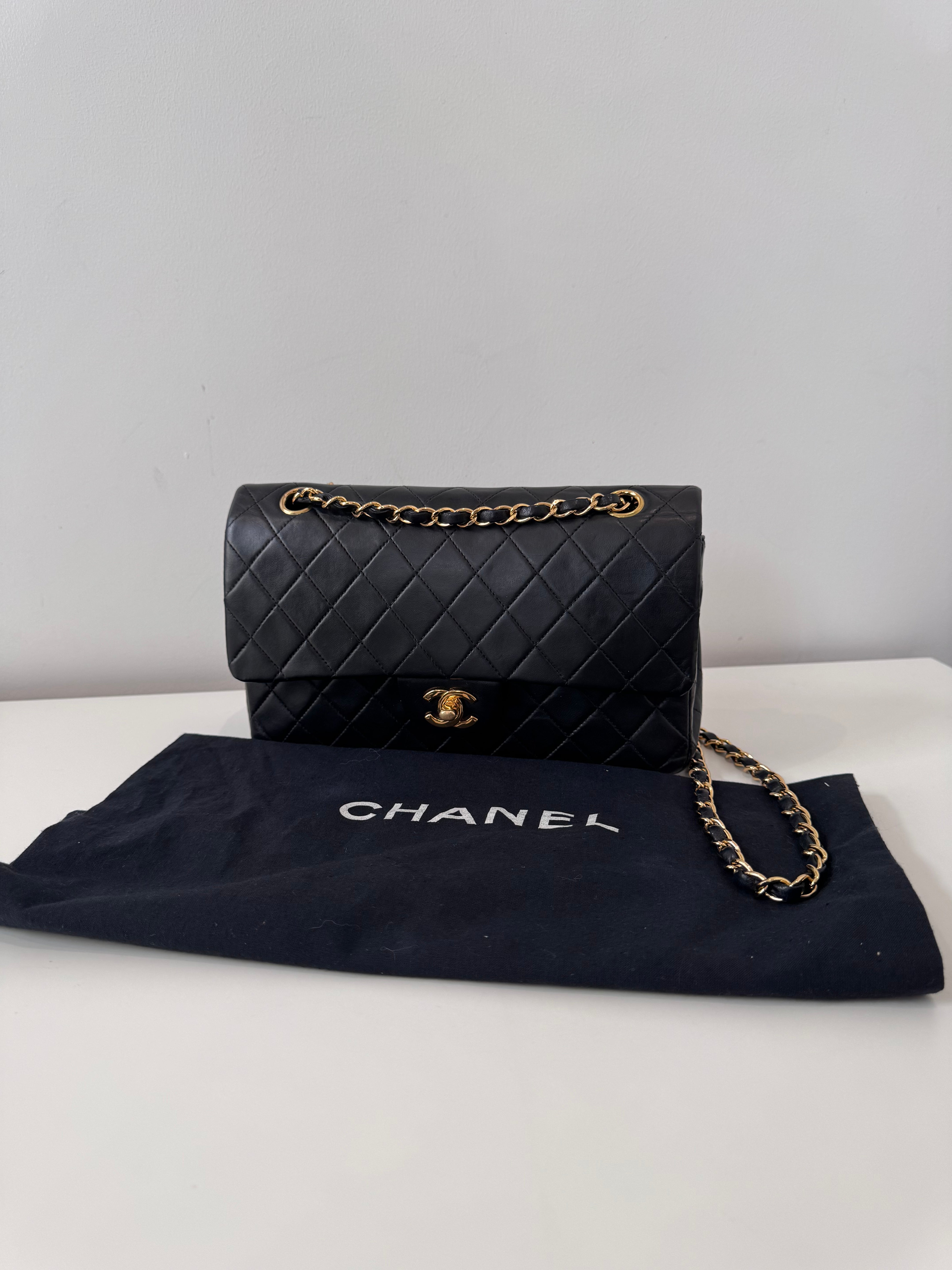 Sac Chanel Timeless 25 cm en cuir d’agneau noir en excellent état.