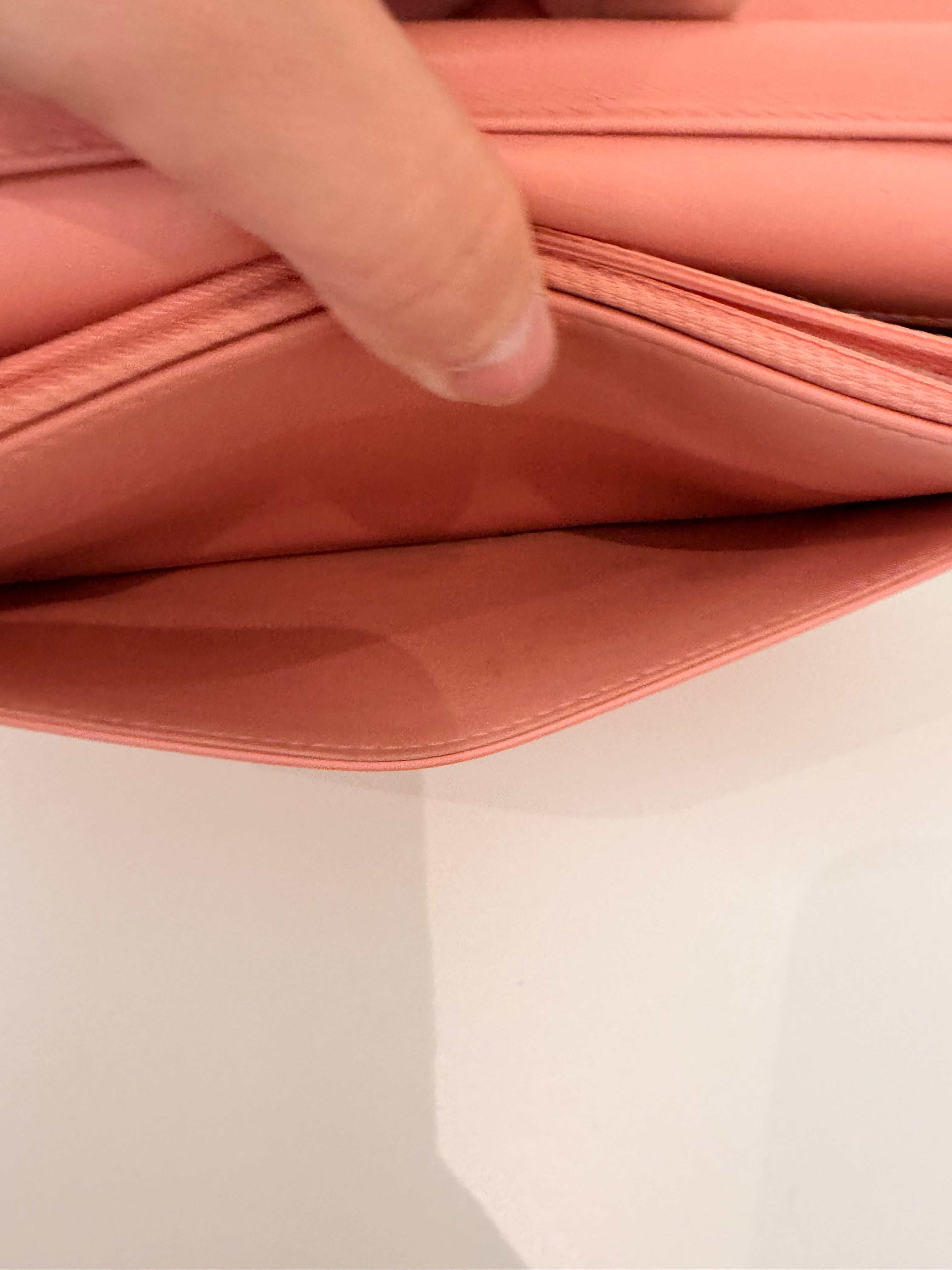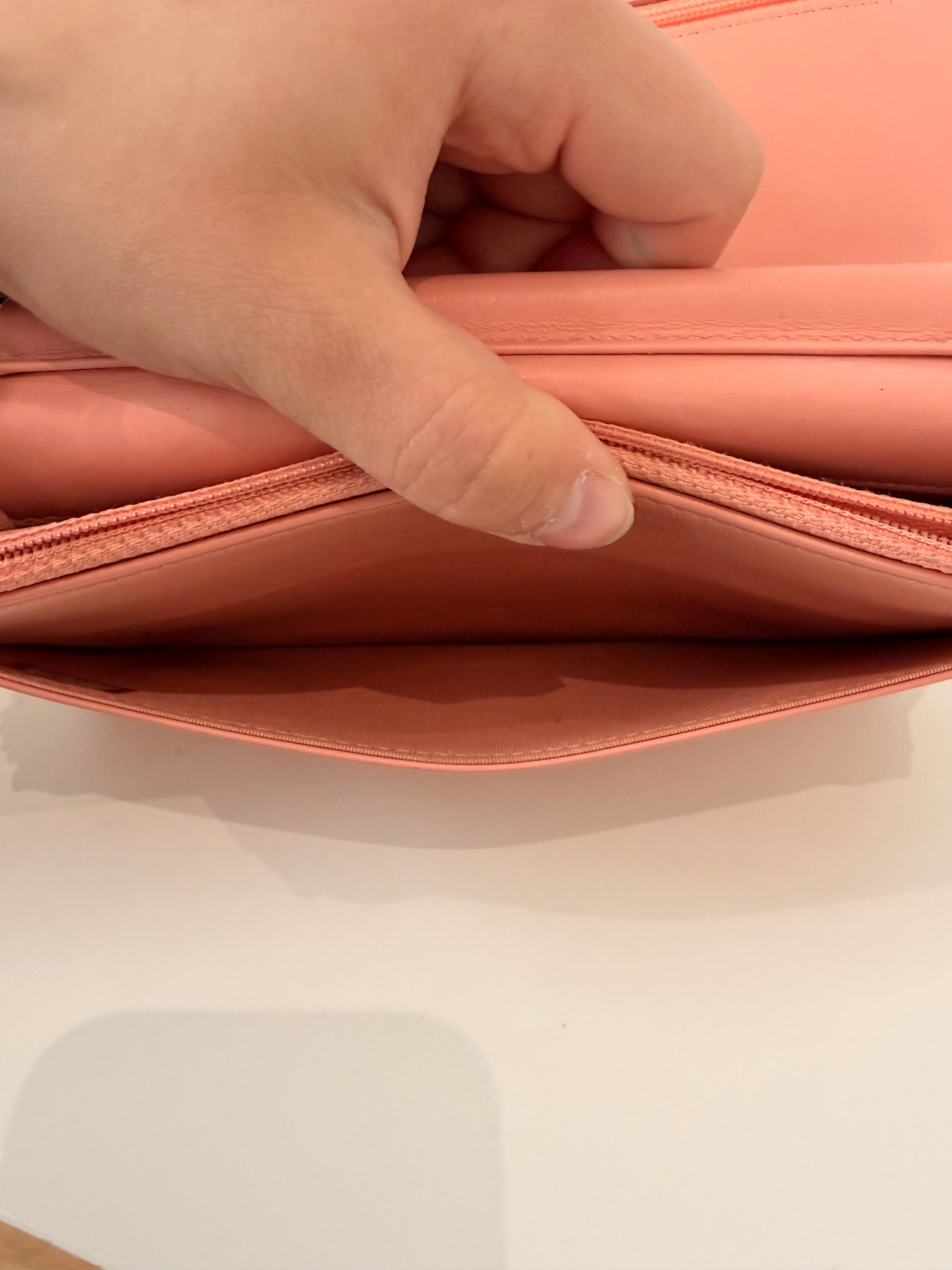 Intérieur rose en très bon état, trace du zip sur le cuir à l'intérieur. Légères traces à l'intérieur. (photos)