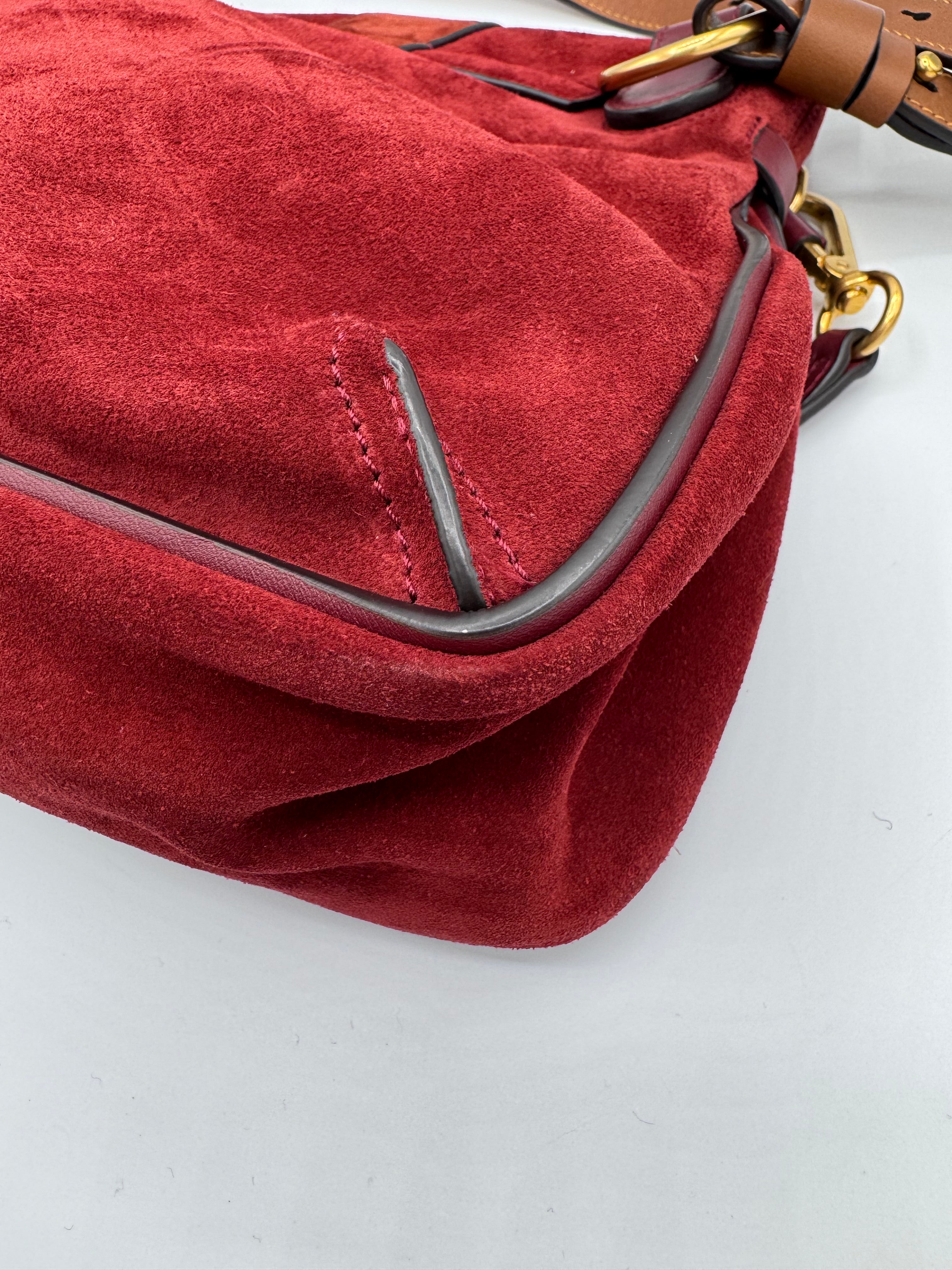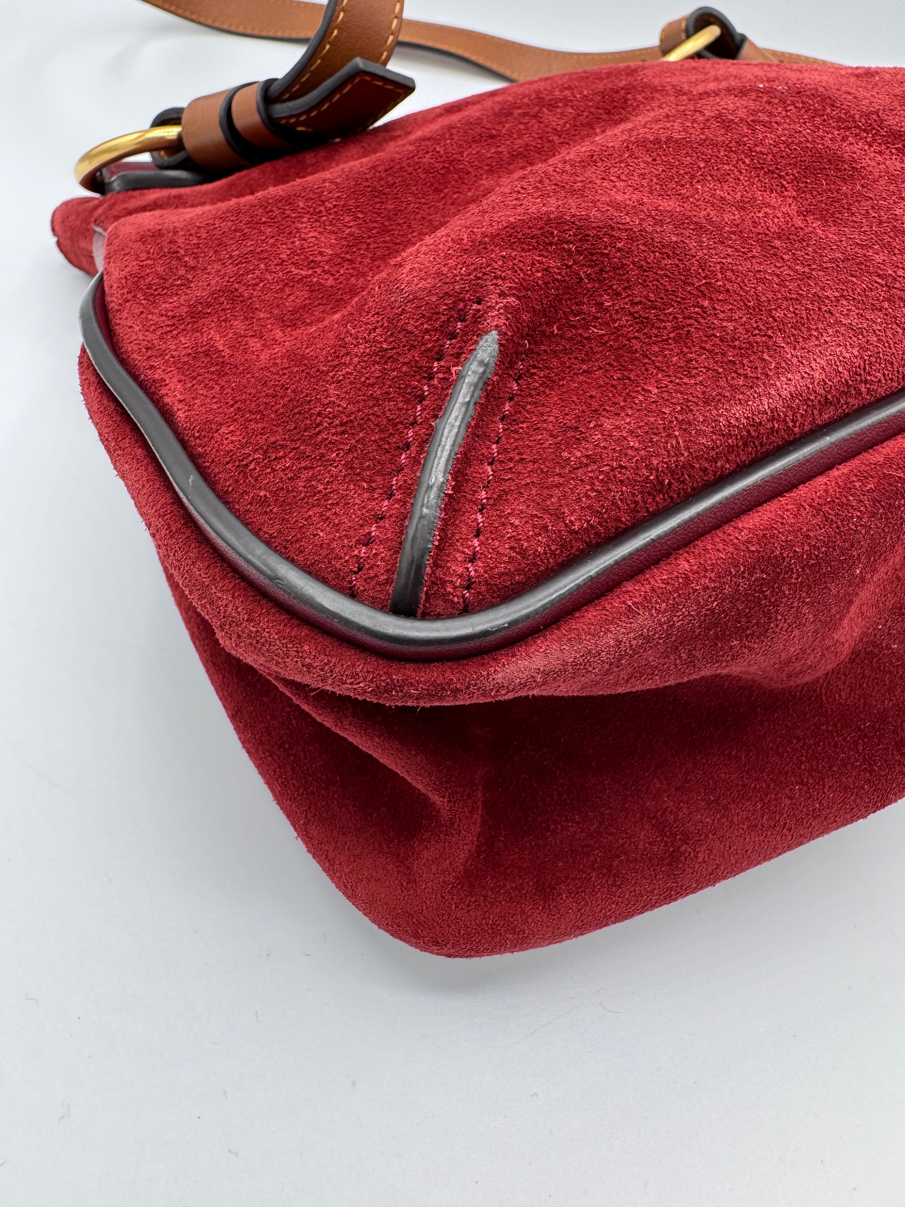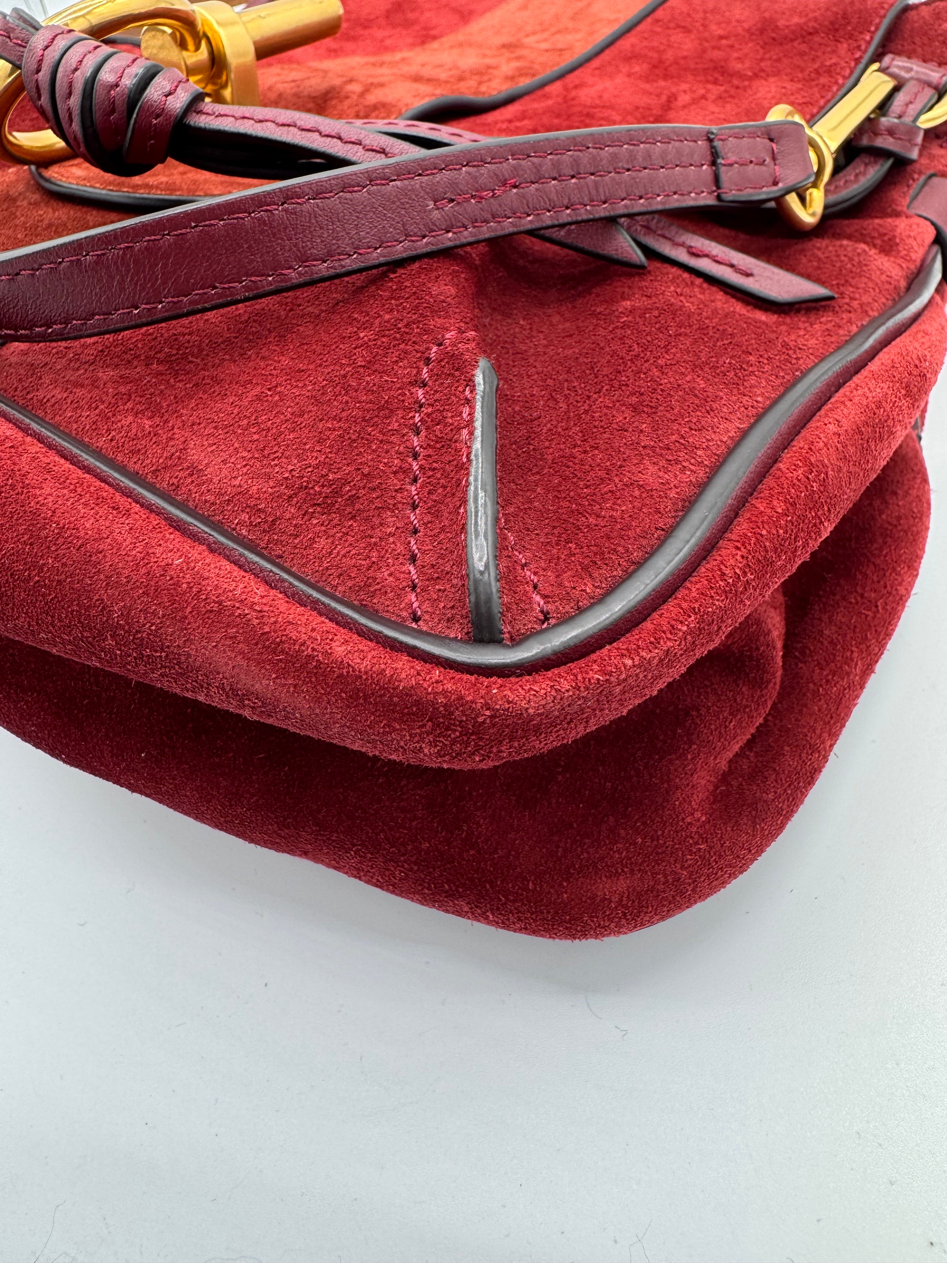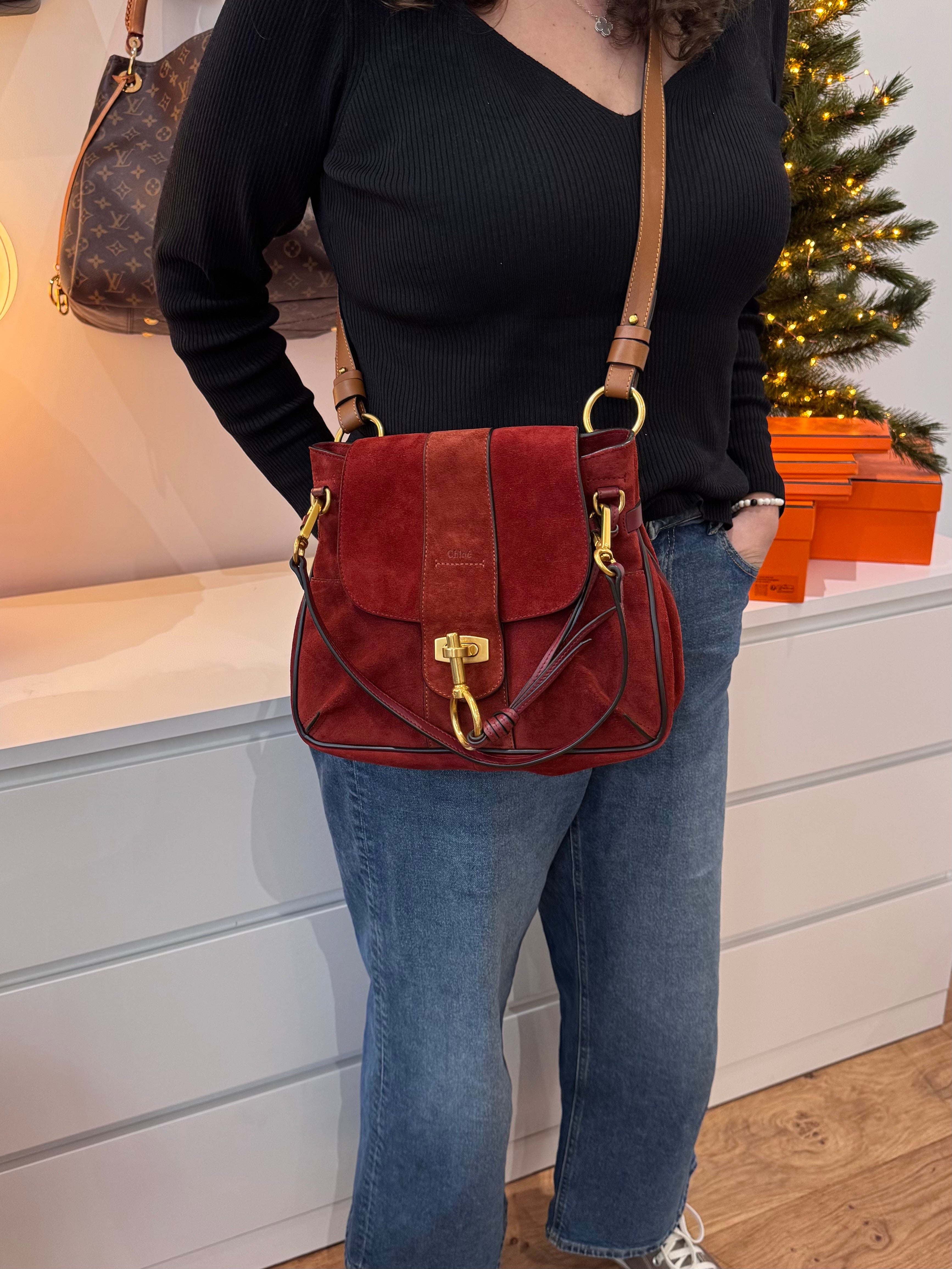 Sac Lexa de chez Chloé en cuir et suede bordeaux, bijouterie dorée, en état excellent.