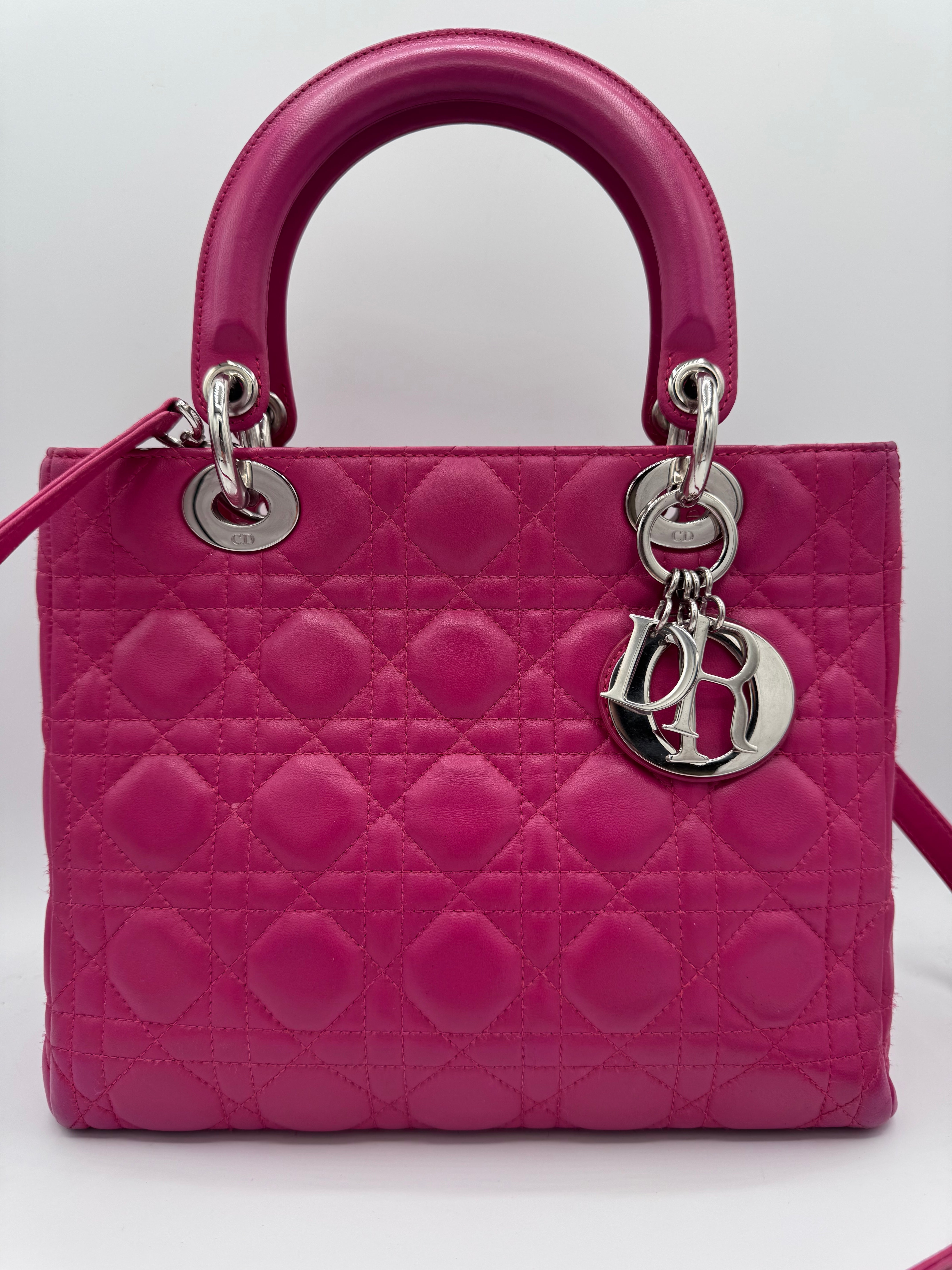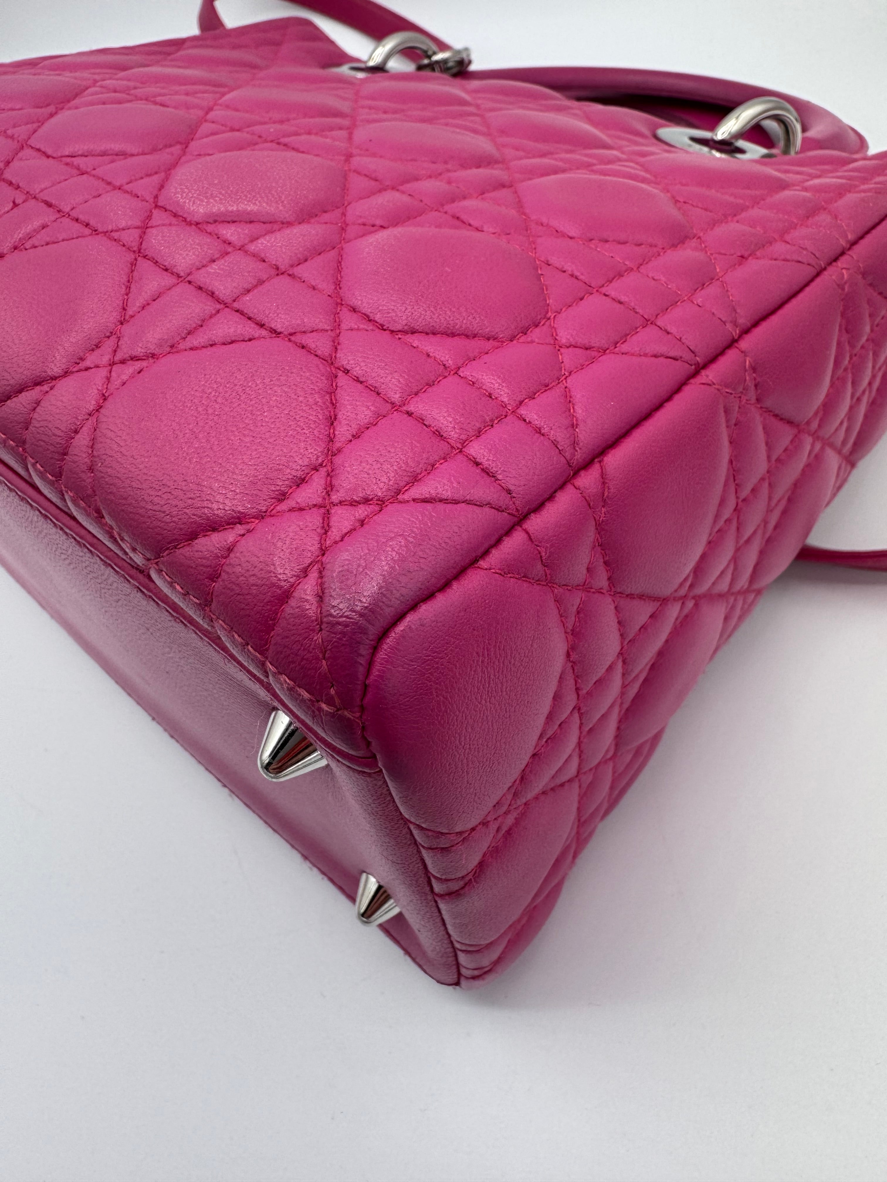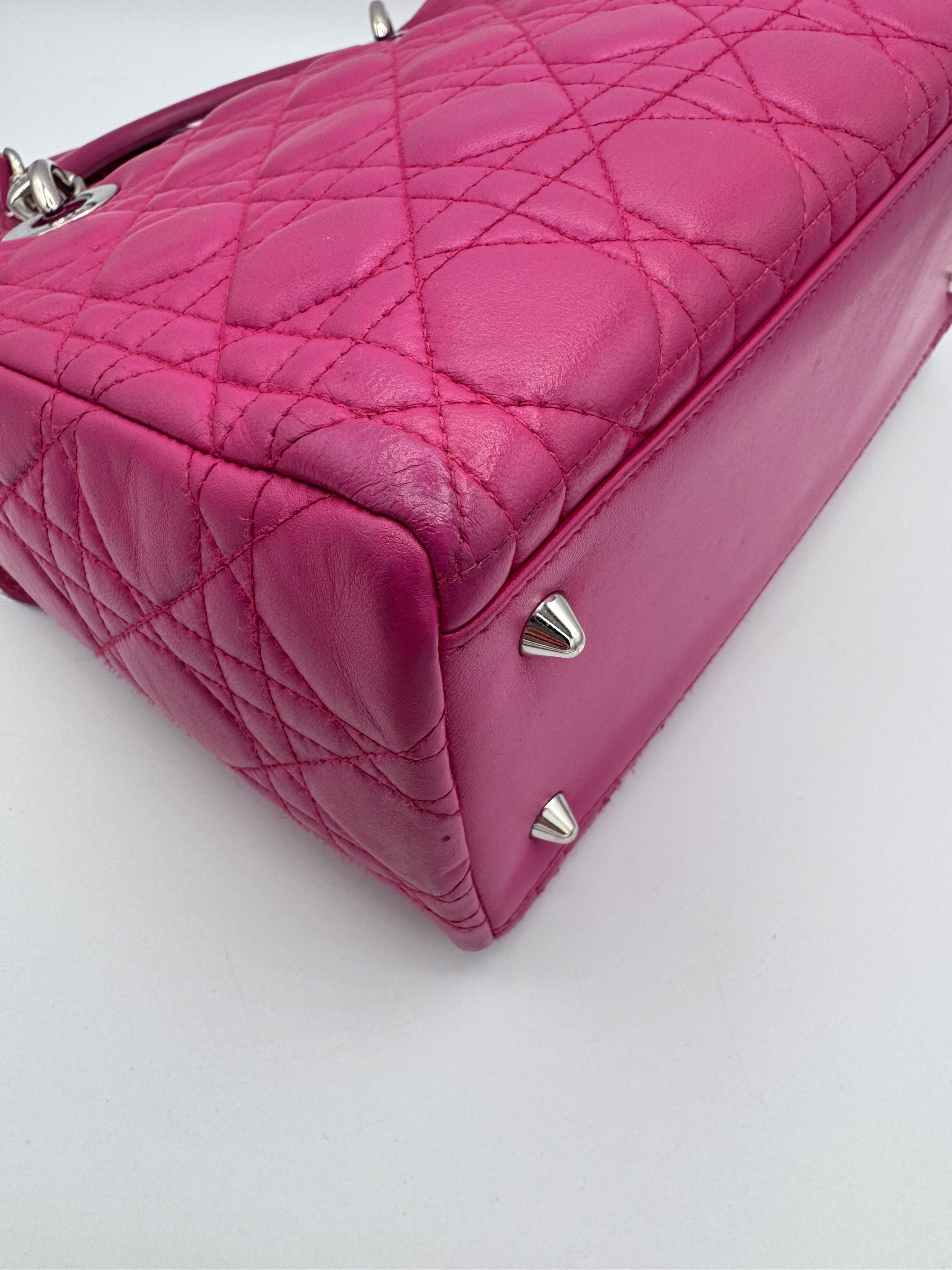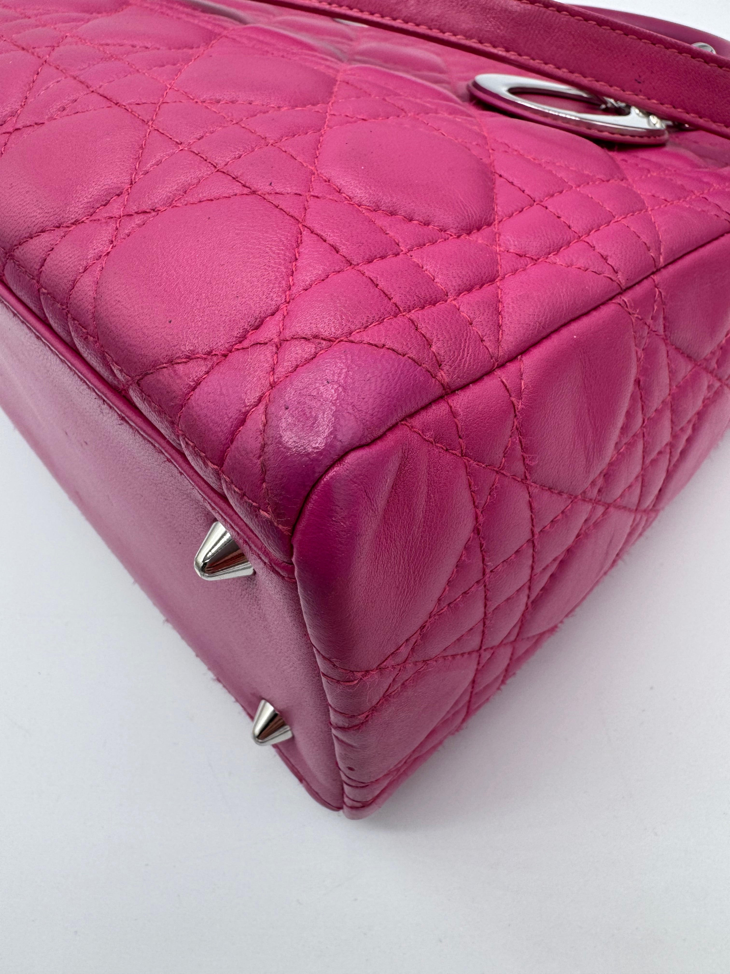 Très bon état pour ce Lady Dior Médium en cuir rose.