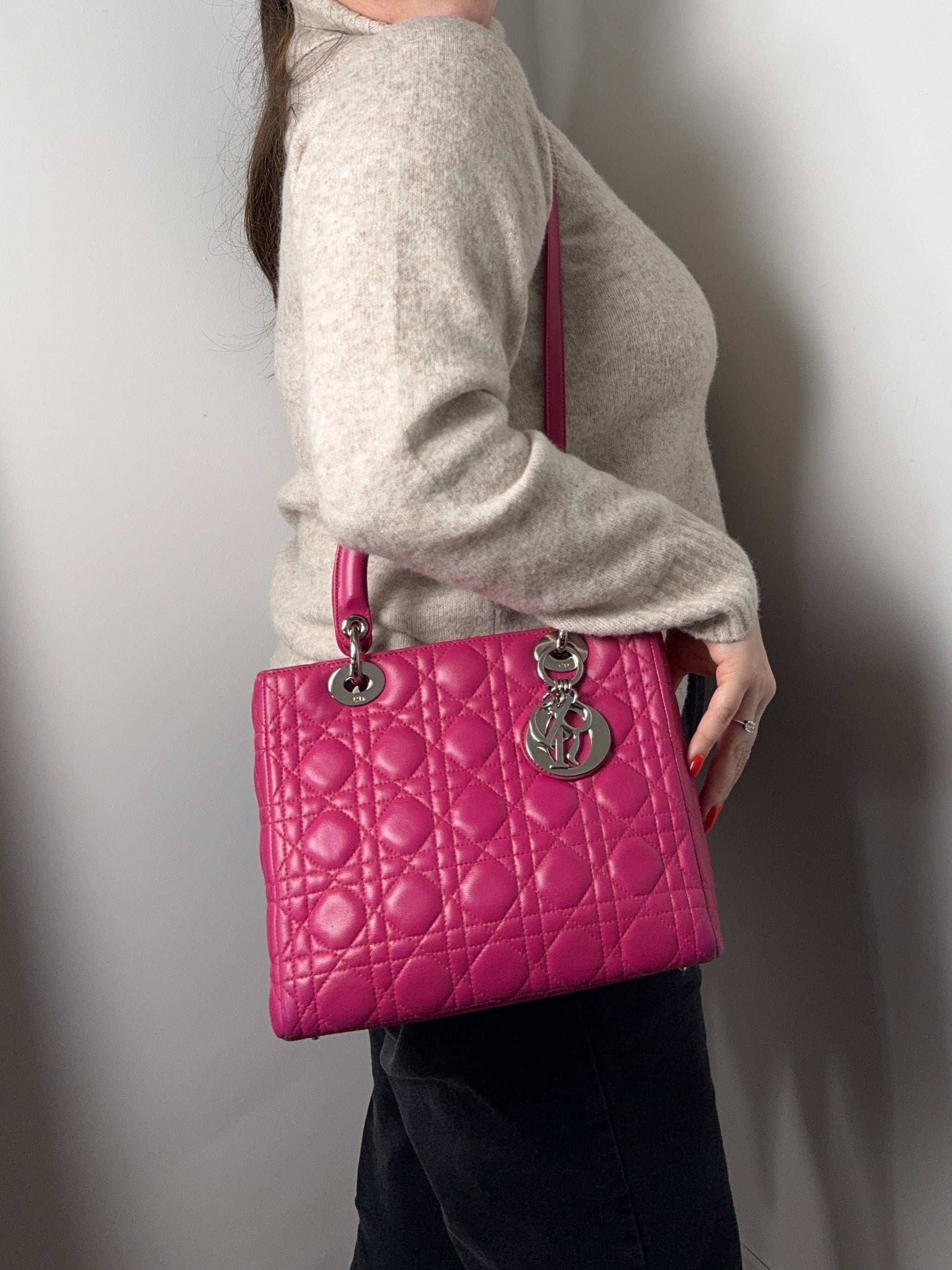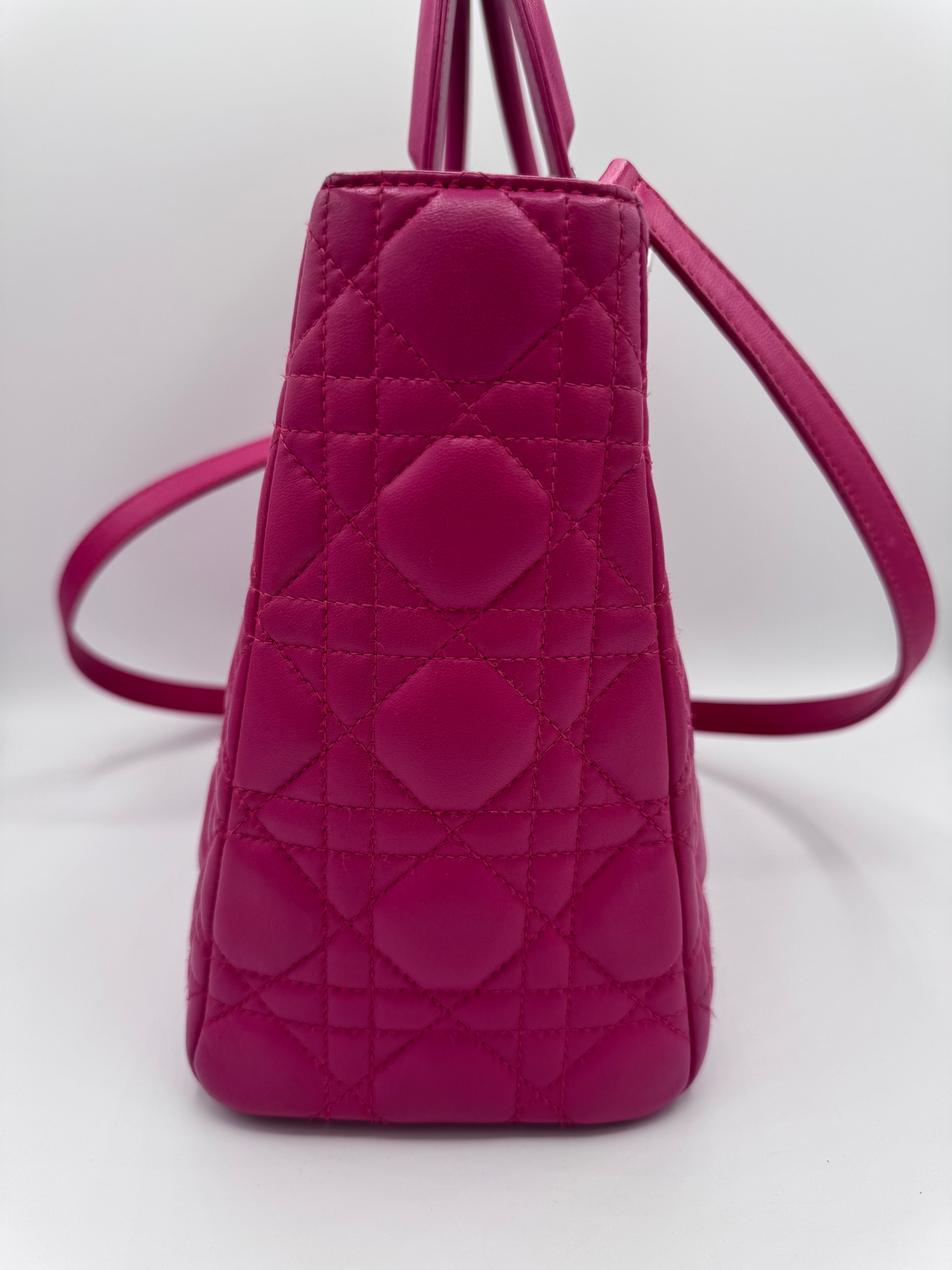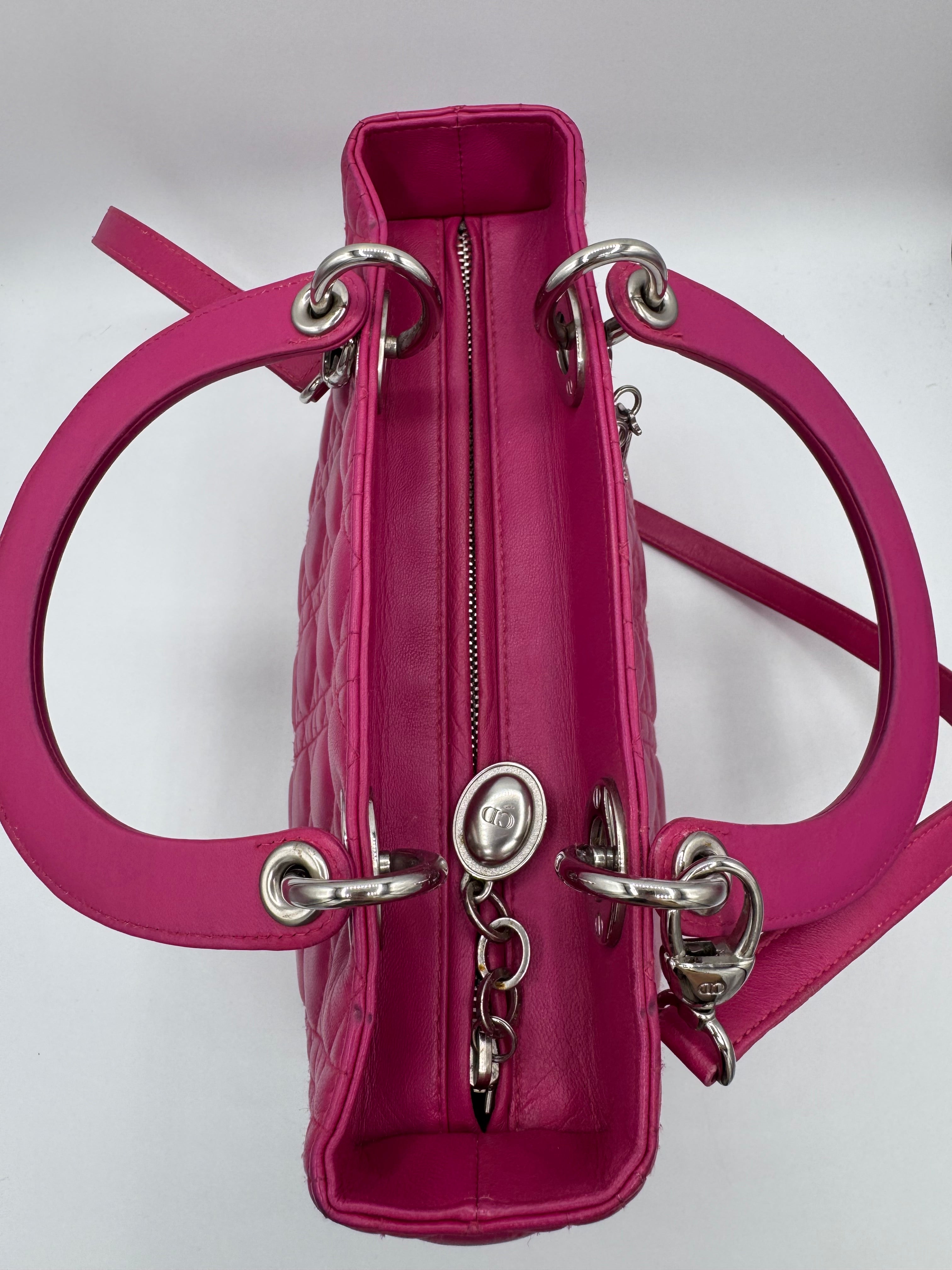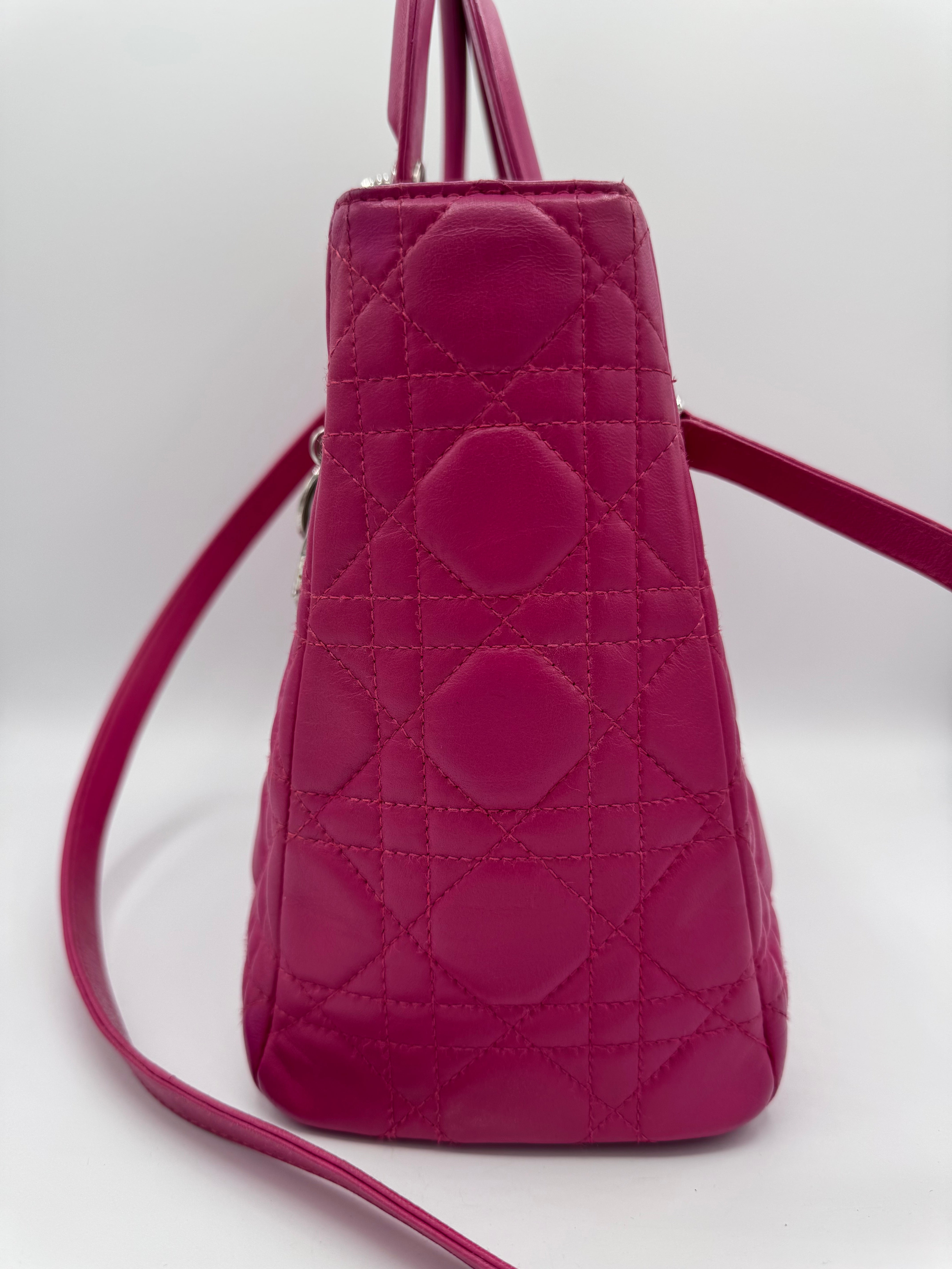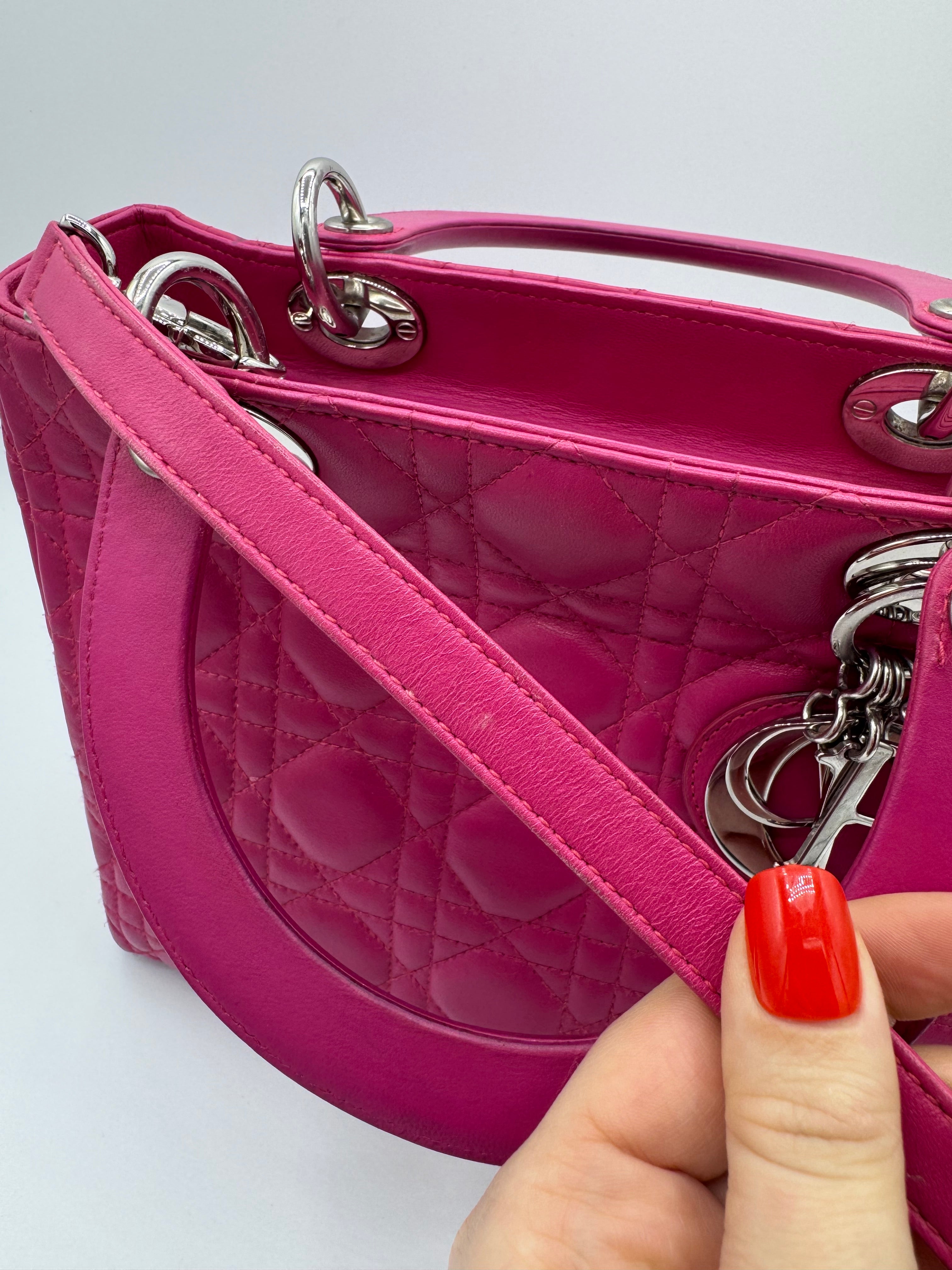 Très bon état pour ce Lady Dior Médium en cuir rose.
