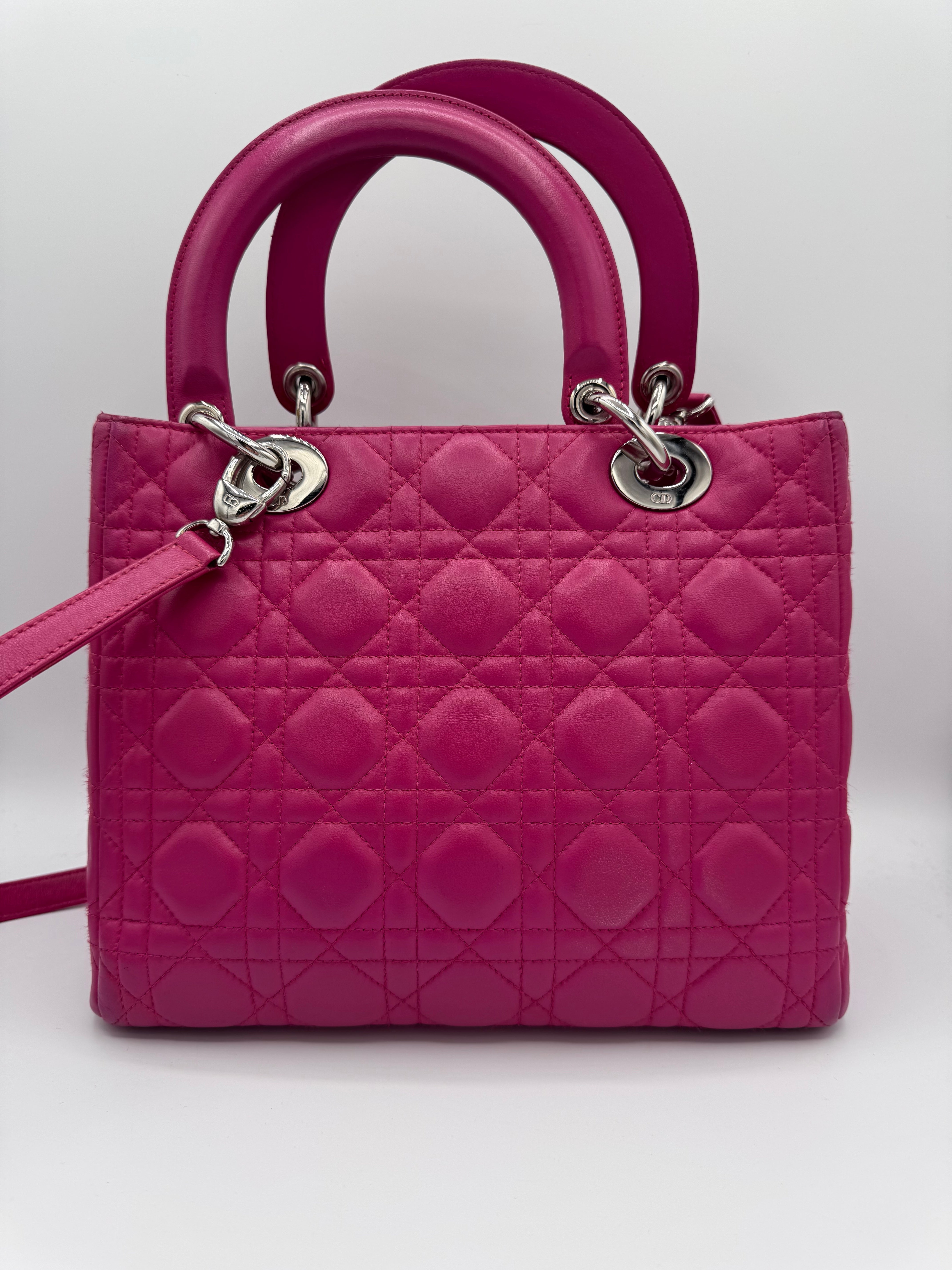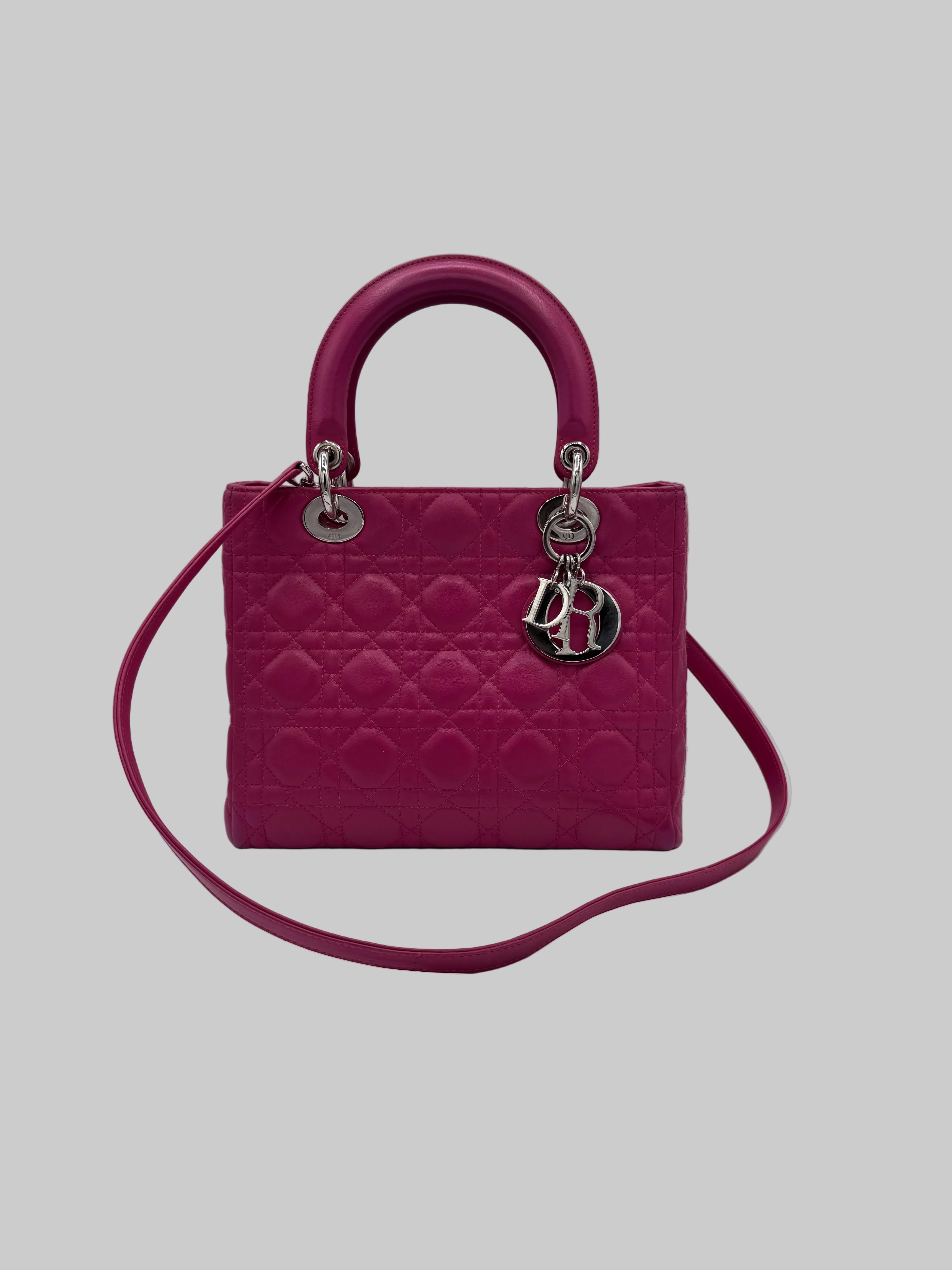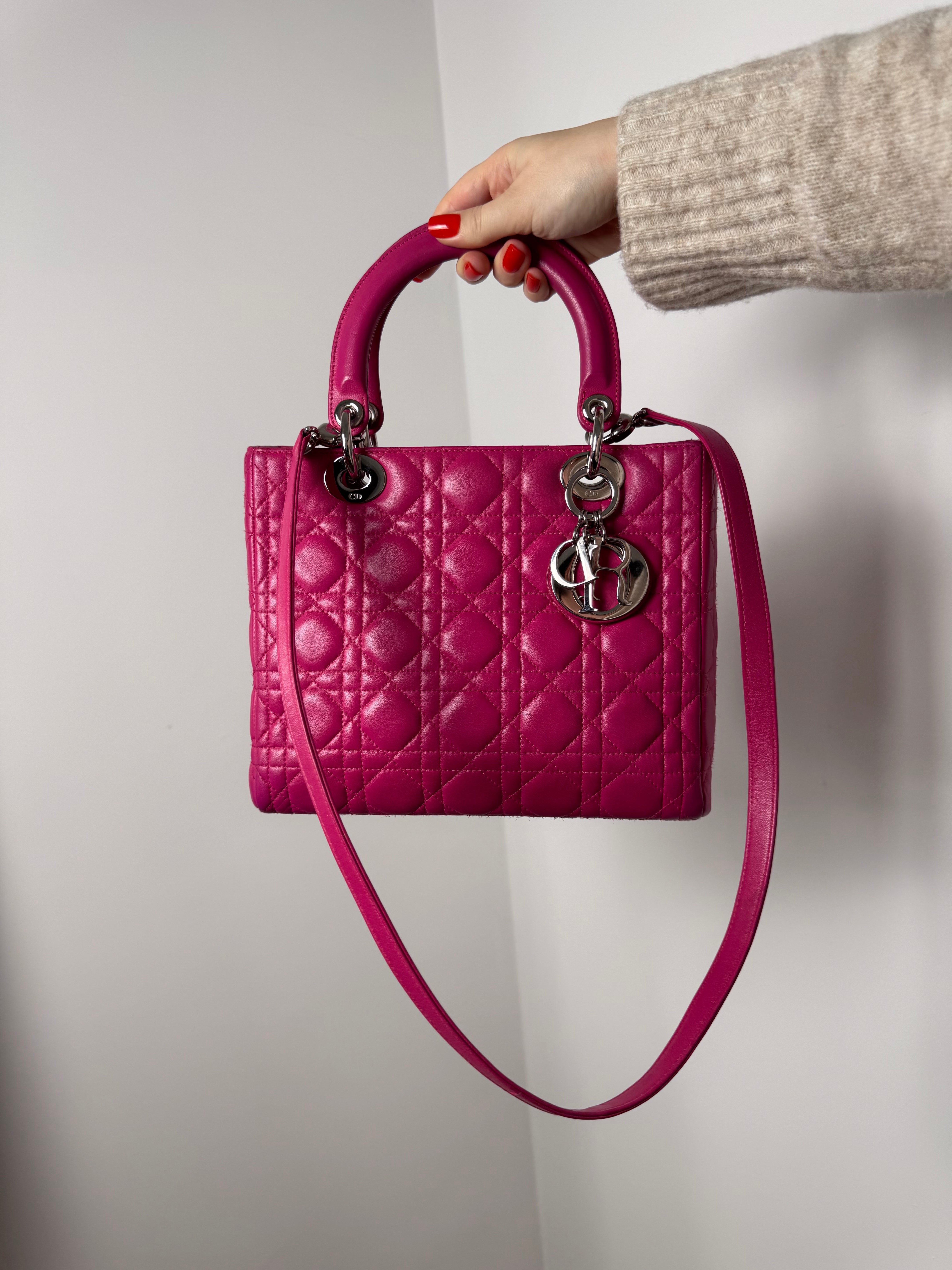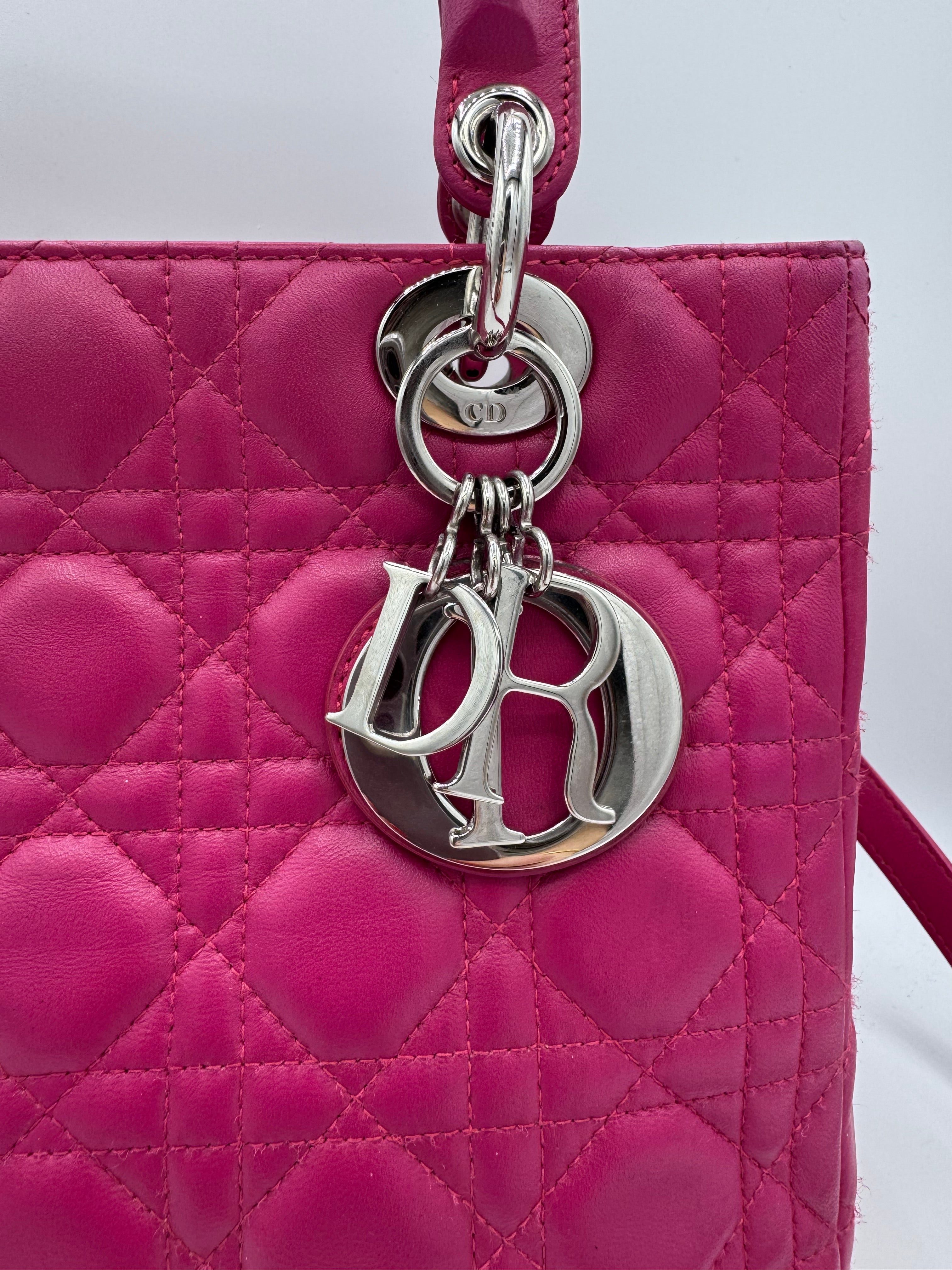 Très bon état pour ce Lady Dior Médium en cuir rose.