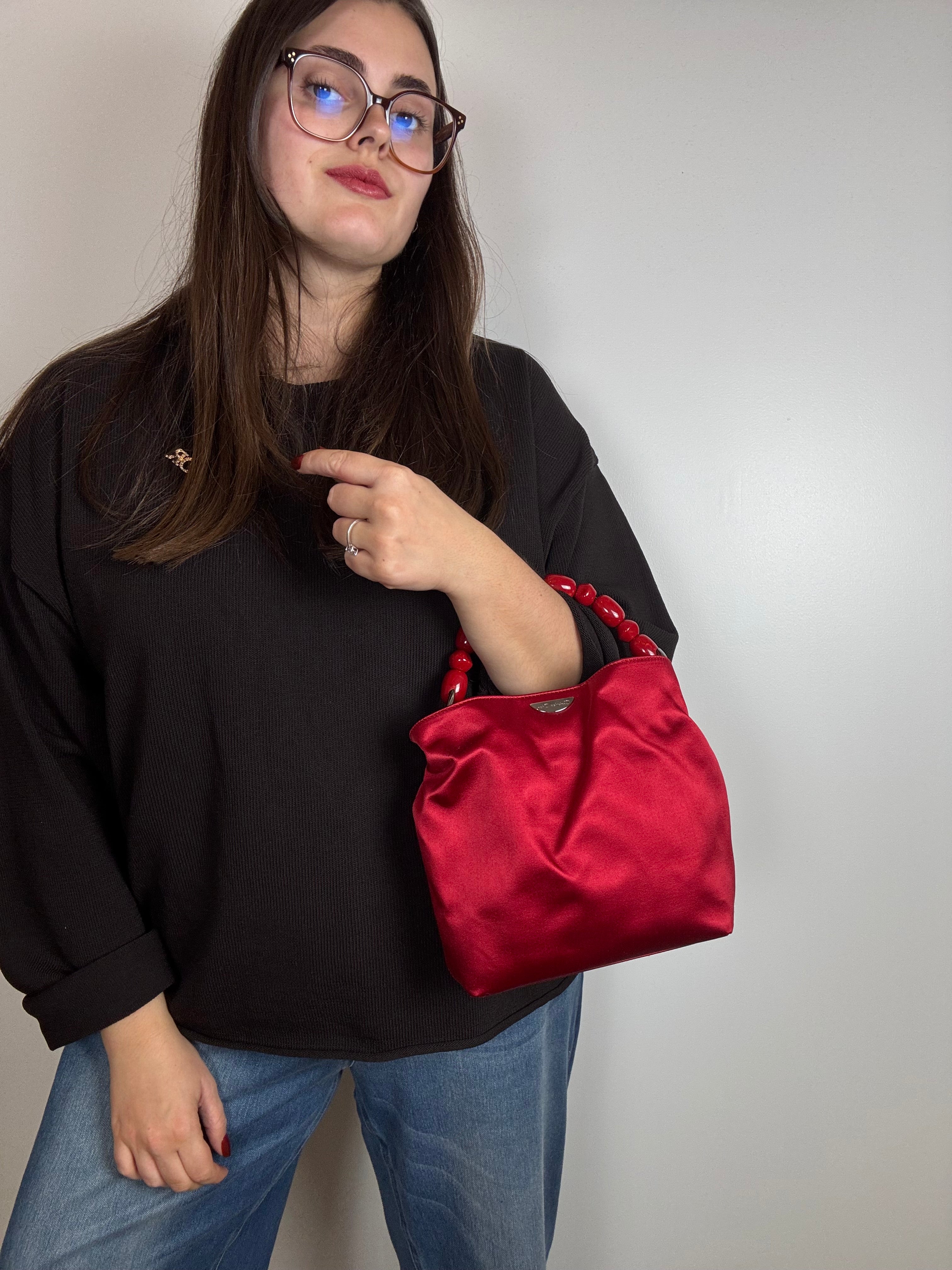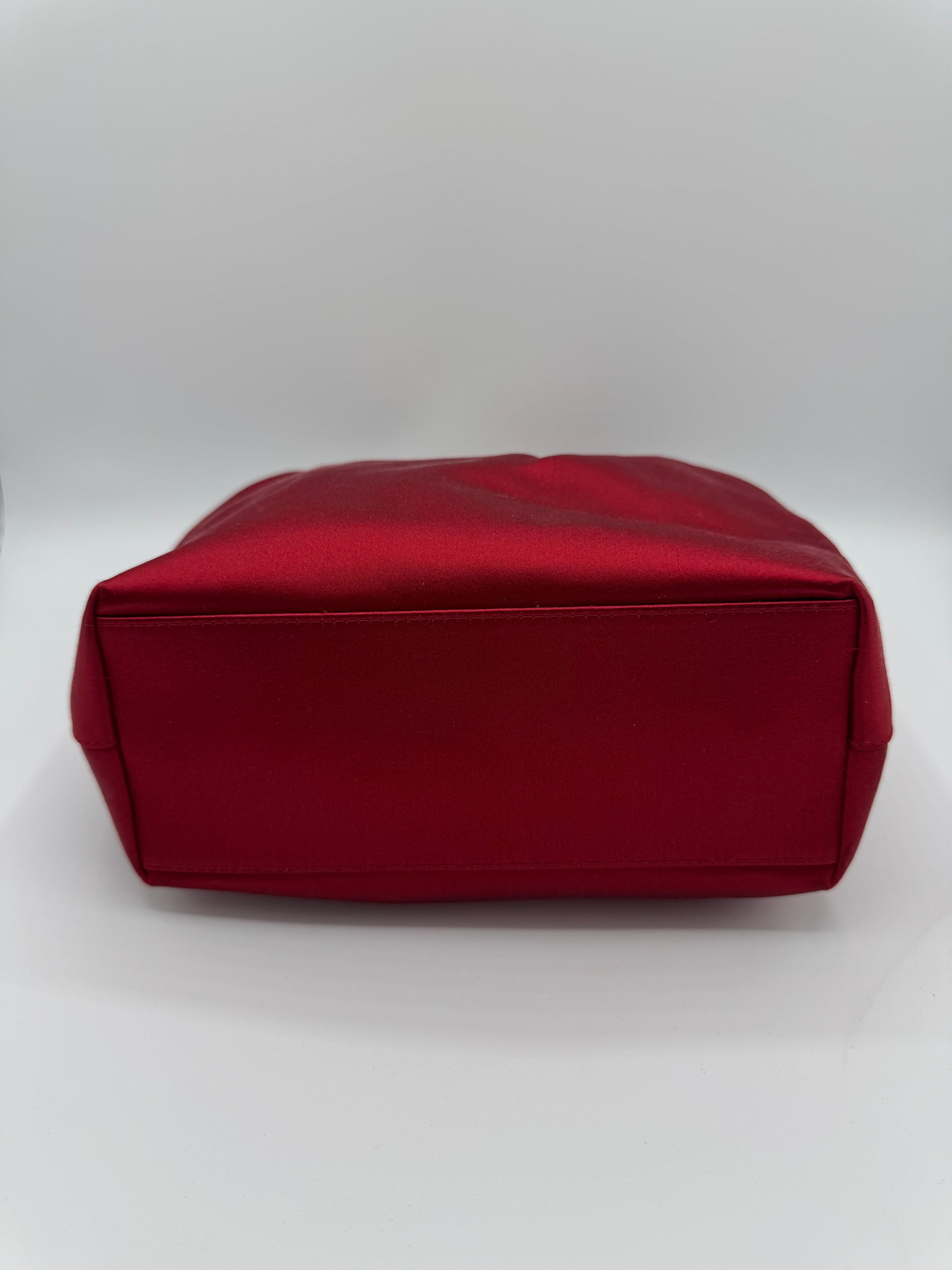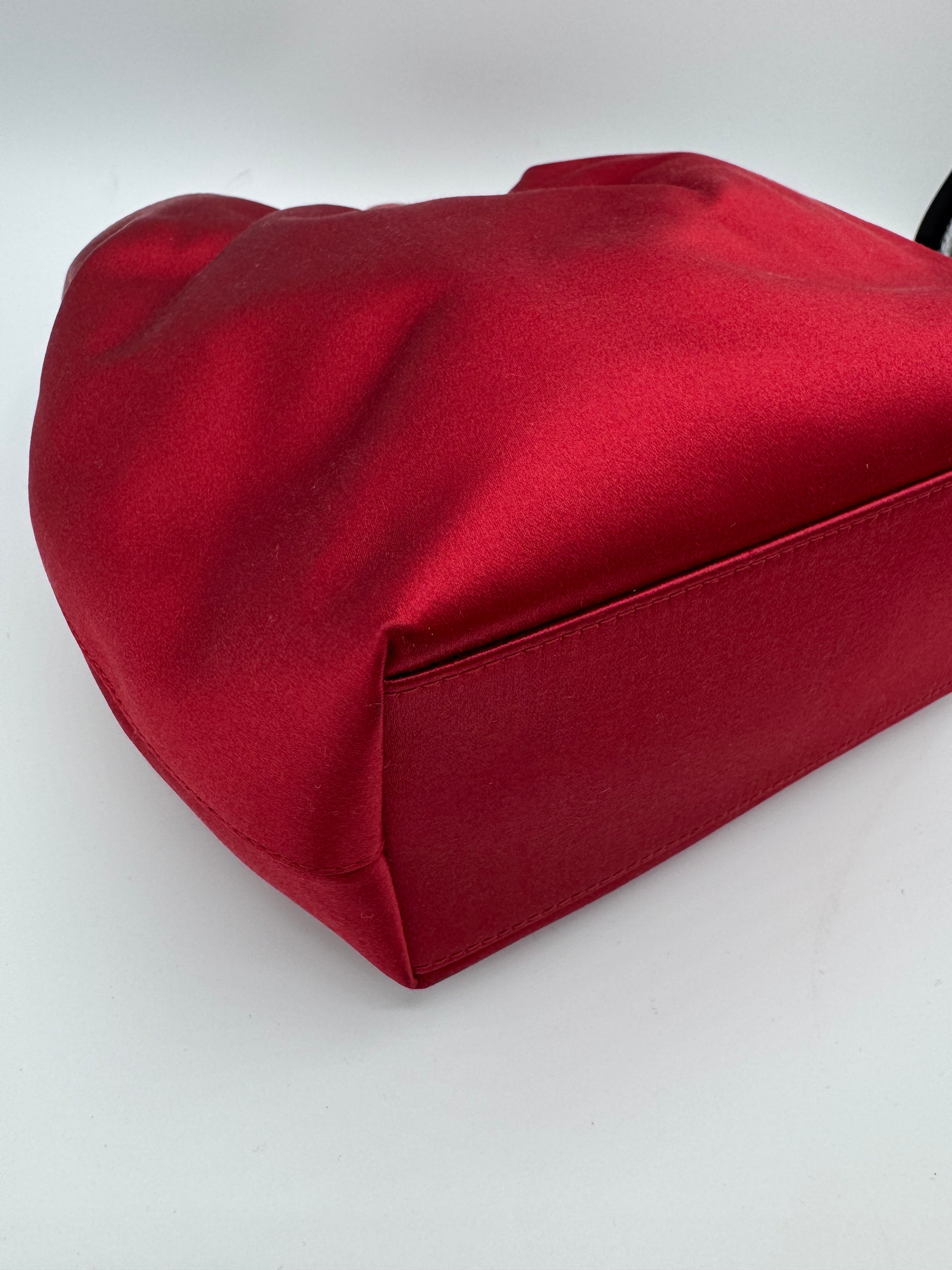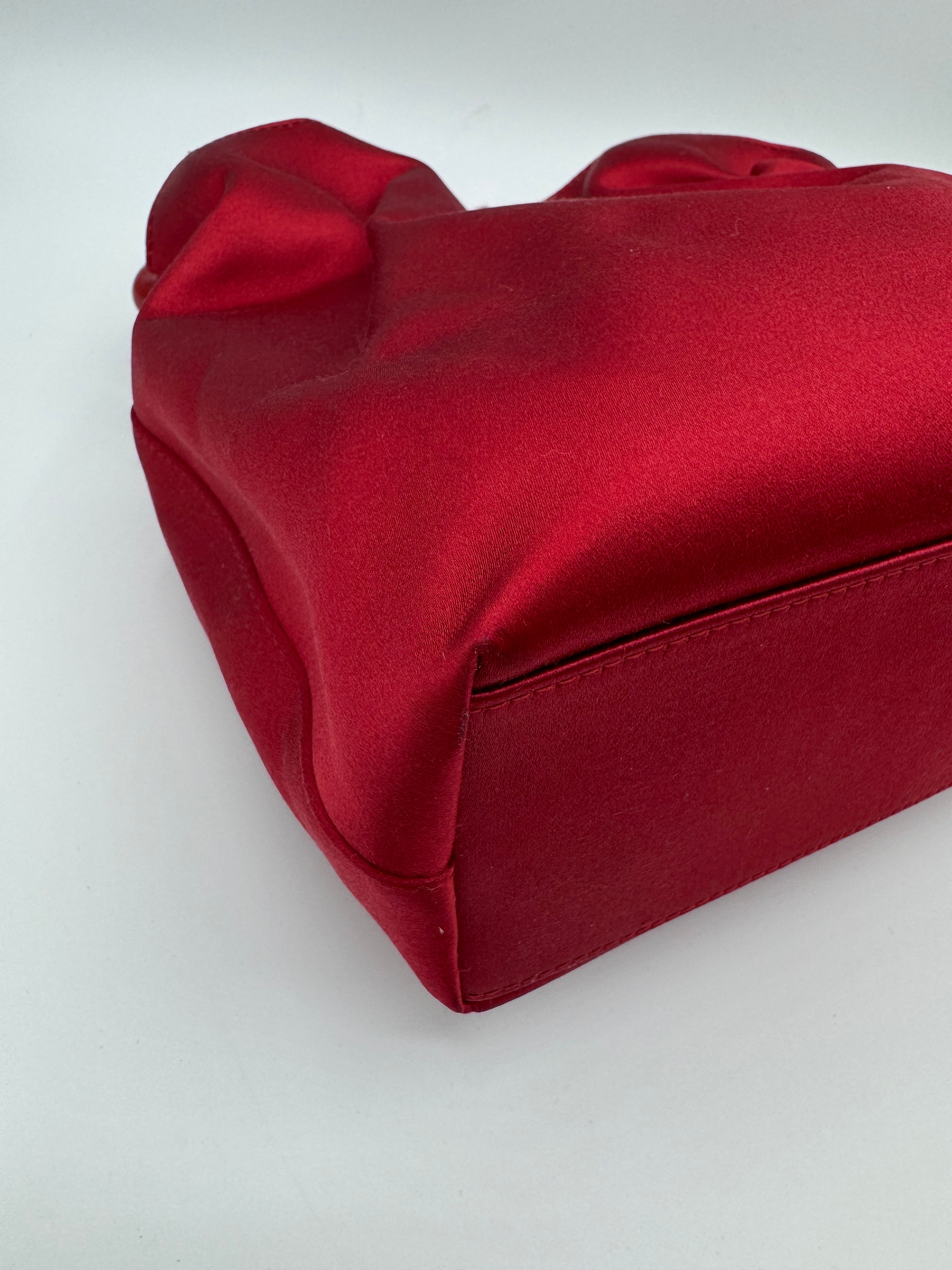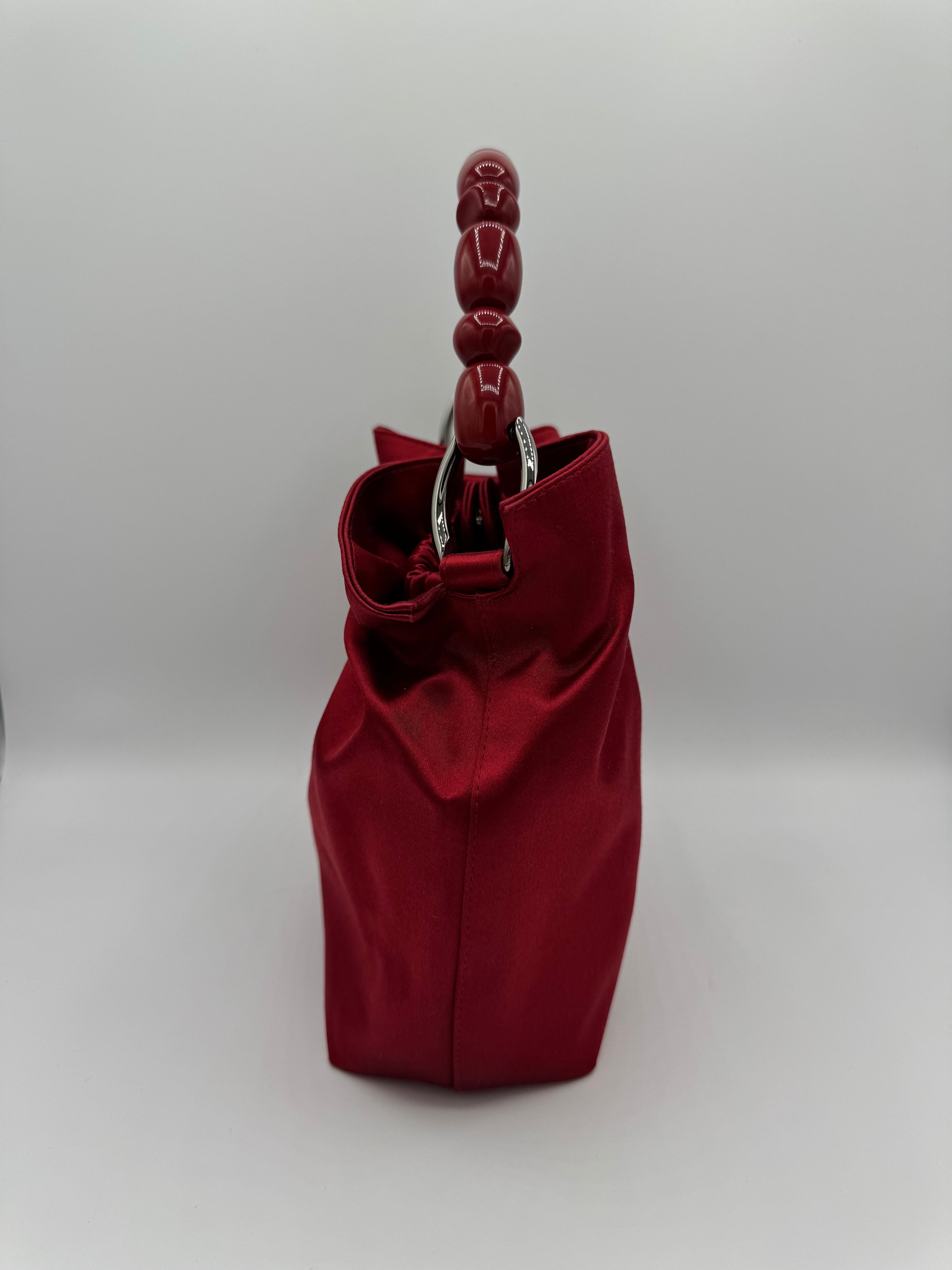 Sac Dior Maris Pearl, en rouge satin et fantaisie, en très bon état.