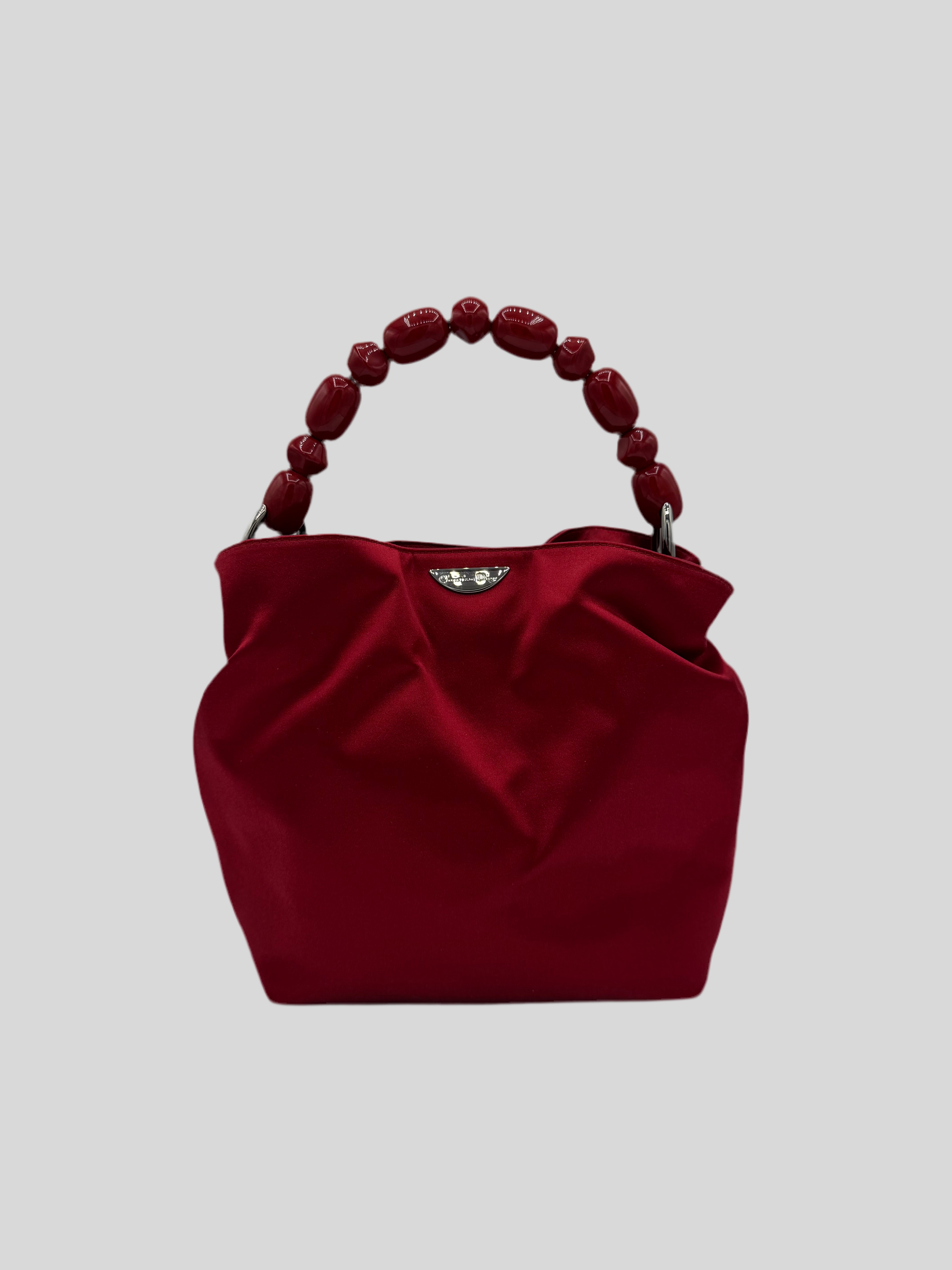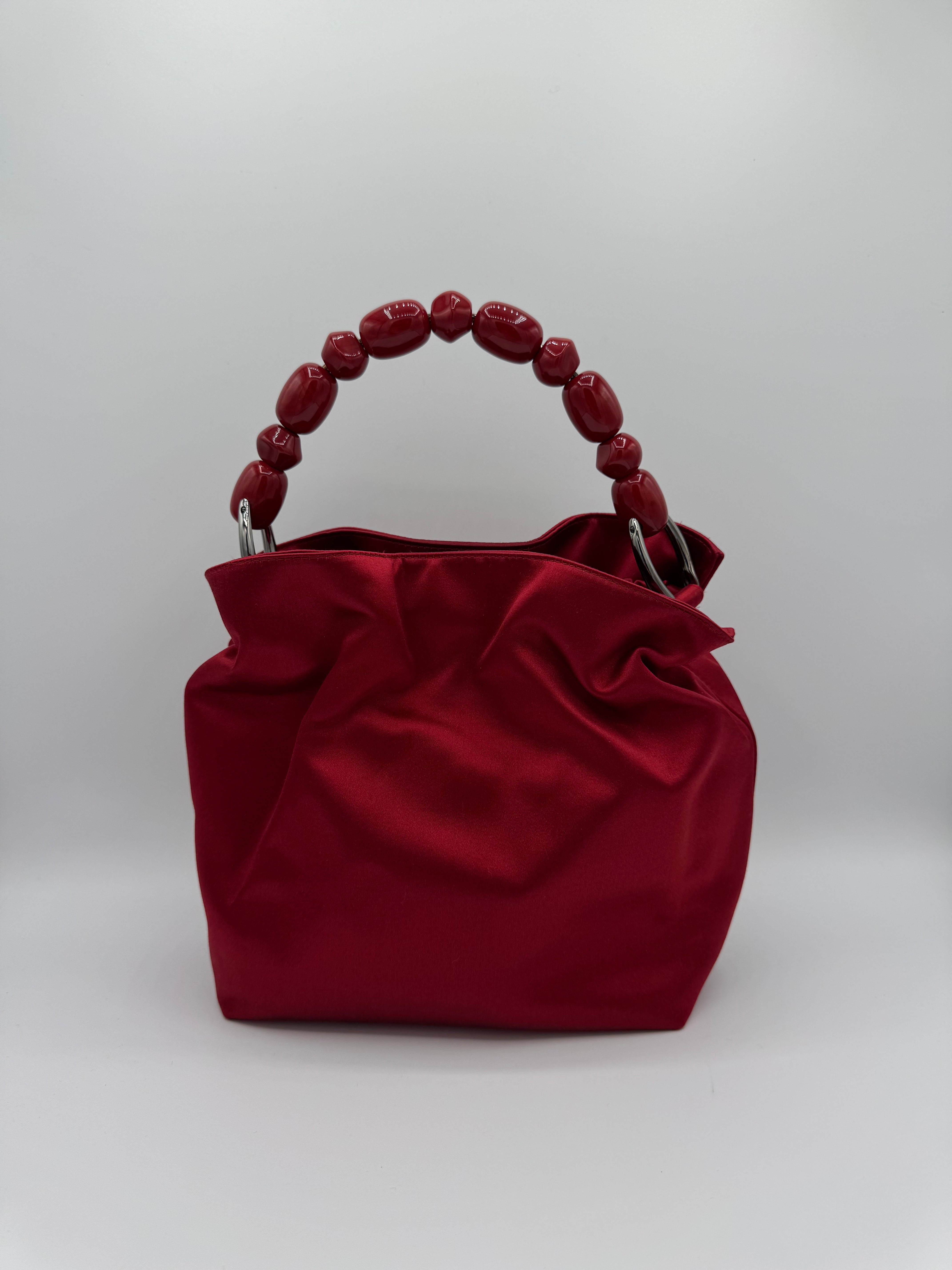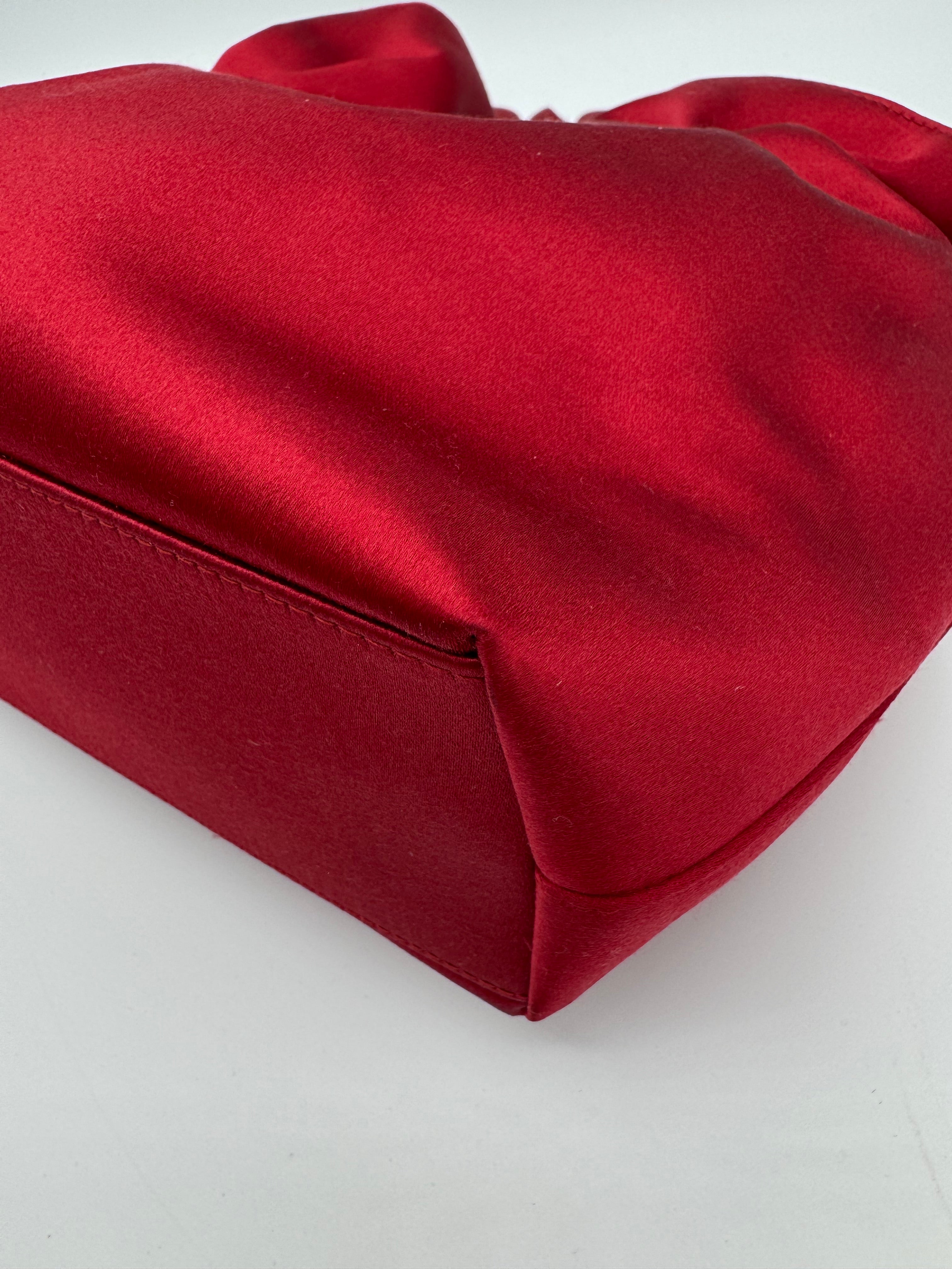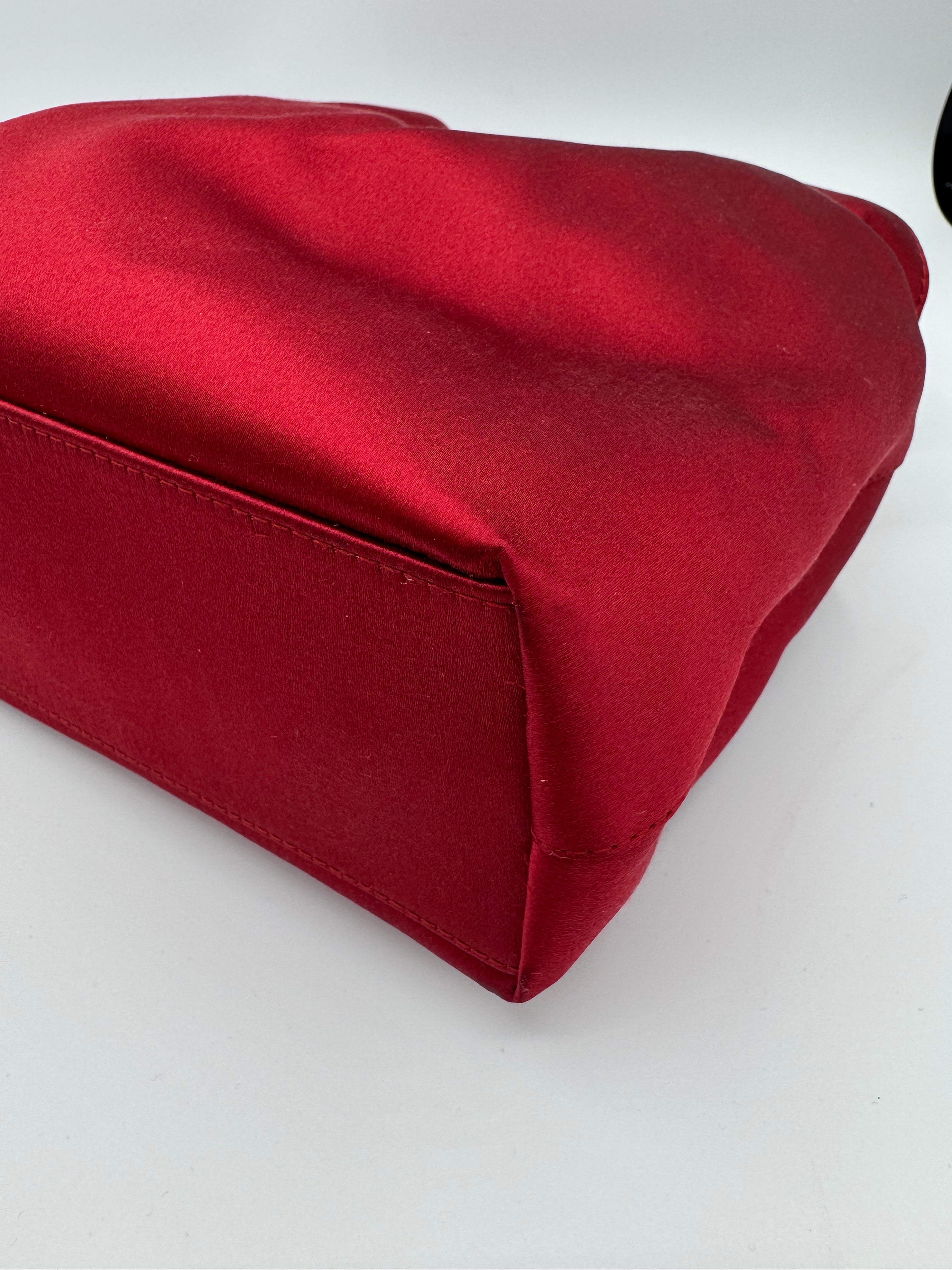 Sac Dior Maris Pearl, en rouge satin et fantaisie, en très bon état.