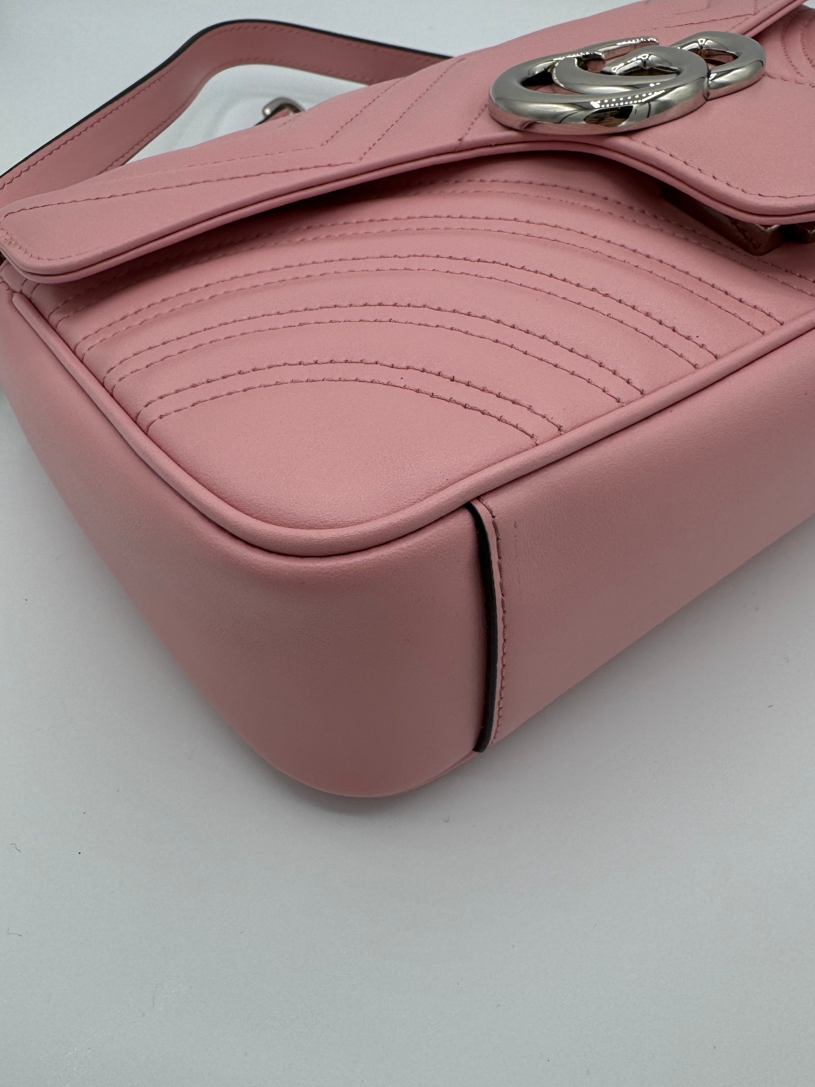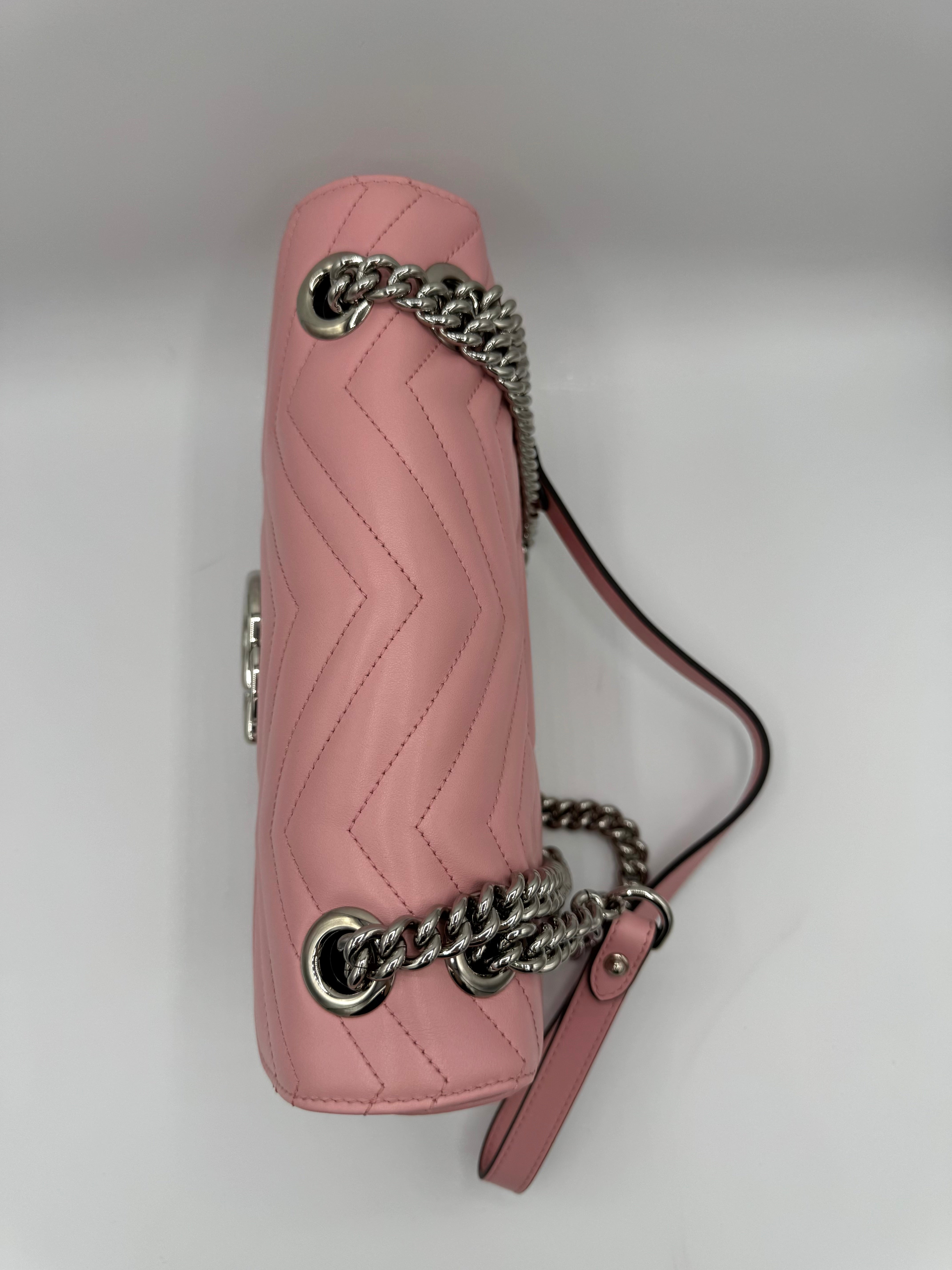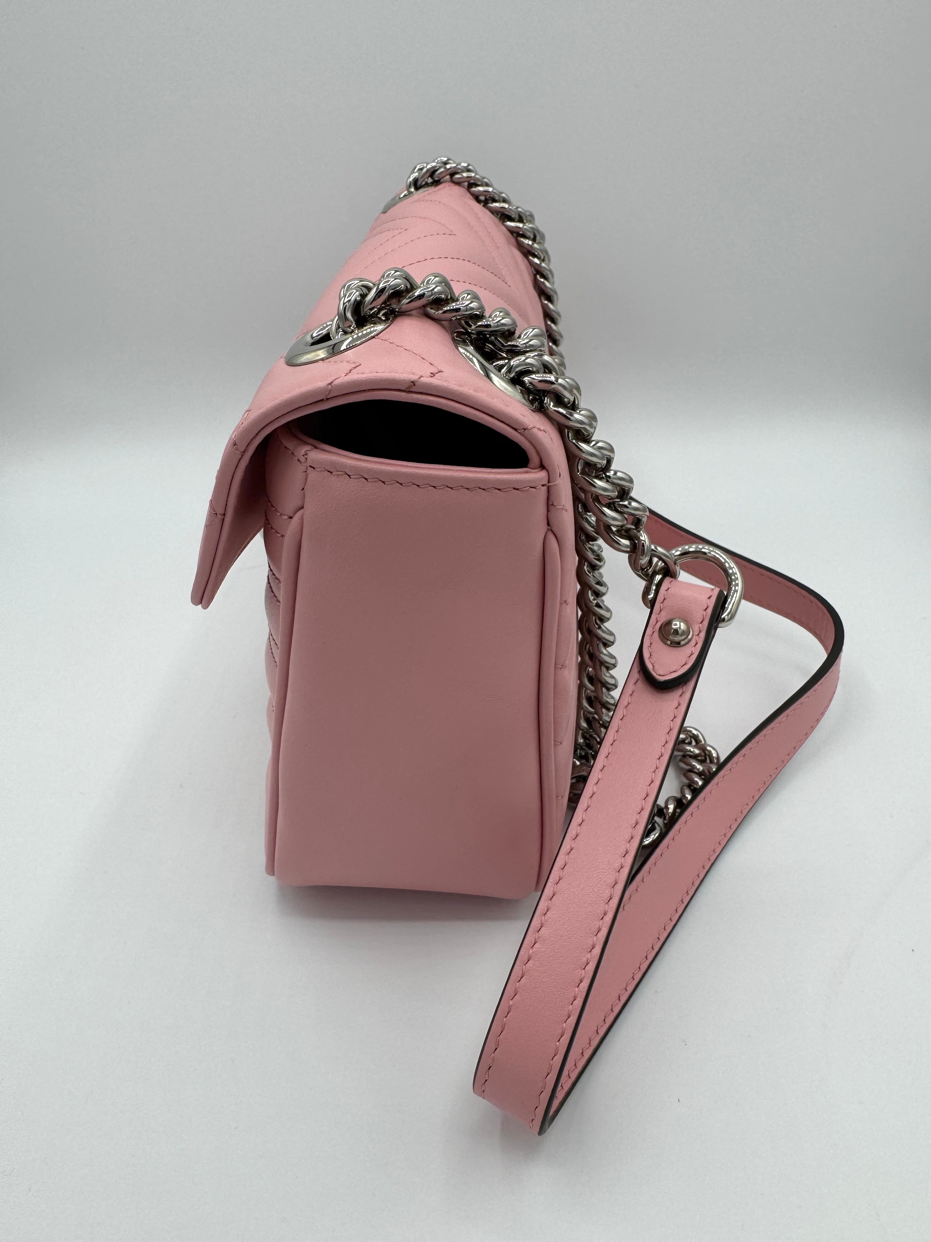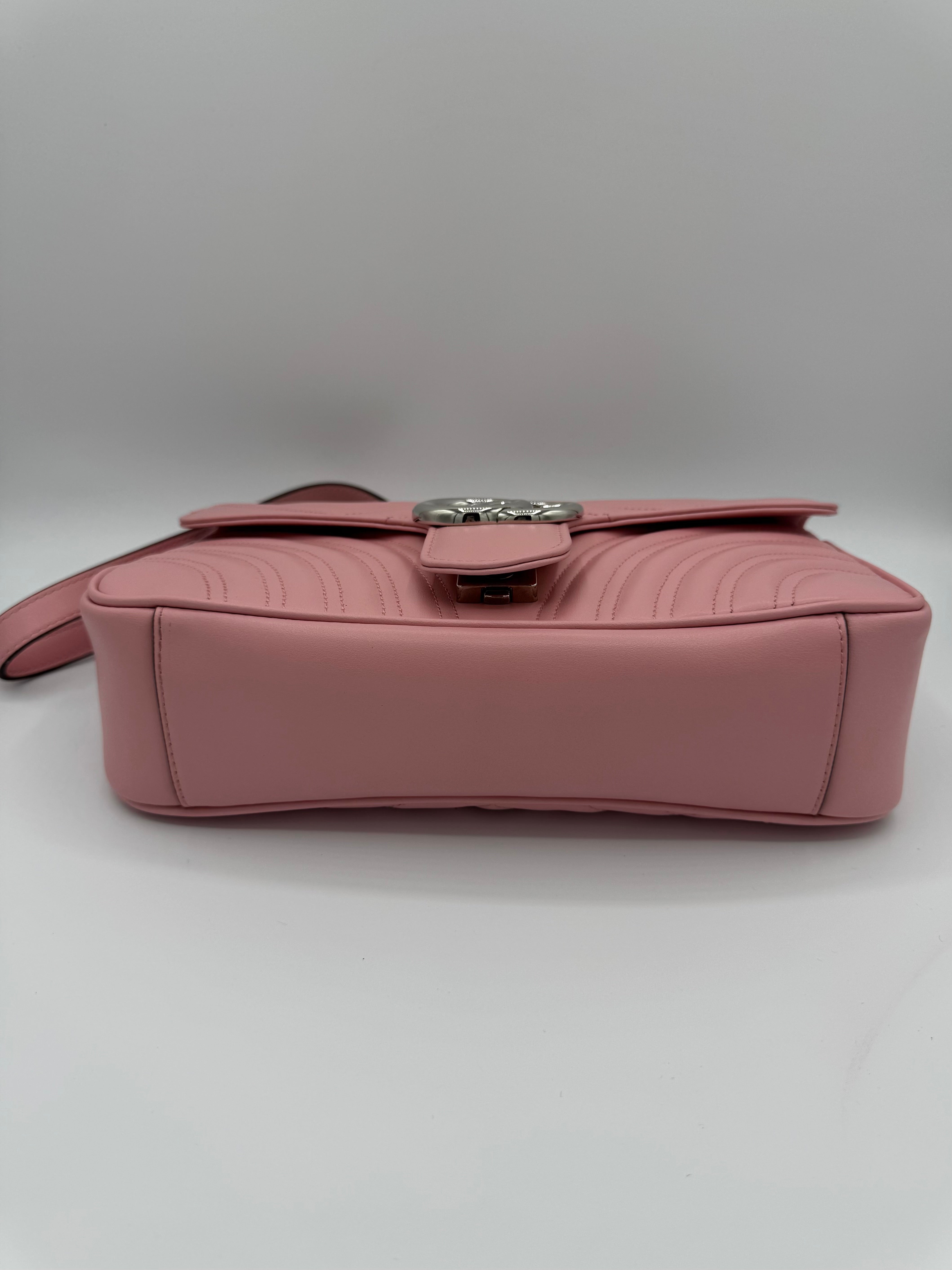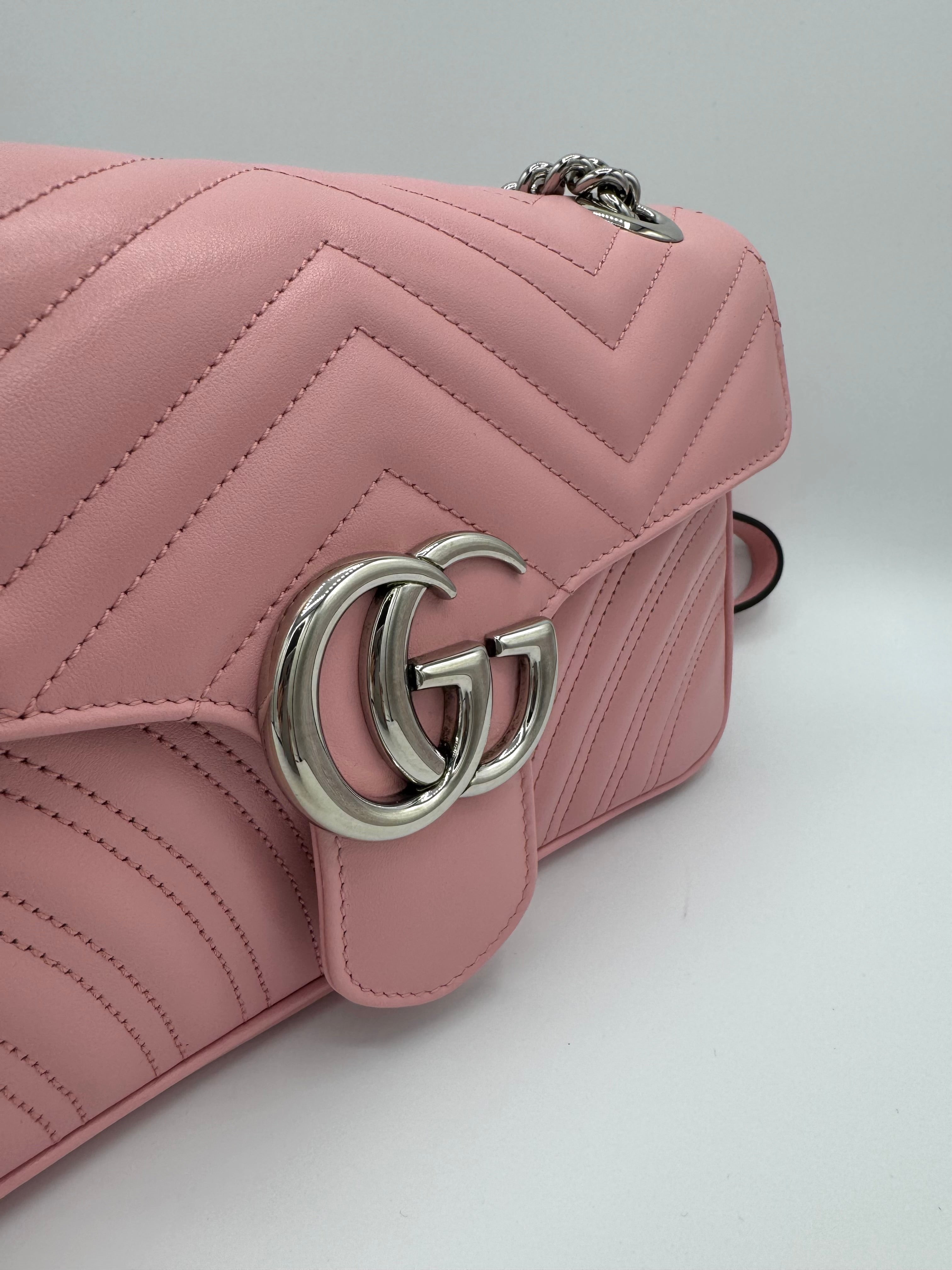 Sac GG Marmont Moyen Gucci, en cuir de veau rose, en état excellent.