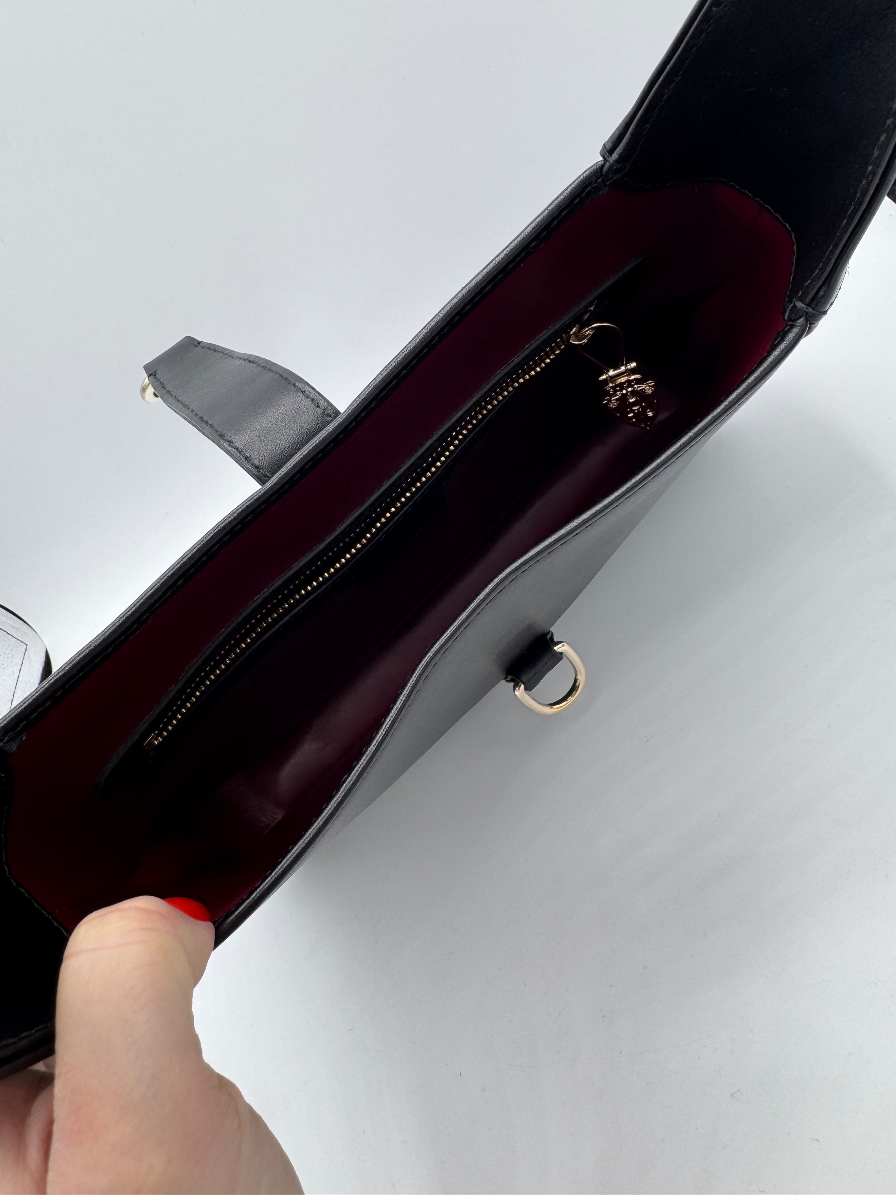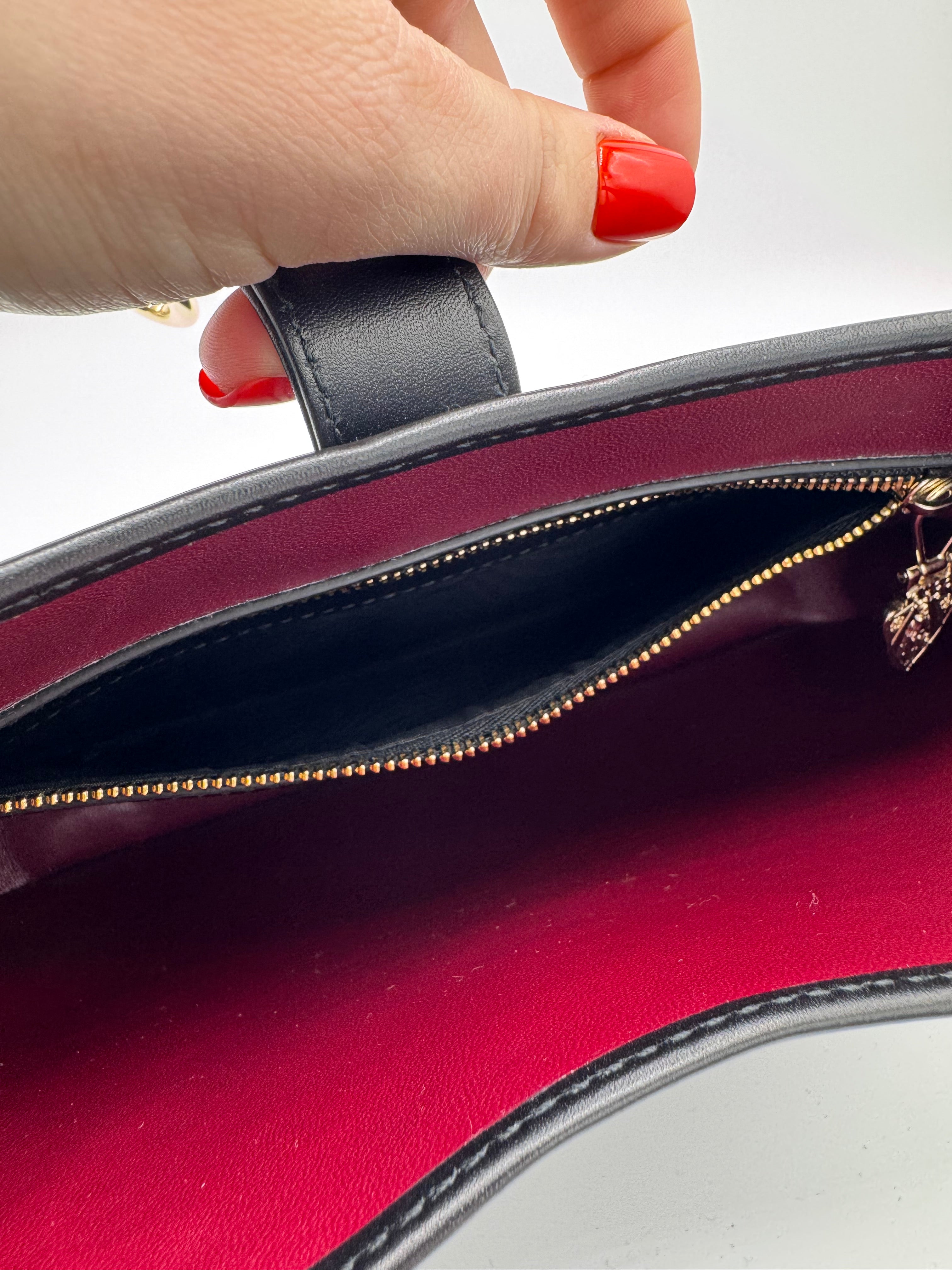 Une trace sur le devant du sac à côté du fermoir, visible en photo.