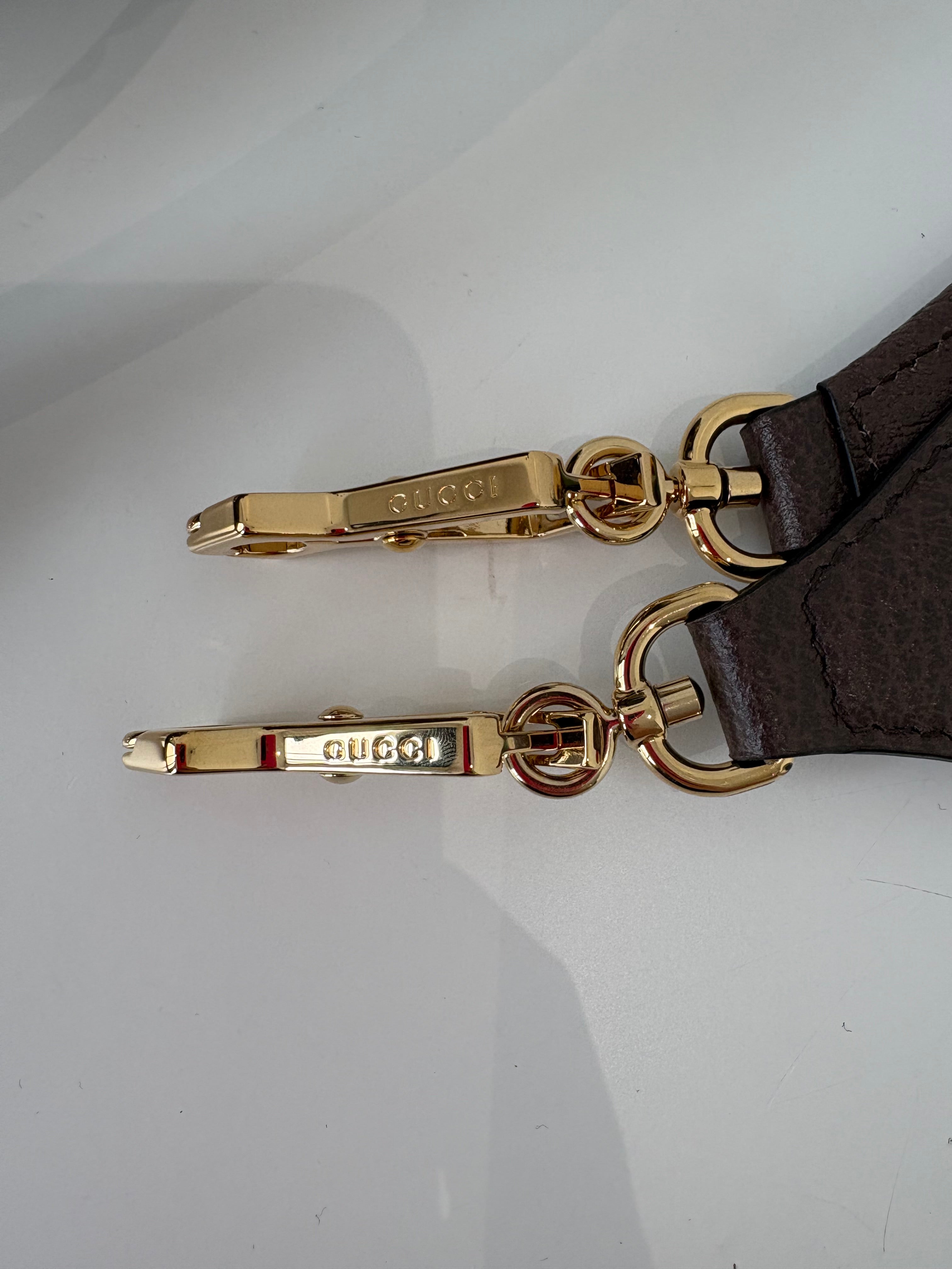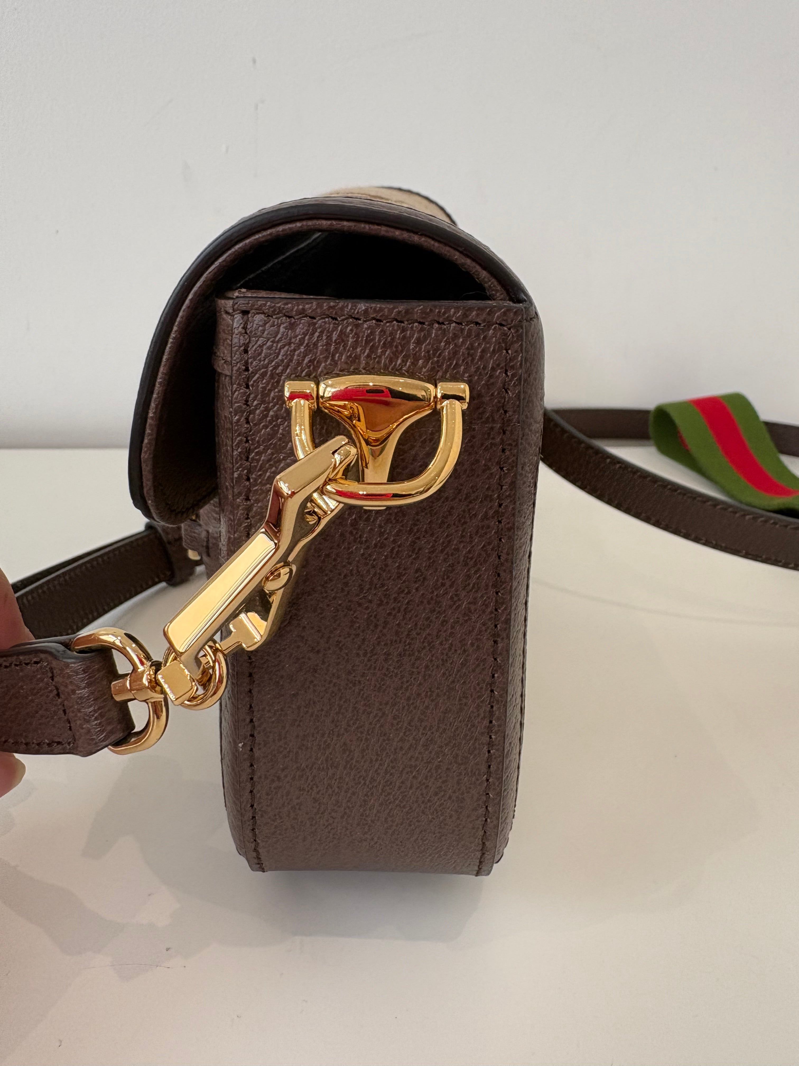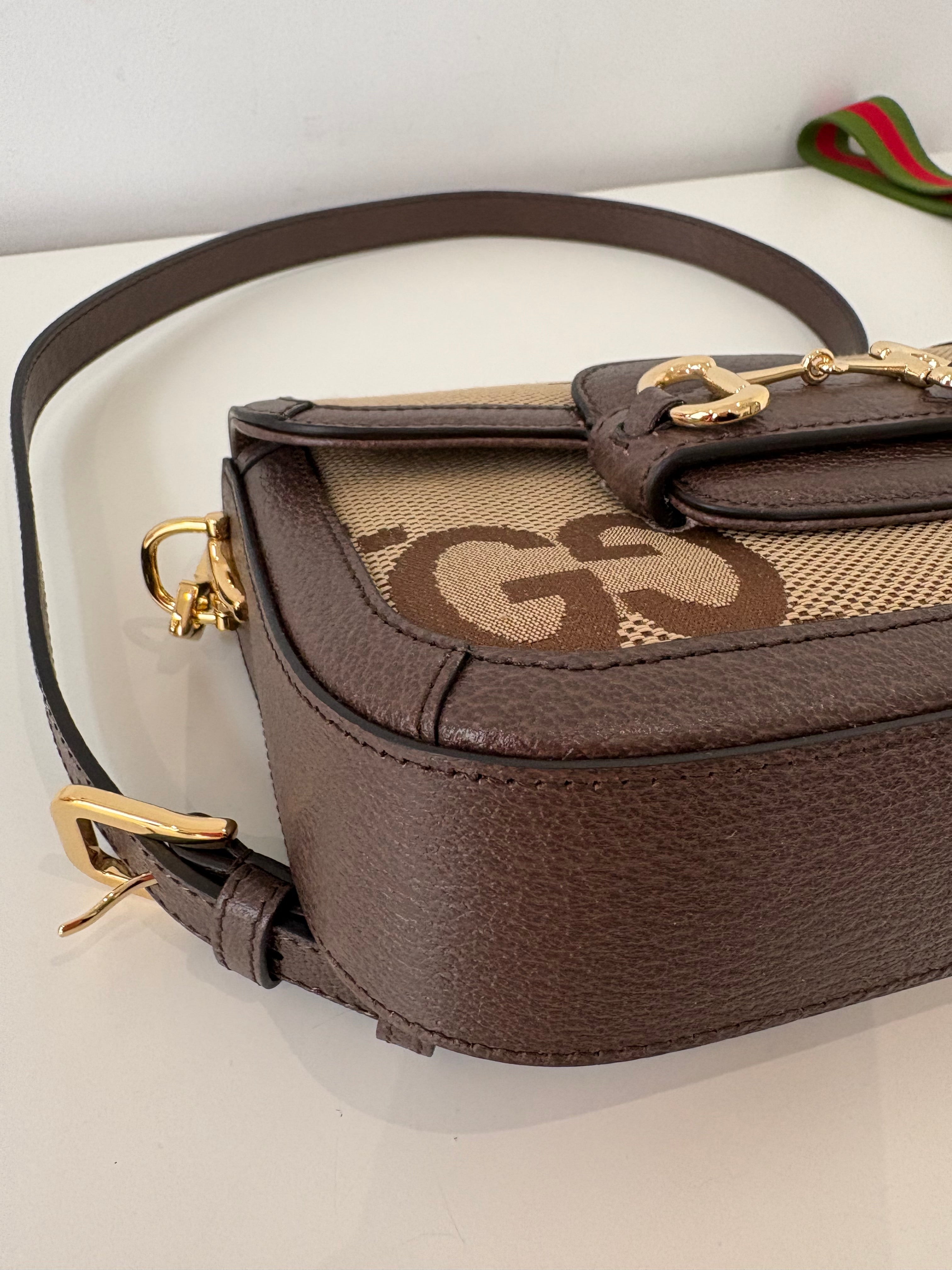 Fourni avec deux bandoulières amovibles l’une avec bandes vertes et rouges, l’autre fine en cuir tan (réglables les deux).