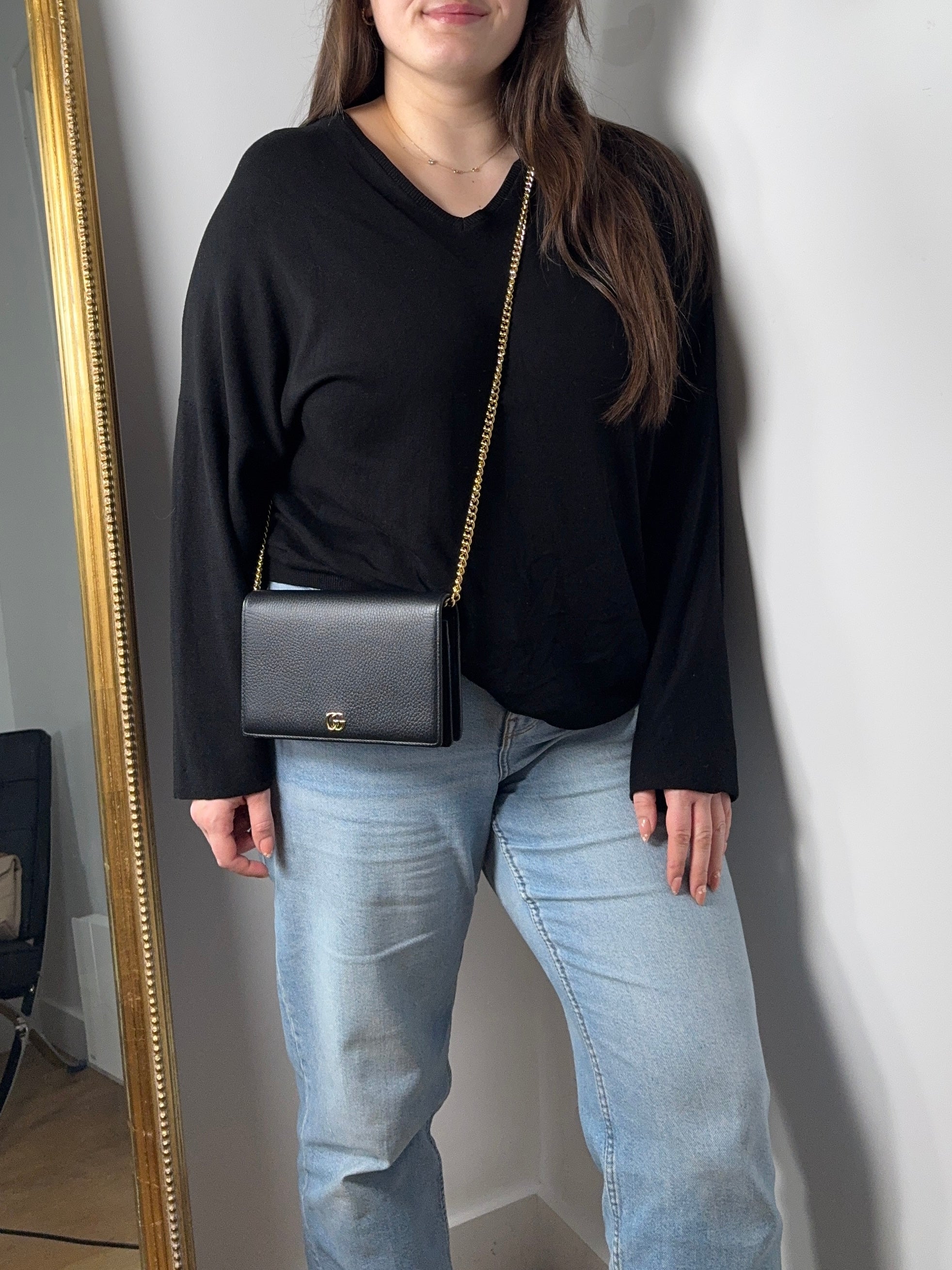 Sac Gucci Wallet on chain GG Marmont noir