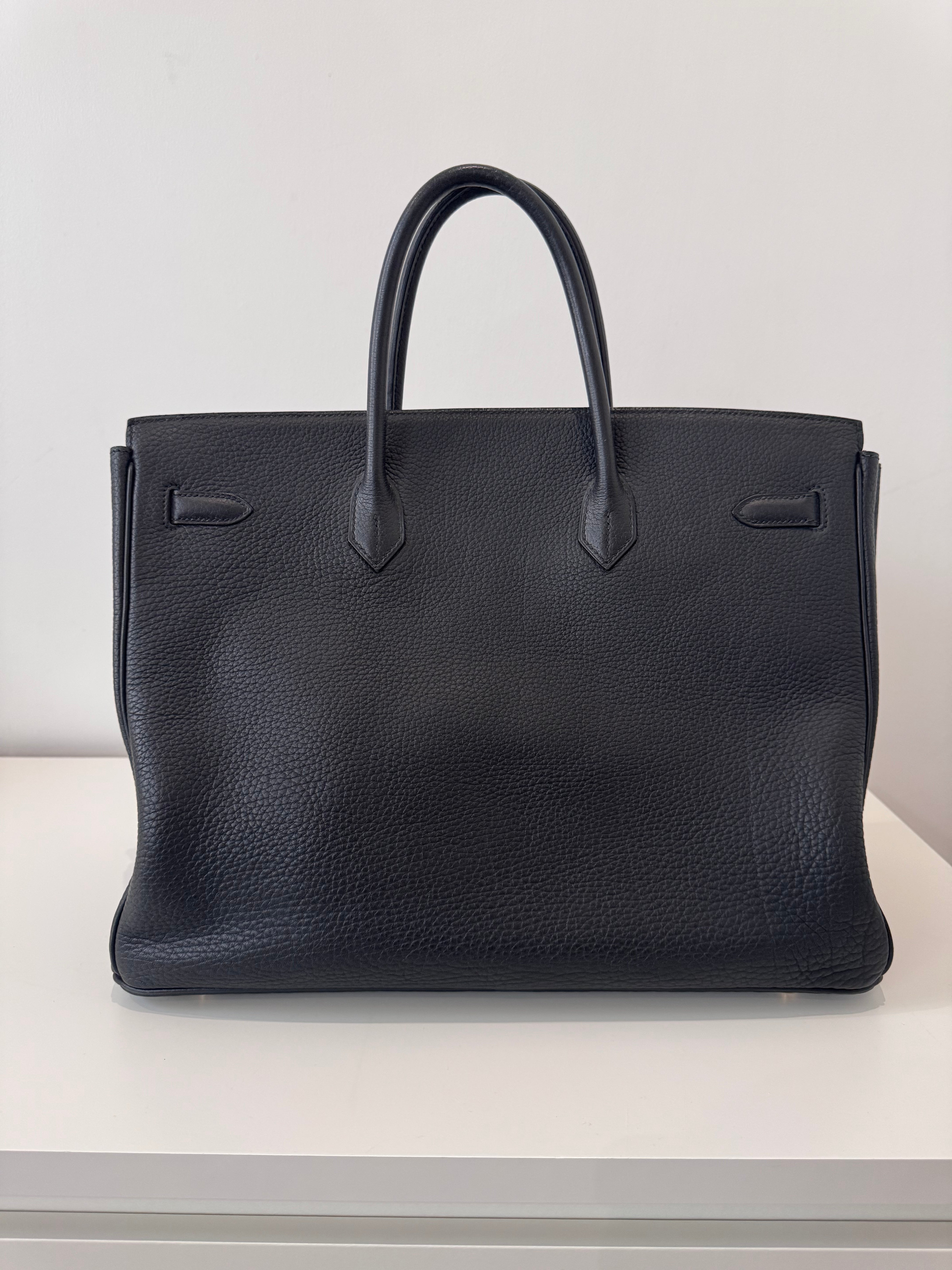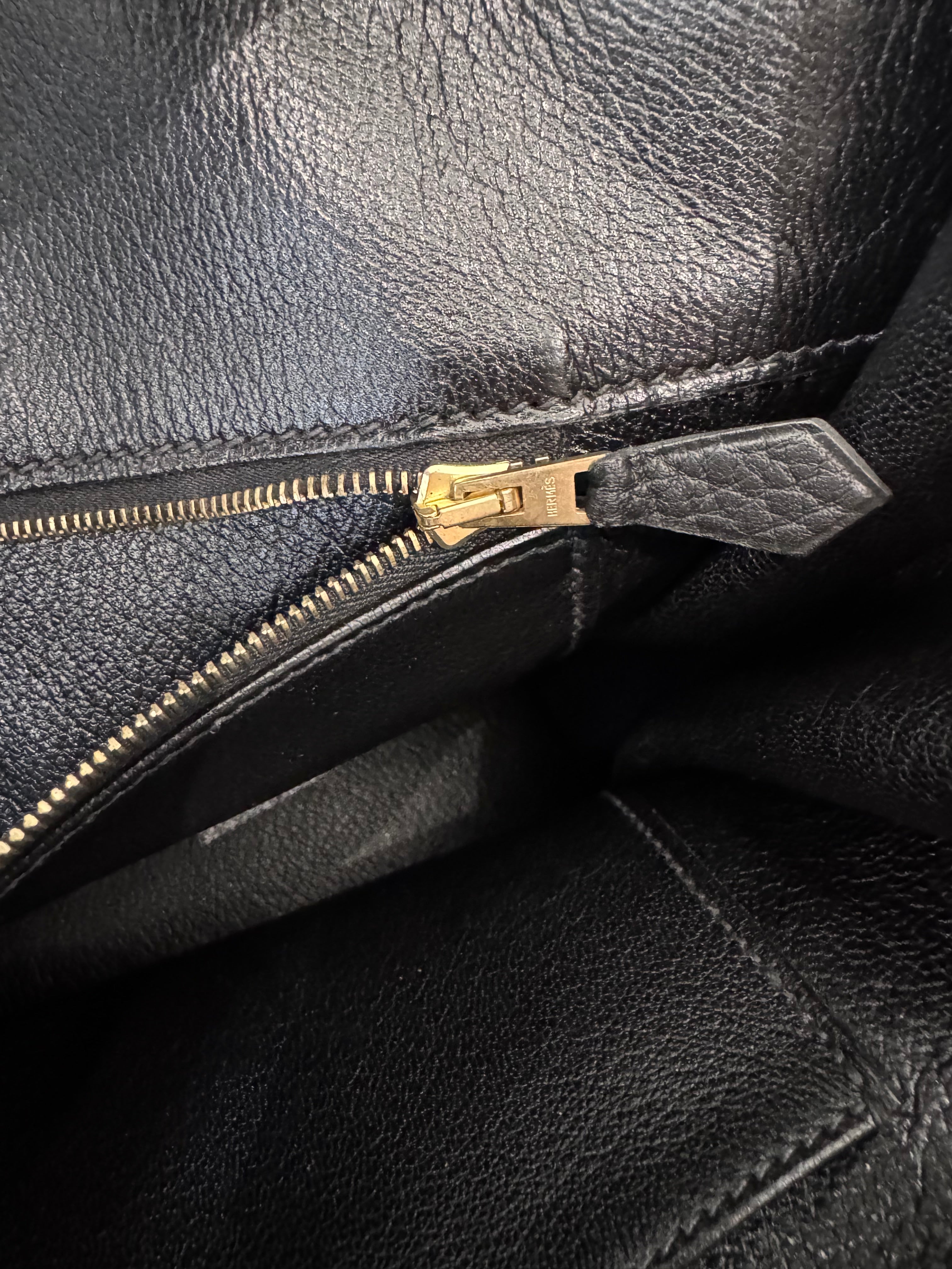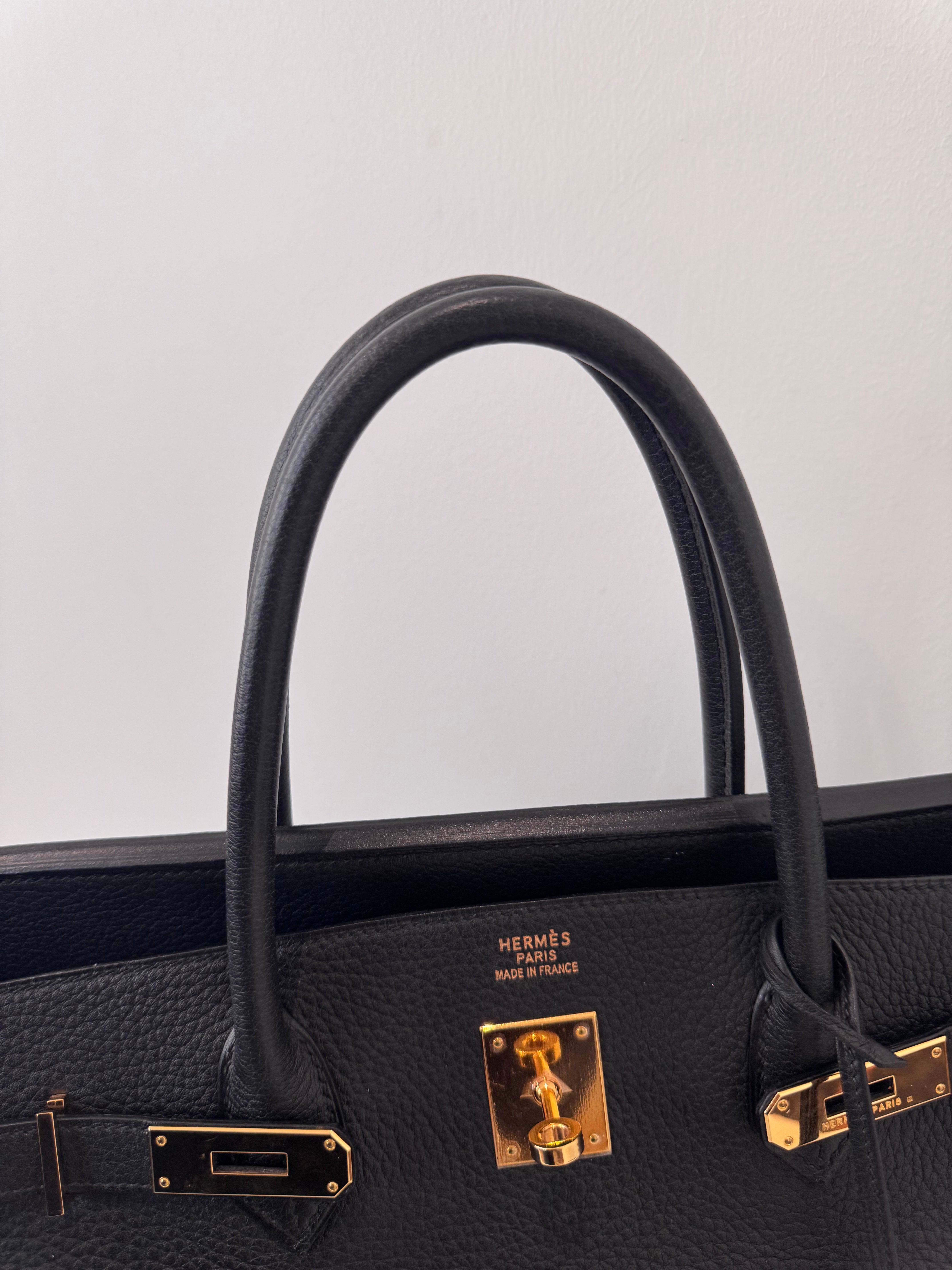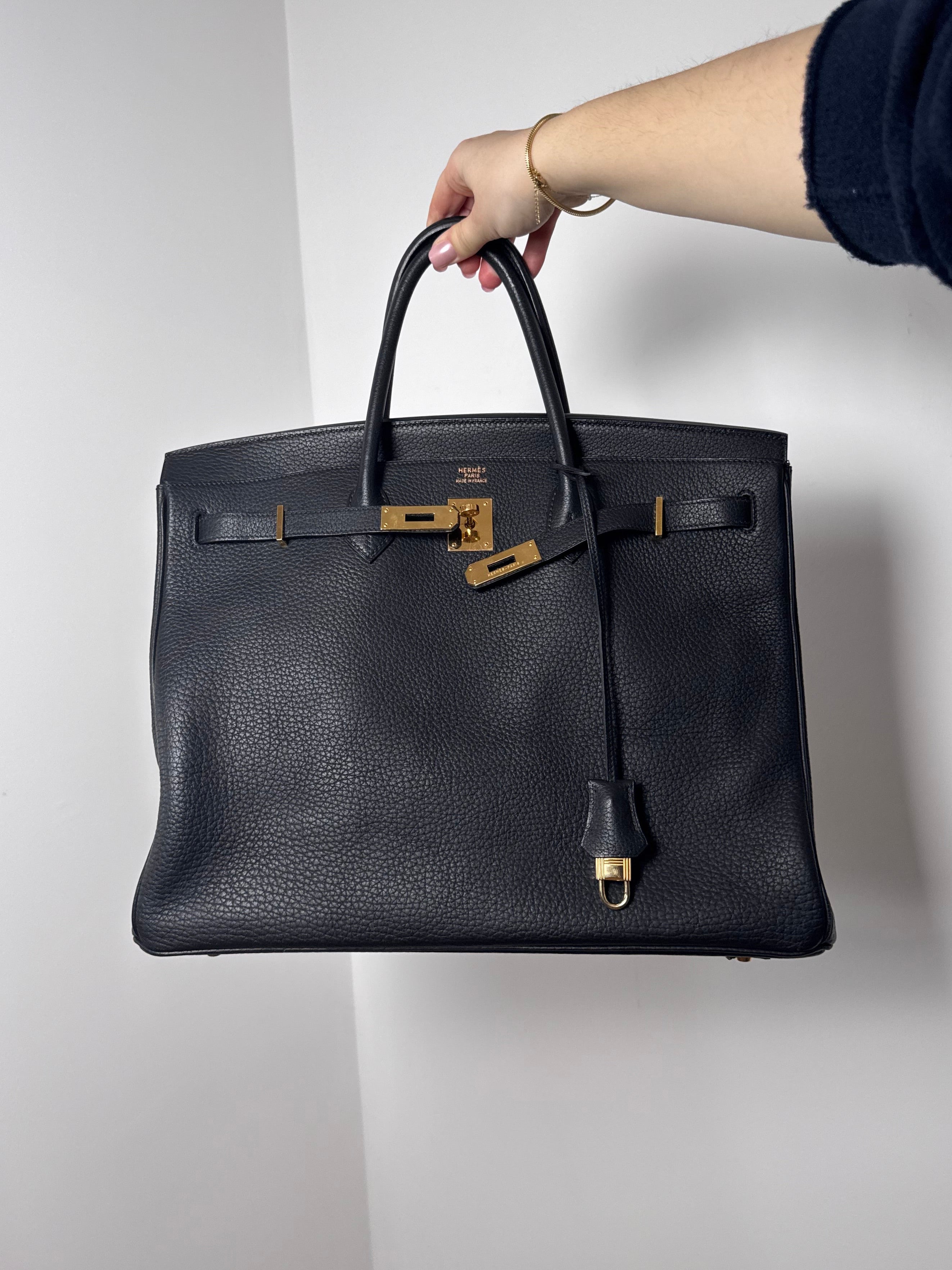 Mythique sac Hermès Birkin taille 40, en cuir Togo noir, bijouterie en métal doré, de 2003 et en très bon état général.