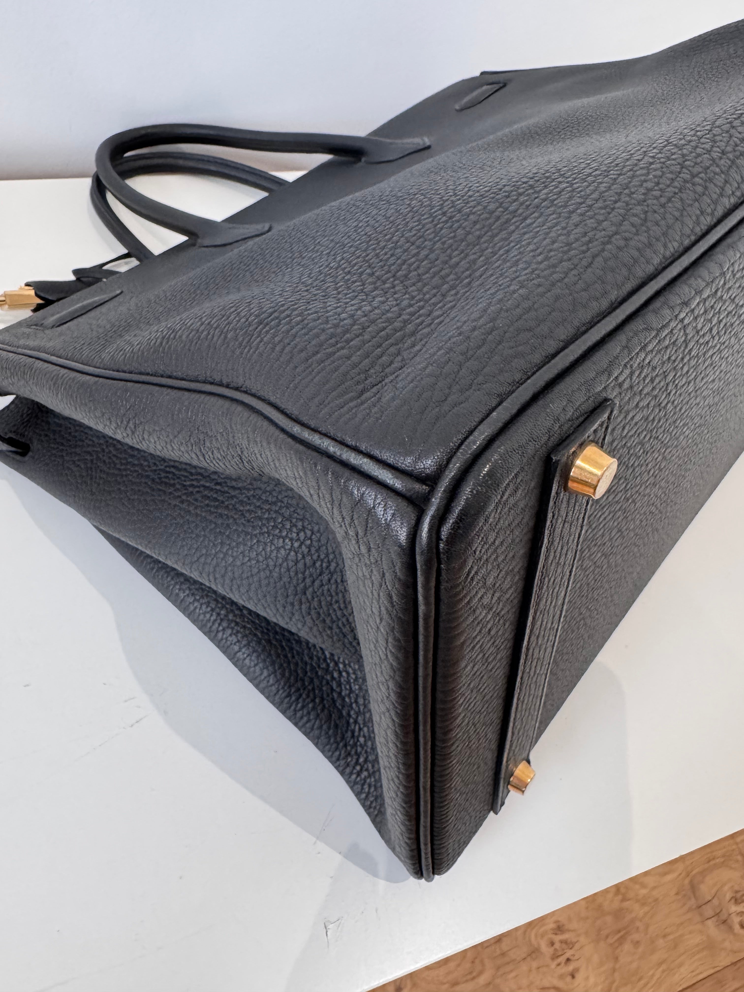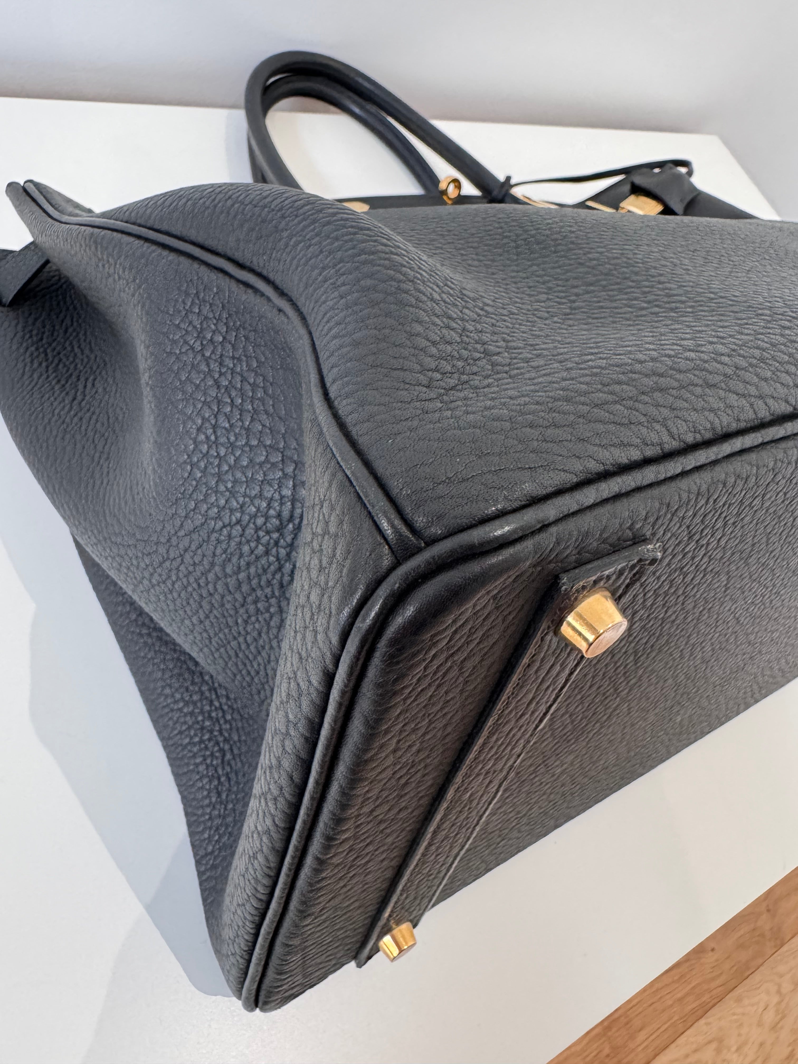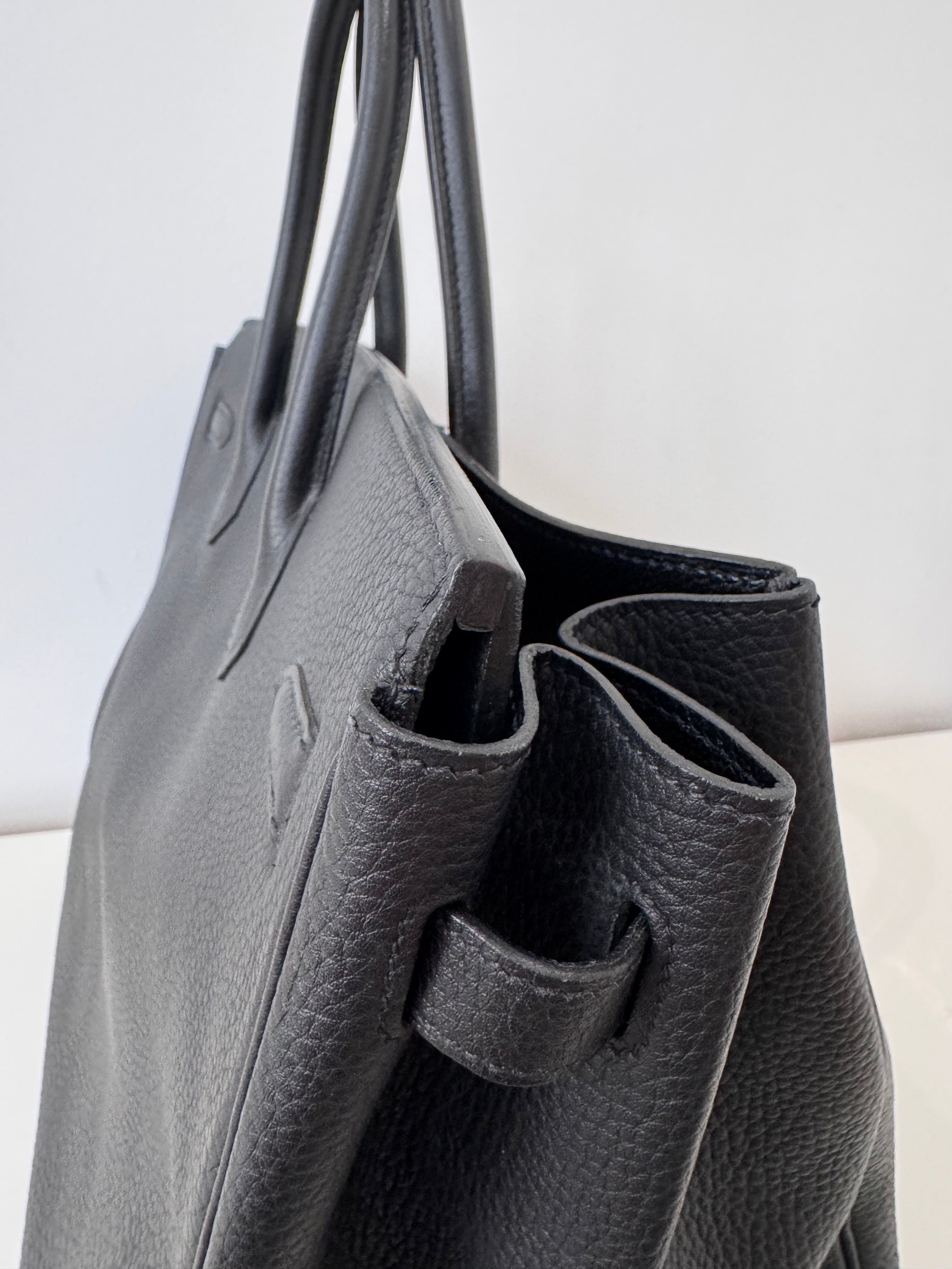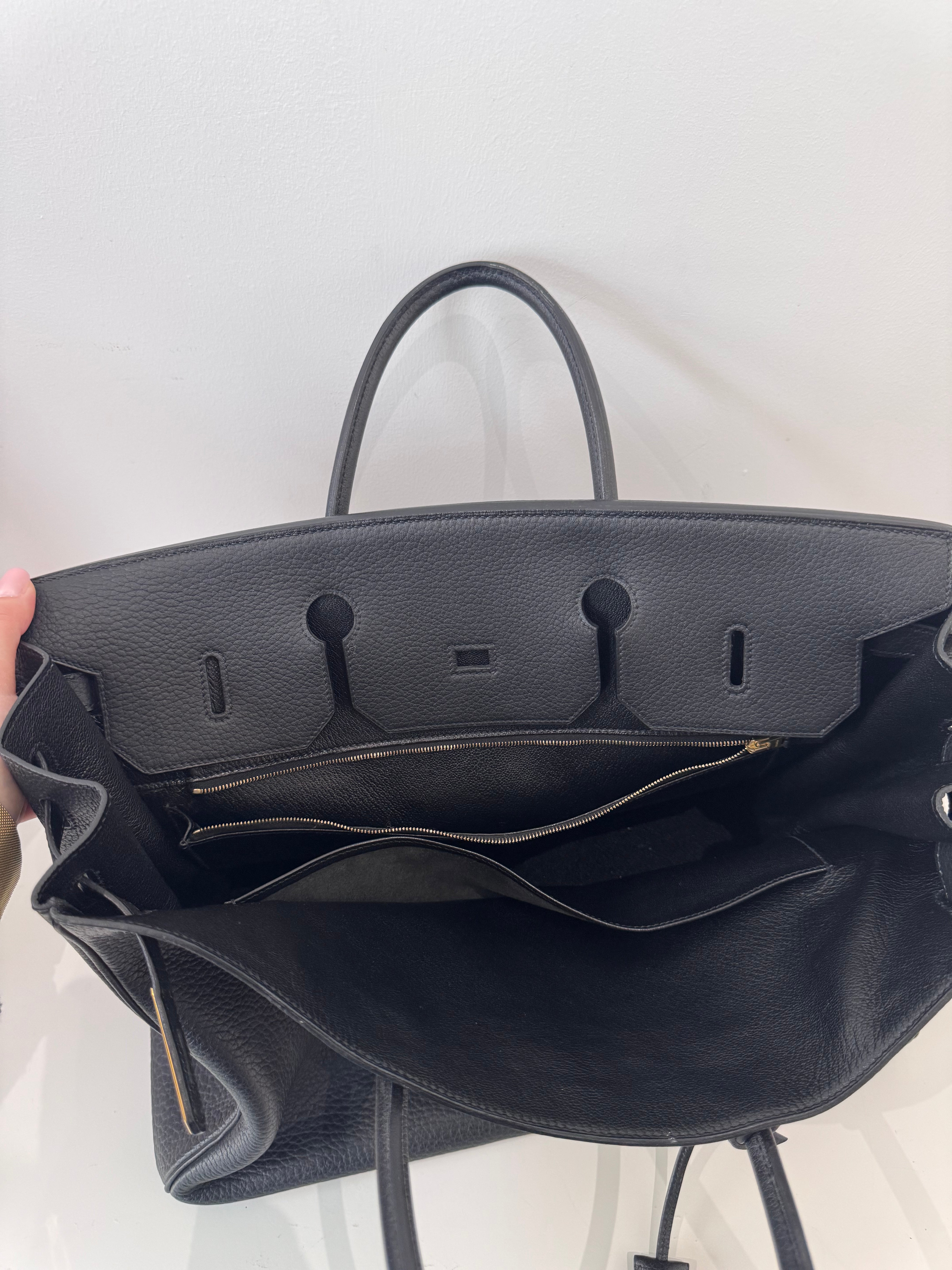 Mythique sac Hermès Birkin taille 40, en cuir Togo noir, bijouterie en métal doré, de 2003 et en très bon état général.