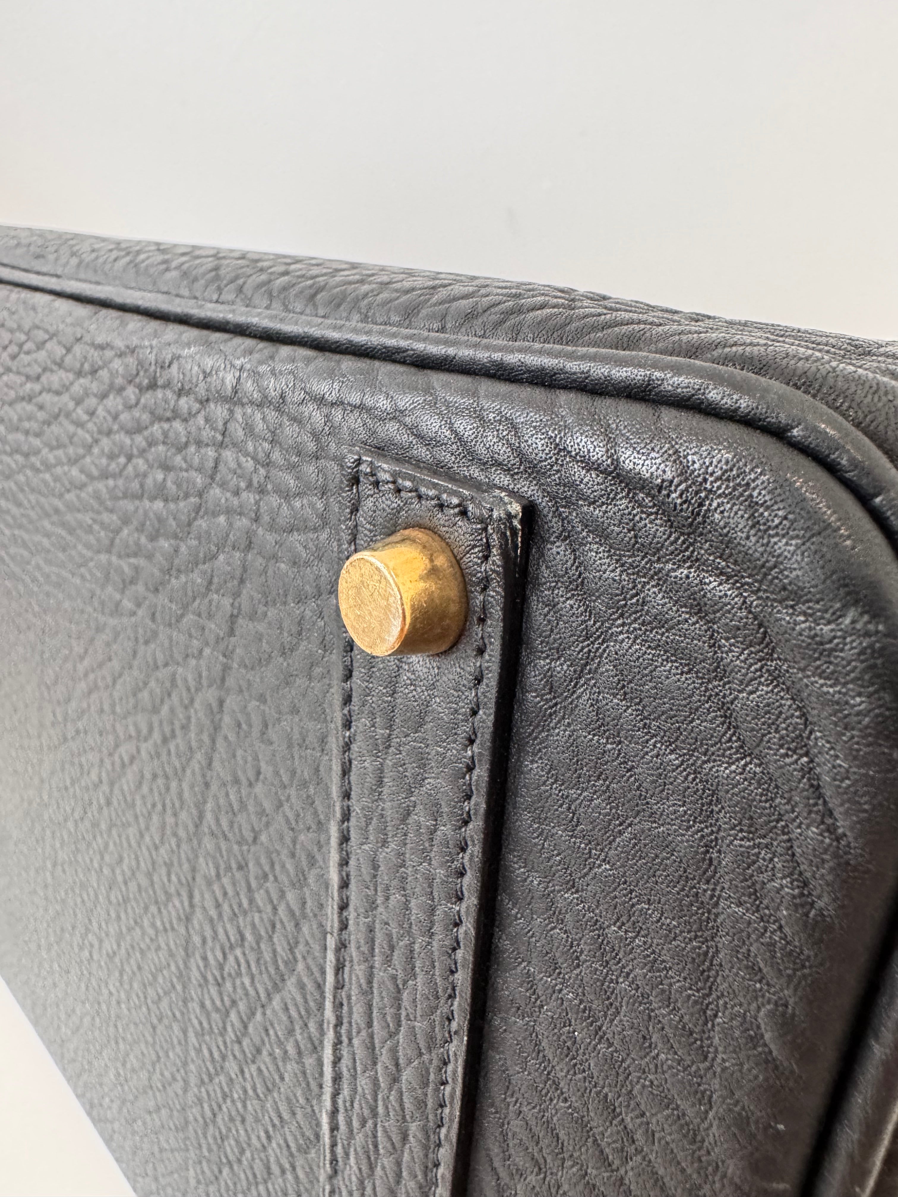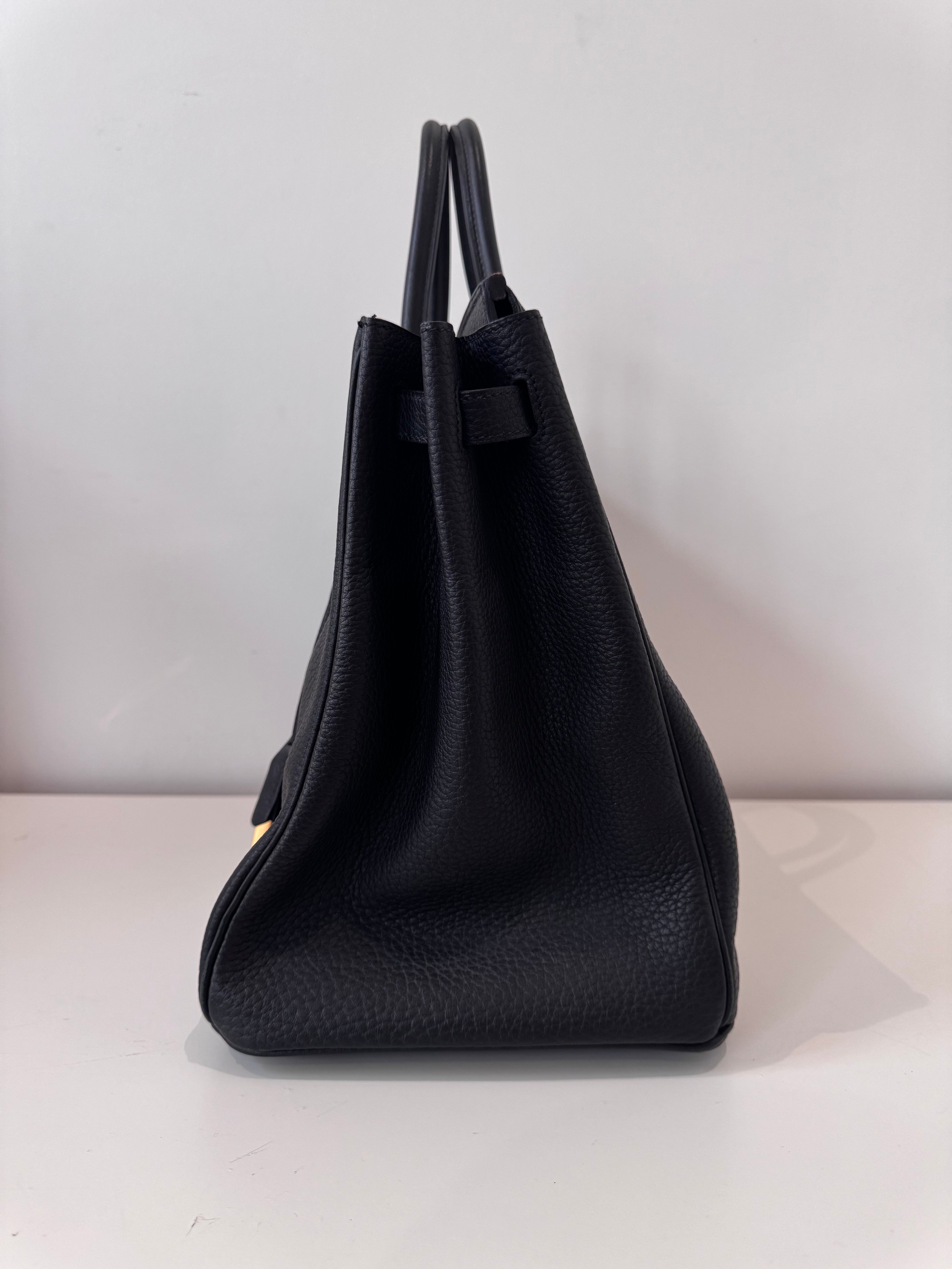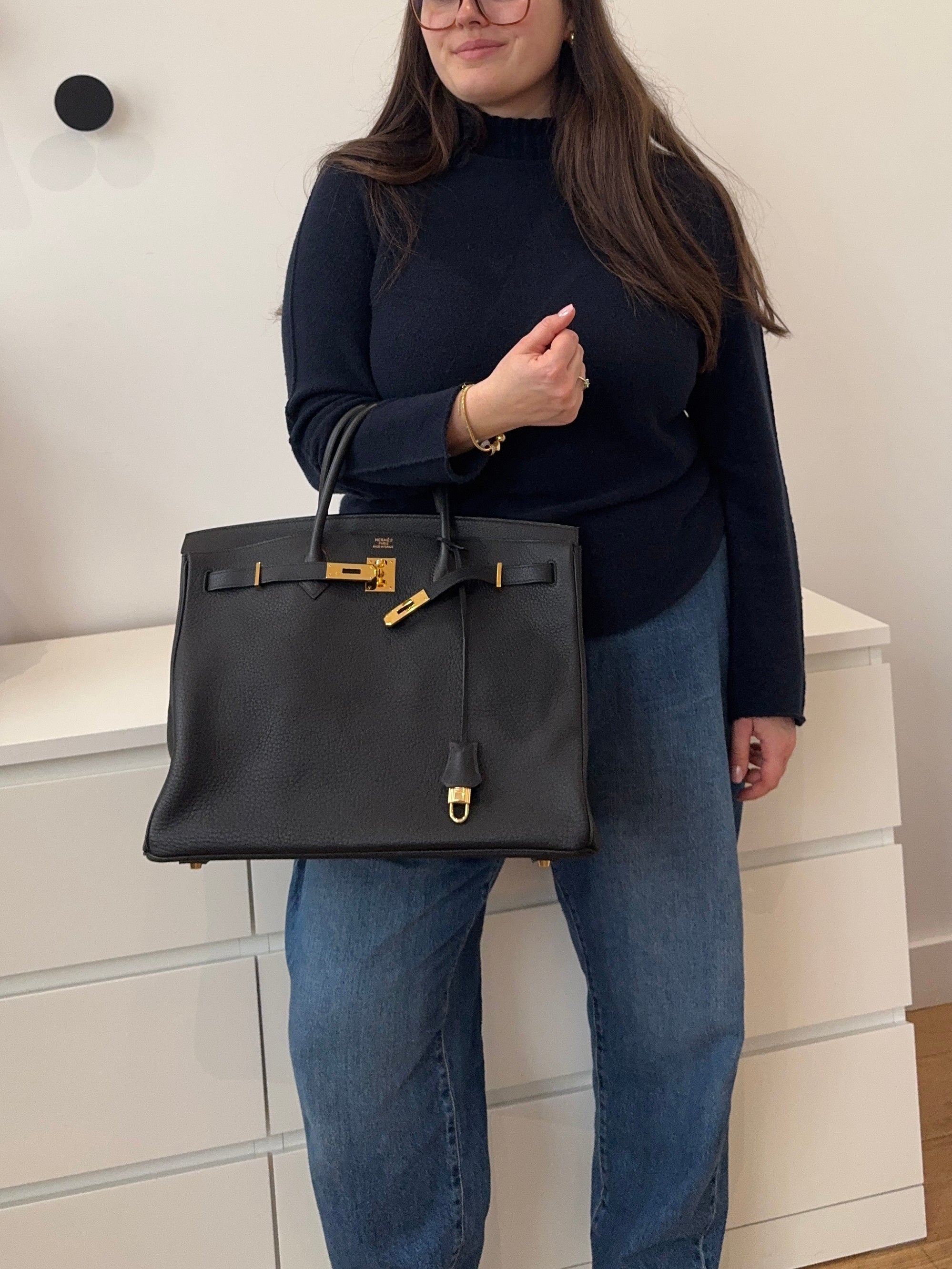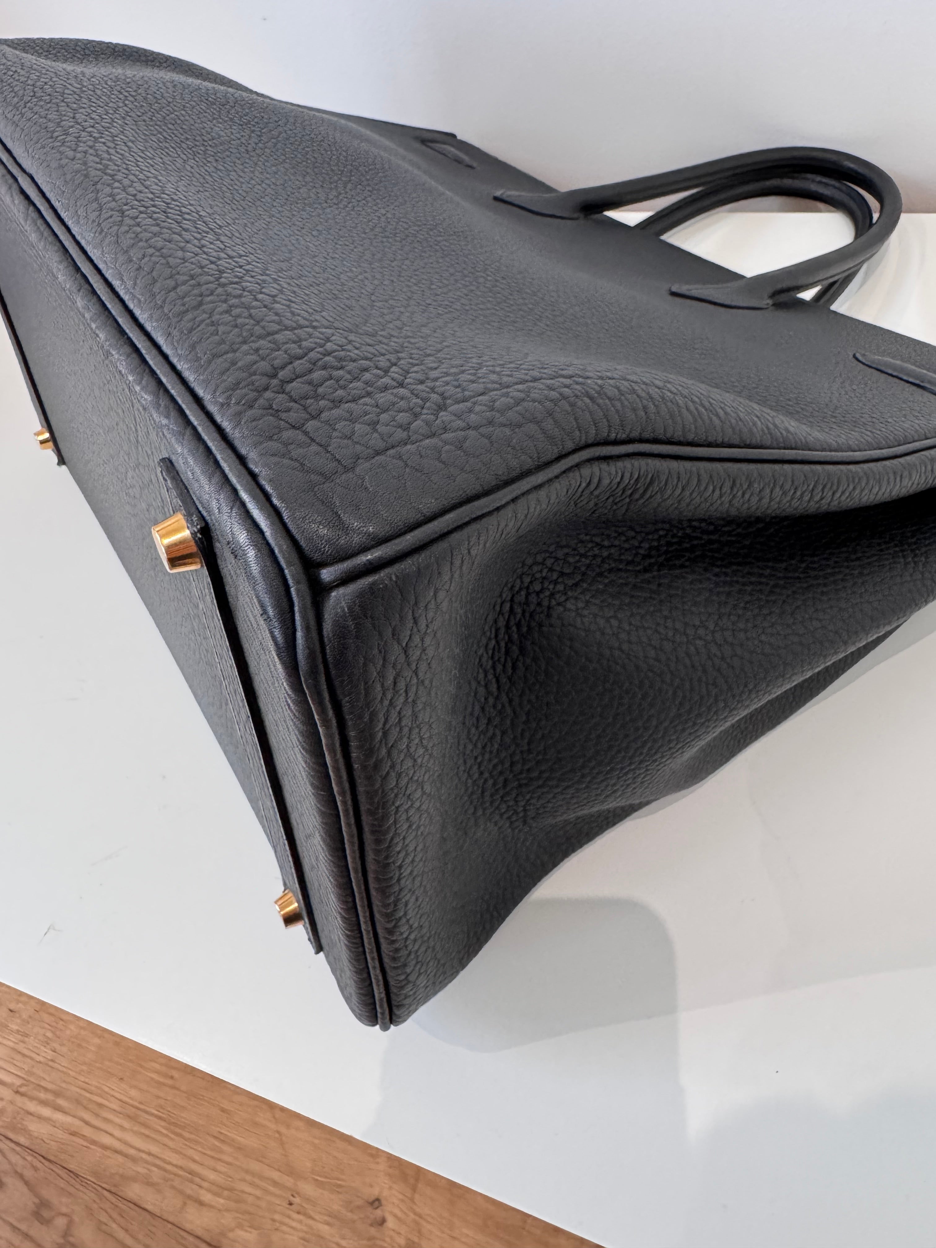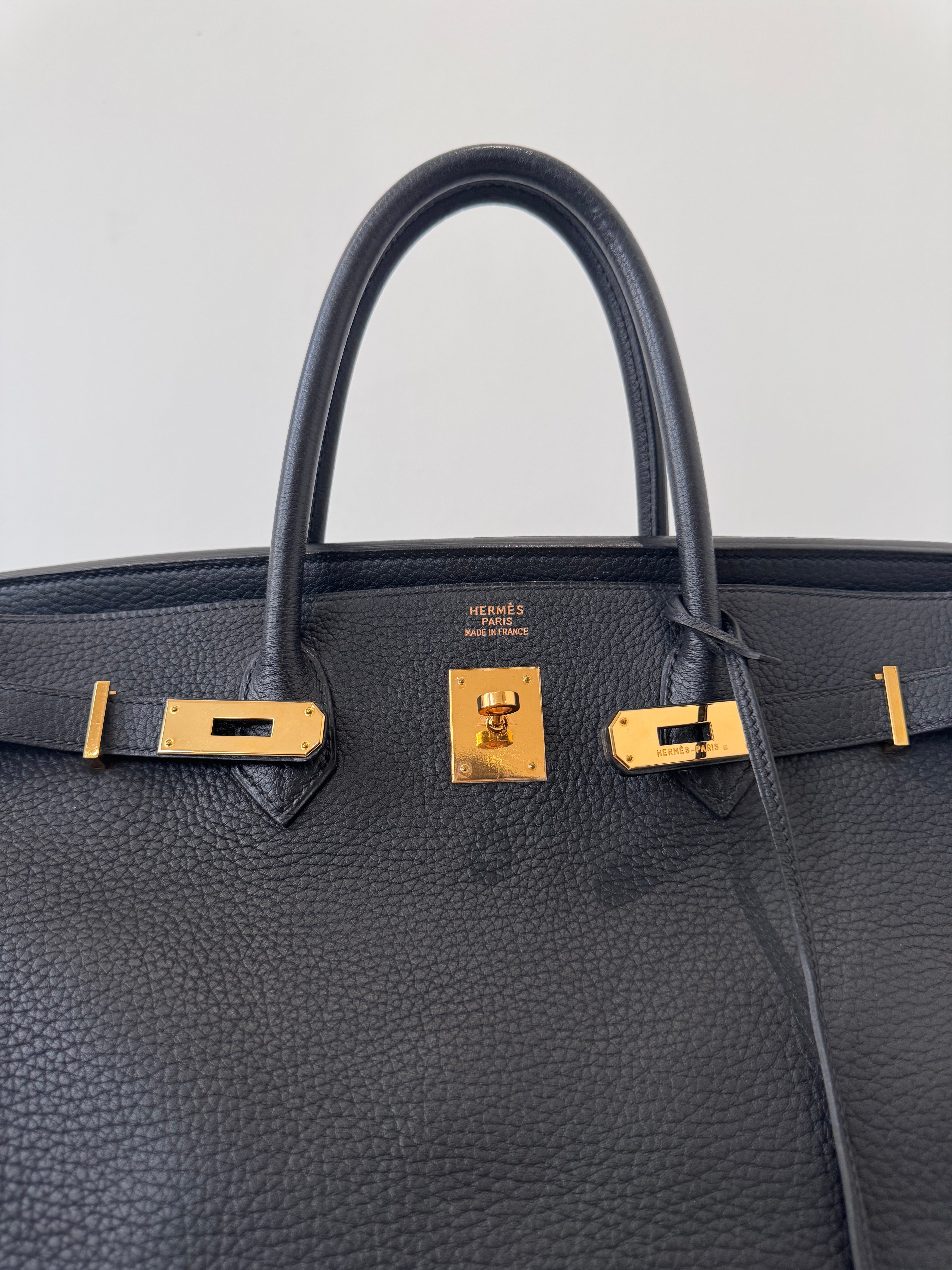 Mythique sac Hermès Birkin taille 40, en cuir Togo noir, bijouterie en métal doré, de 2003 et en très bon état général.