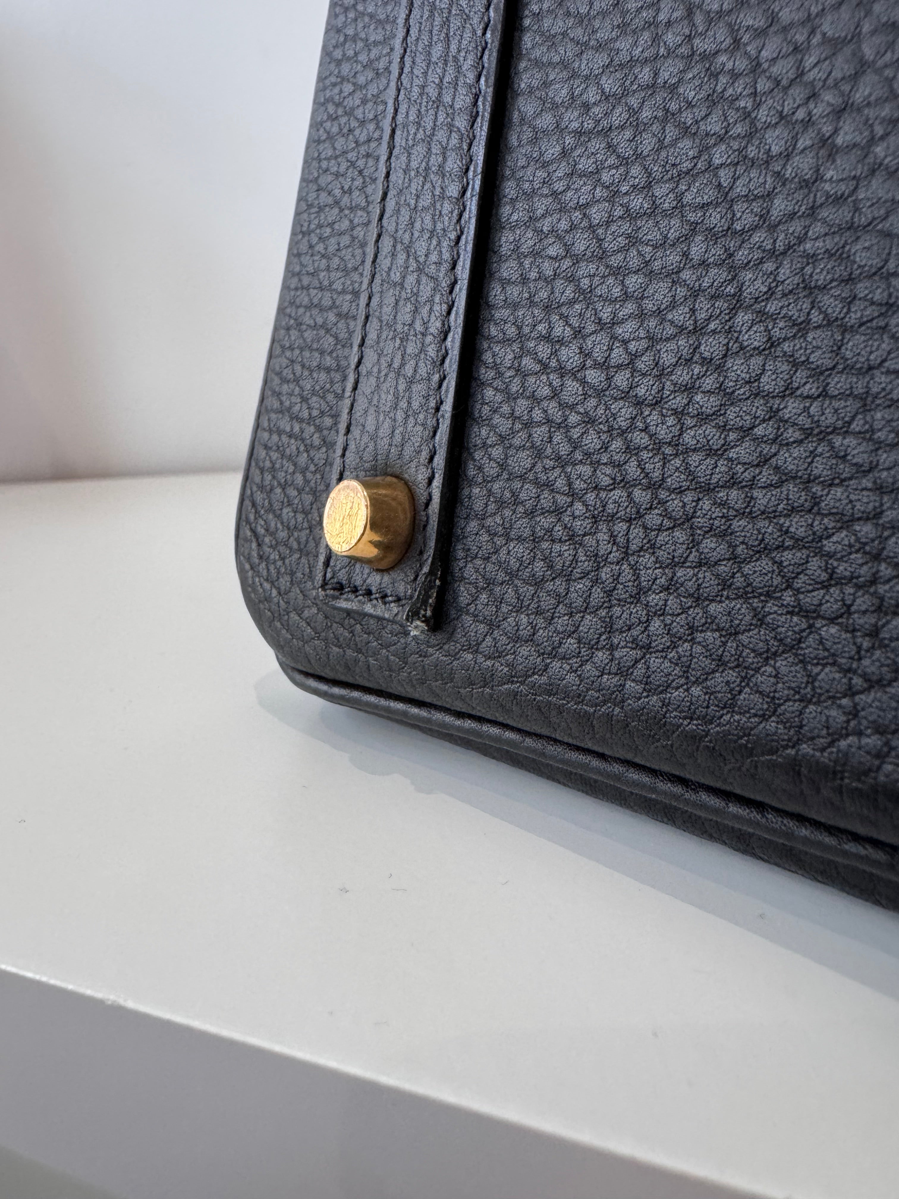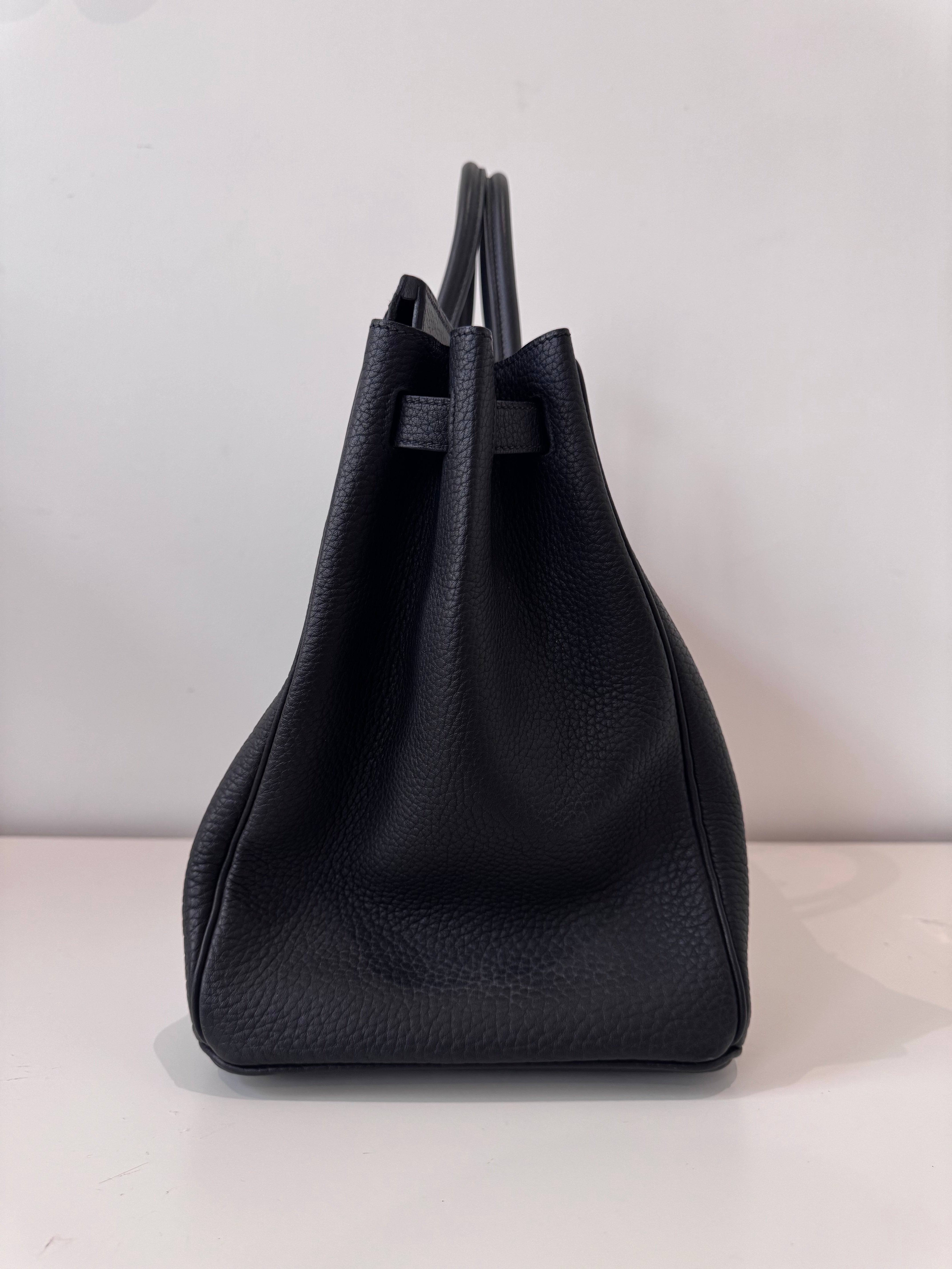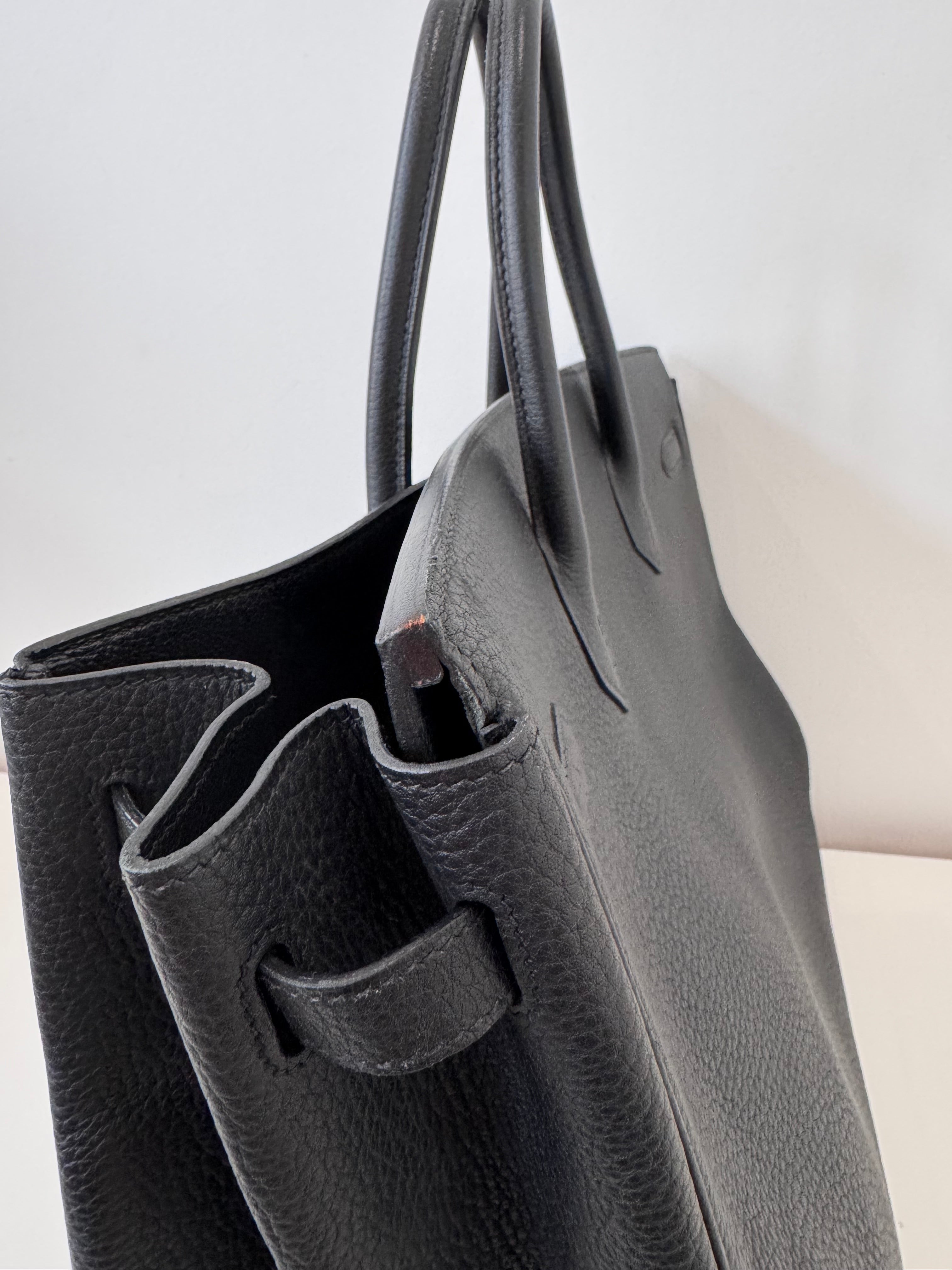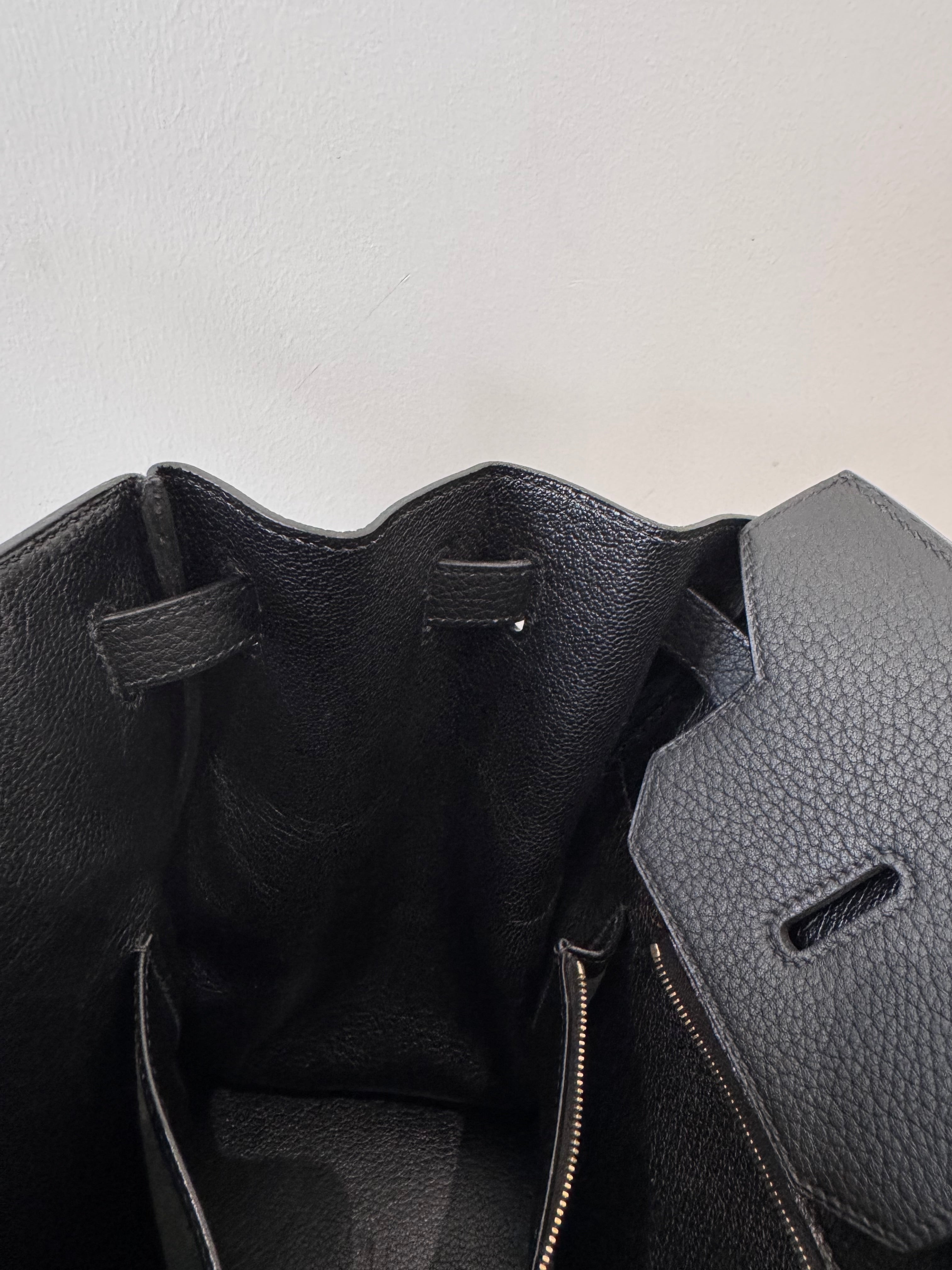 Mythique sac Hermès Birkin taille 40, en cuir Togo noir, bijouterie en métal doré, de 2003 et en très bon état général.