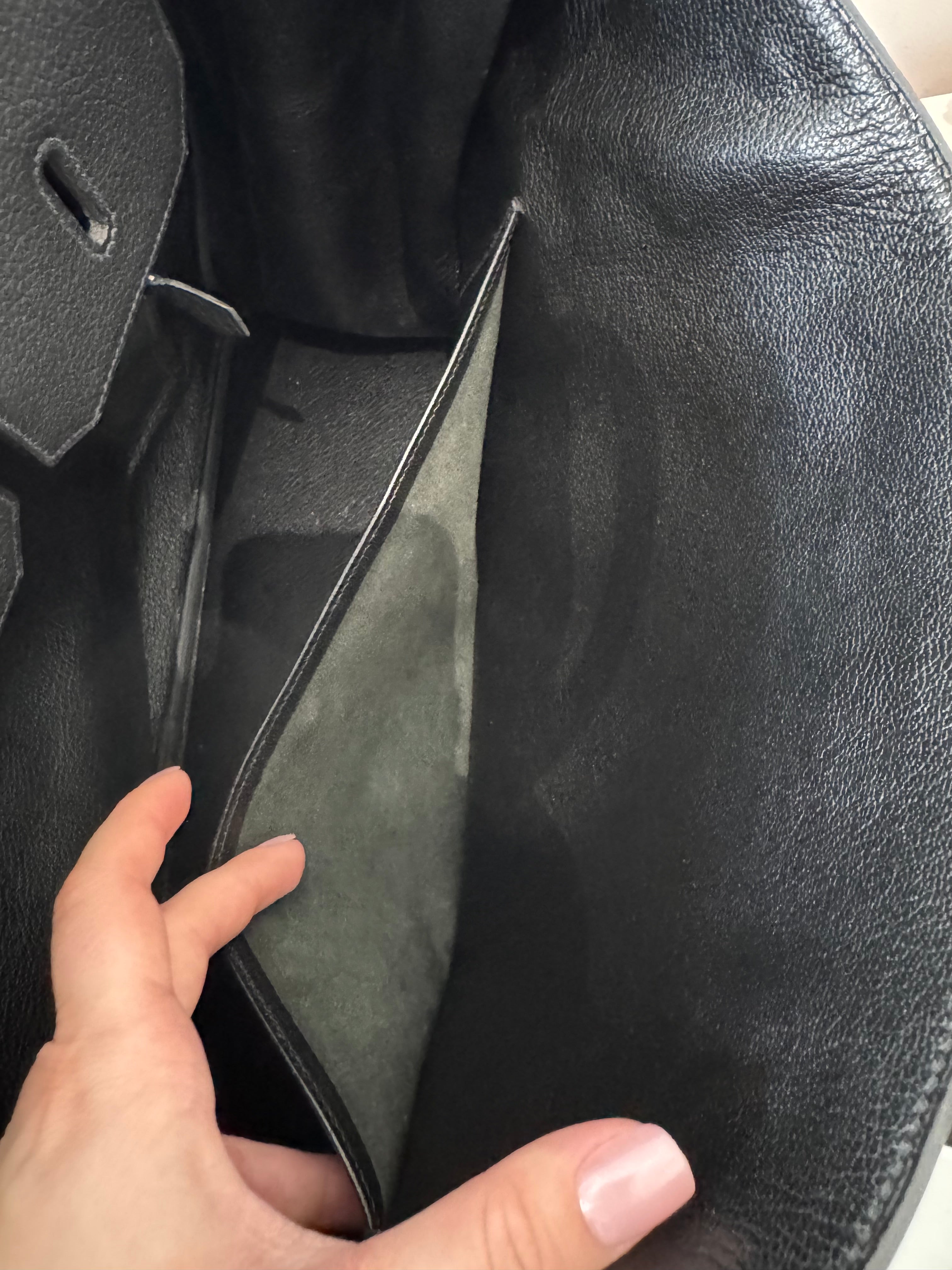 Intérieur noir en très bon état, quelques traces très légères au fond du sac. (Photos)