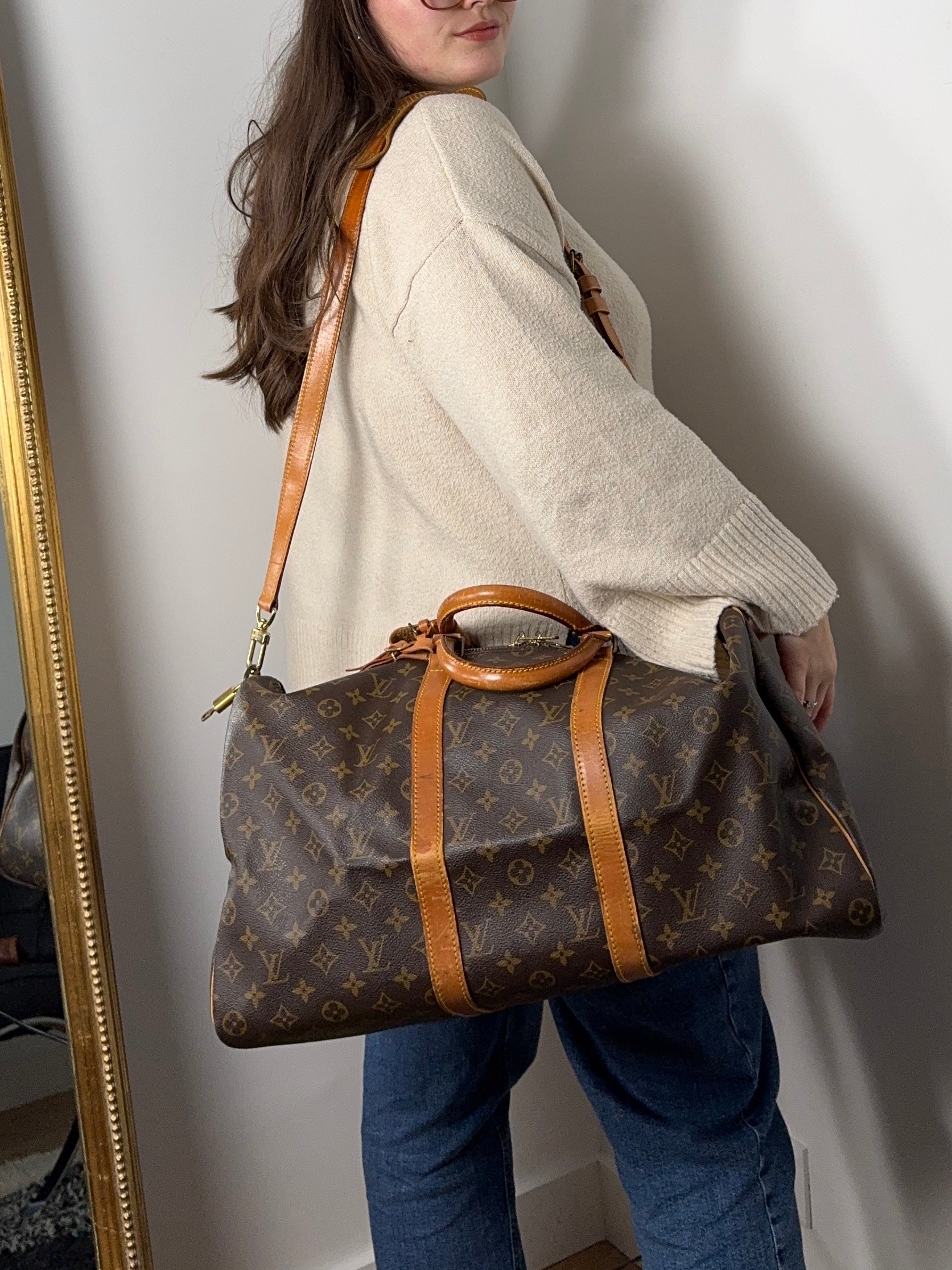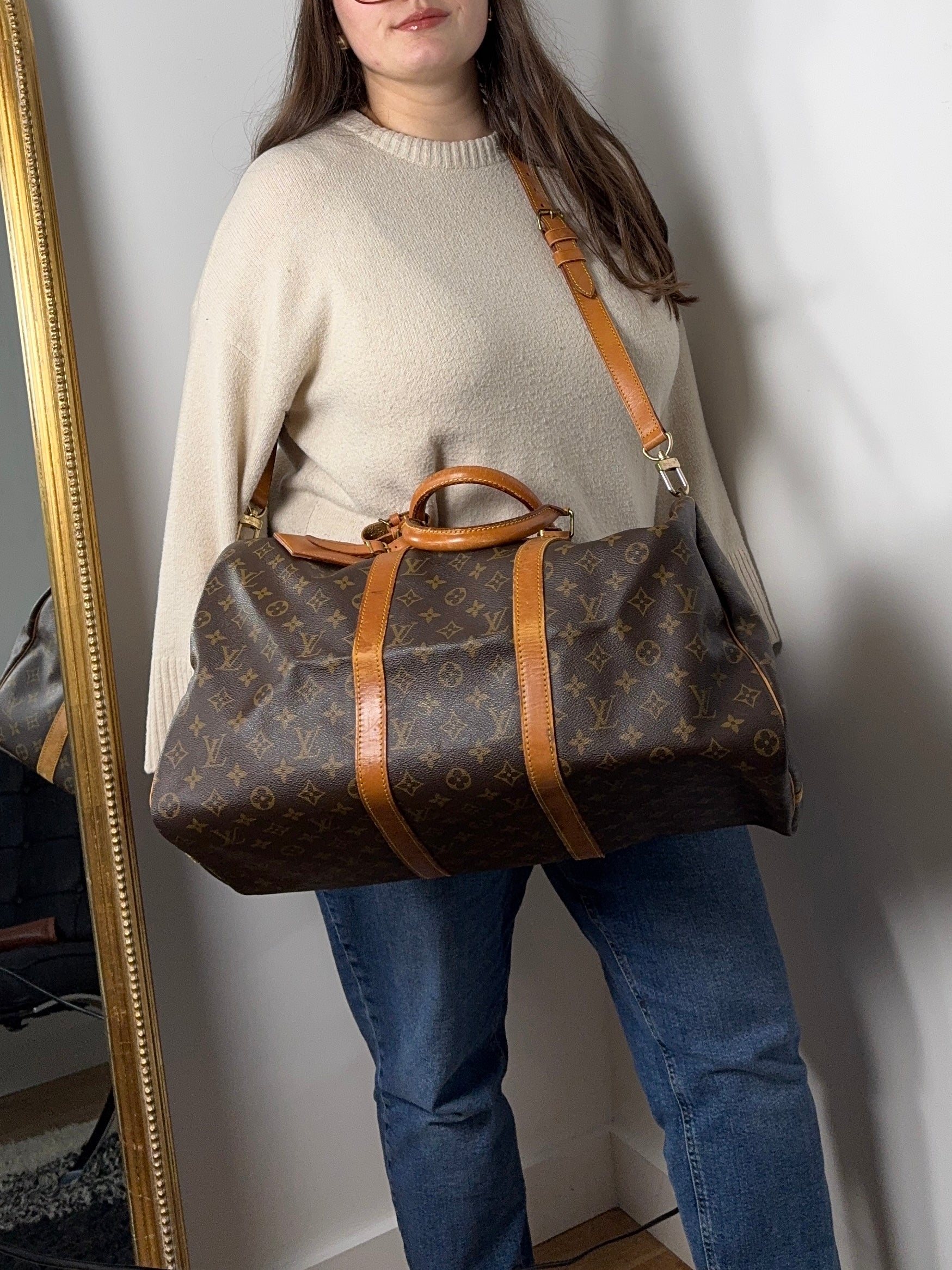 Présence des clefs, du cadenas, du porte étiquette et de la bandoulière permettant le porté main, épaule ou crossbody.