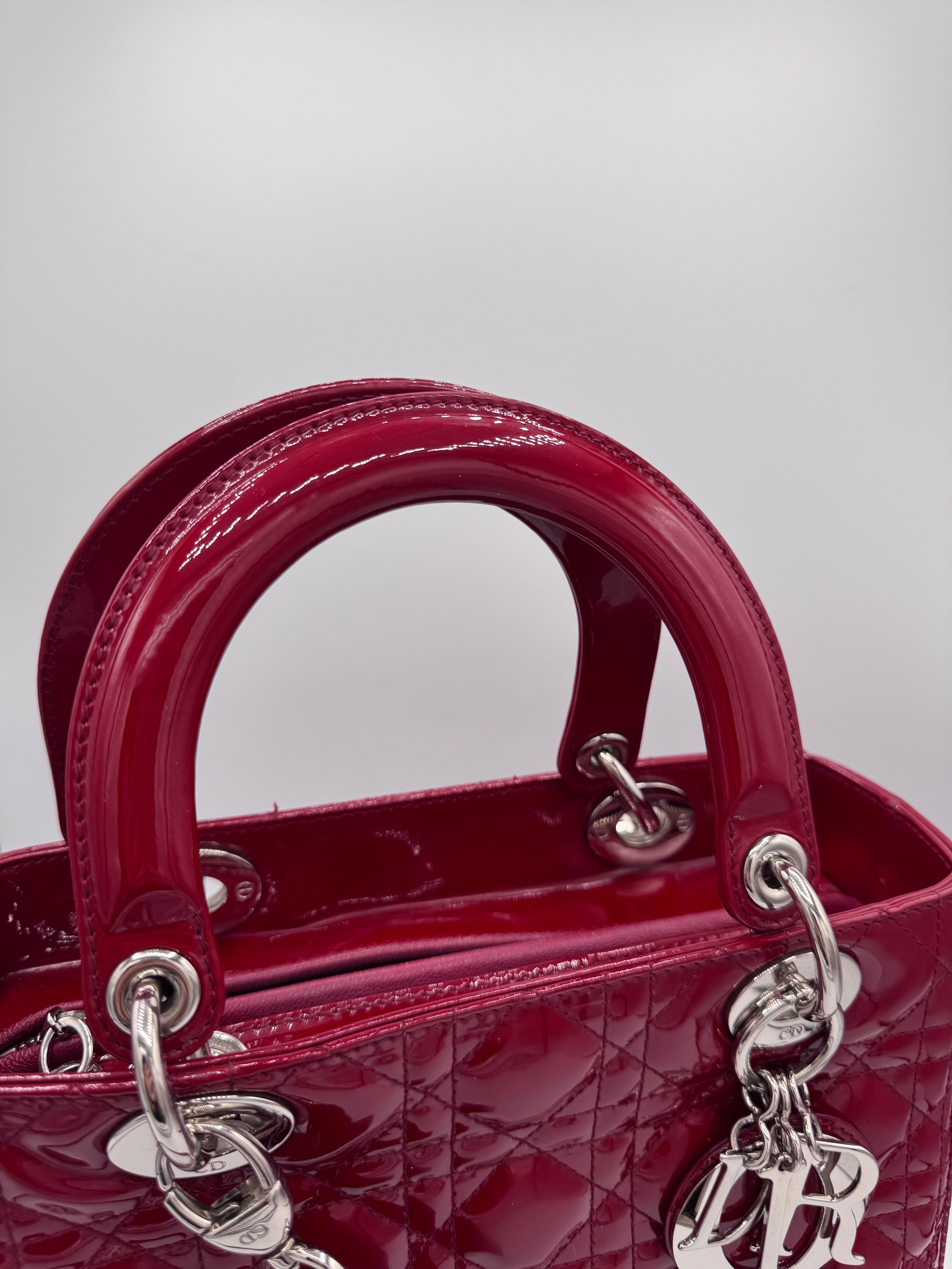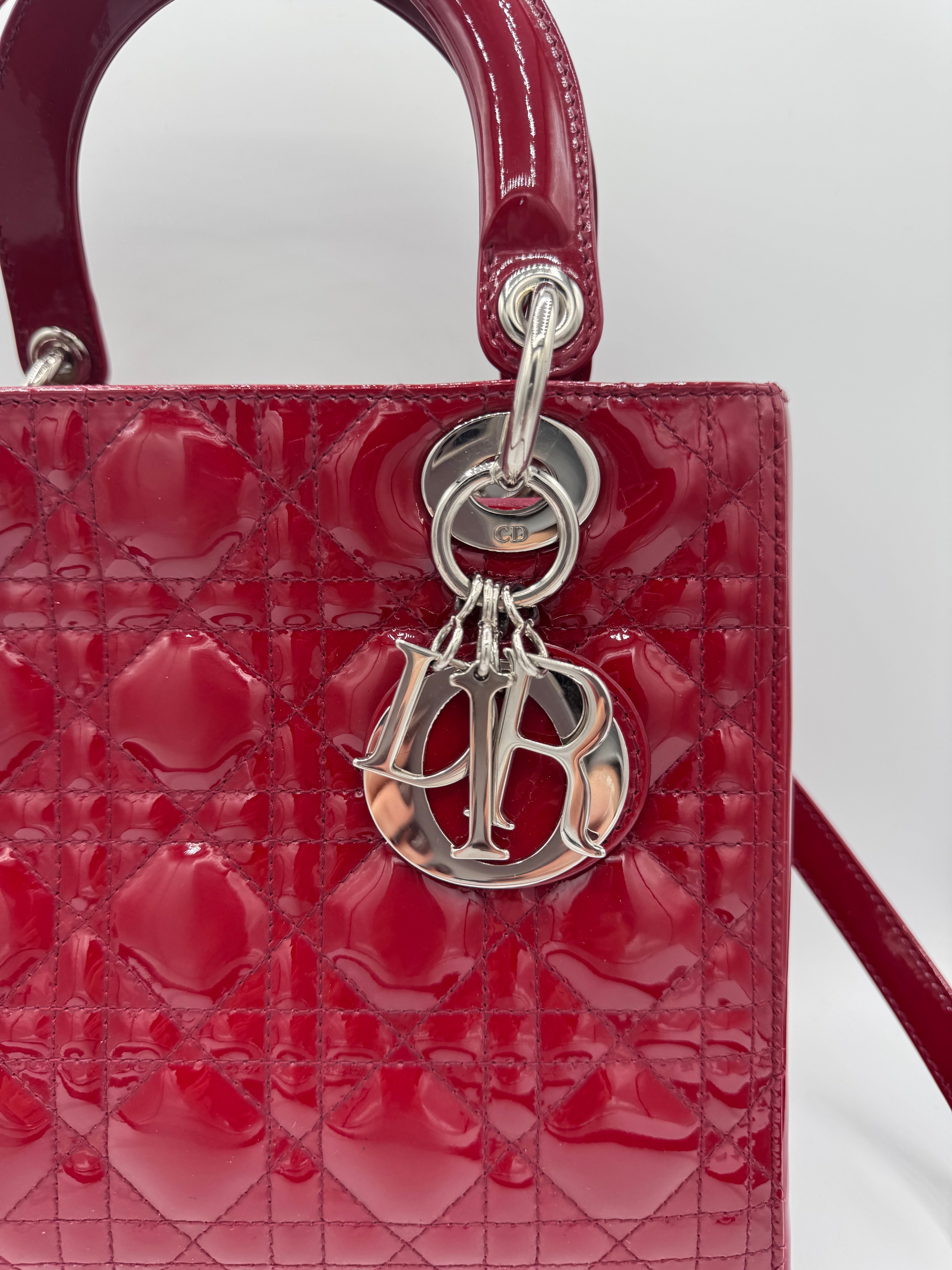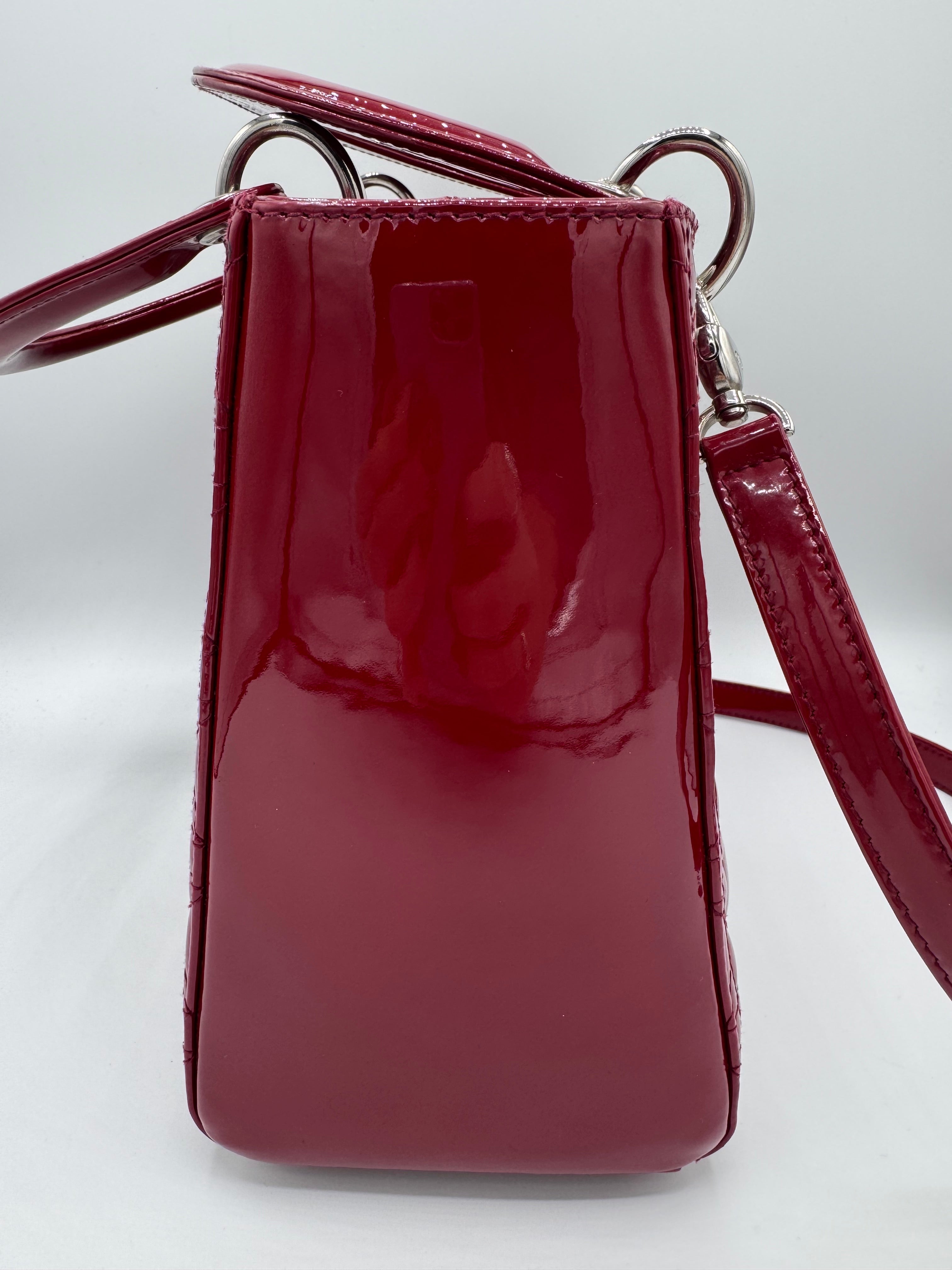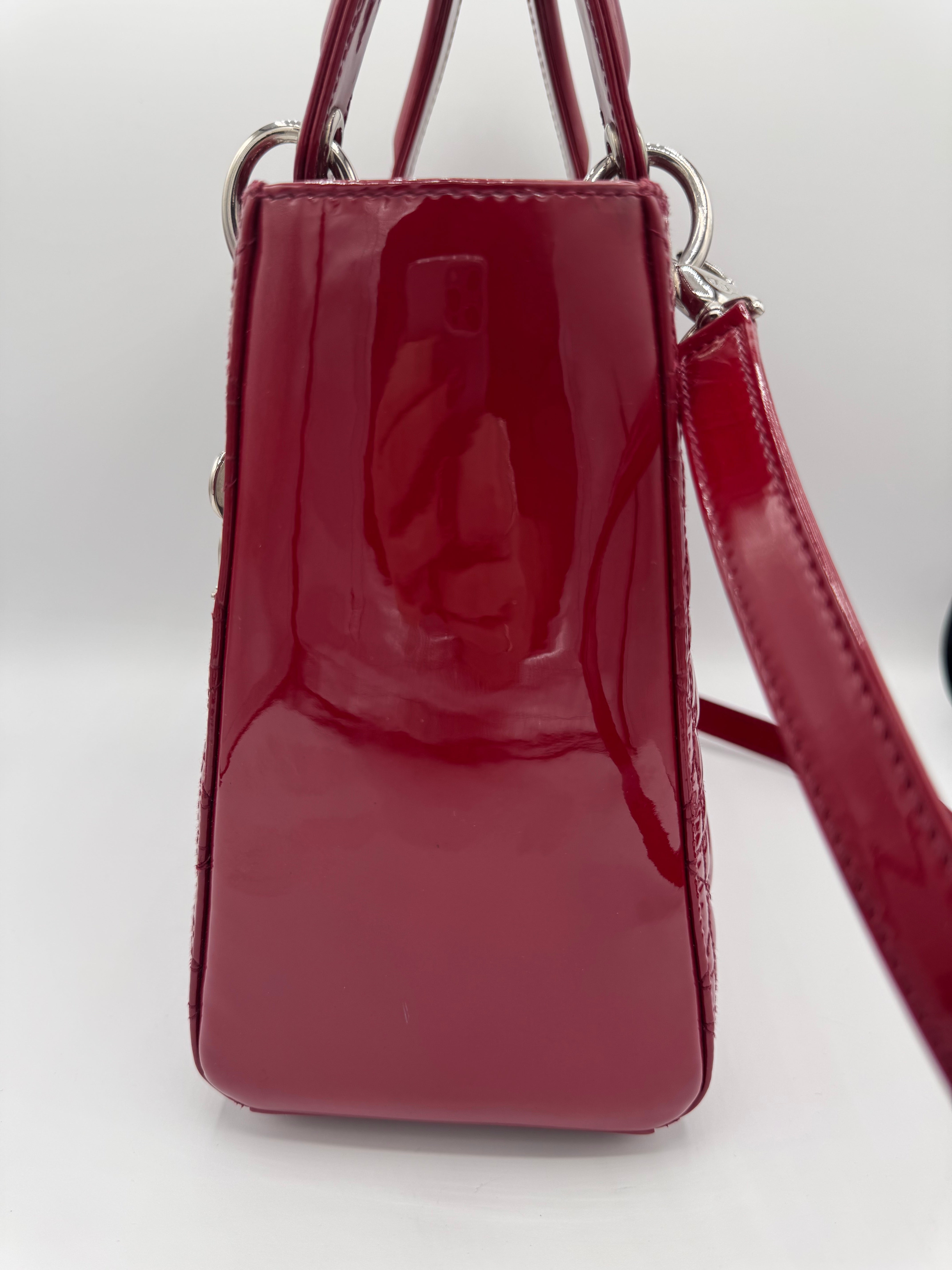 État excellent pour ce Lady Dior Médium en cuir vernis.