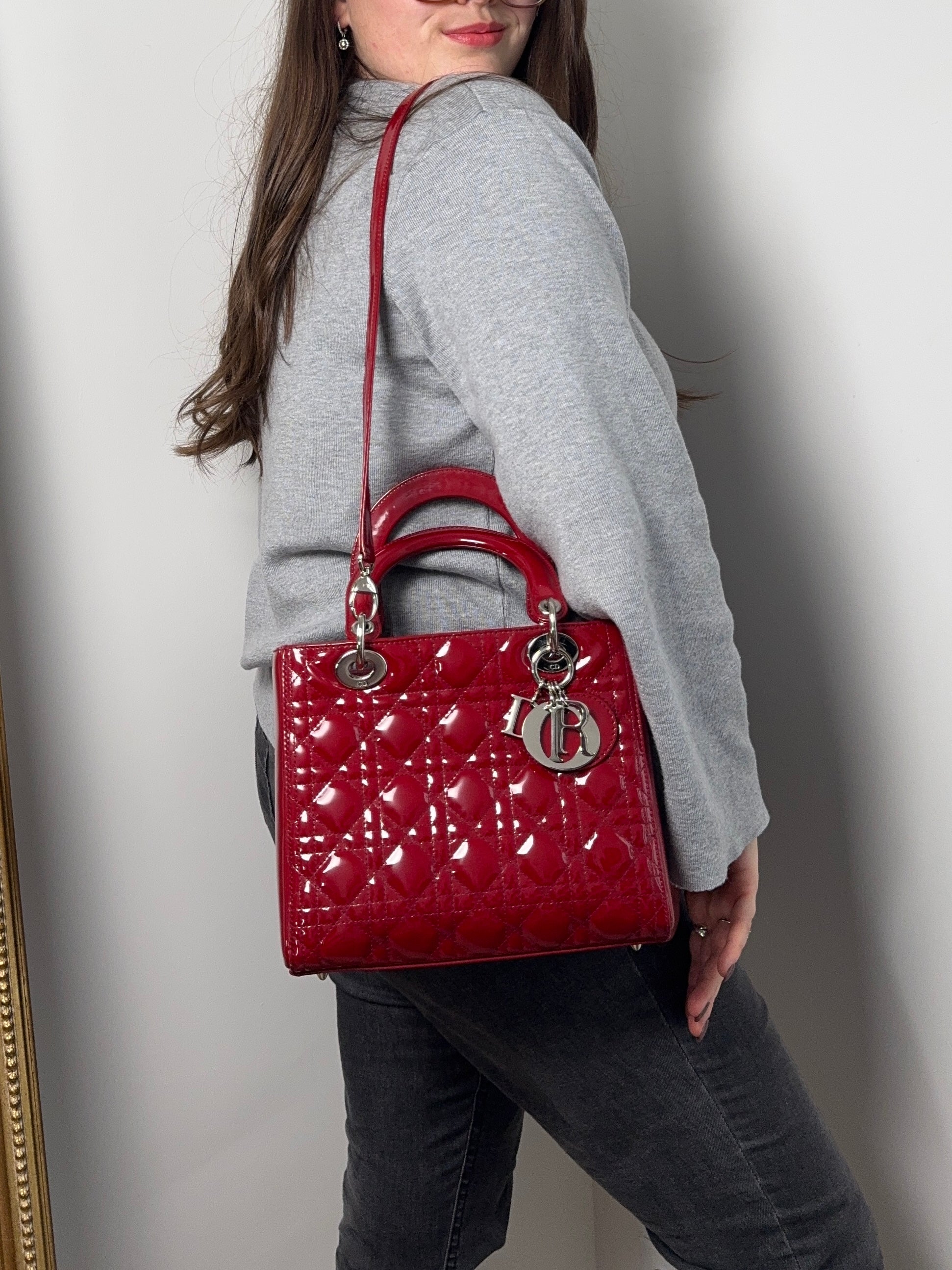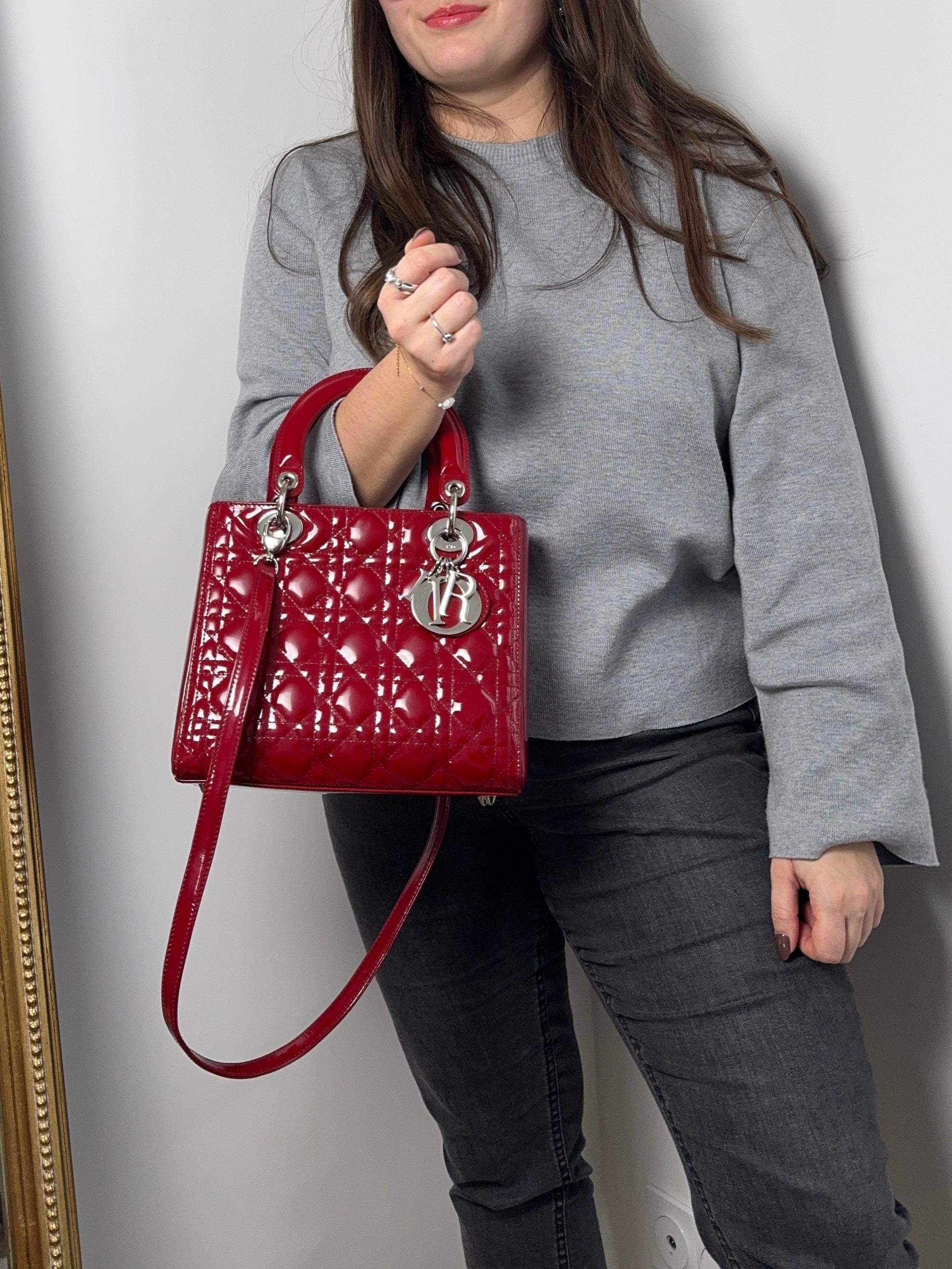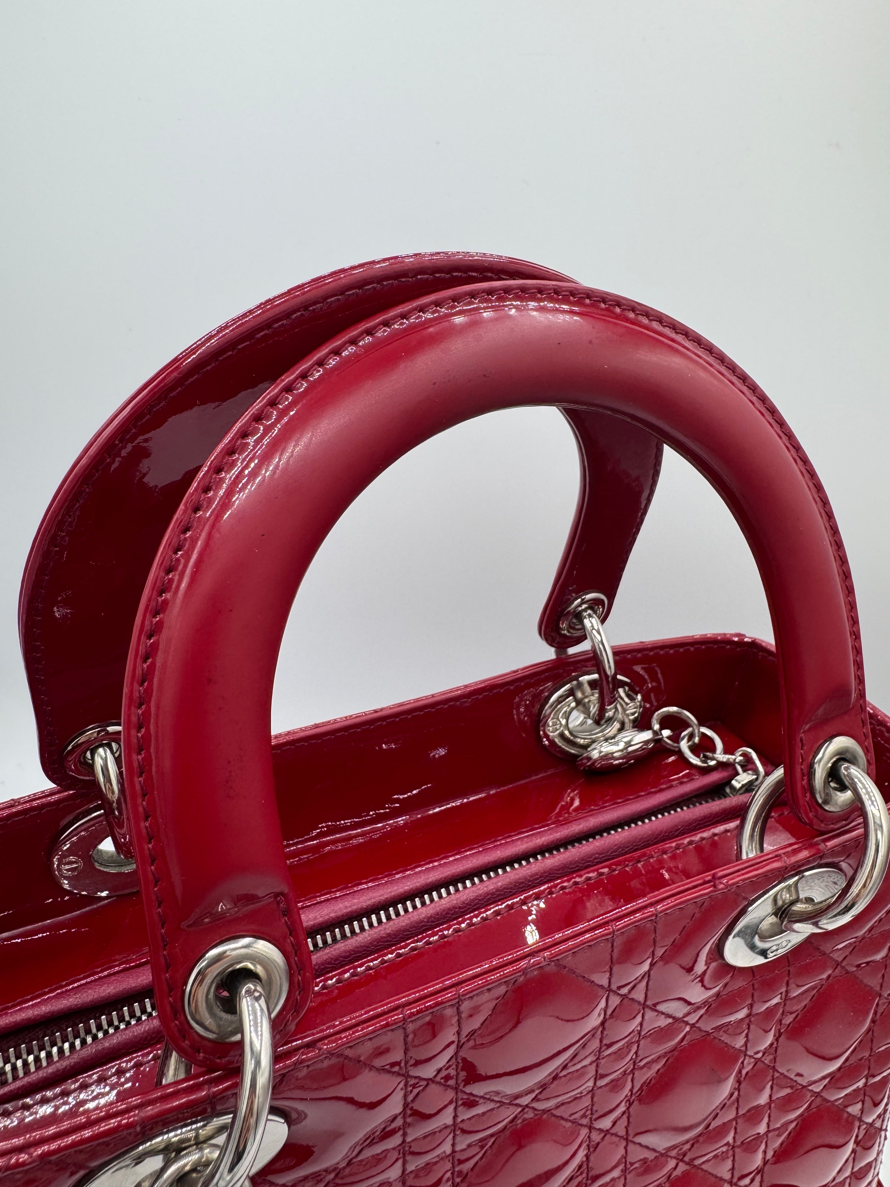 État excellent pour ce Lady Dior Médium en cuir vernis.