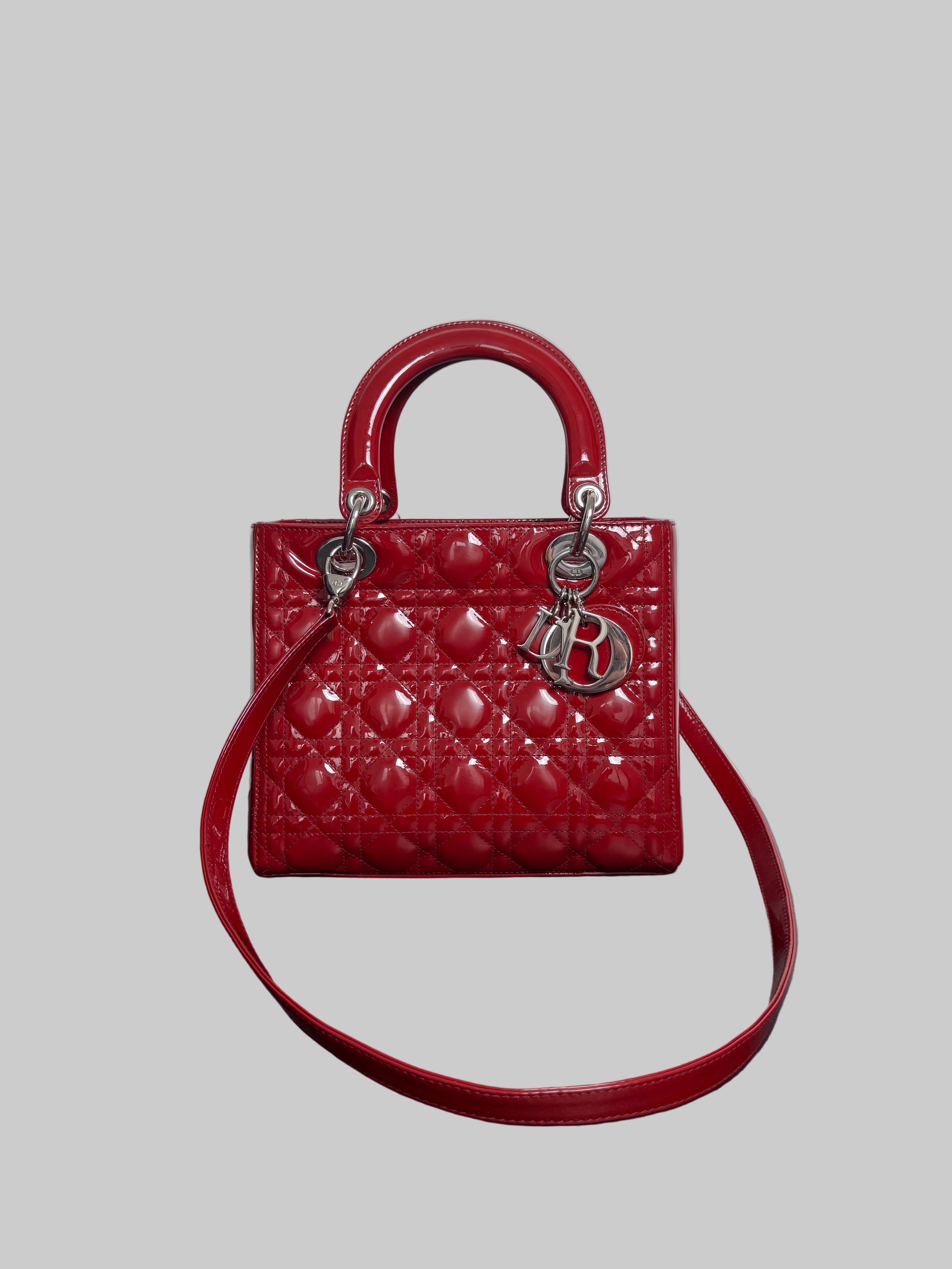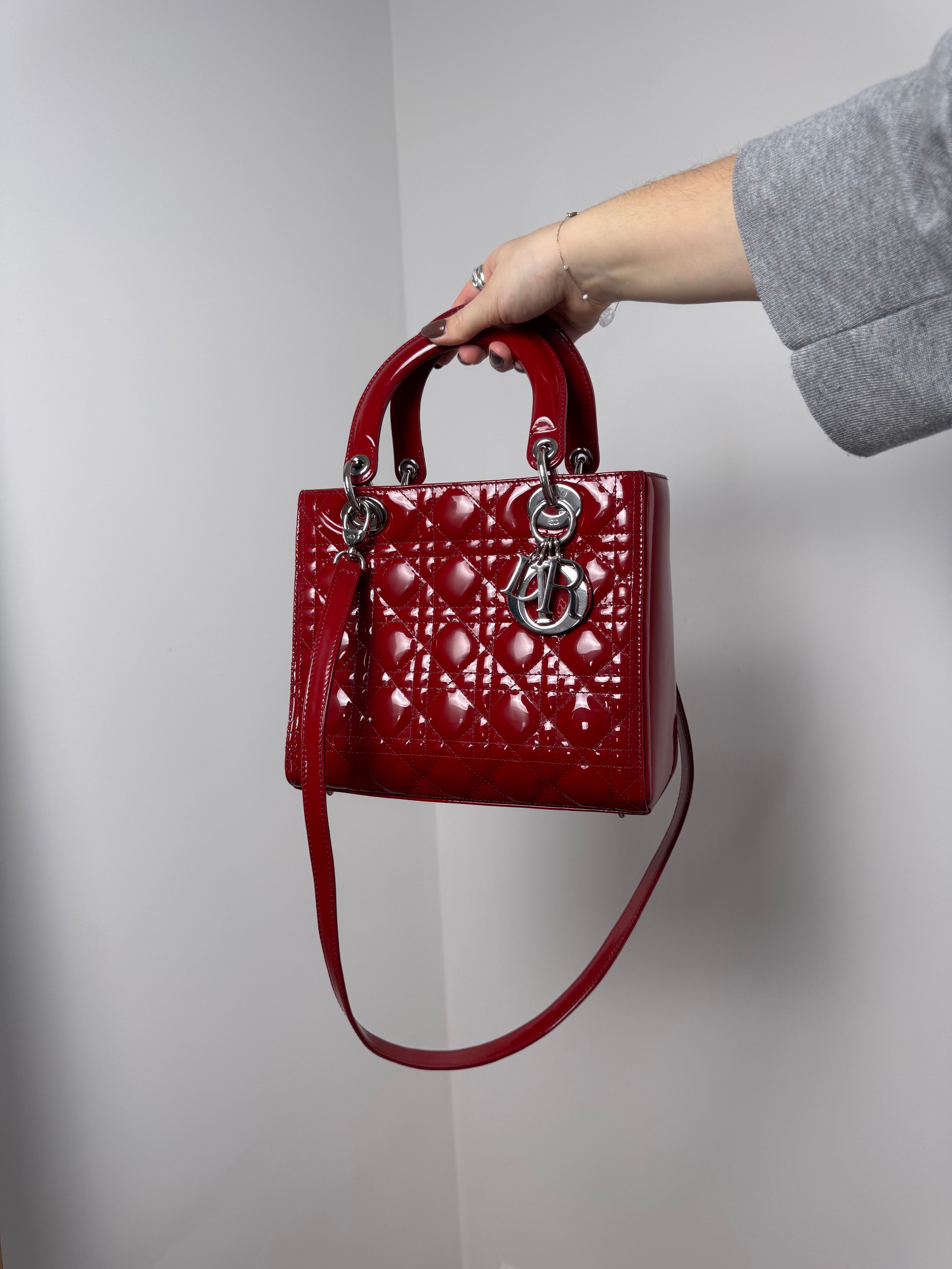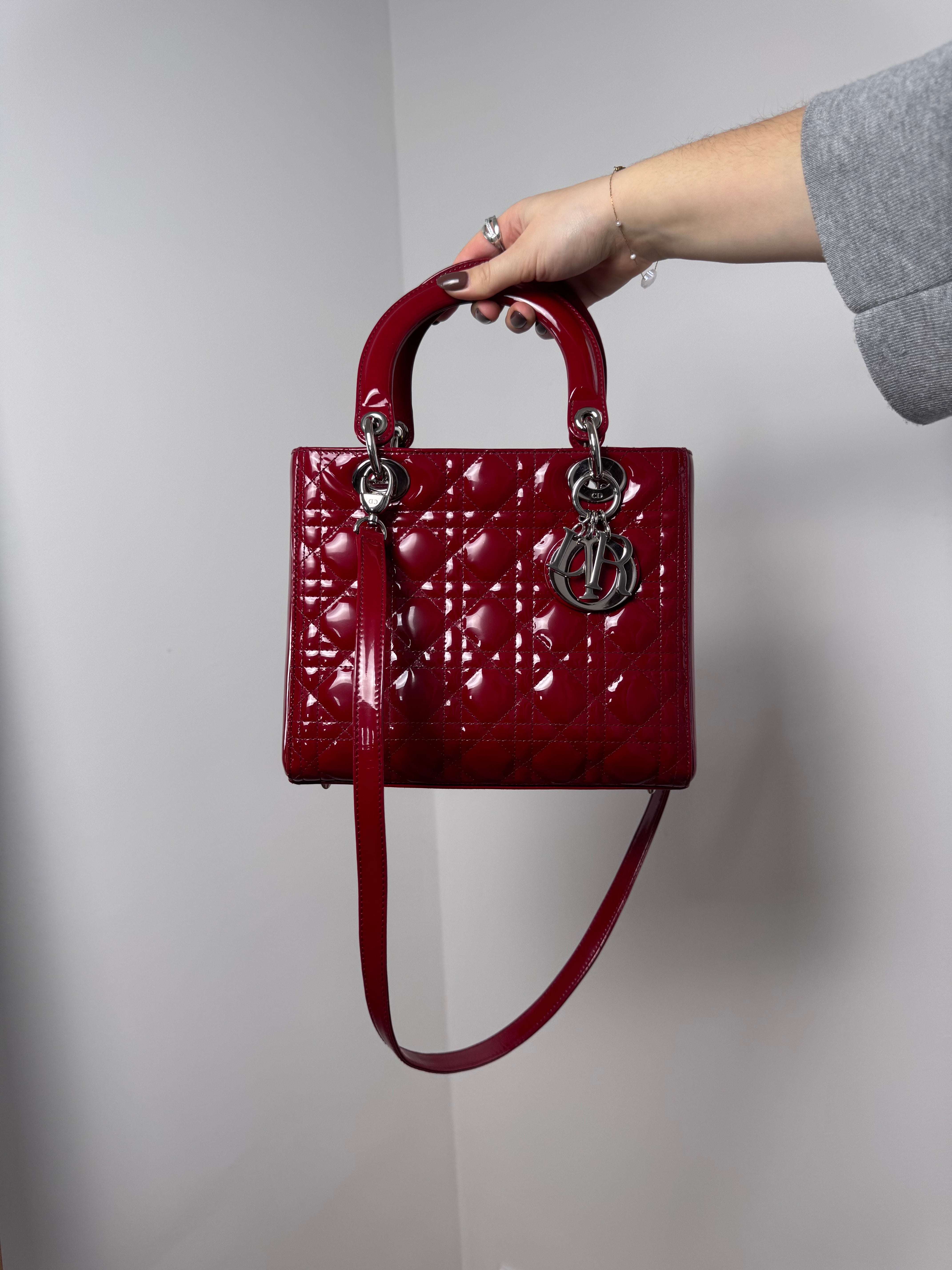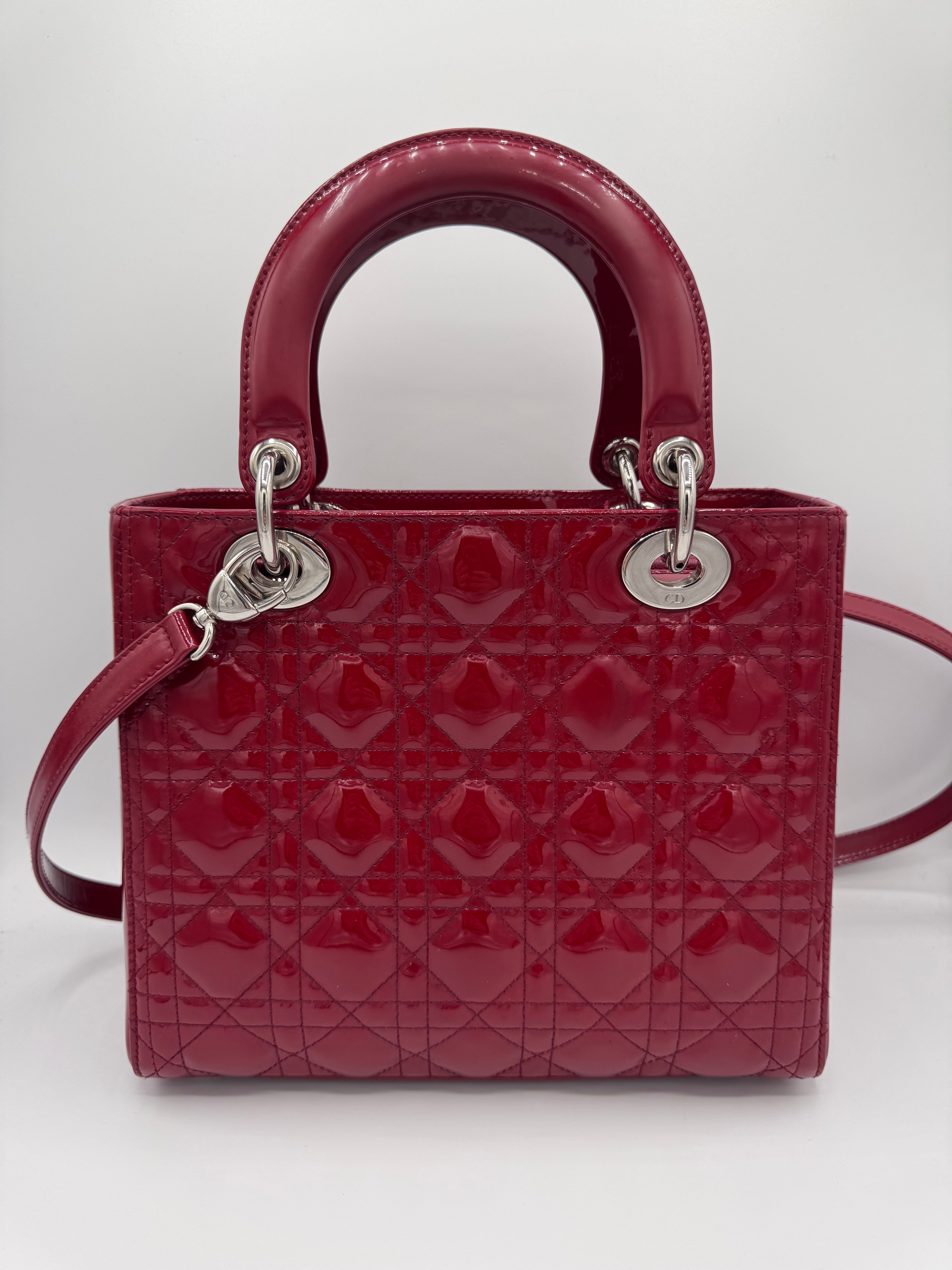 État excellent pour ce Lady Dior Médium en cuir vernis.