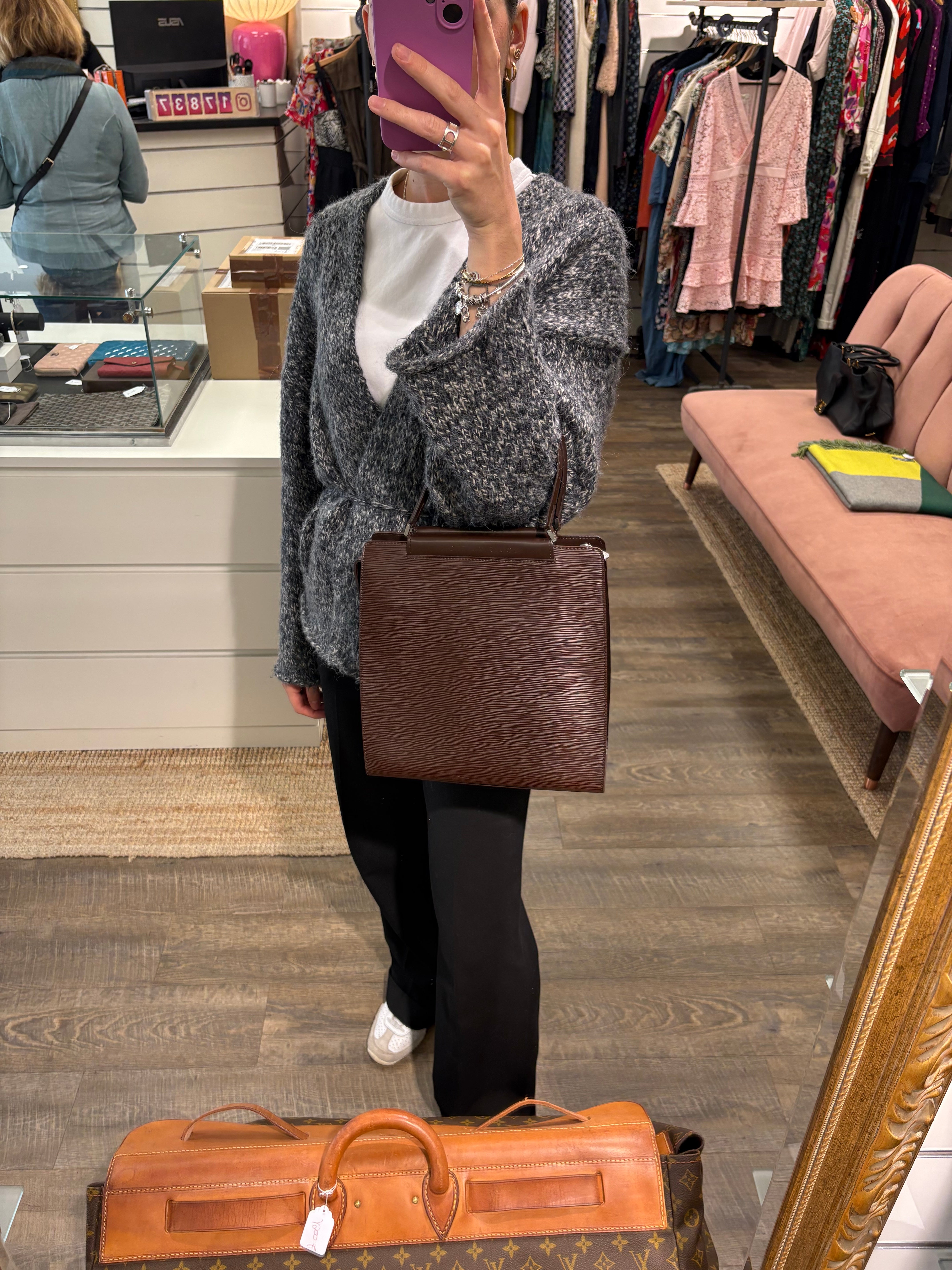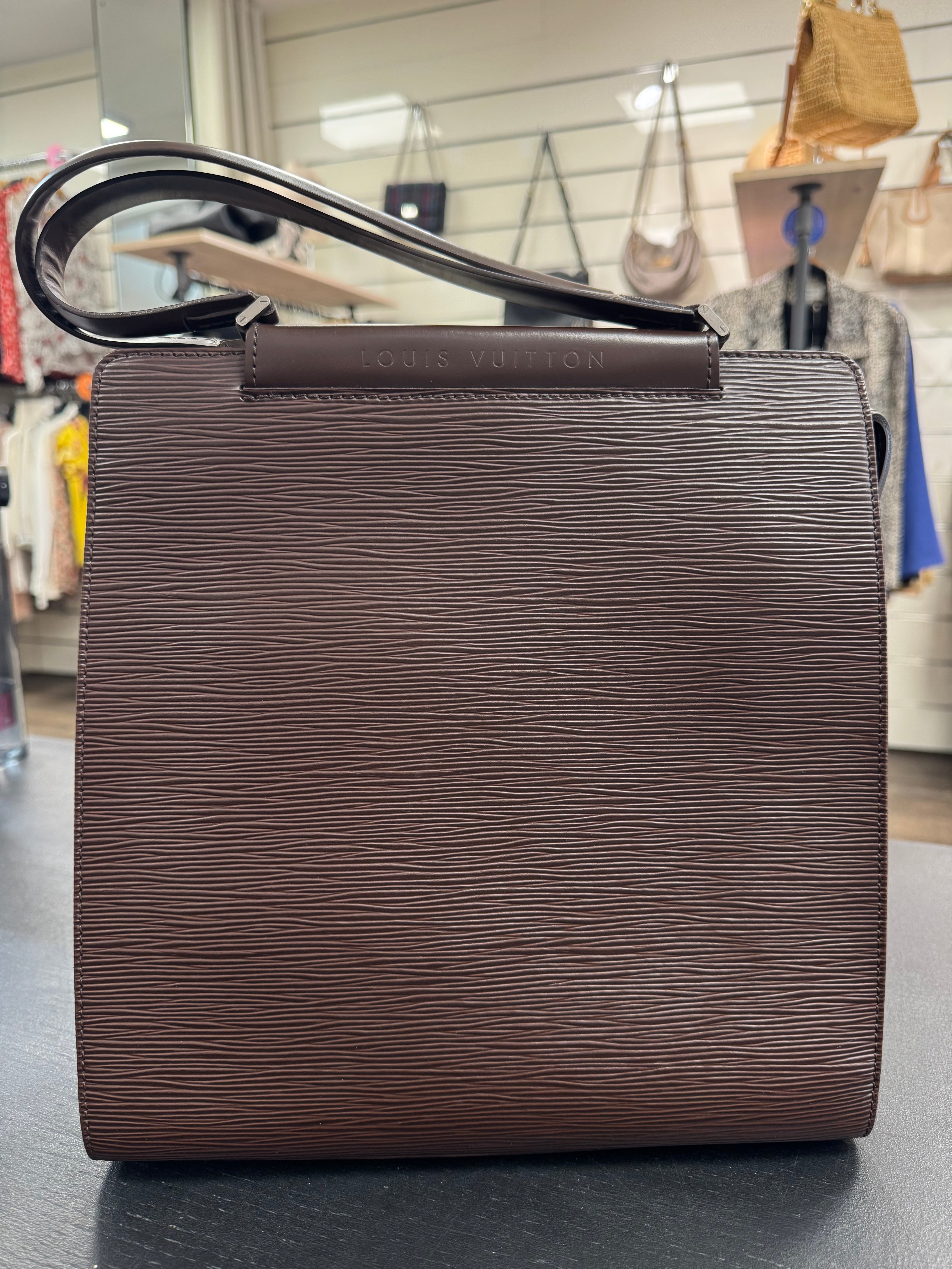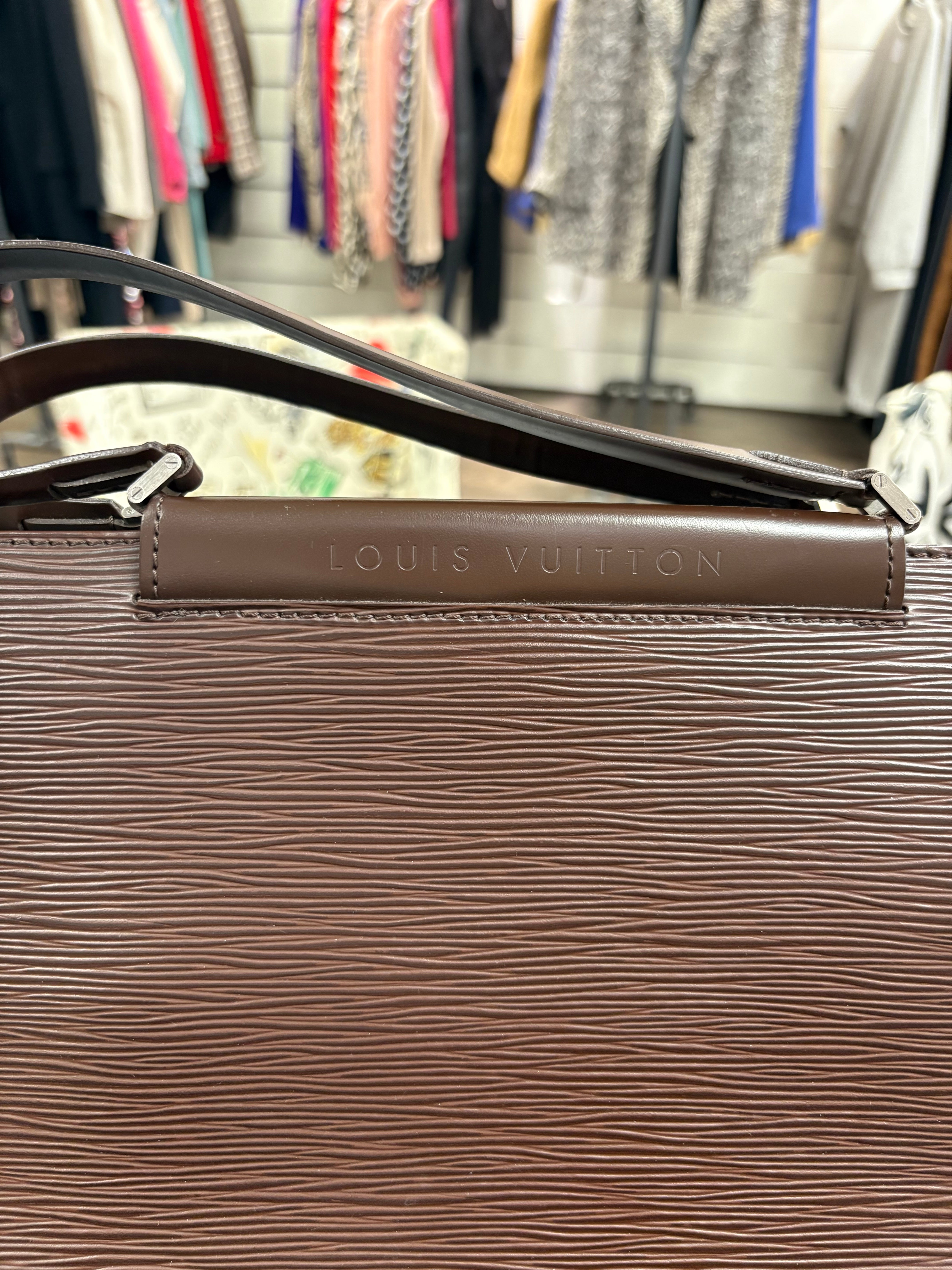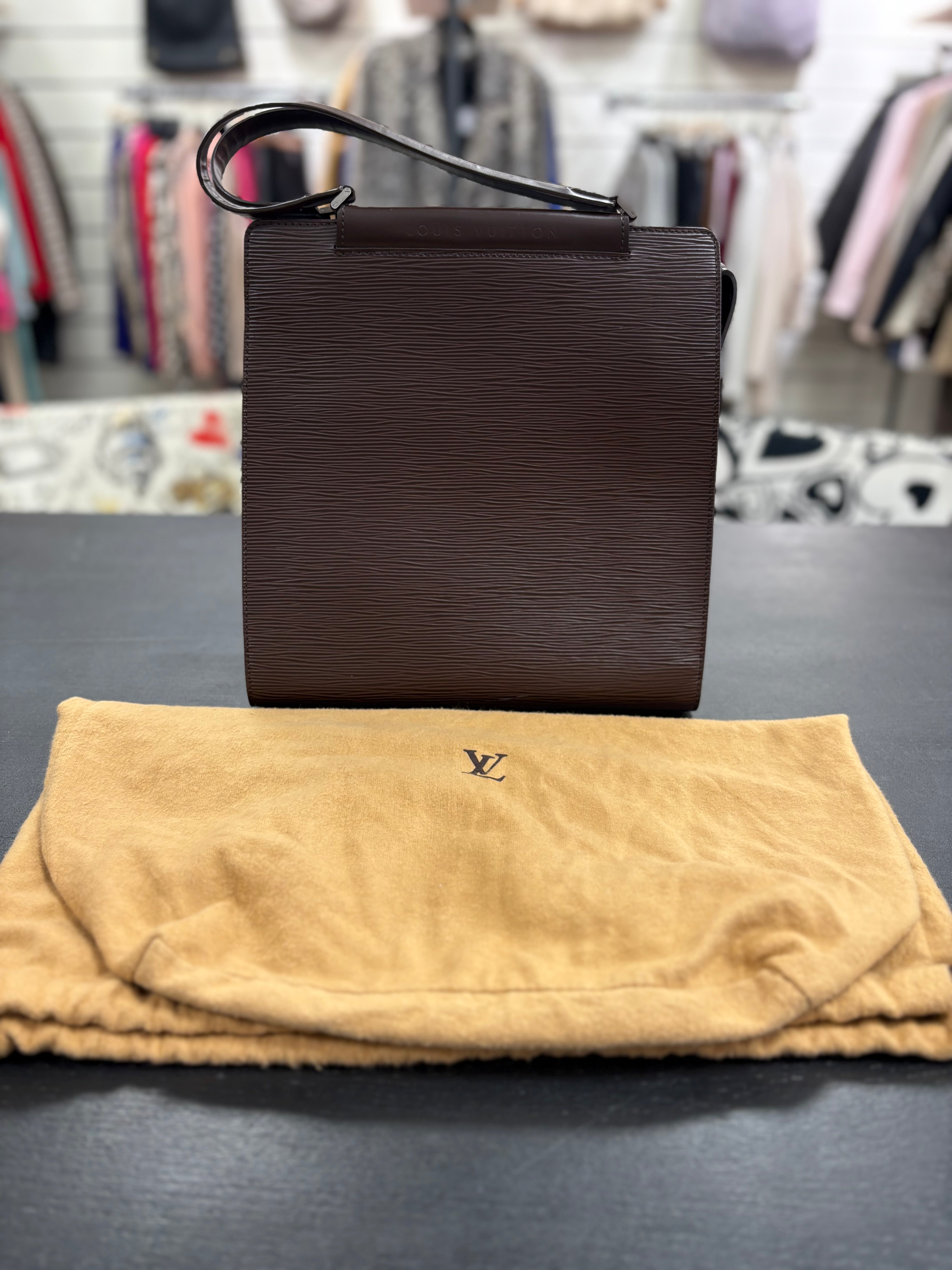 Sac Figari Louis Vuitton, en cuir d'épi marron foncé, est en très bon état.
