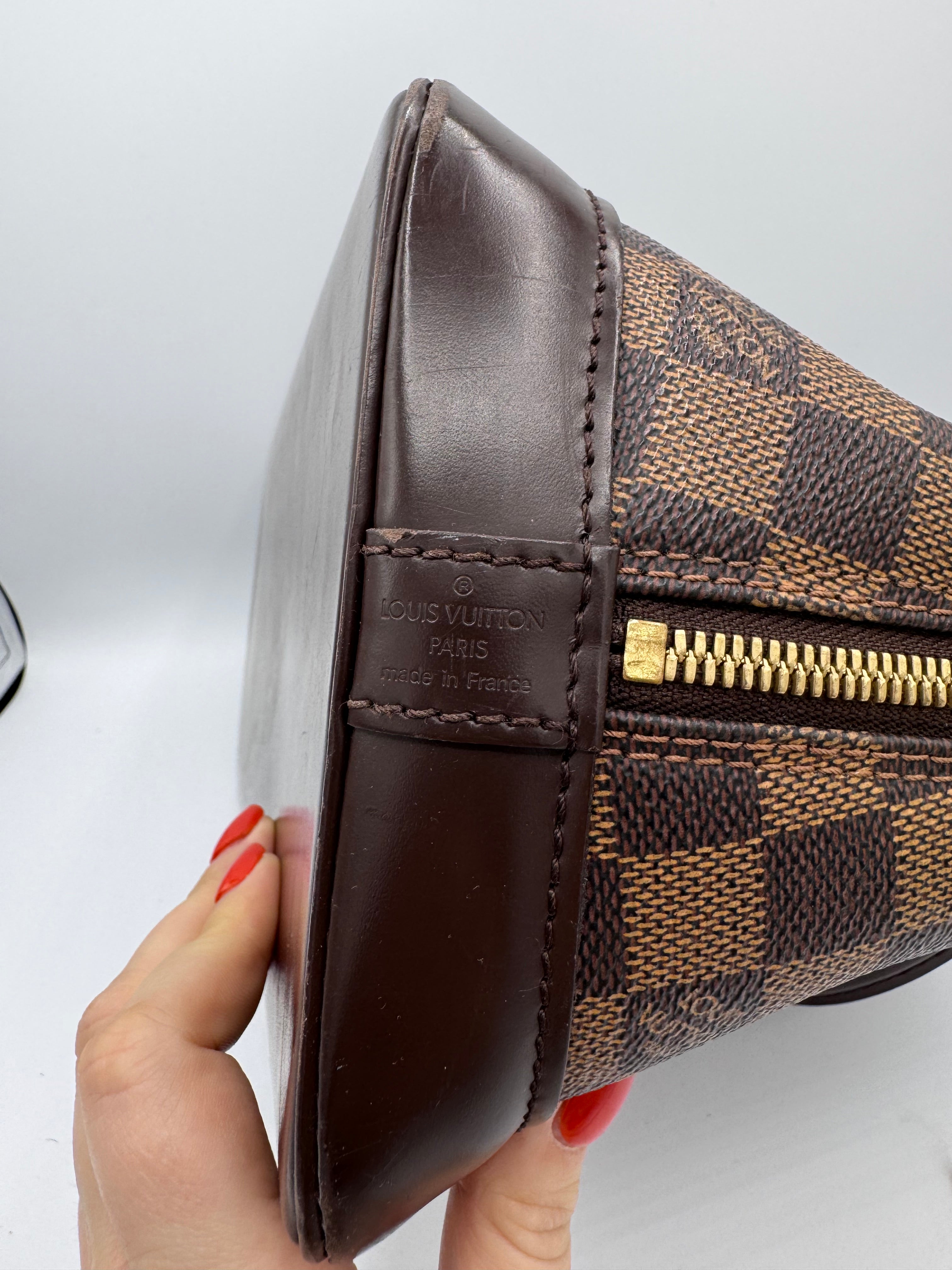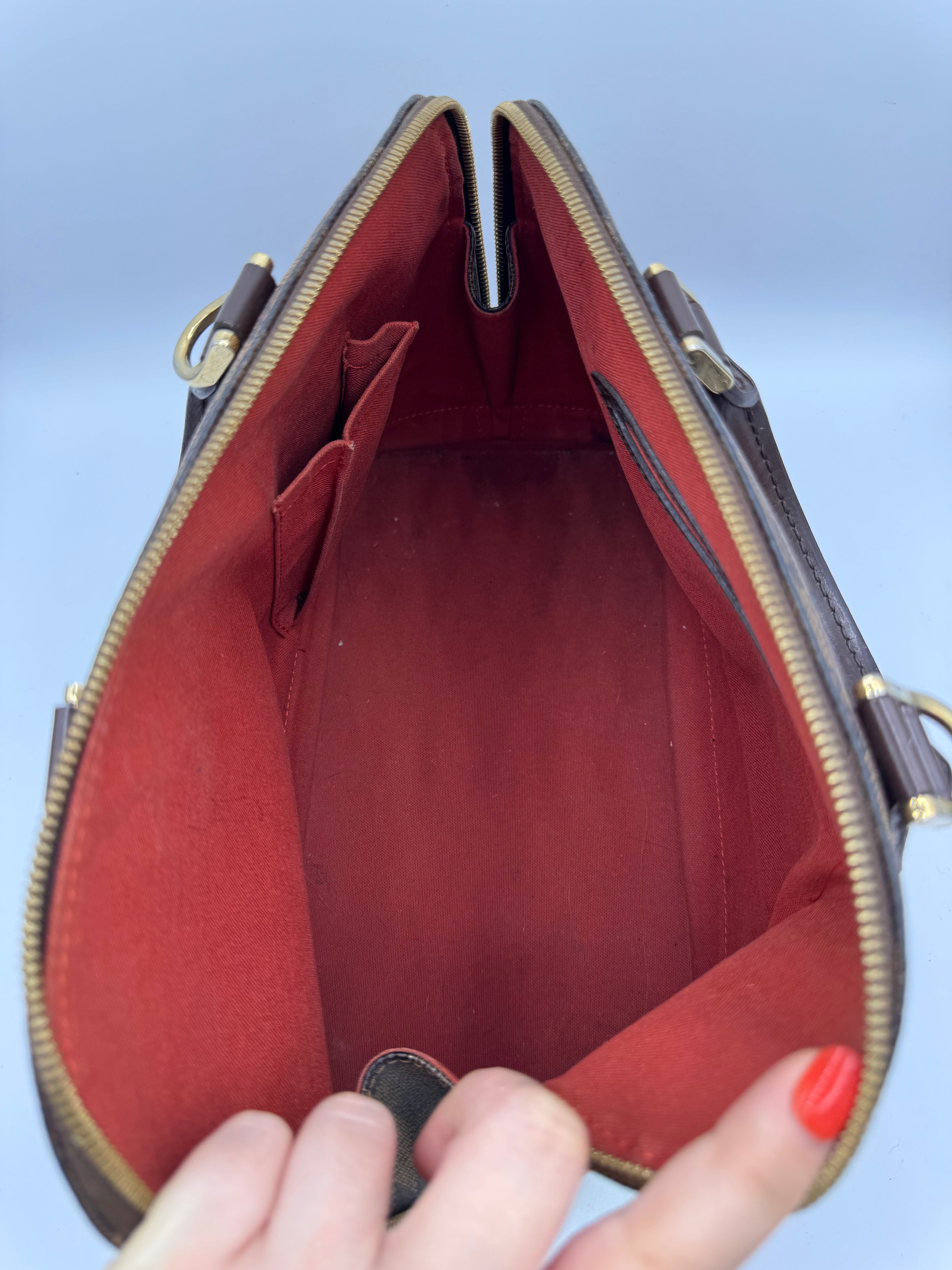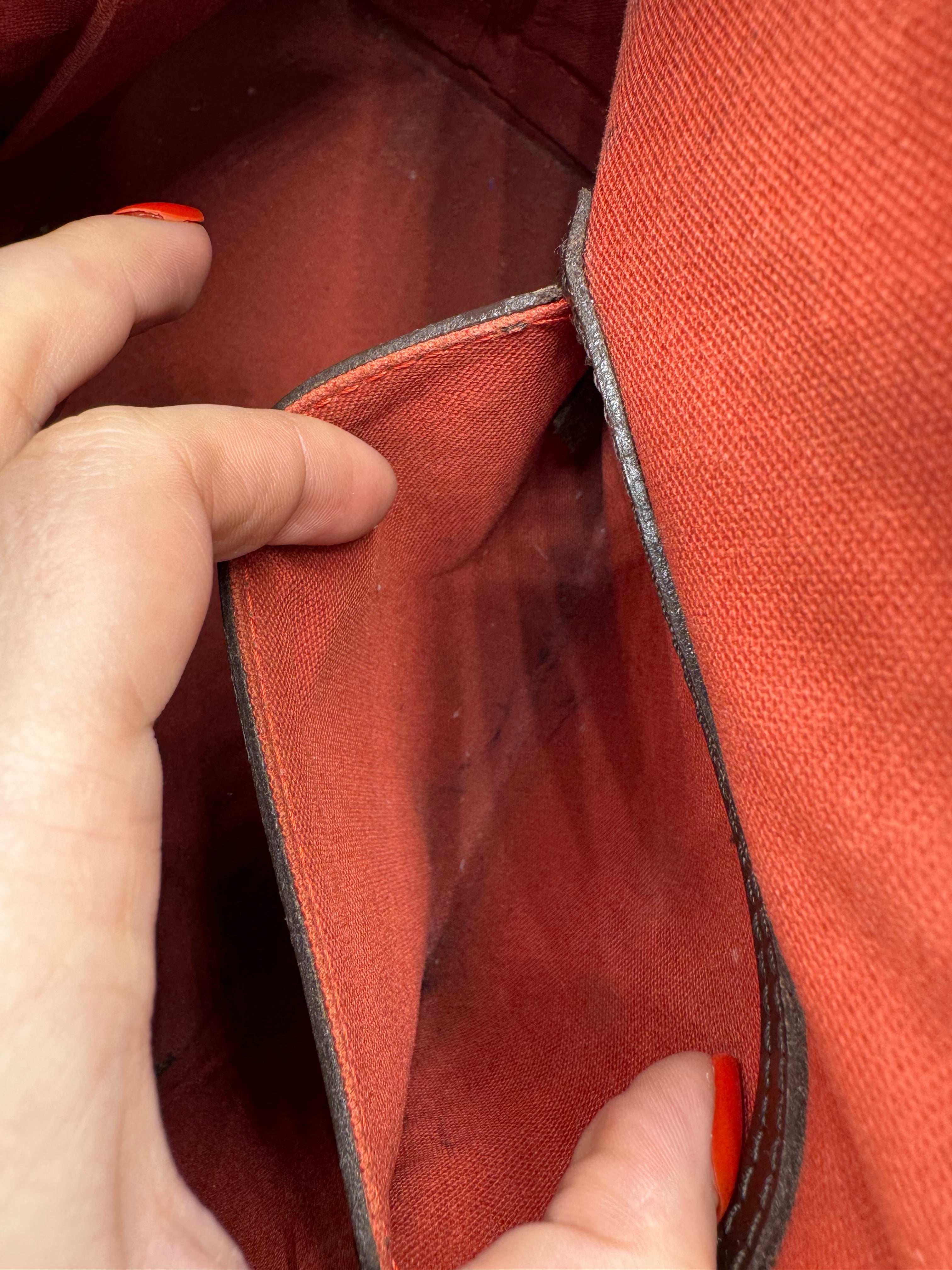 Toile rouge à l’intérieur du sac, présentant des signes de décoloration et des traces légères visibles en photos.