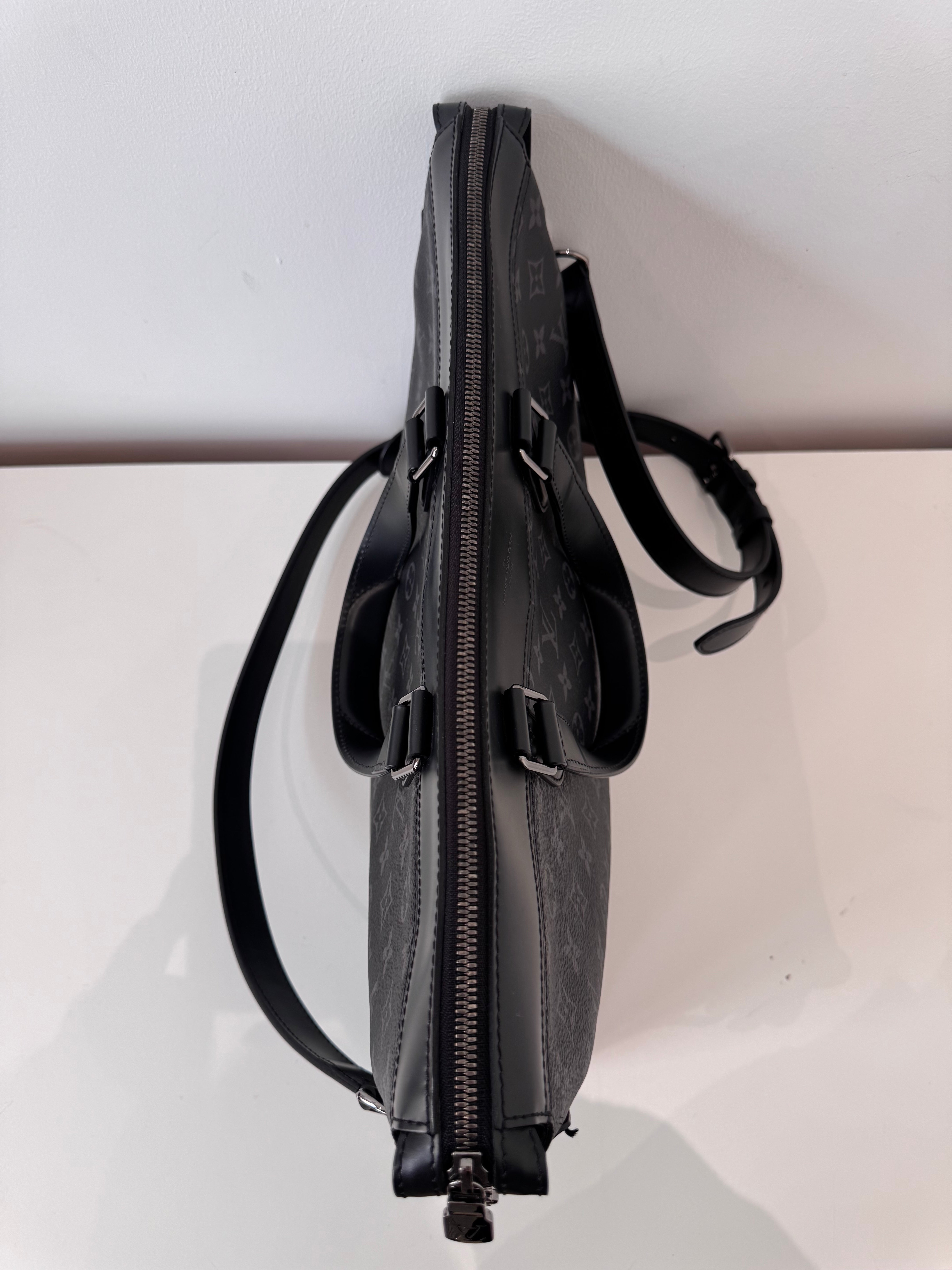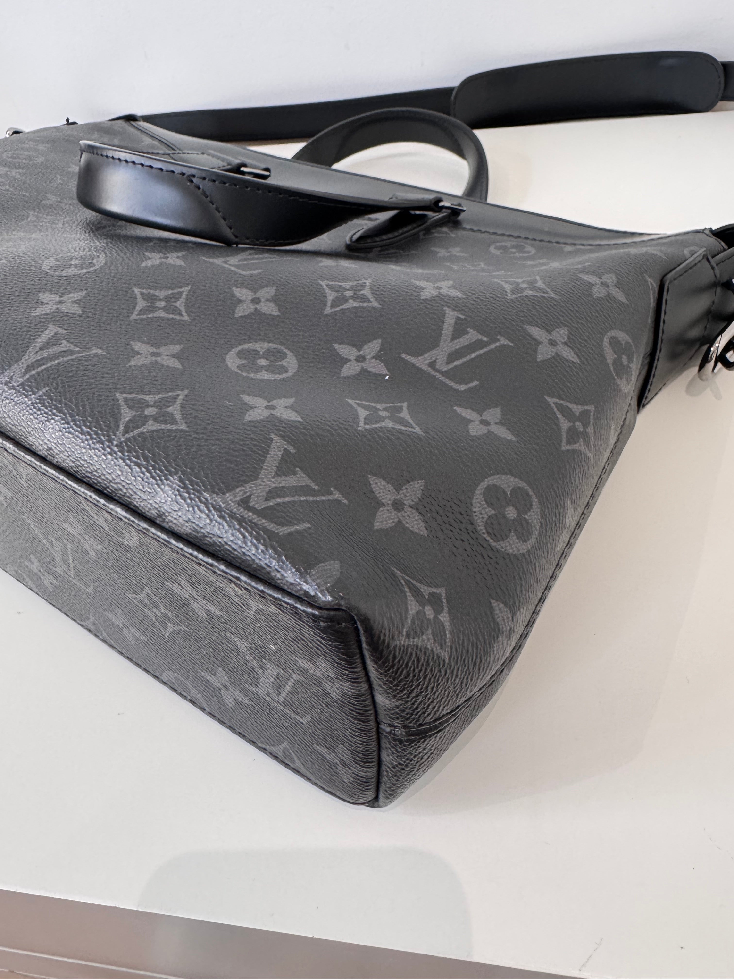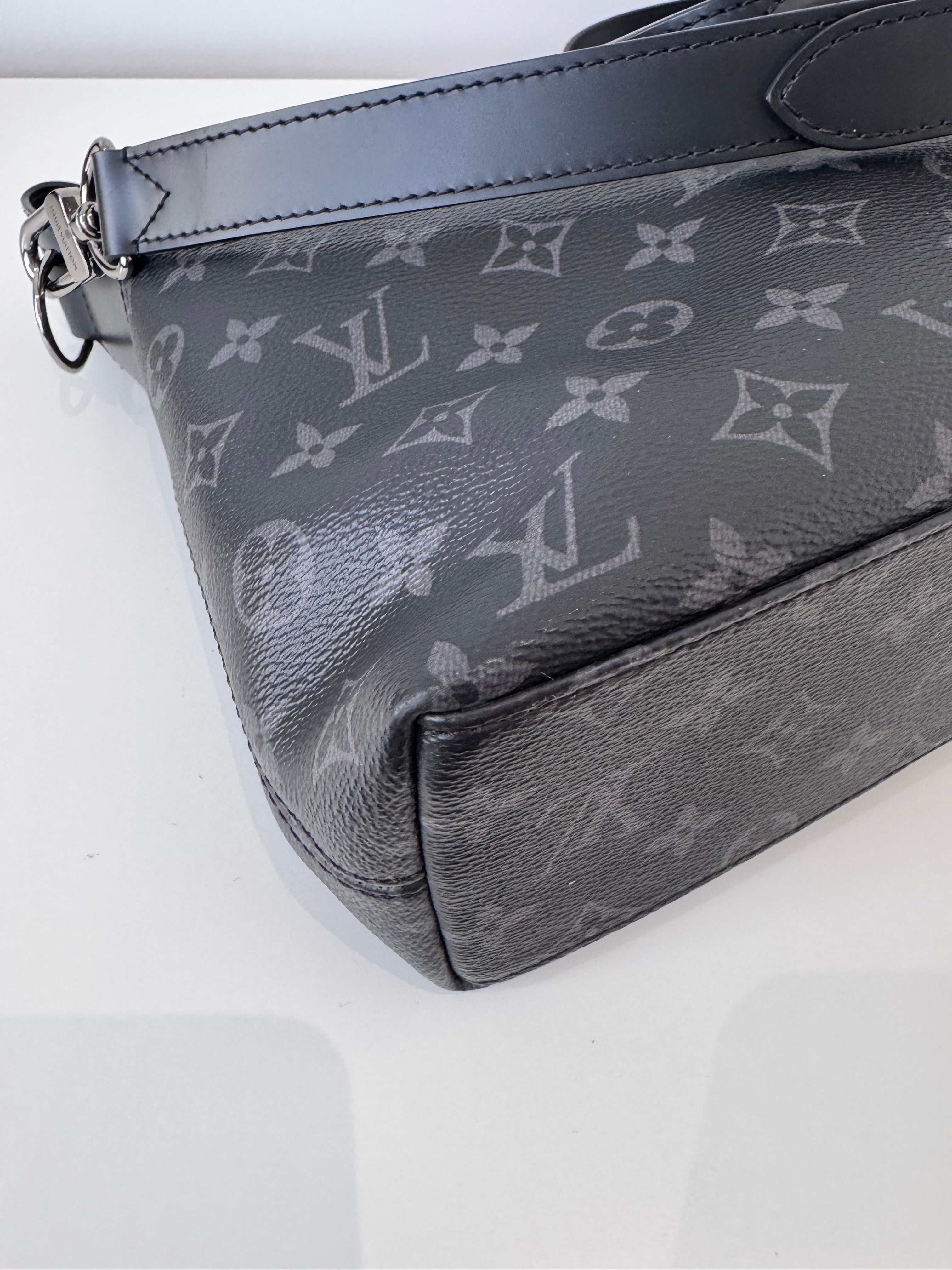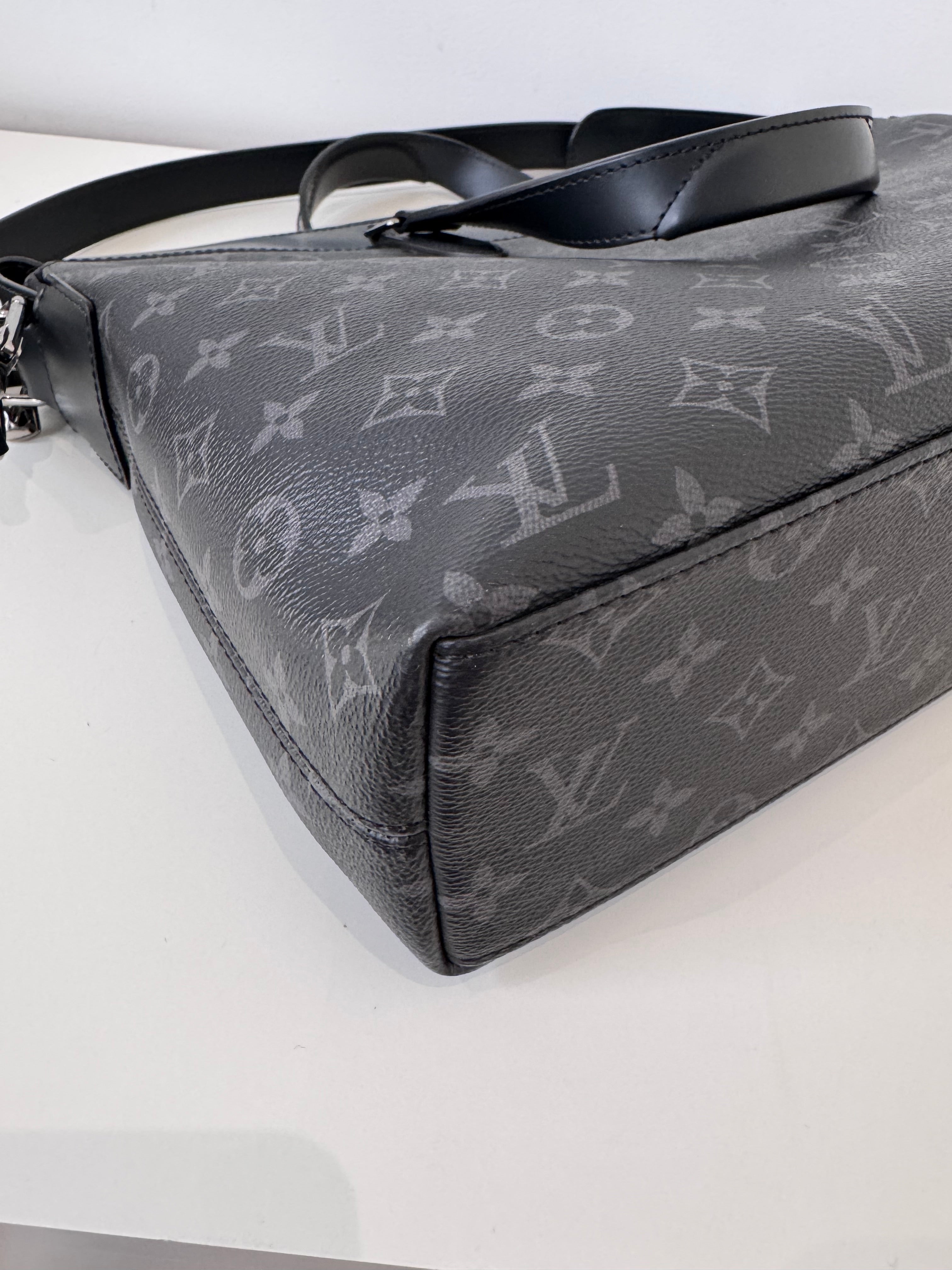 Sac de voyage Louis Vuitton en toile enduite éclipse noire en excellent état. Micros rayures sur la bijouterie.