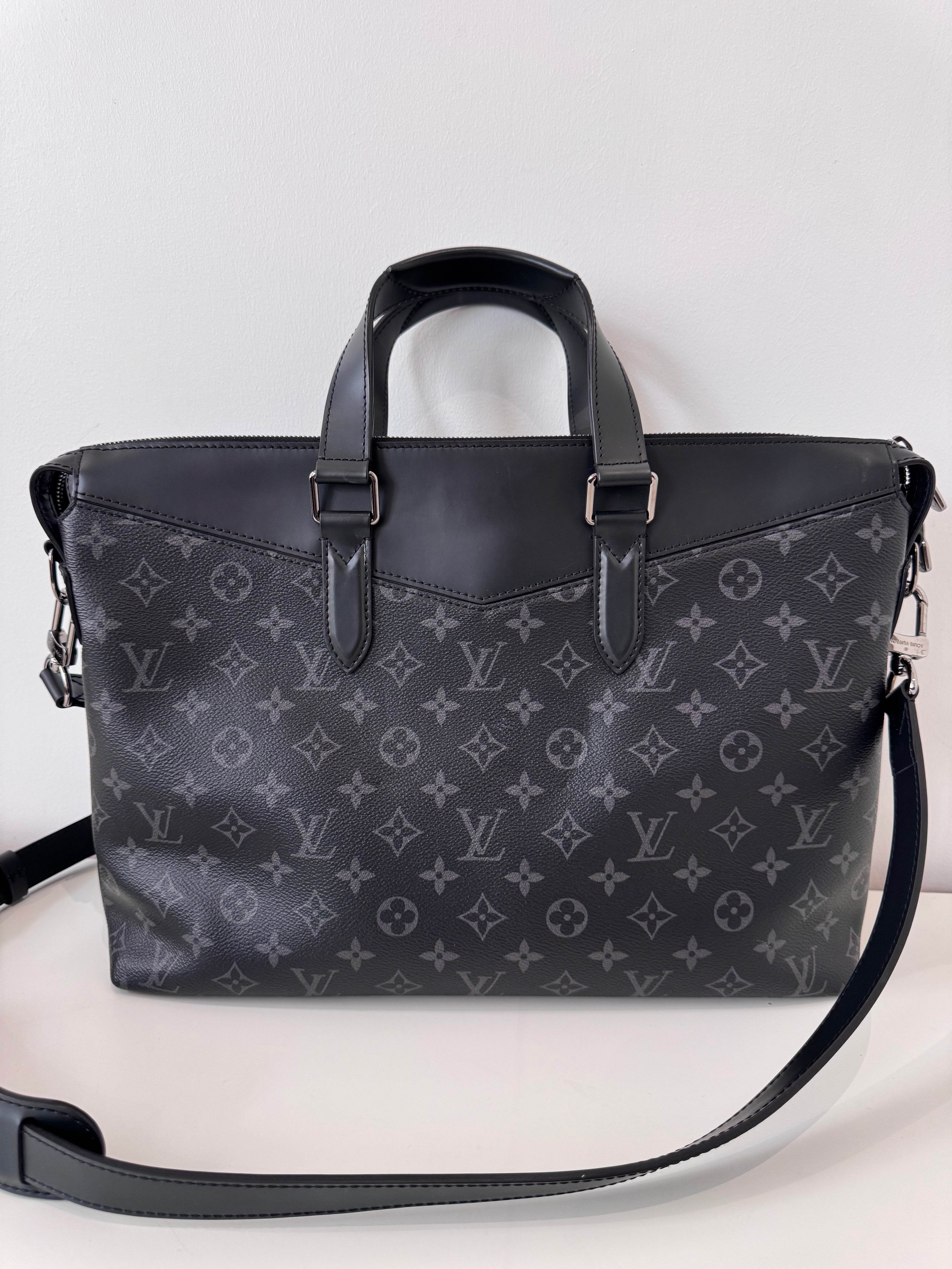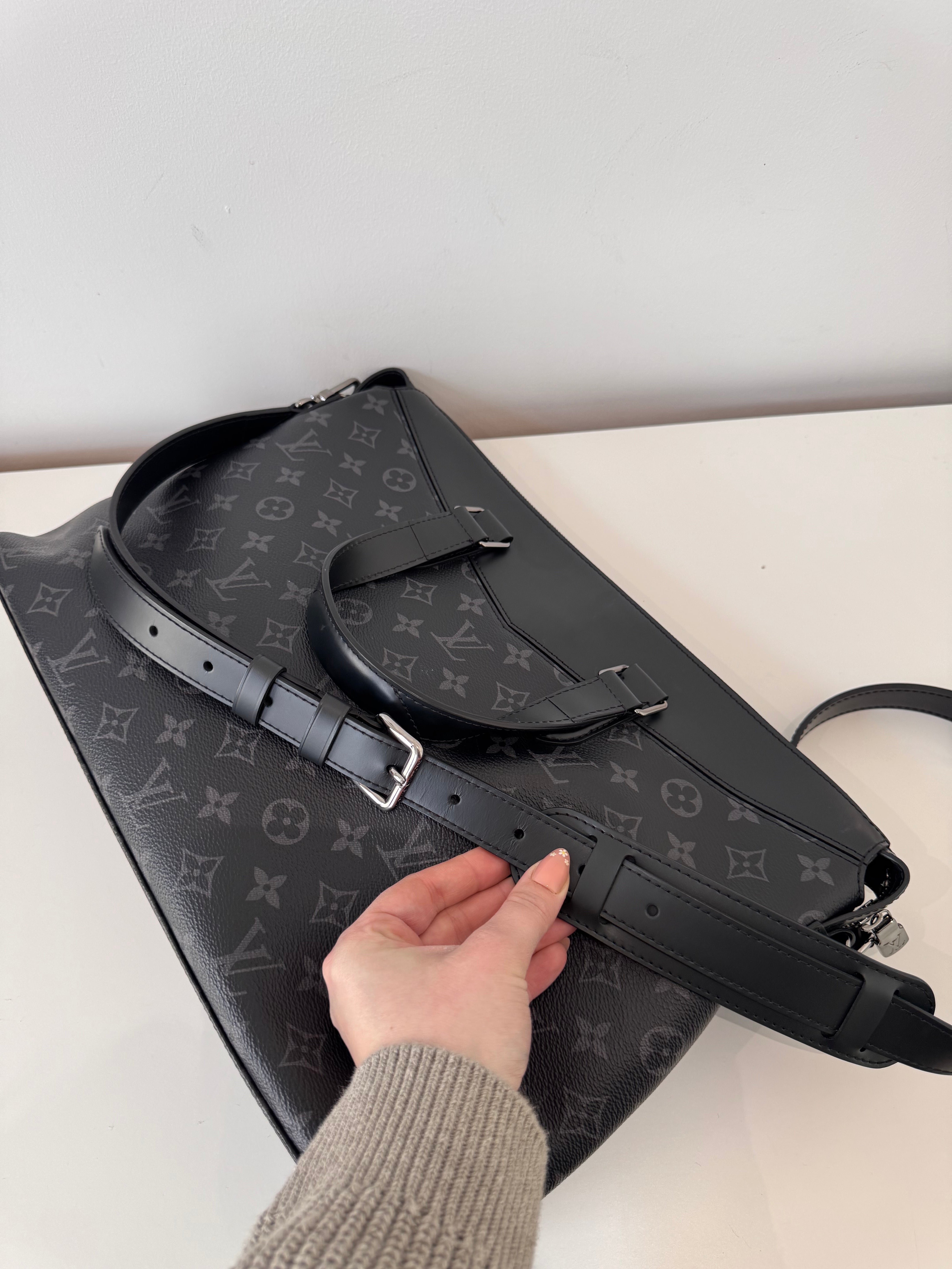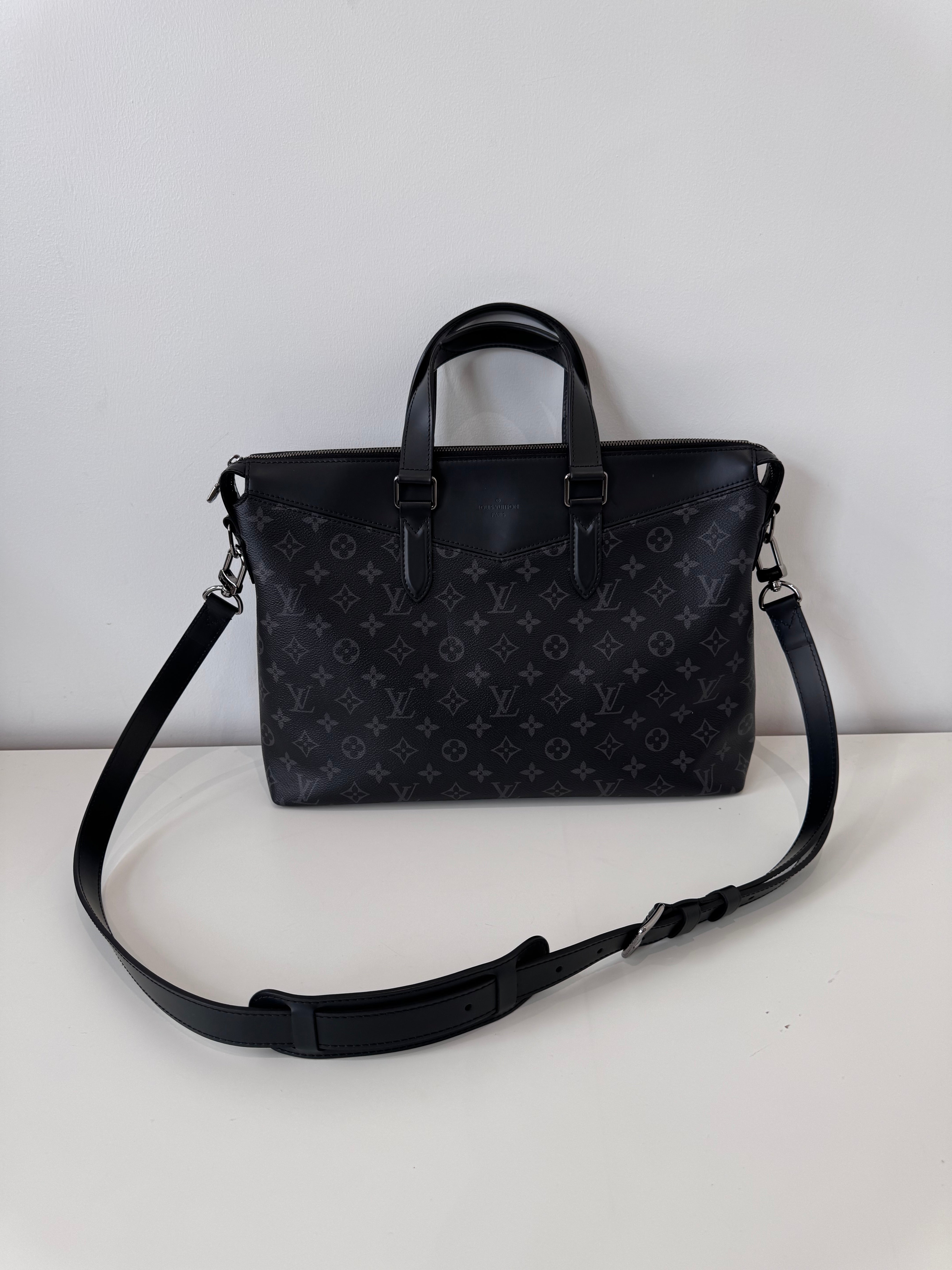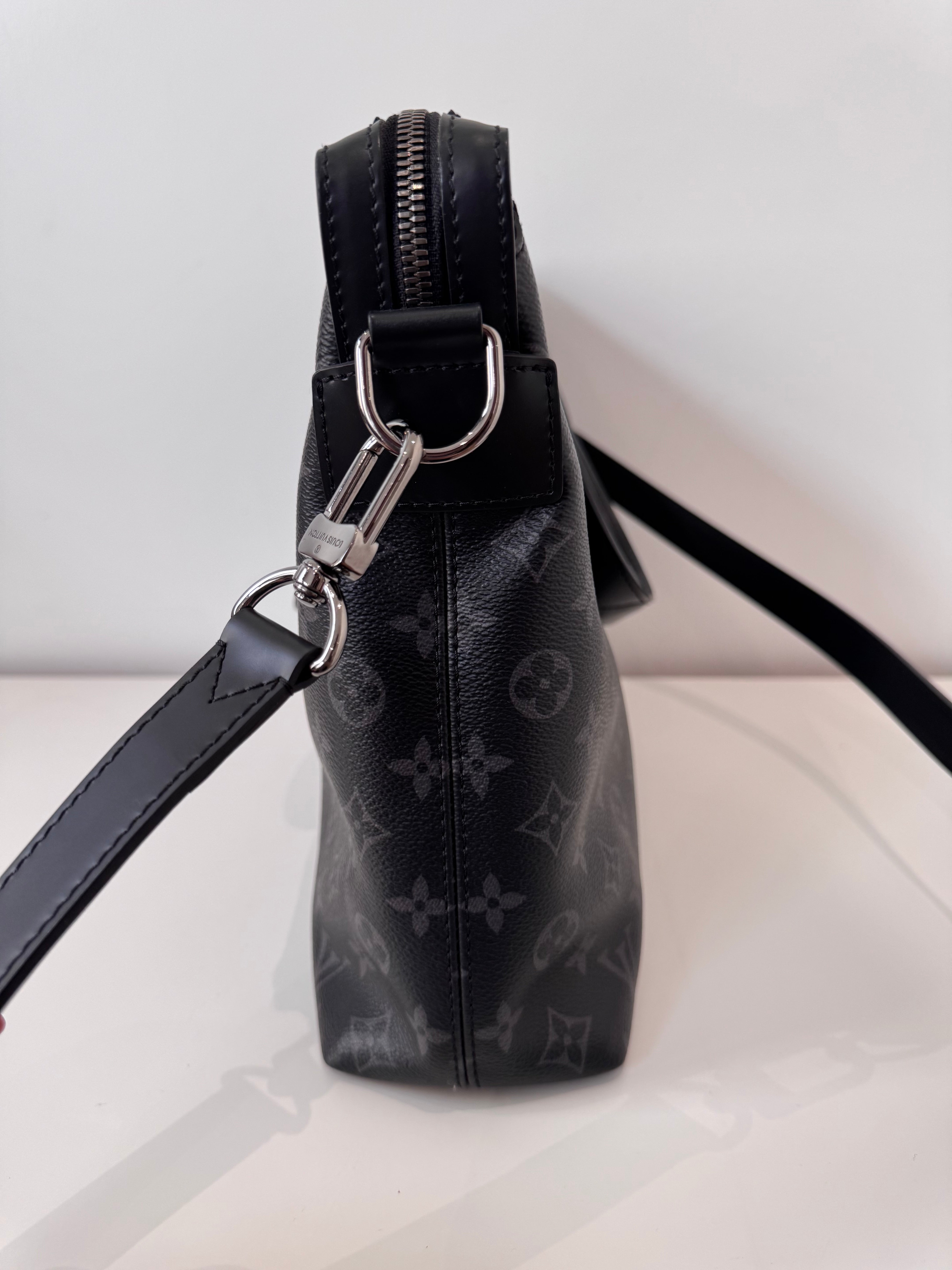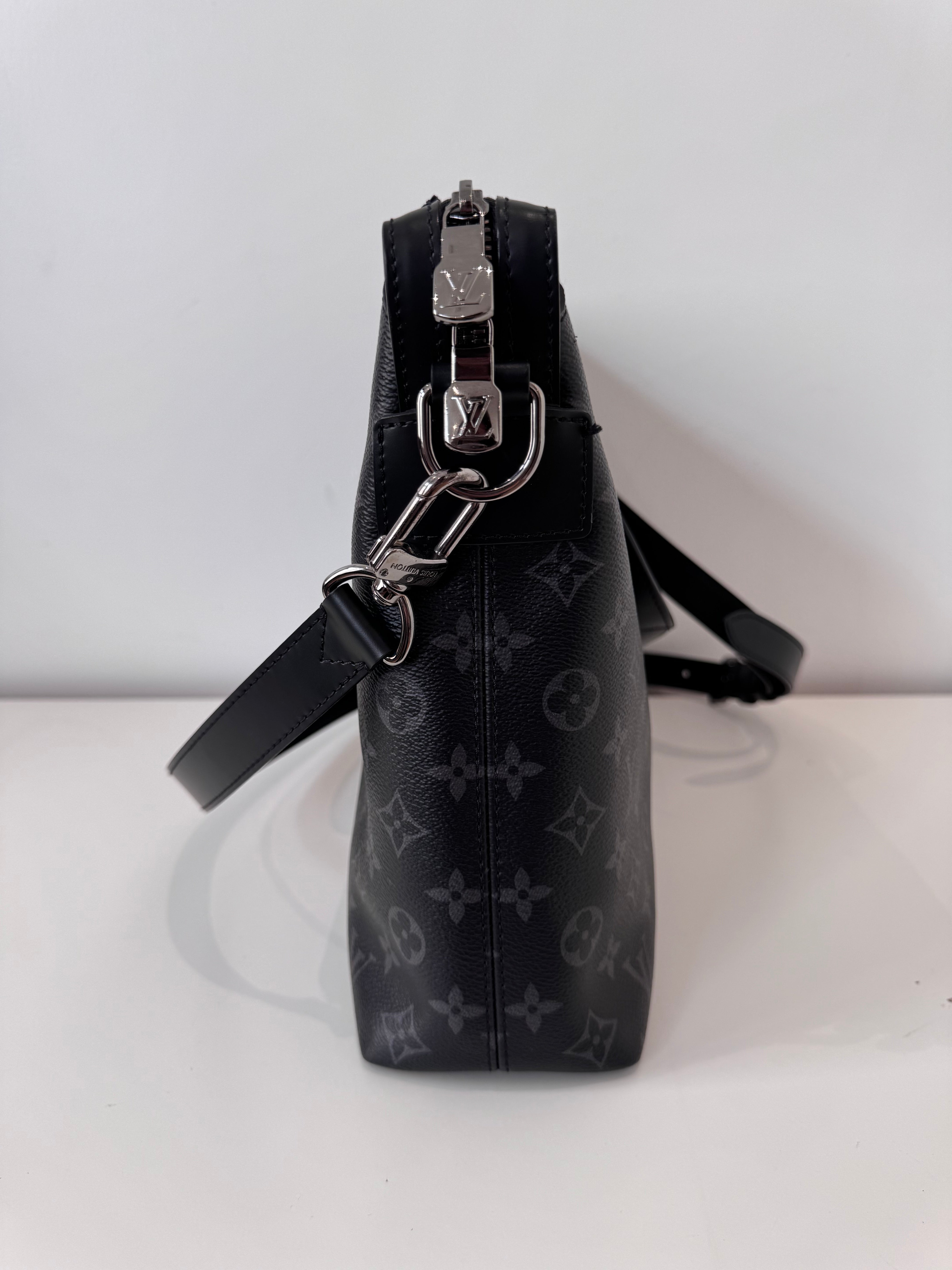 Sac de voyage Louis Vuitton en toile enduite éclipse noire en excellent état. Micros rayures sur la bijouterie.