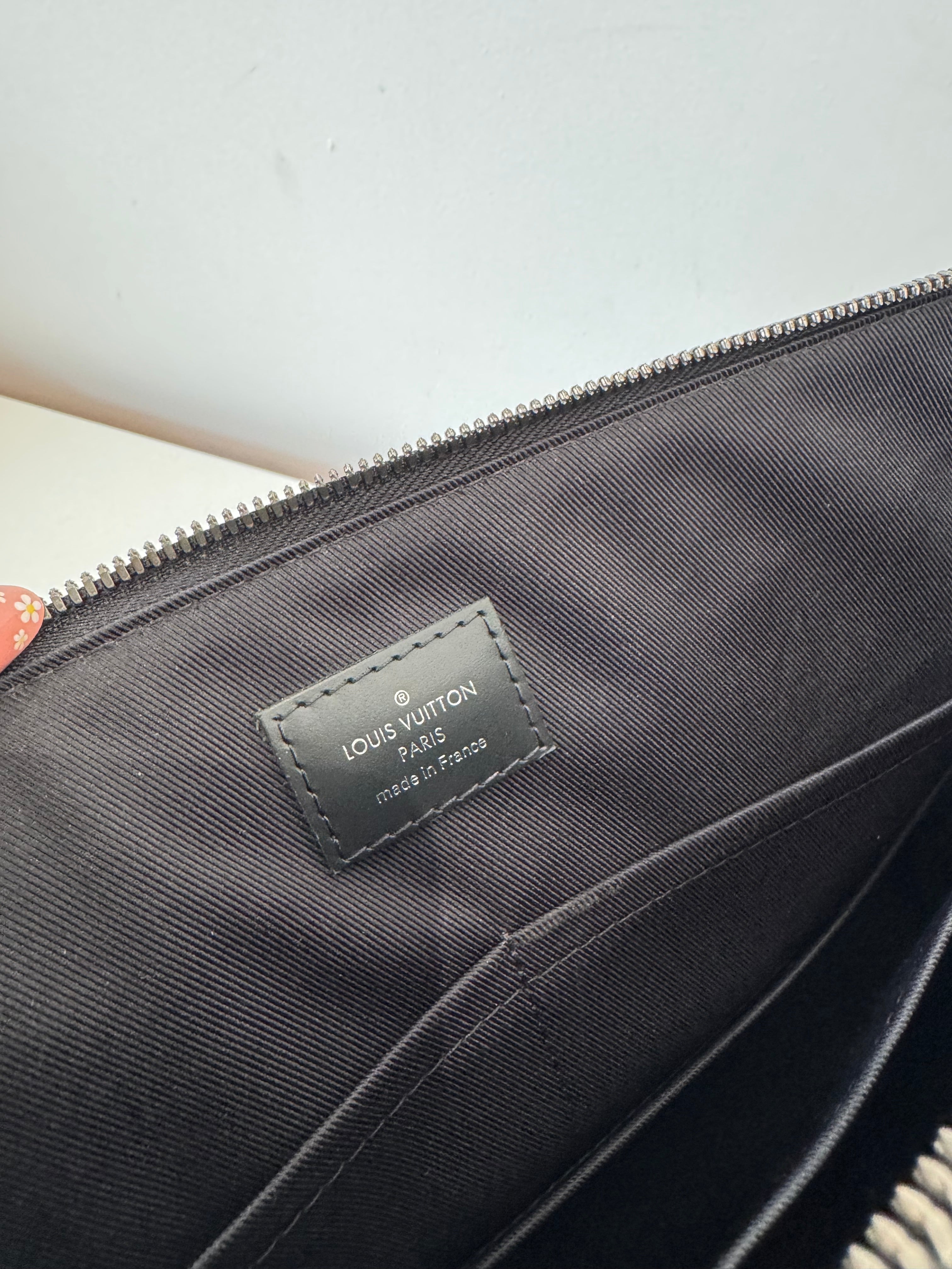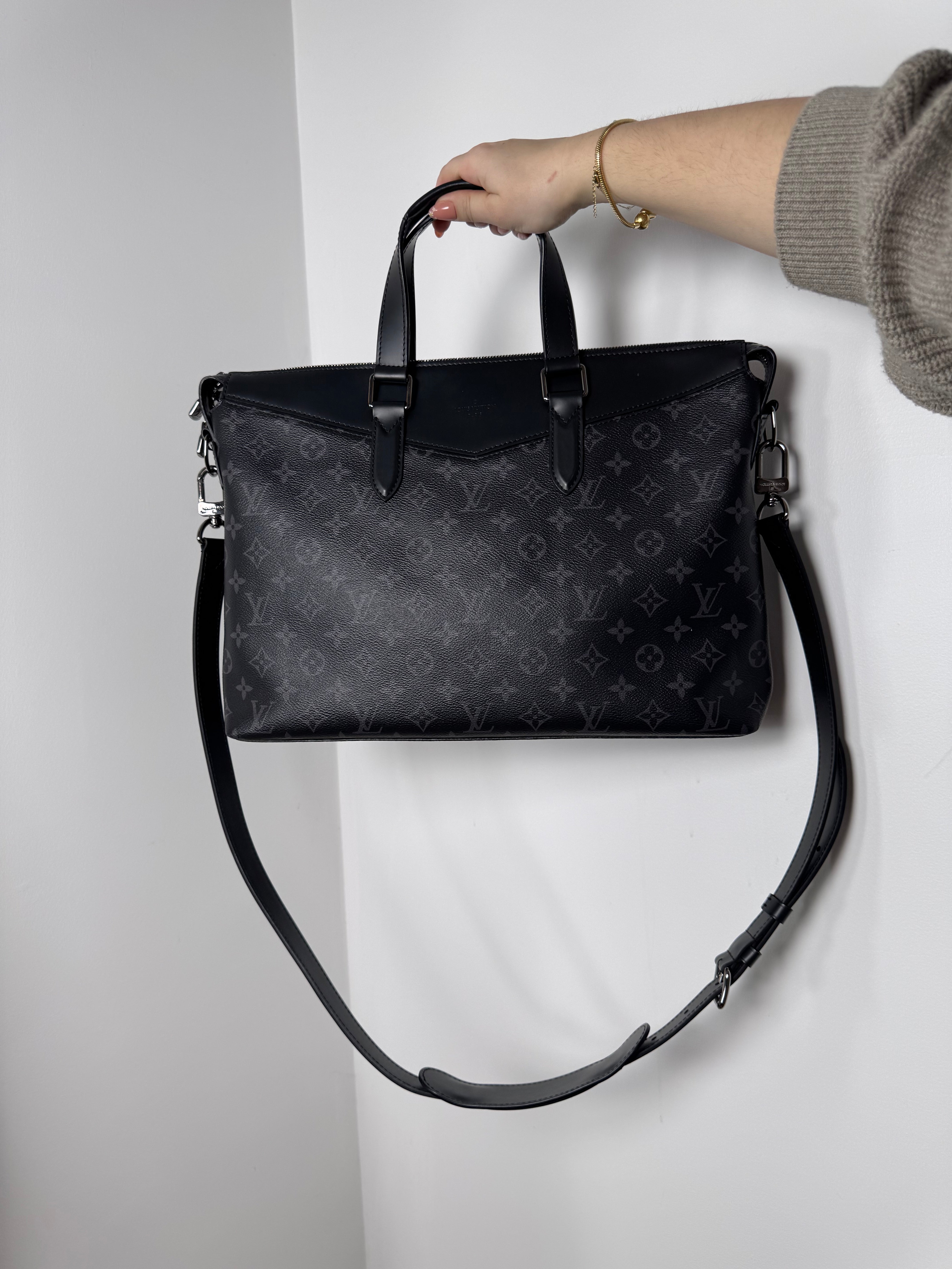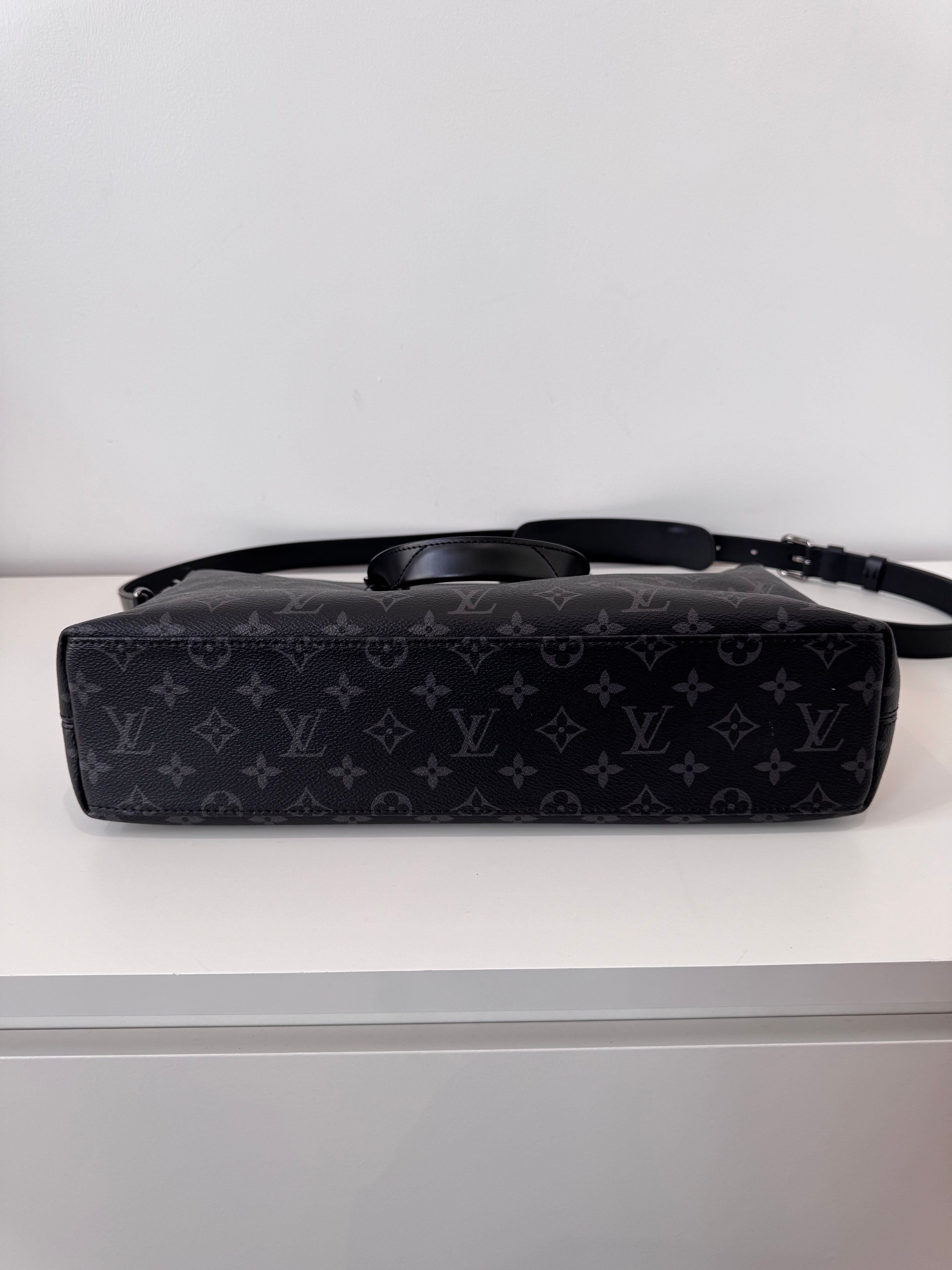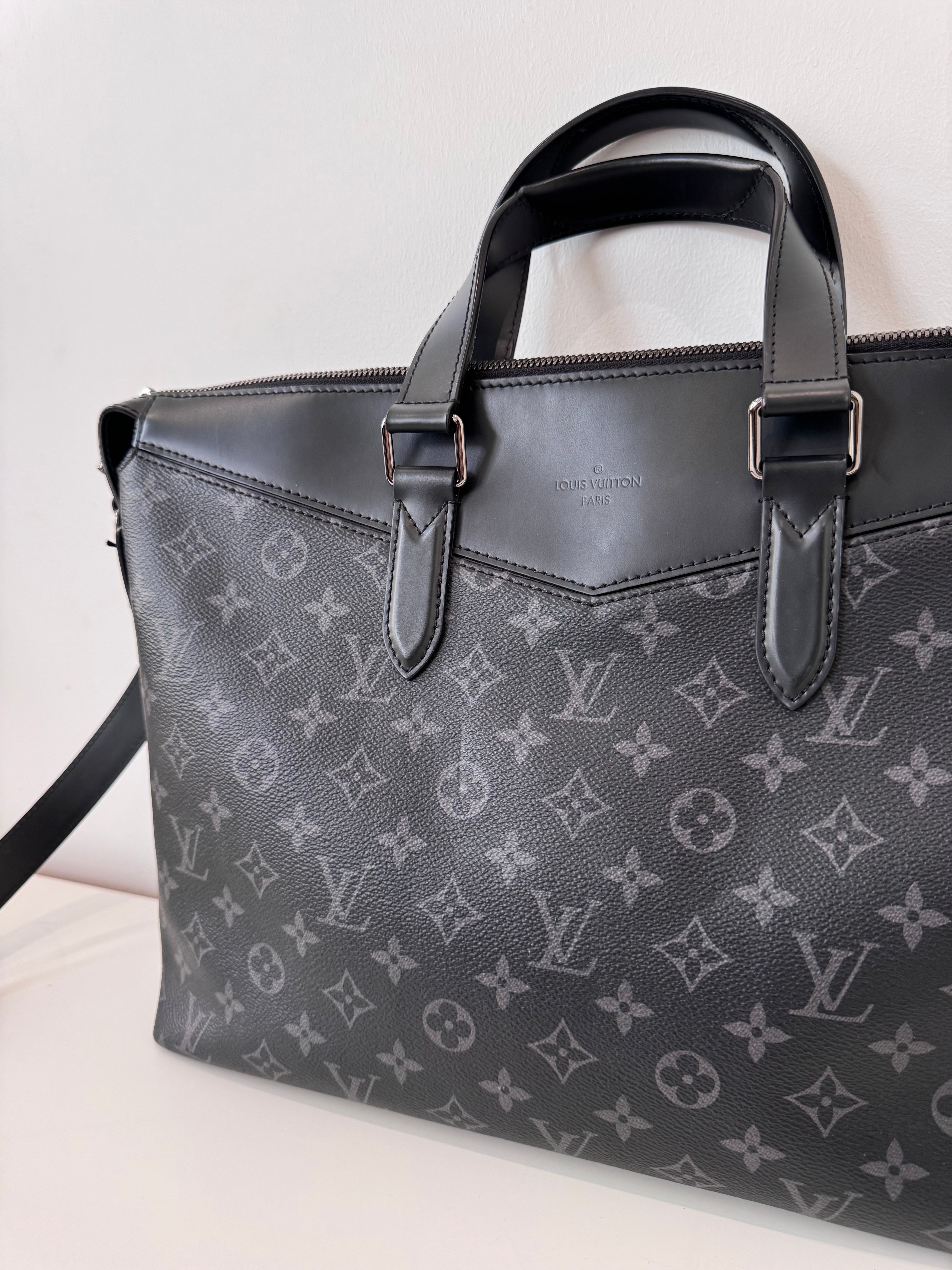 Sac de voyage Louis Vuitton en toile enduite éclipse noire en excellent état. Micros rayures sur la bijouterie.