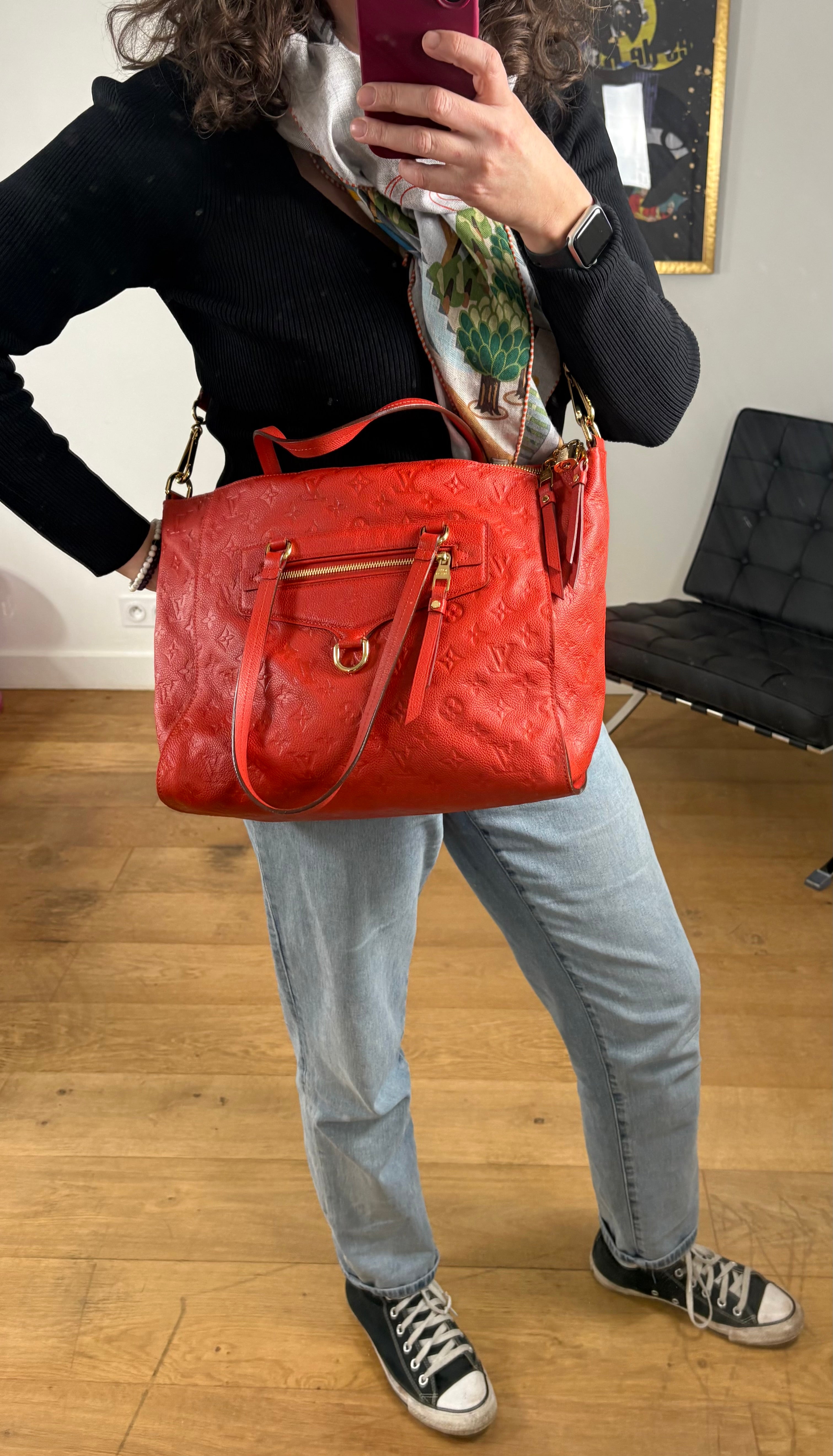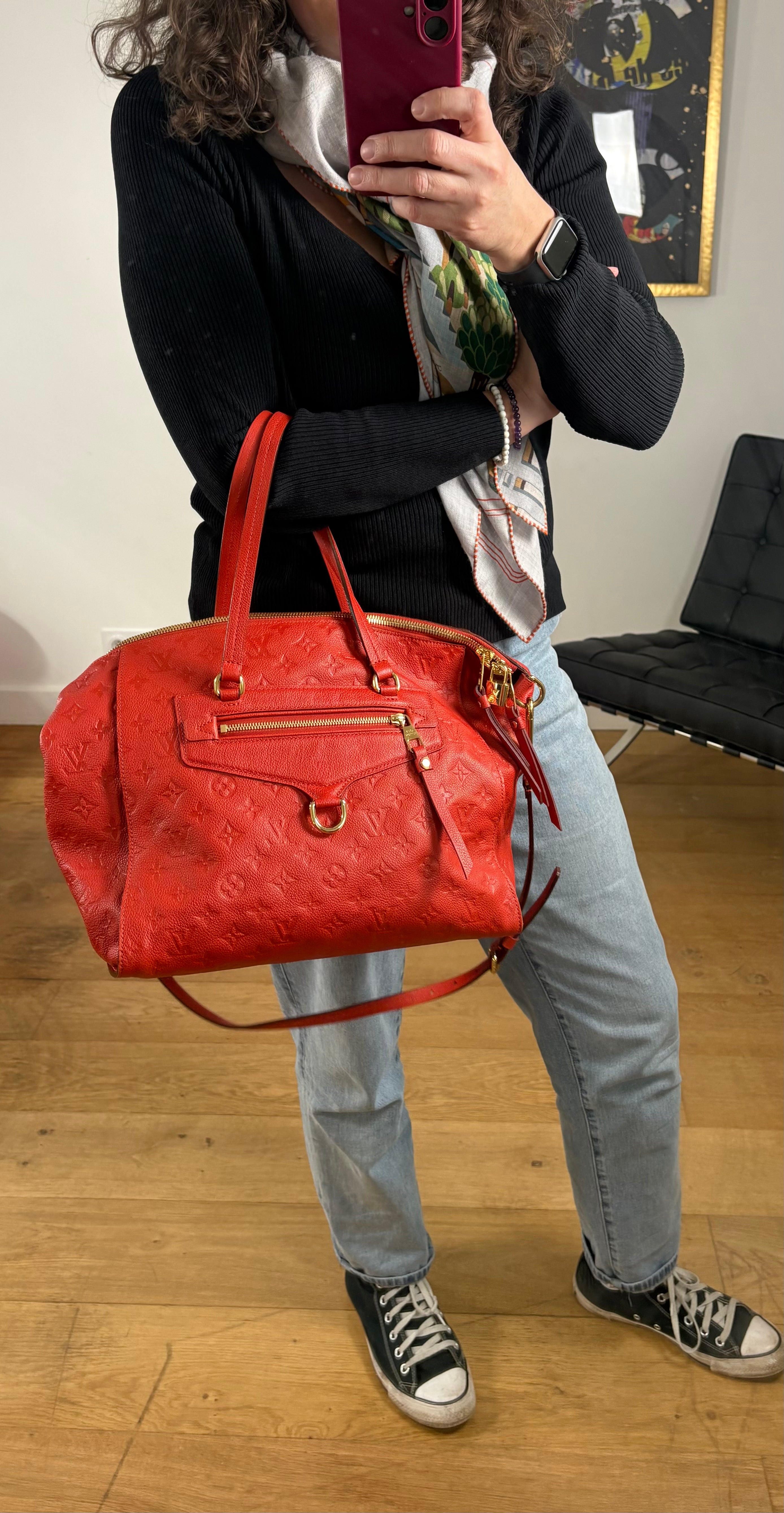 Sac Louis Vuitton Lumineuse cuir empreinte rouge