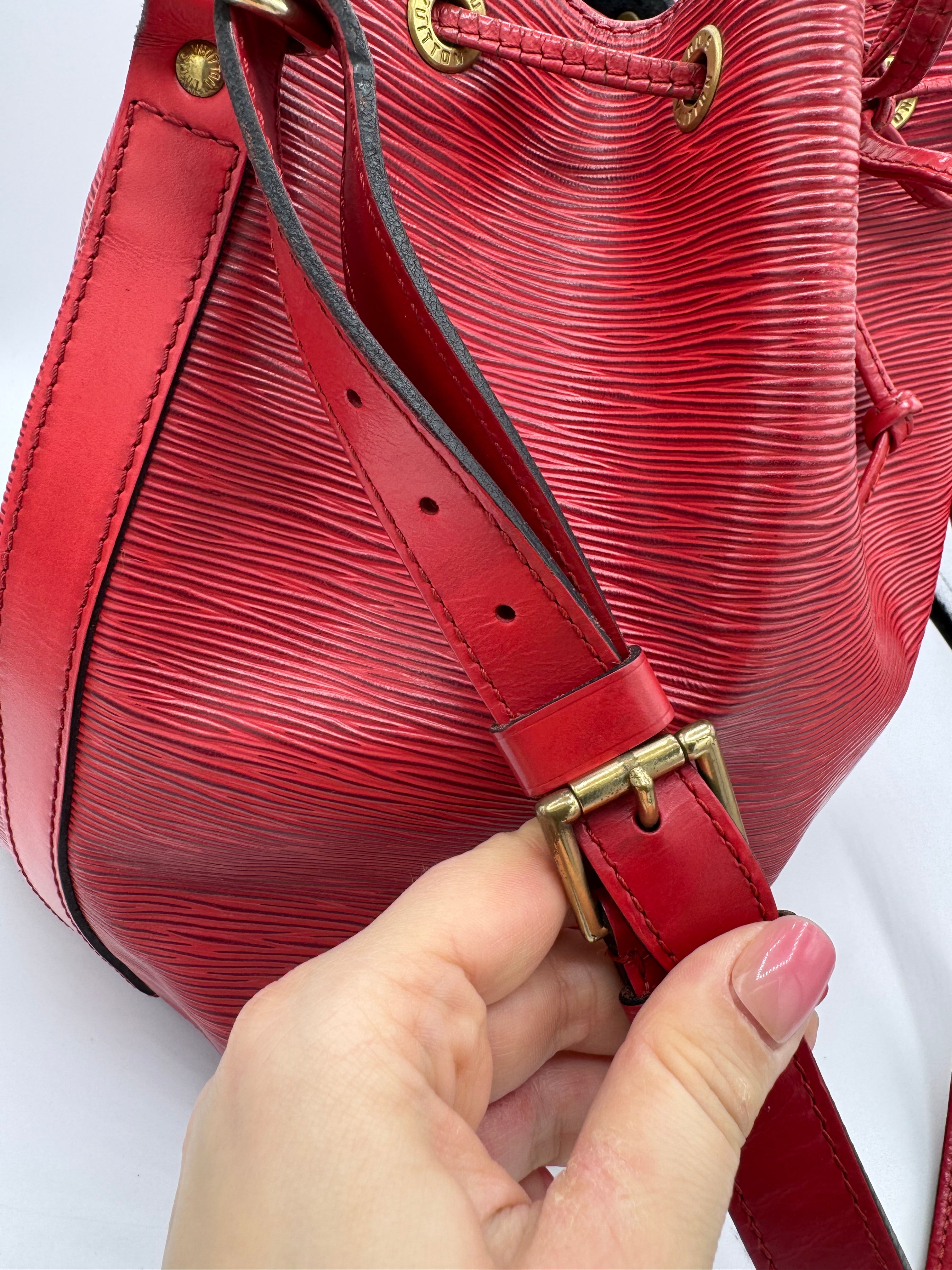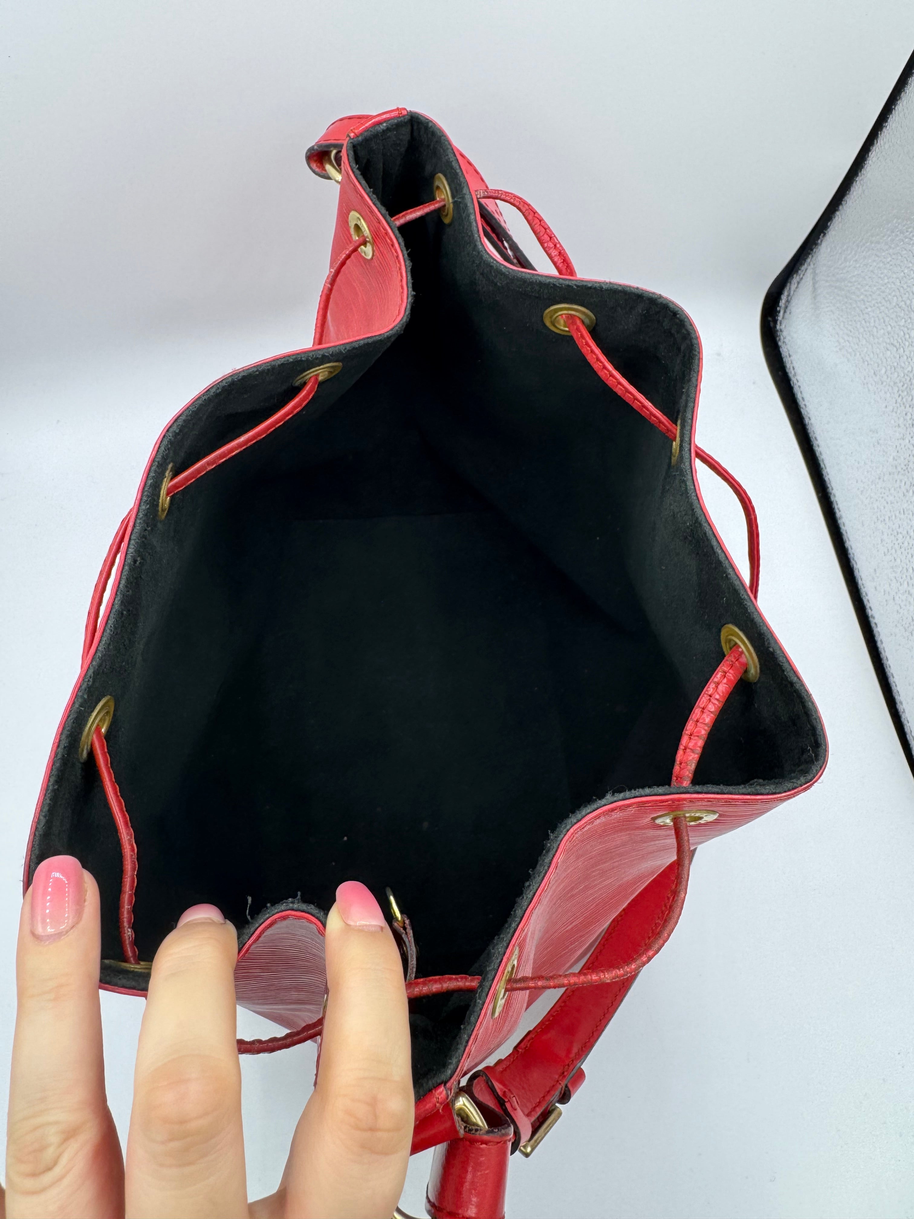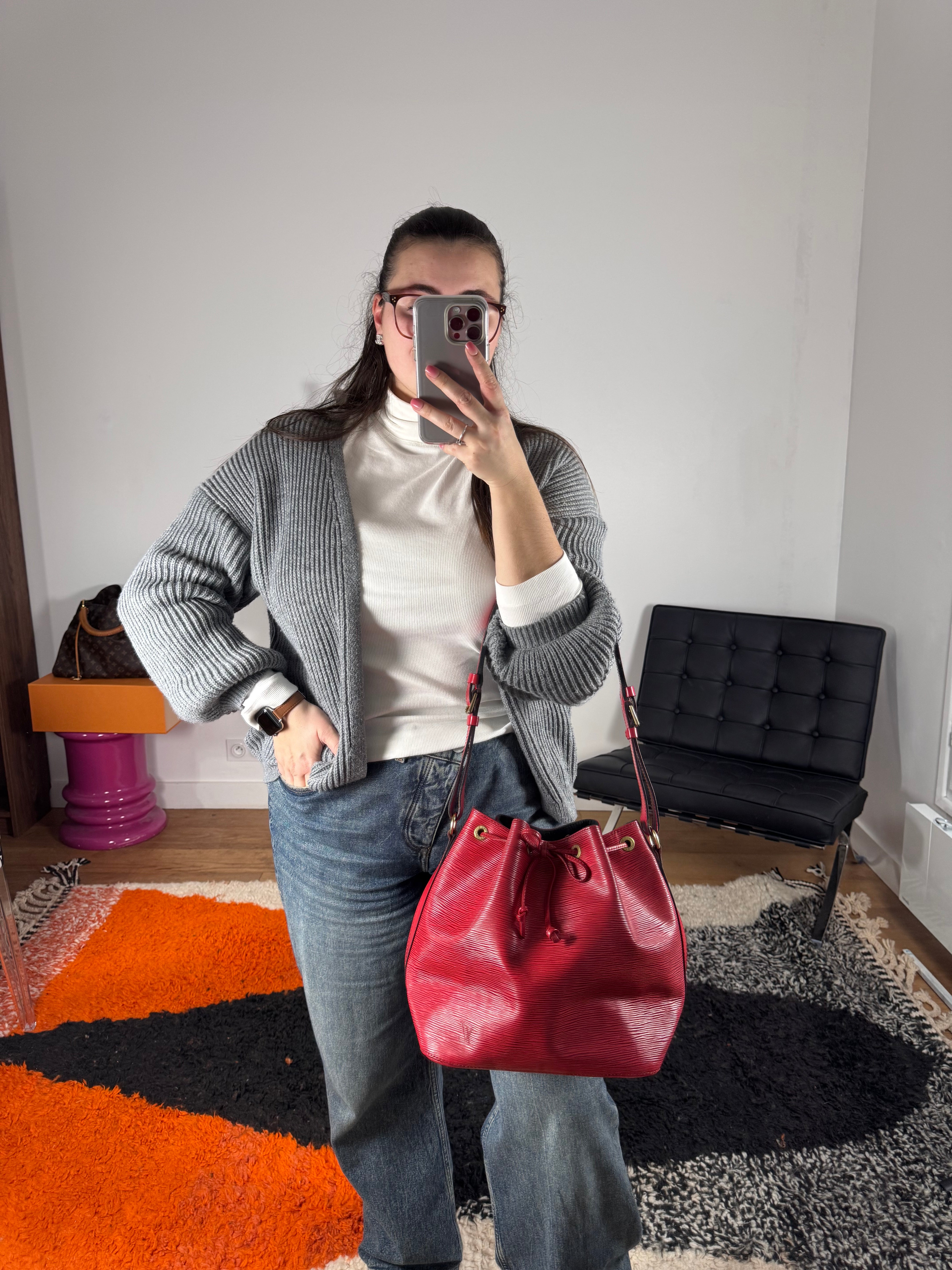 Traces légères sur les angles, visibles en photos et une trace noire très petite sur le devant du sac.