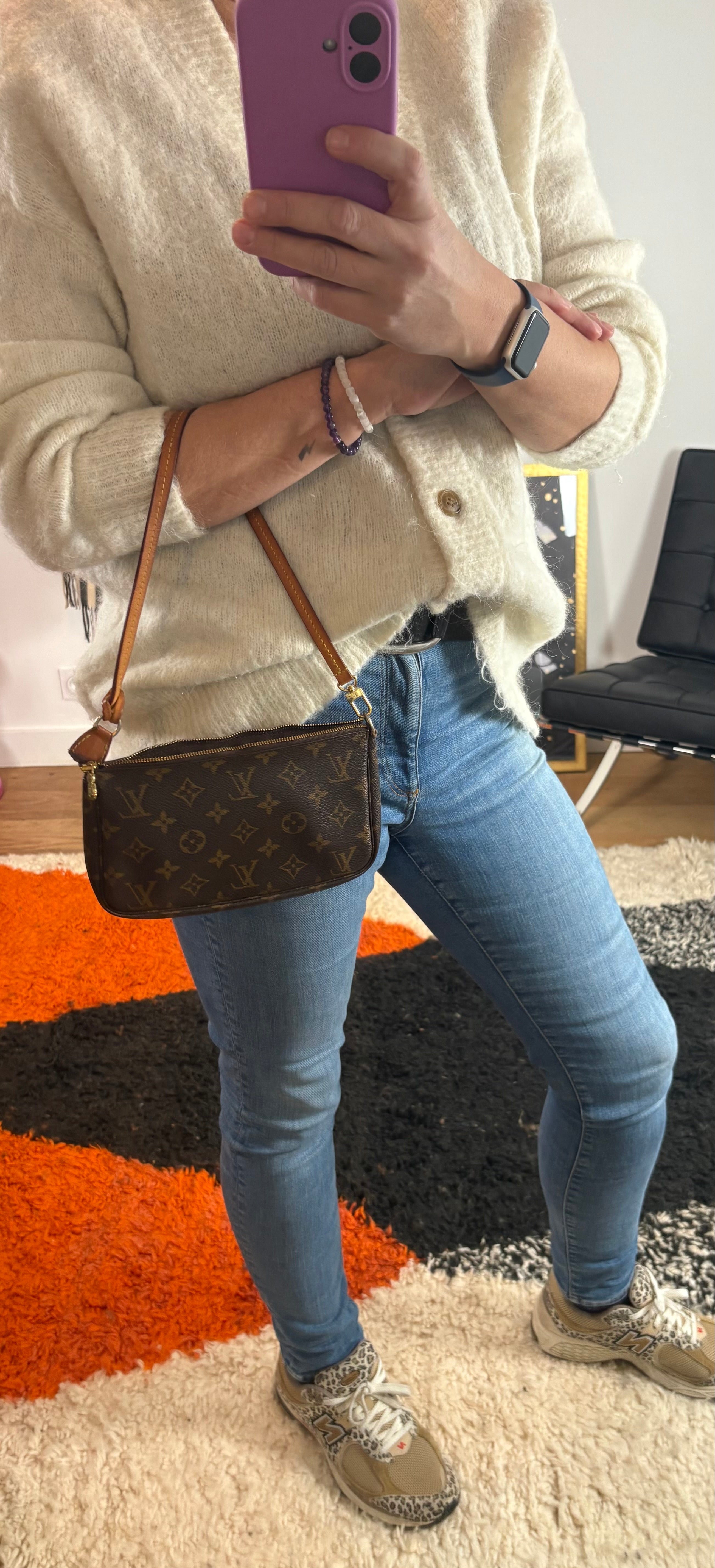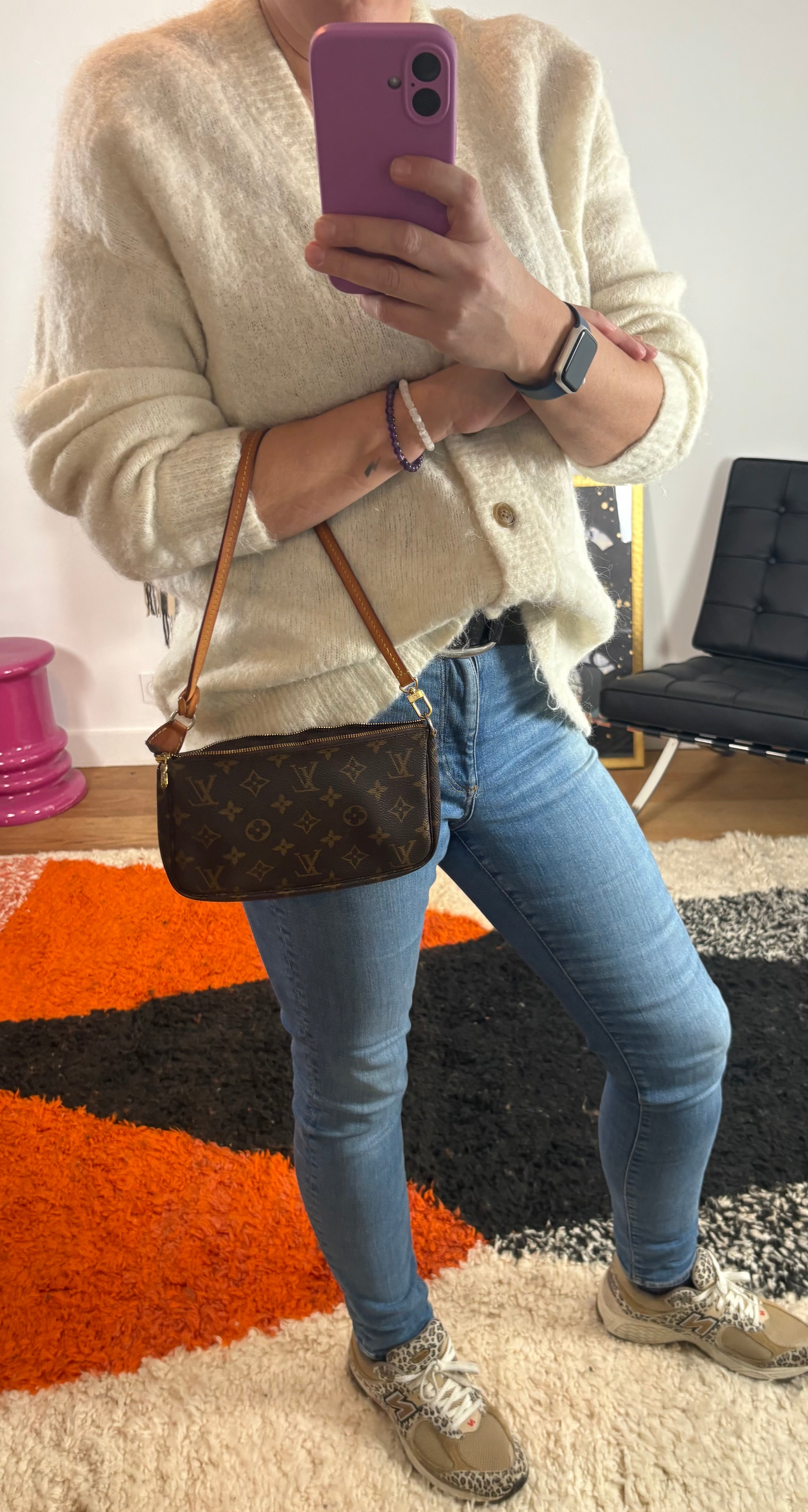 cuir patiné sur la anse du sac et bijouterie légèrement oxydée visible en photos.