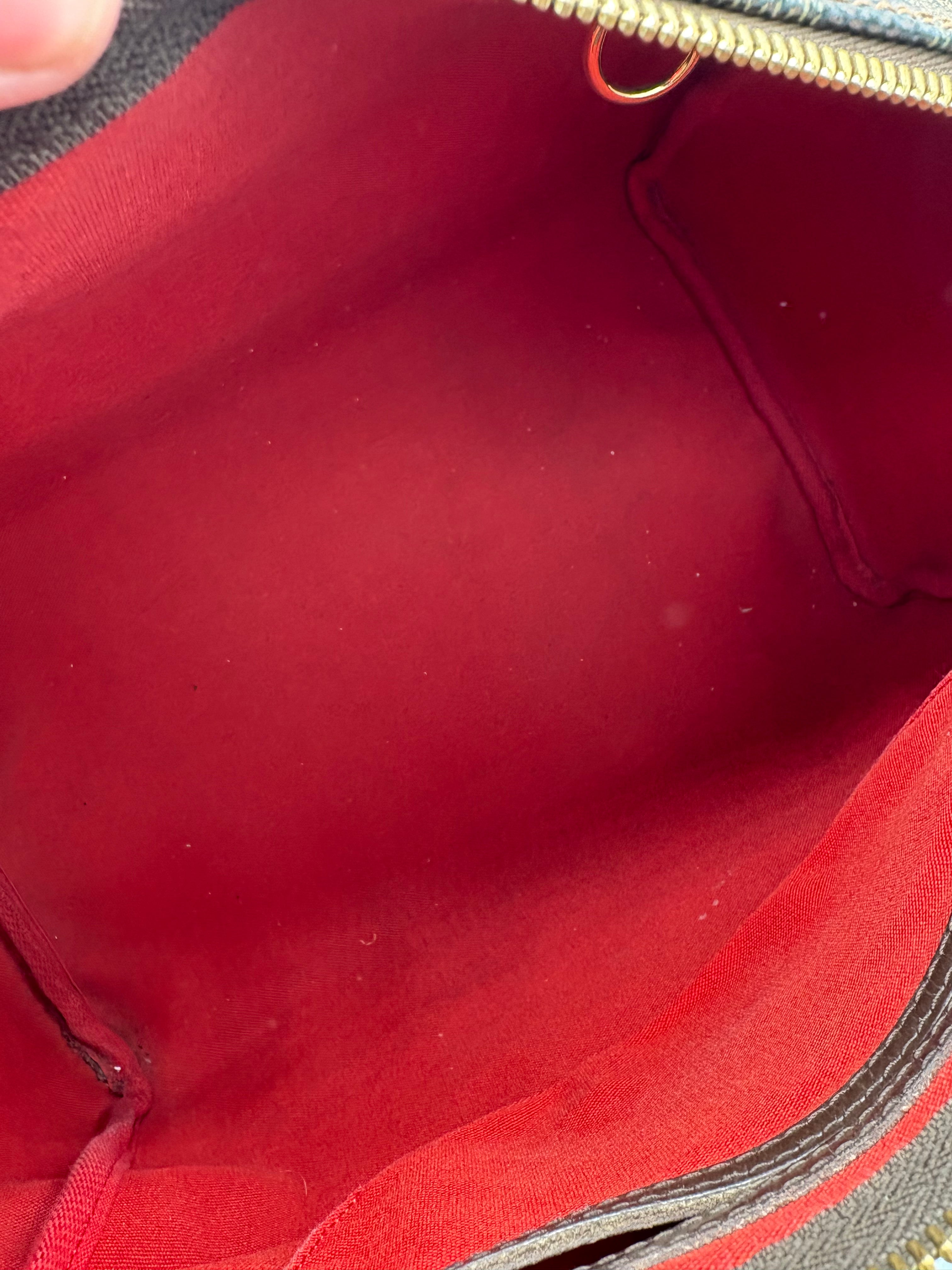 Intérieur en toile rouge en très bon état, traces dans la poche plaquée intérieure.