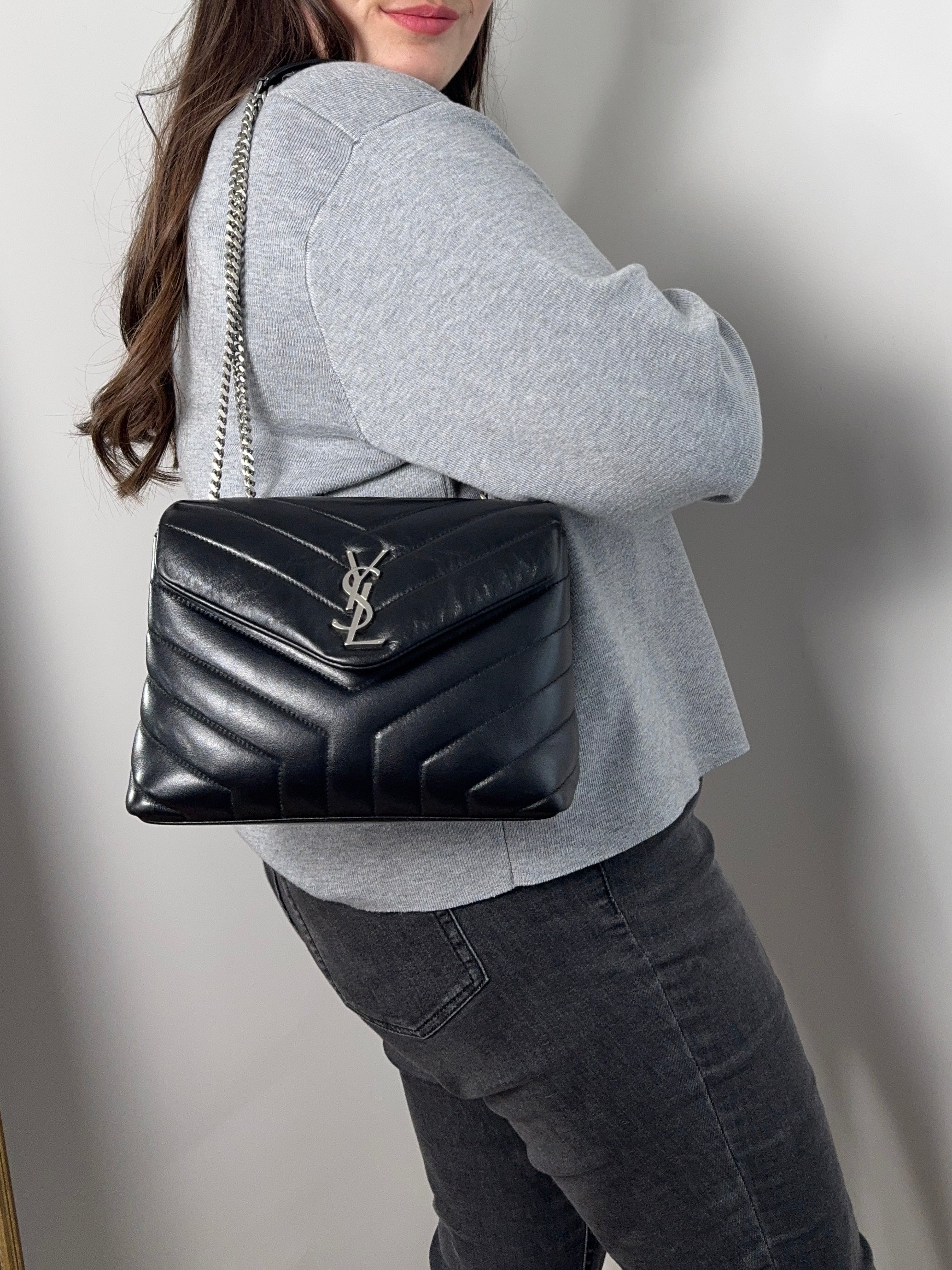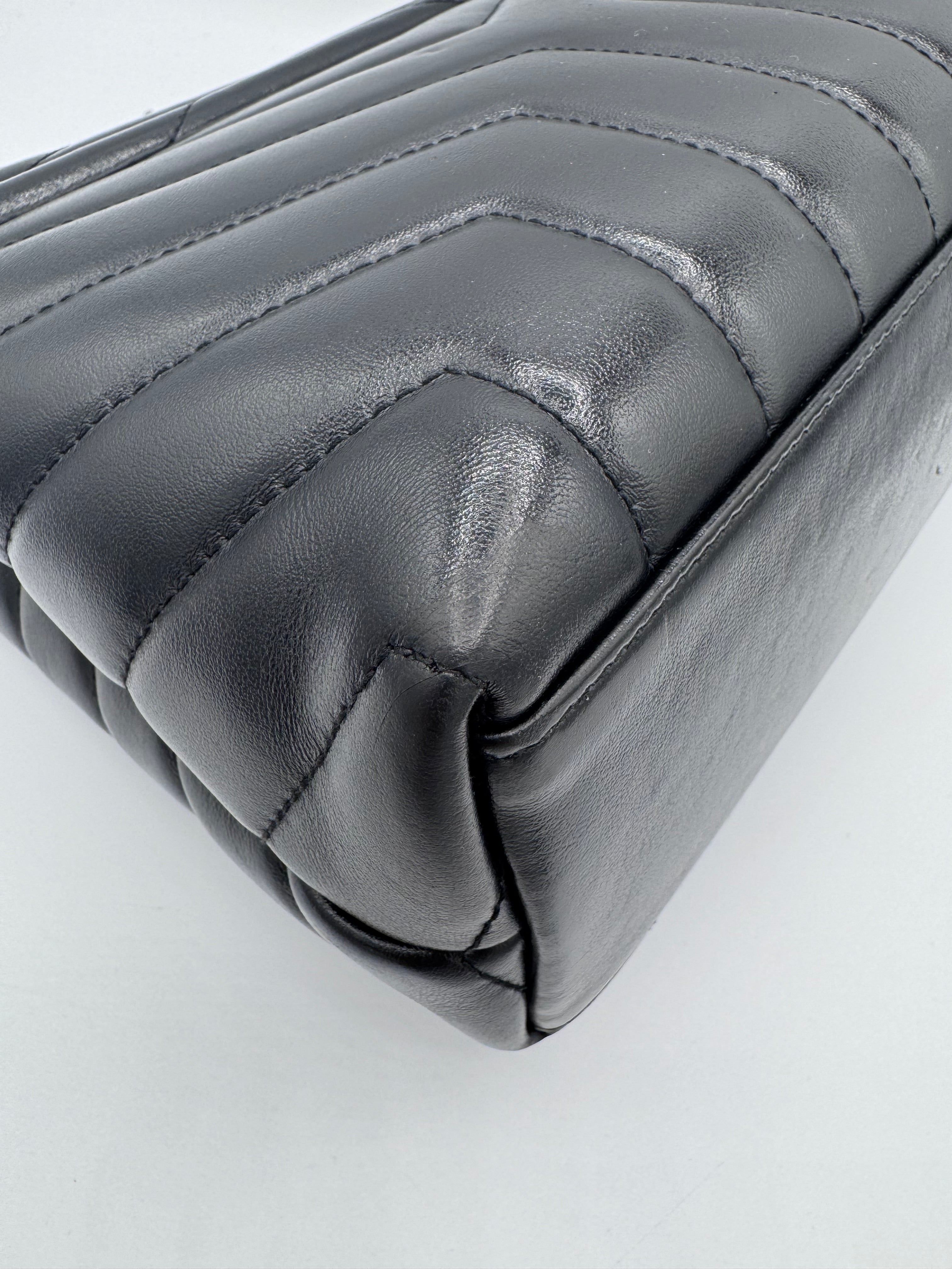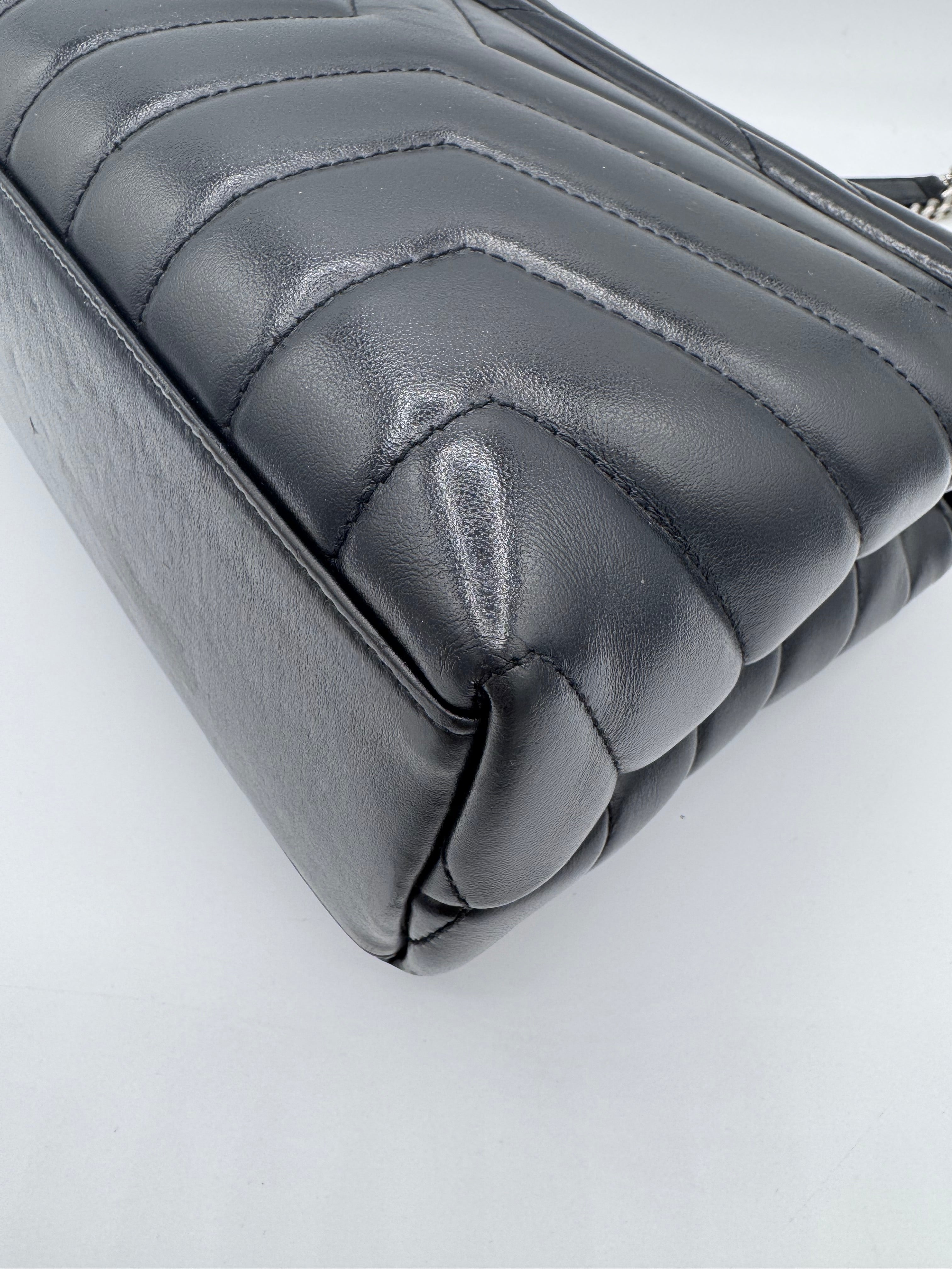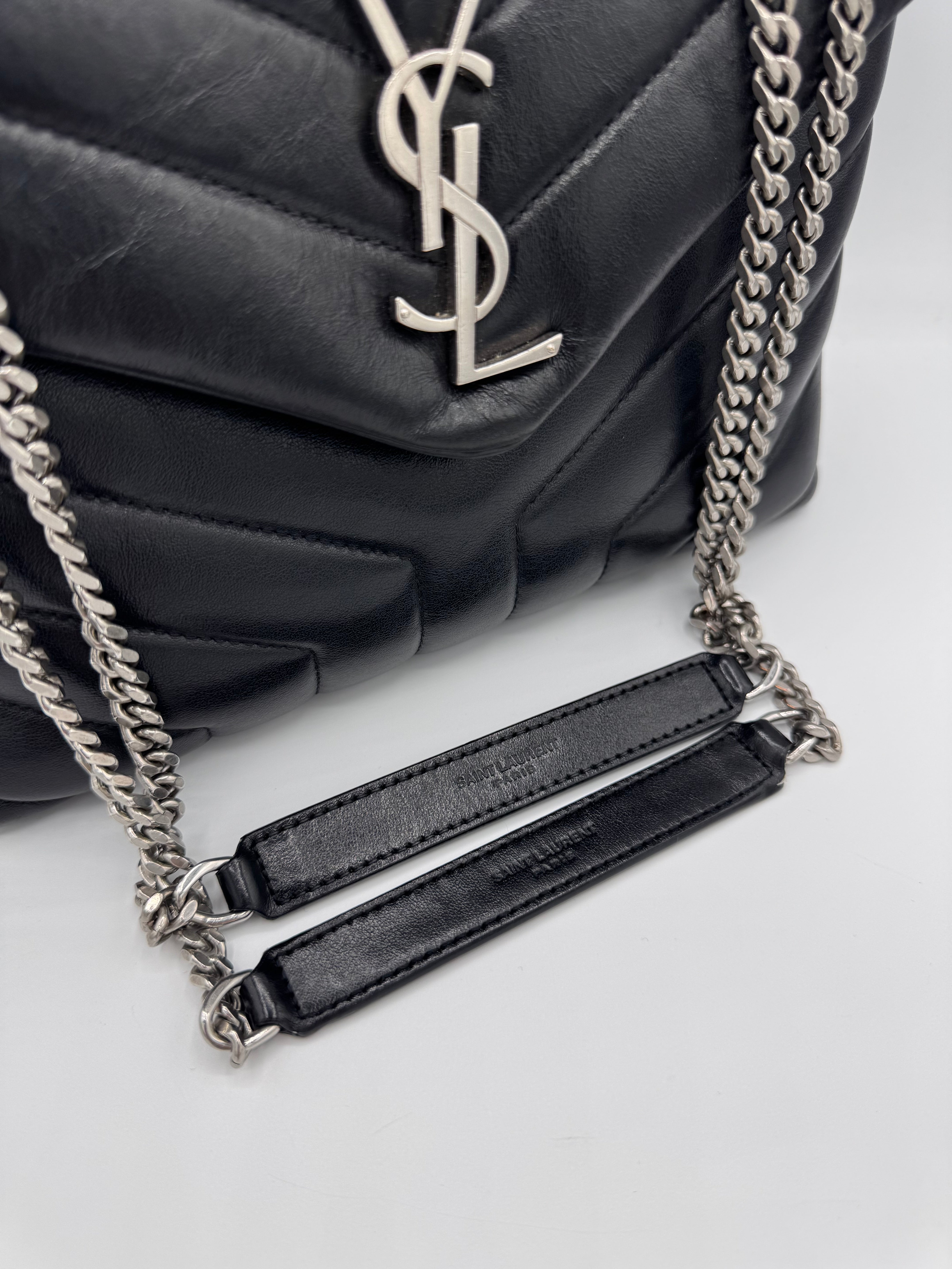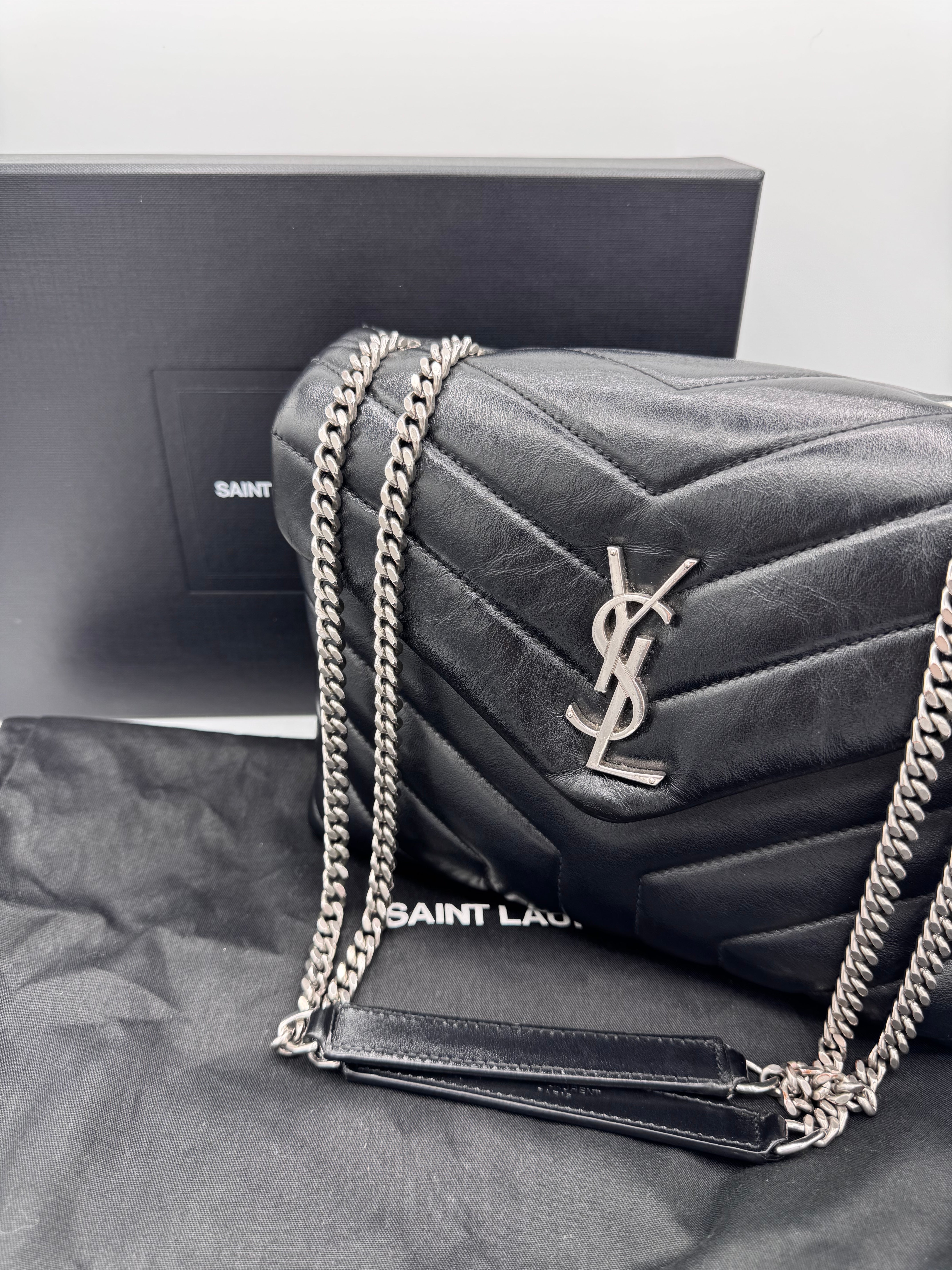 Ce Sac Loulou Small de chez Saint Laurent en cuir d’agneau et bijouterie argent, en très bon état.