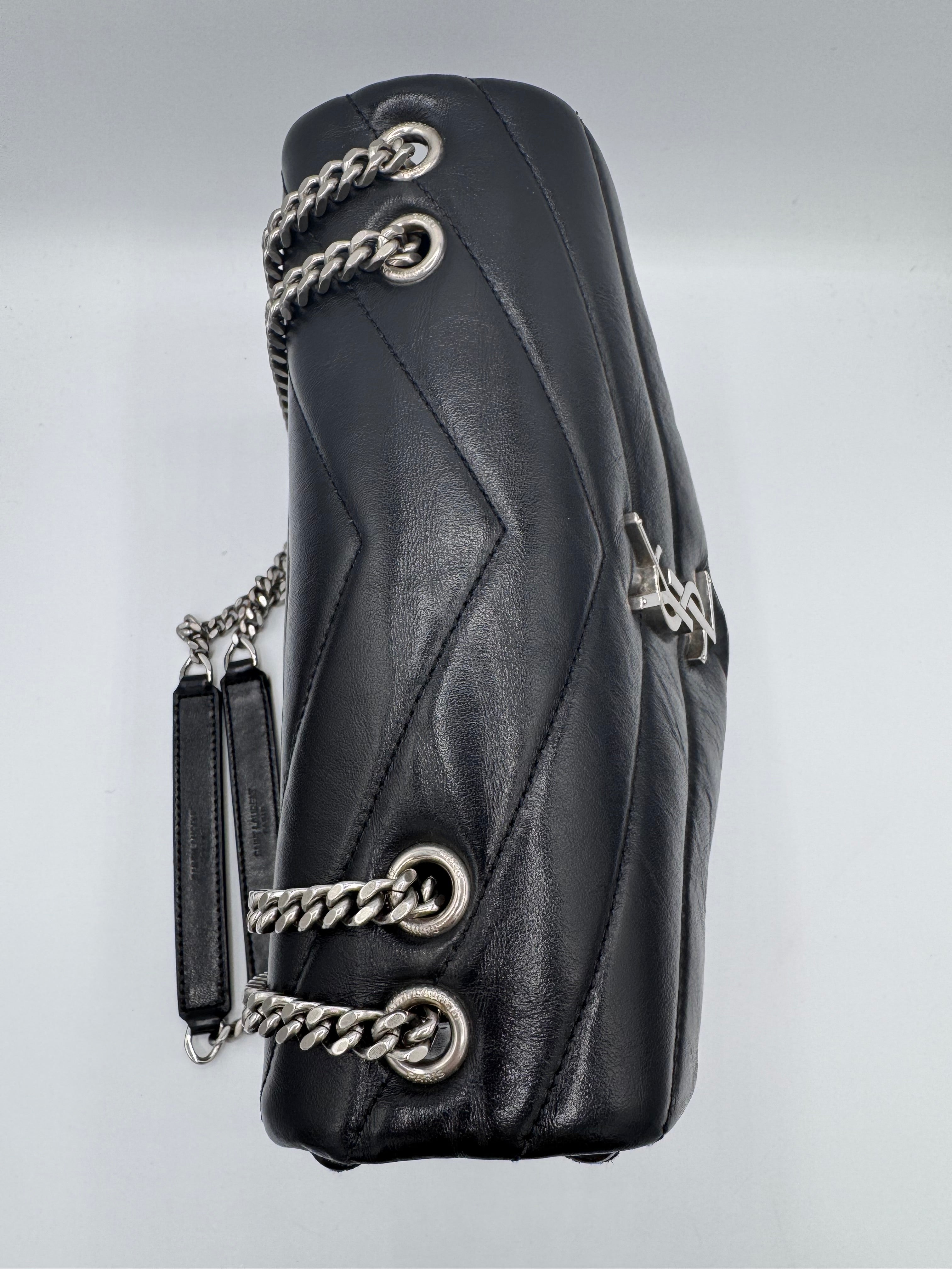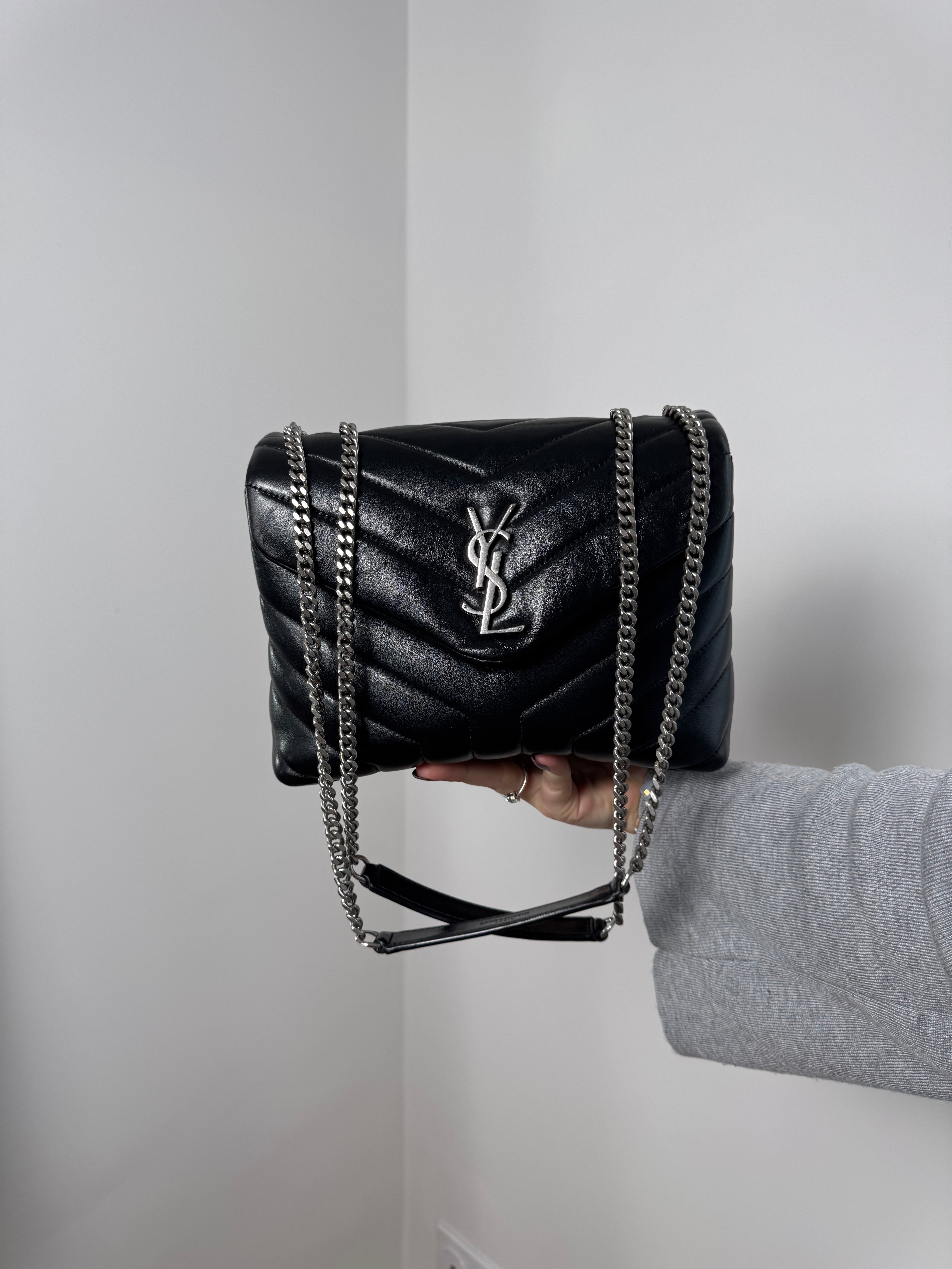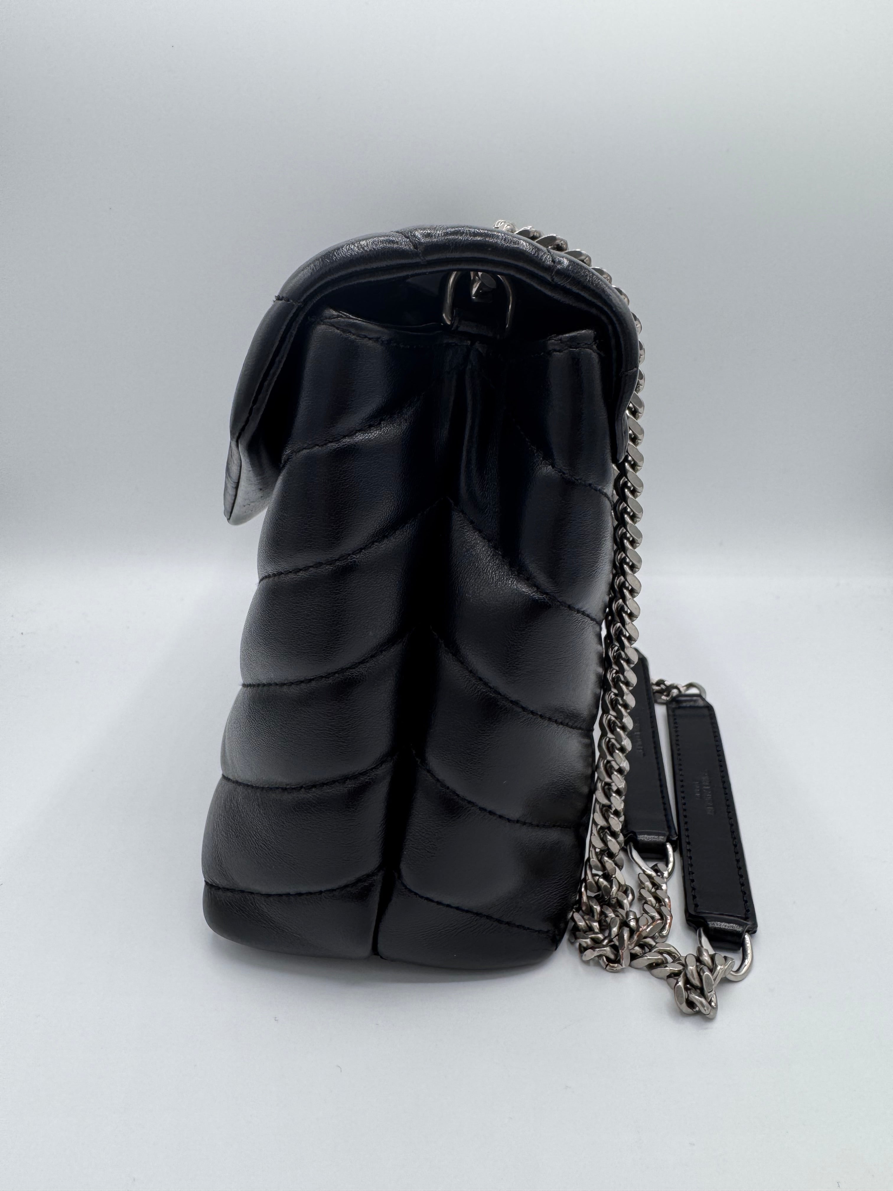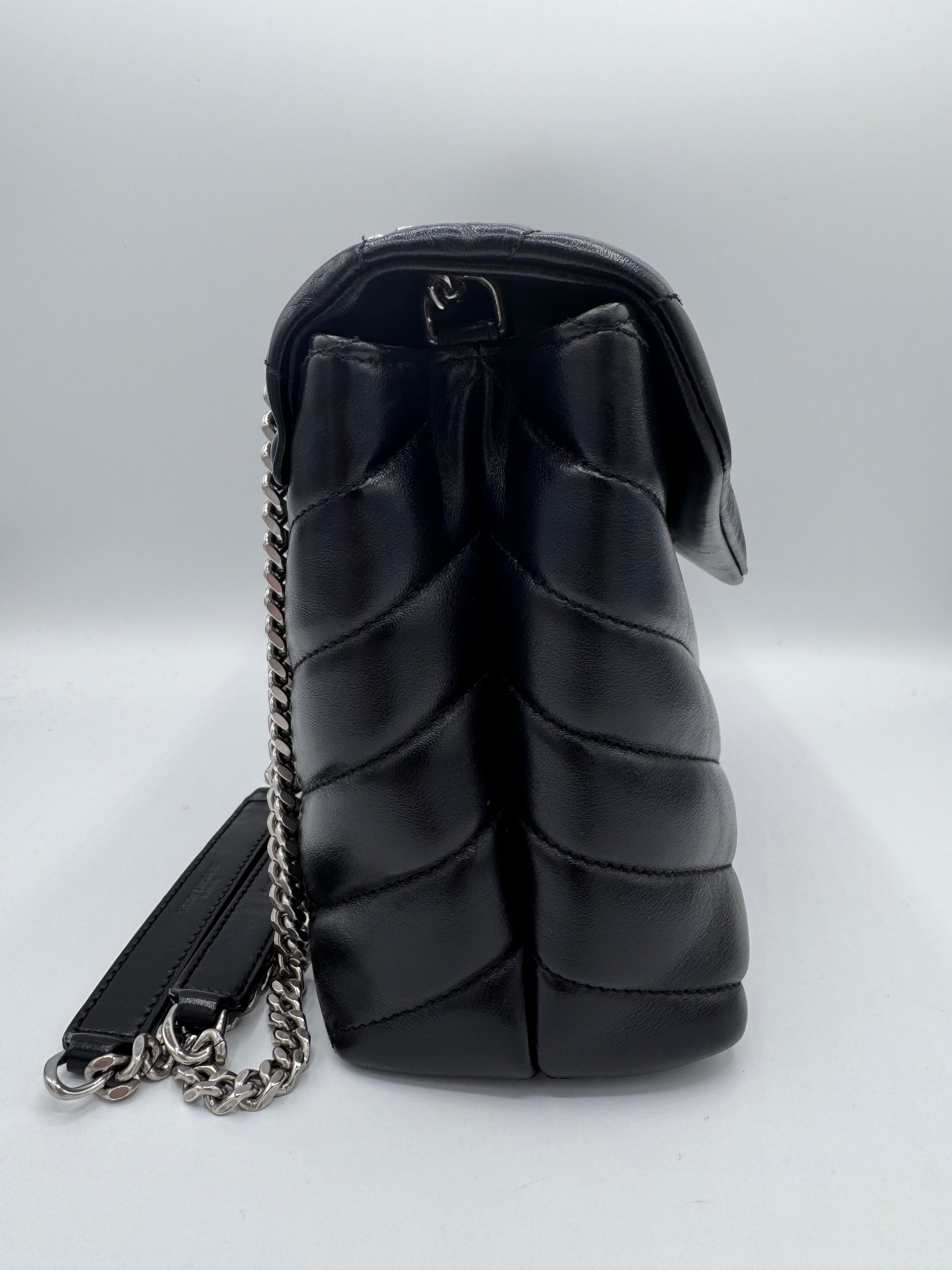 Ce Sac Loulou Small de chez Saint Laurent en cuir d’agneau et bijouterie argent, en très bon état.