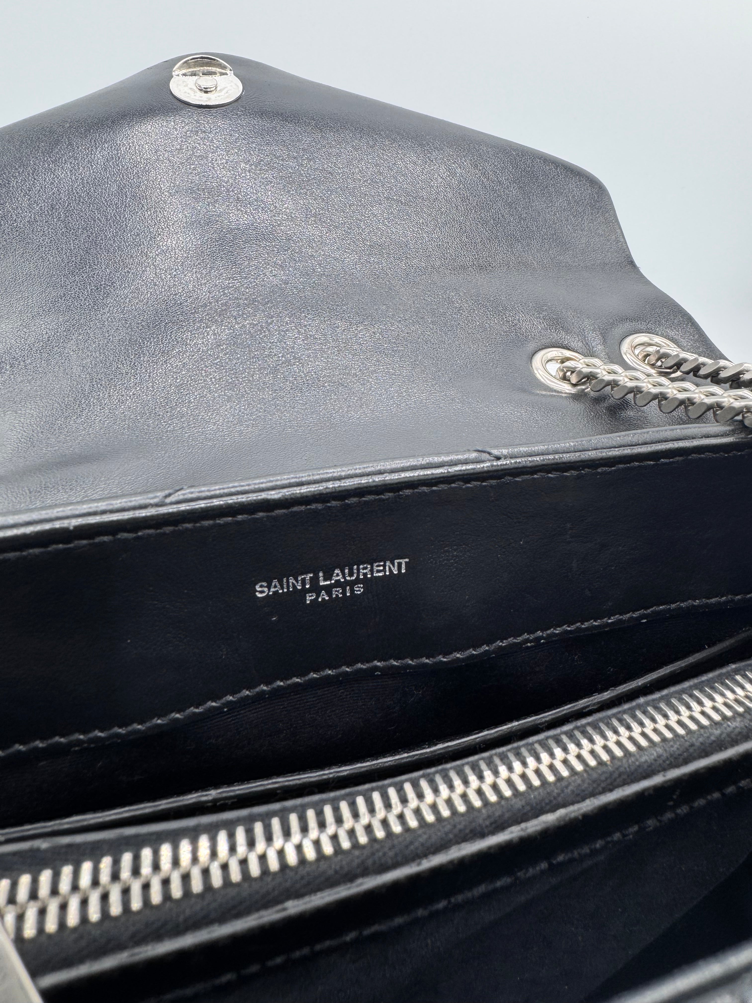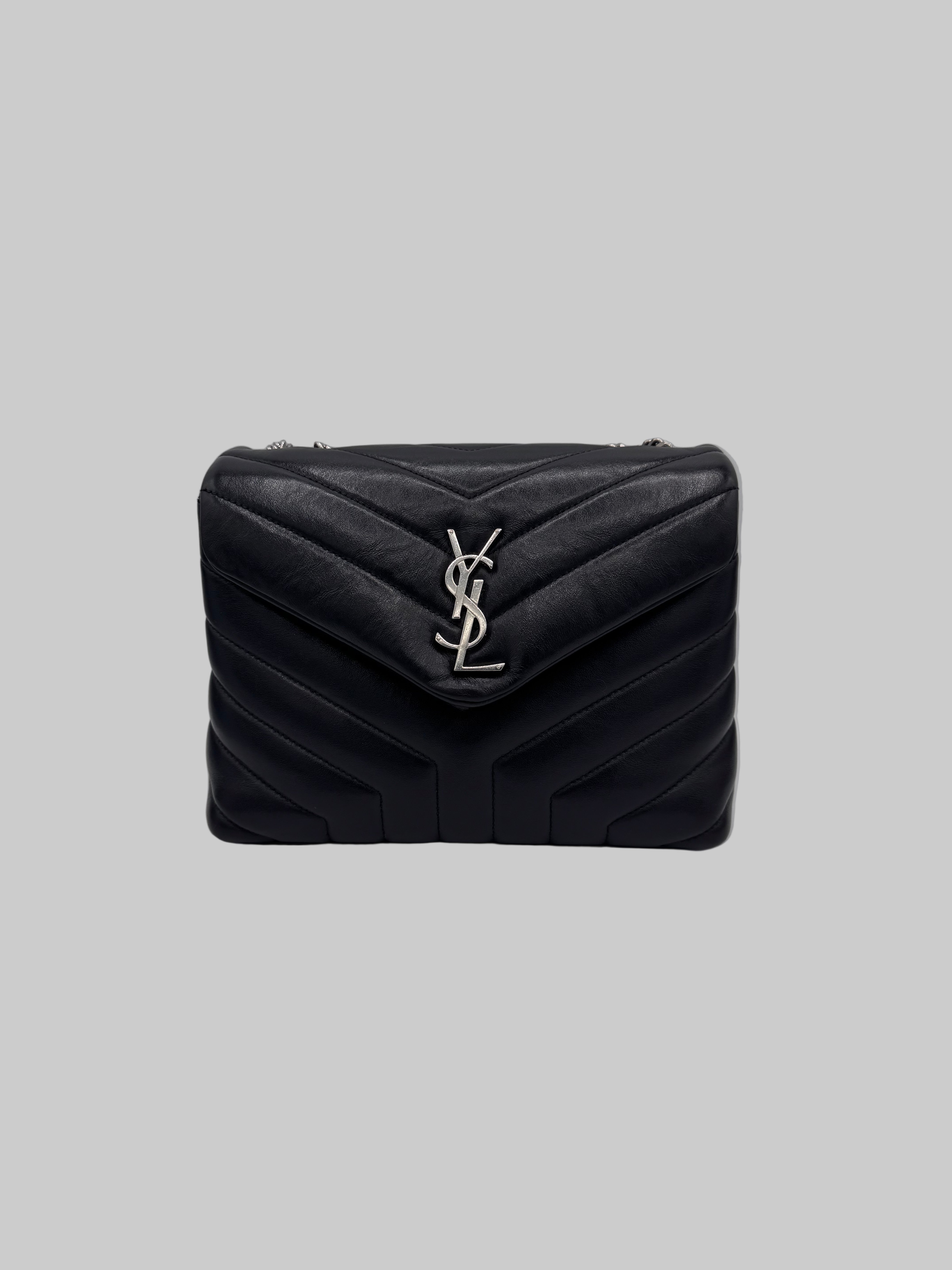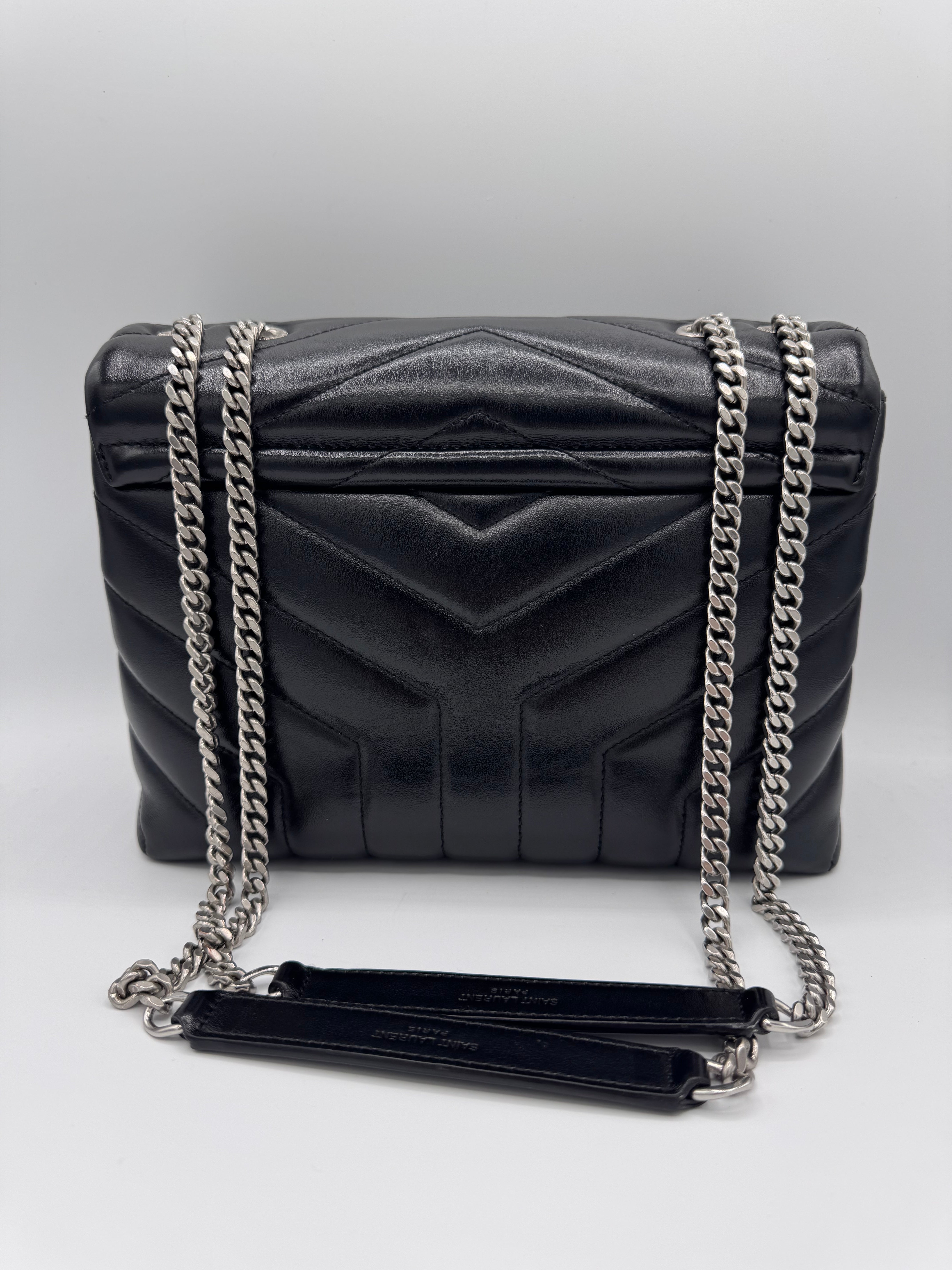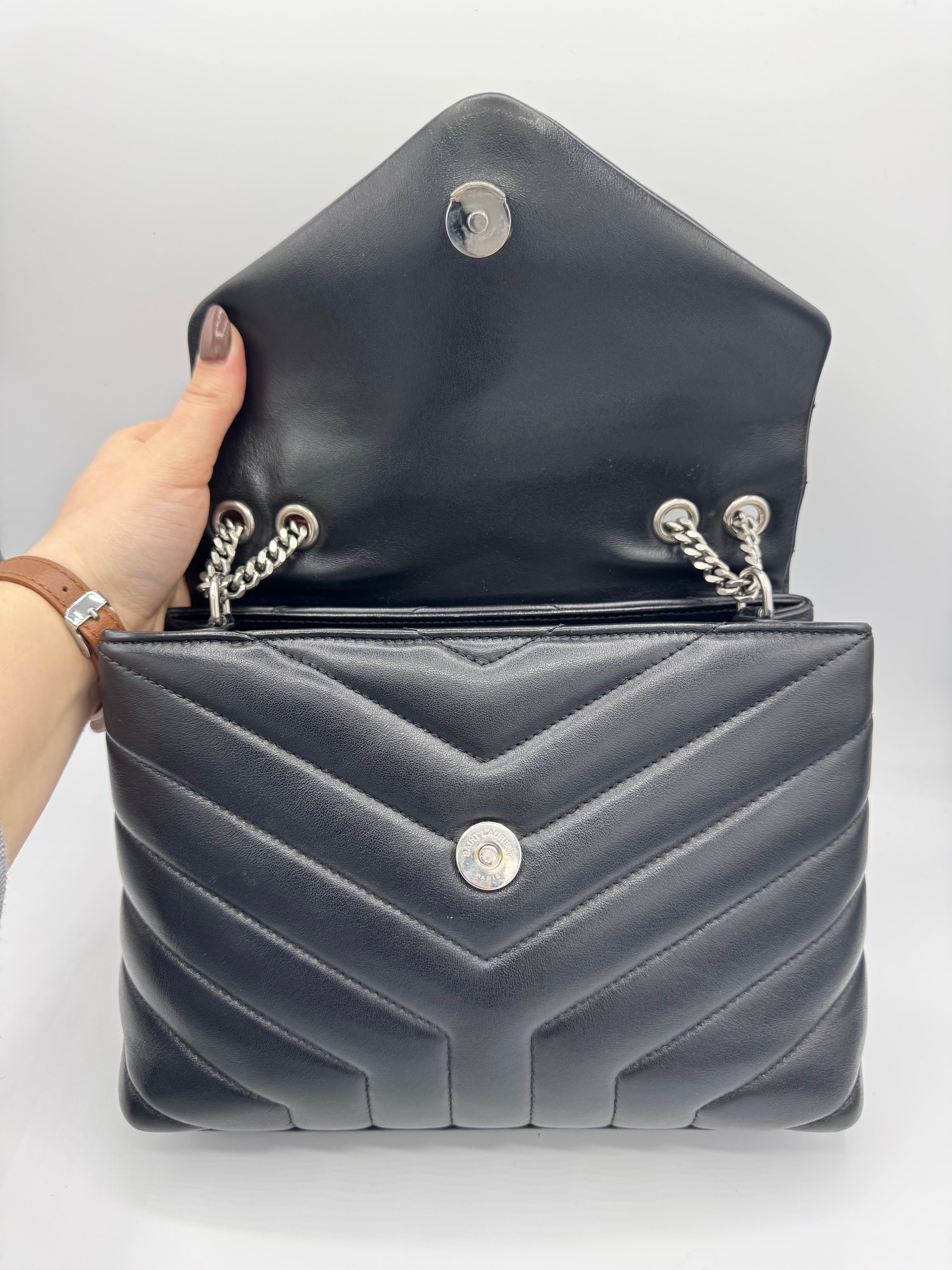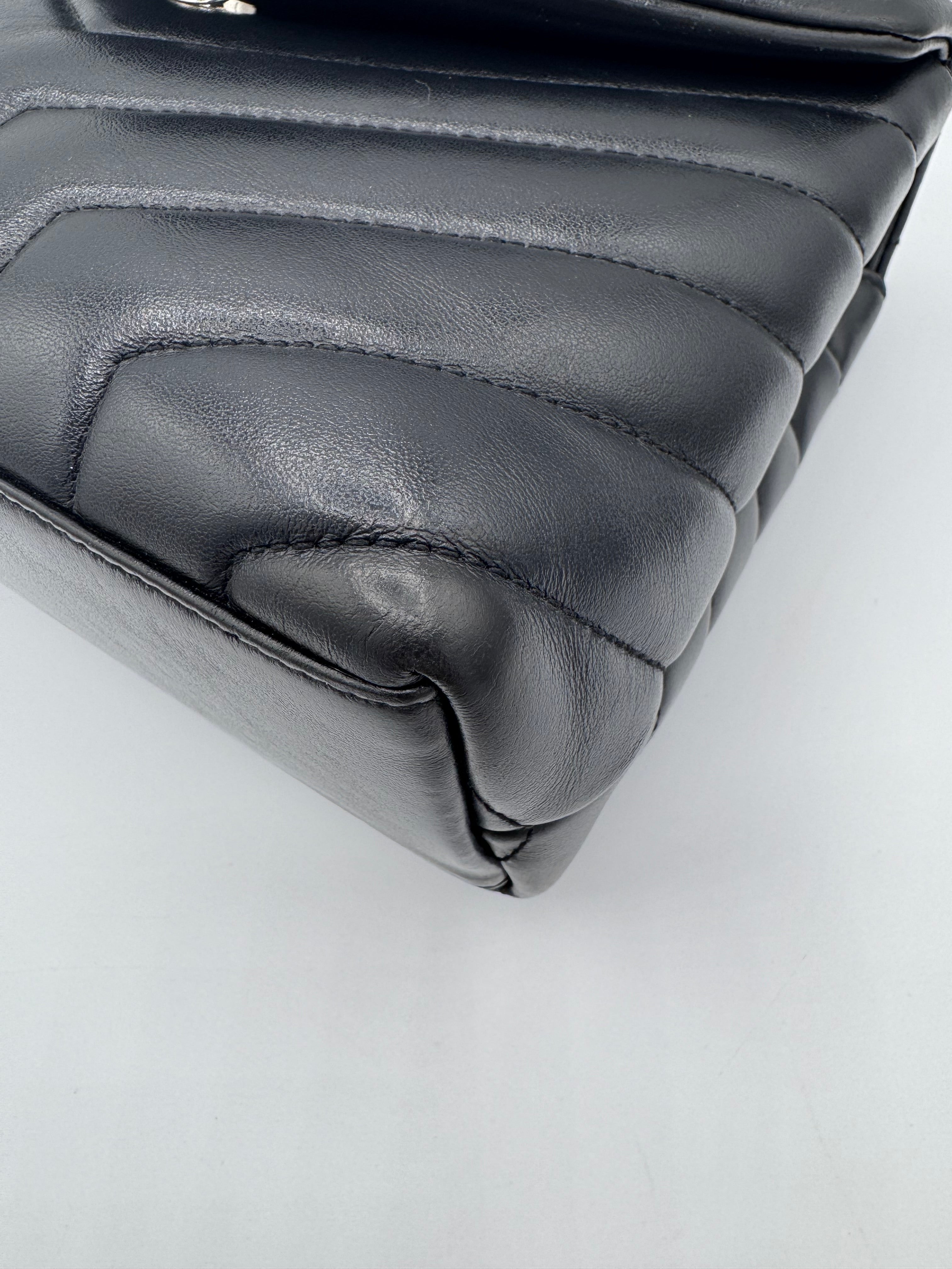 Ce Sac Loulou Small de chez Saint Laurent en cuir d’agneau et bijouterie argent, en très bon état.