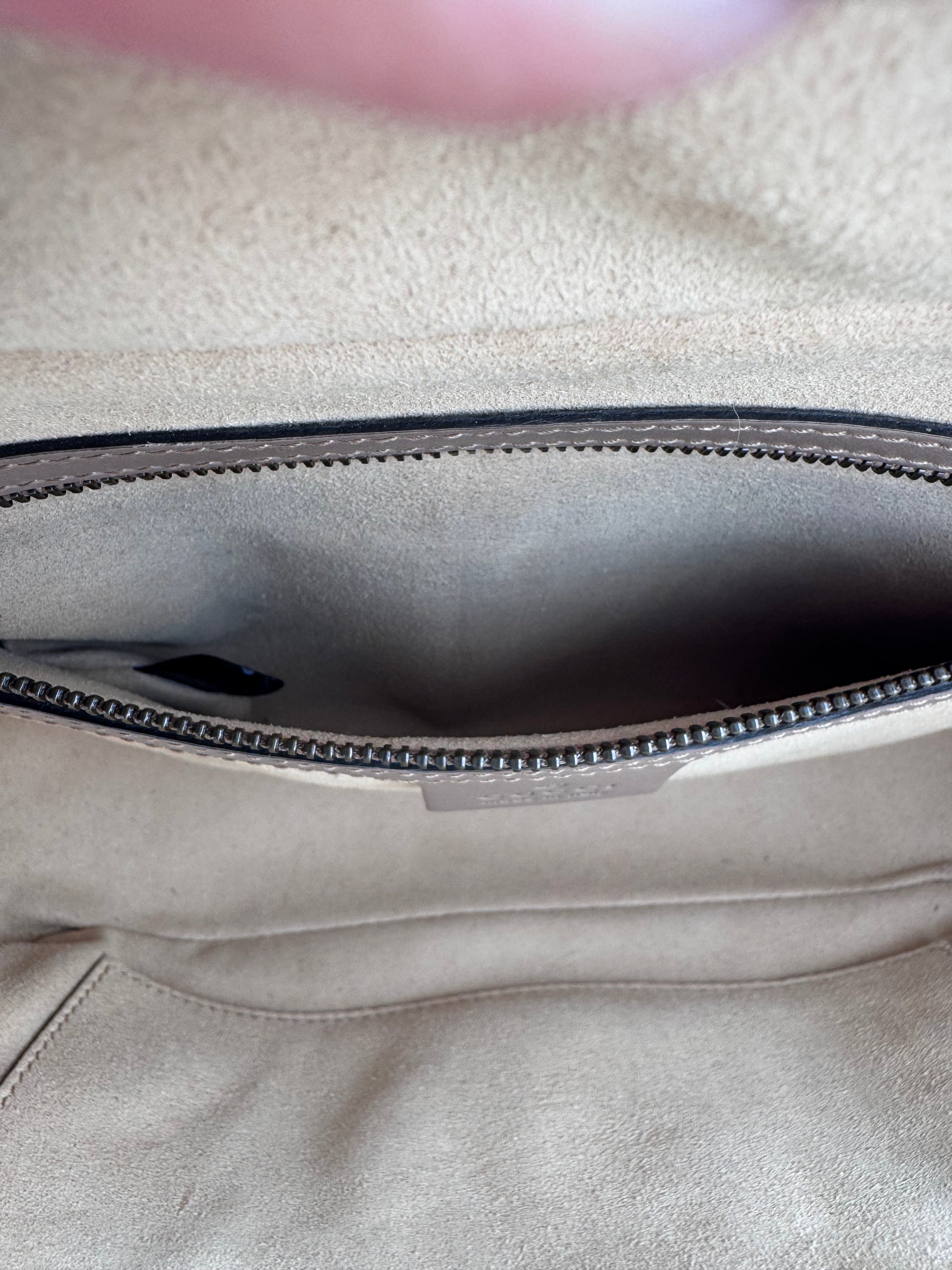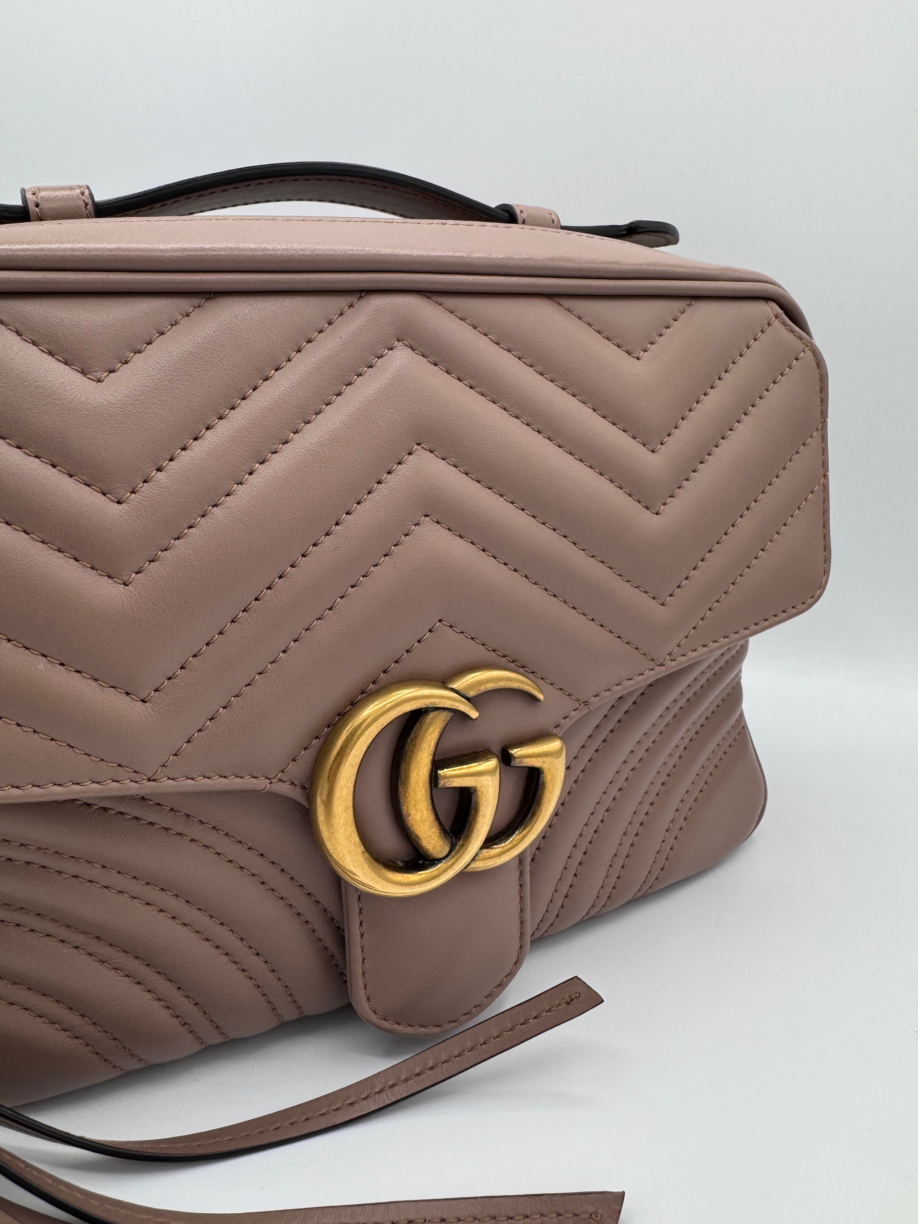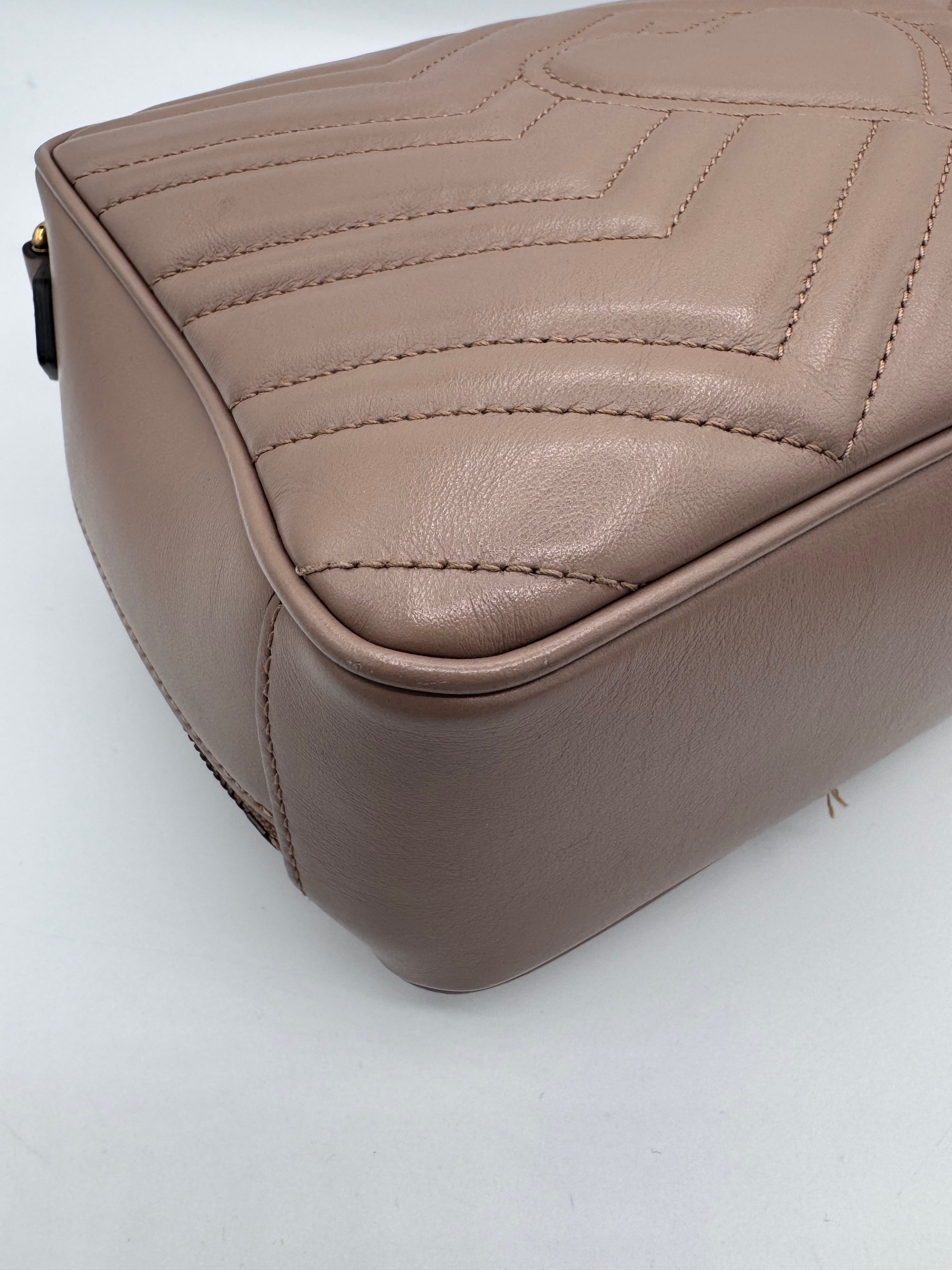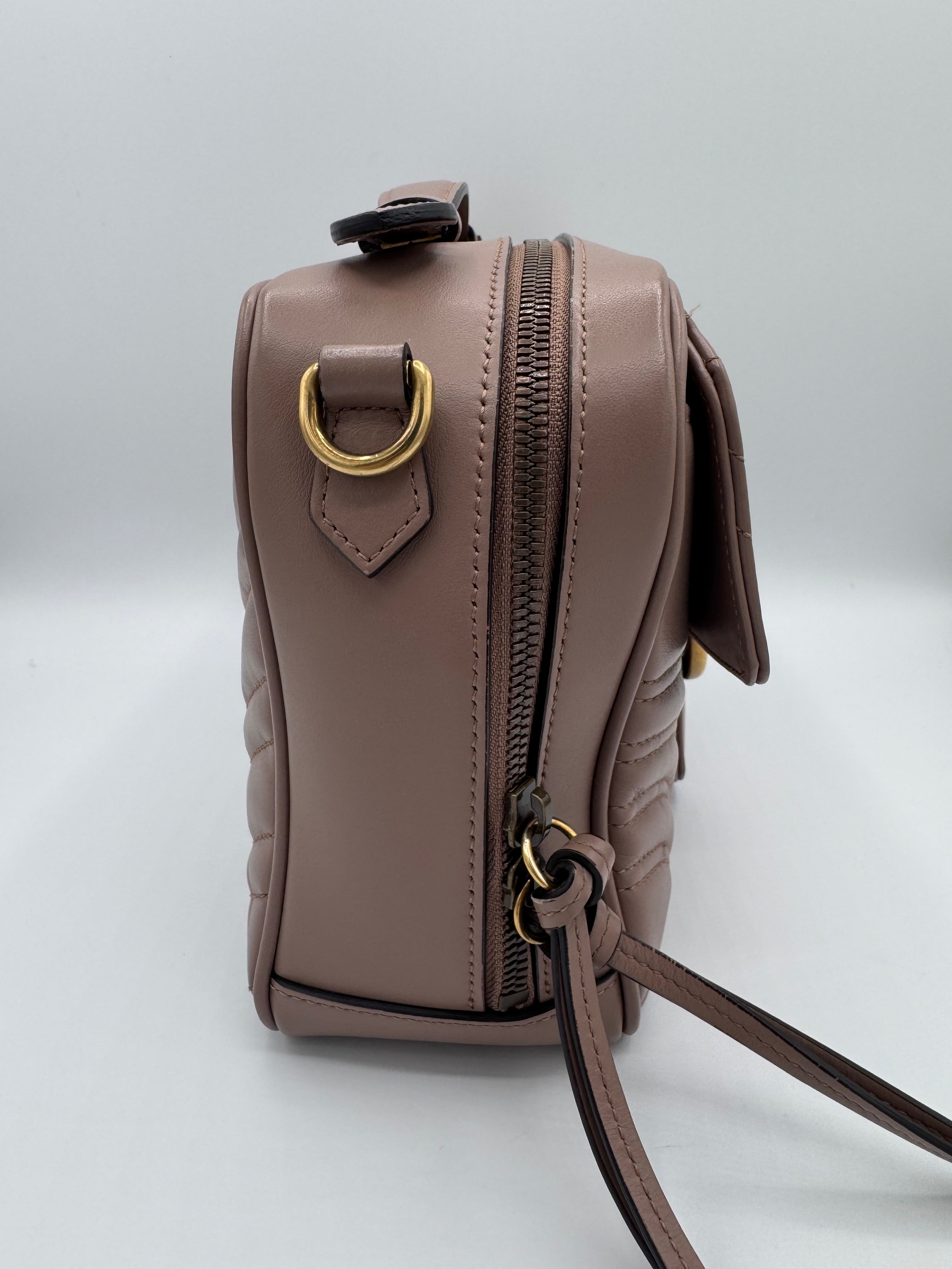 Sac GG Marmont Gucci, en cuir de veau taupe, en état excellent.