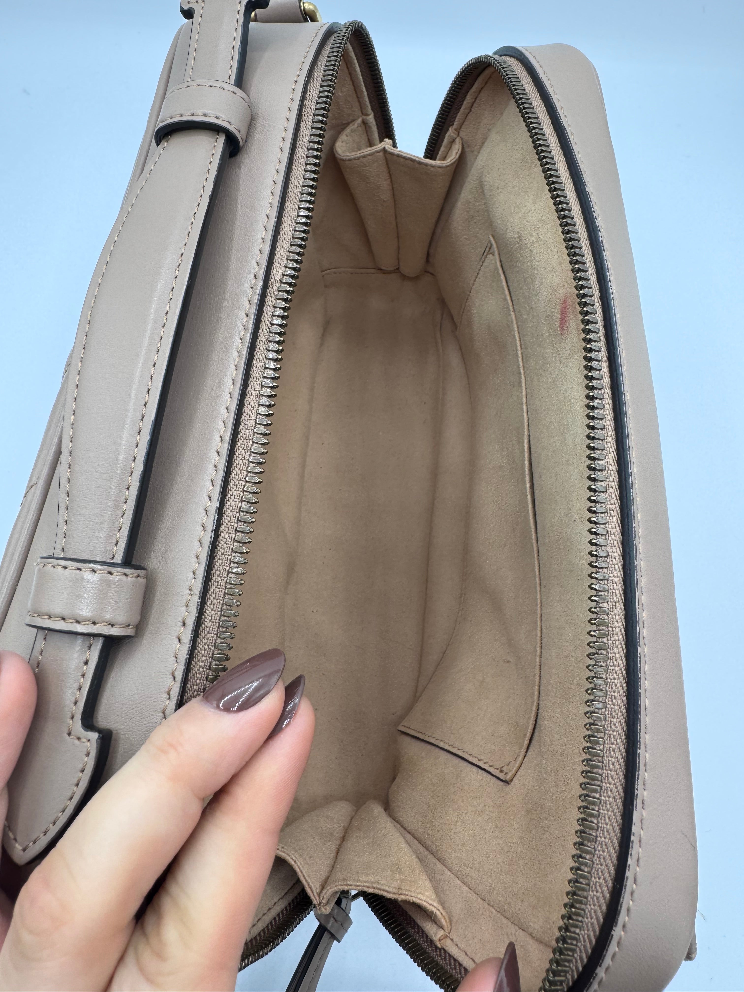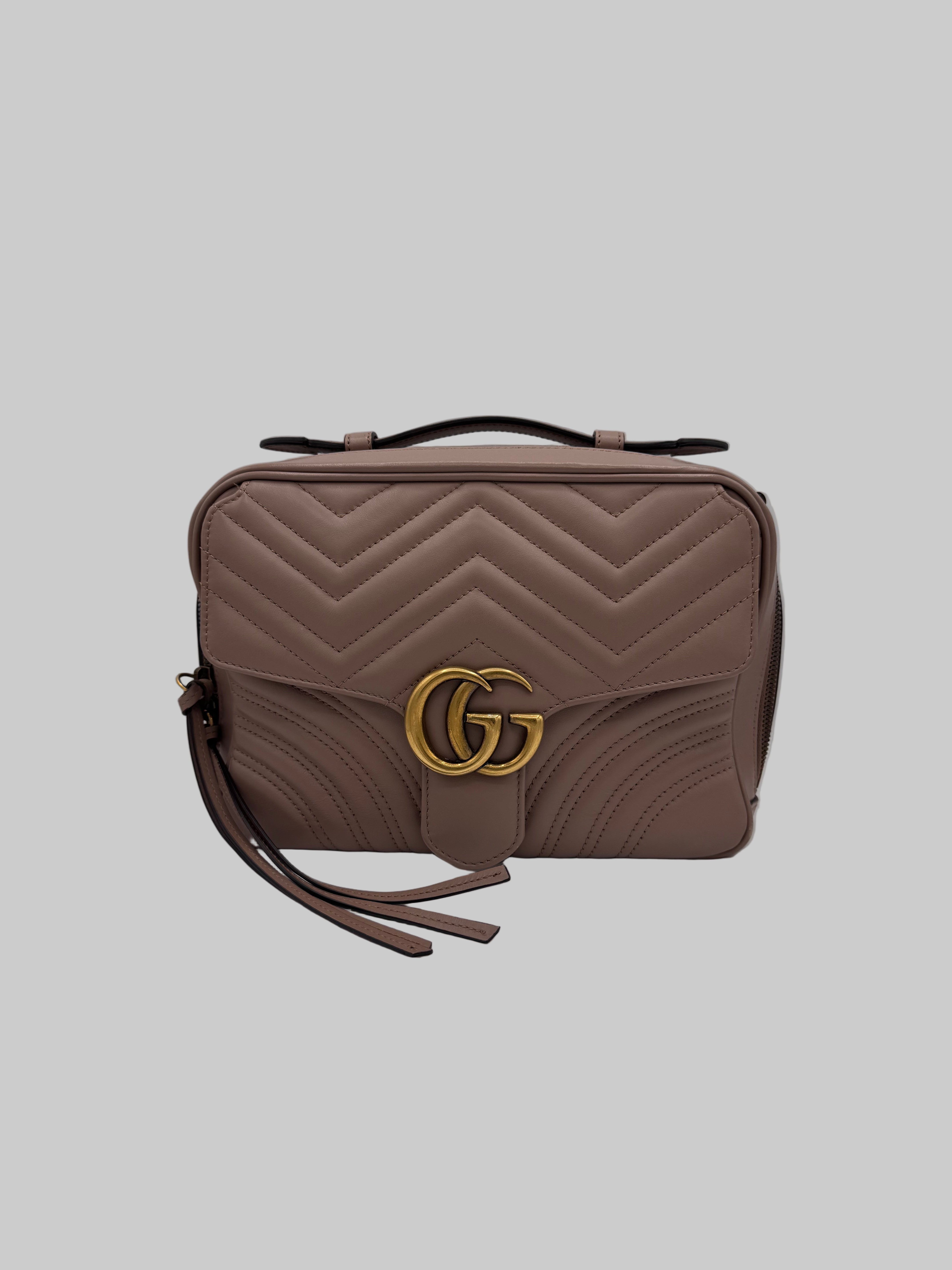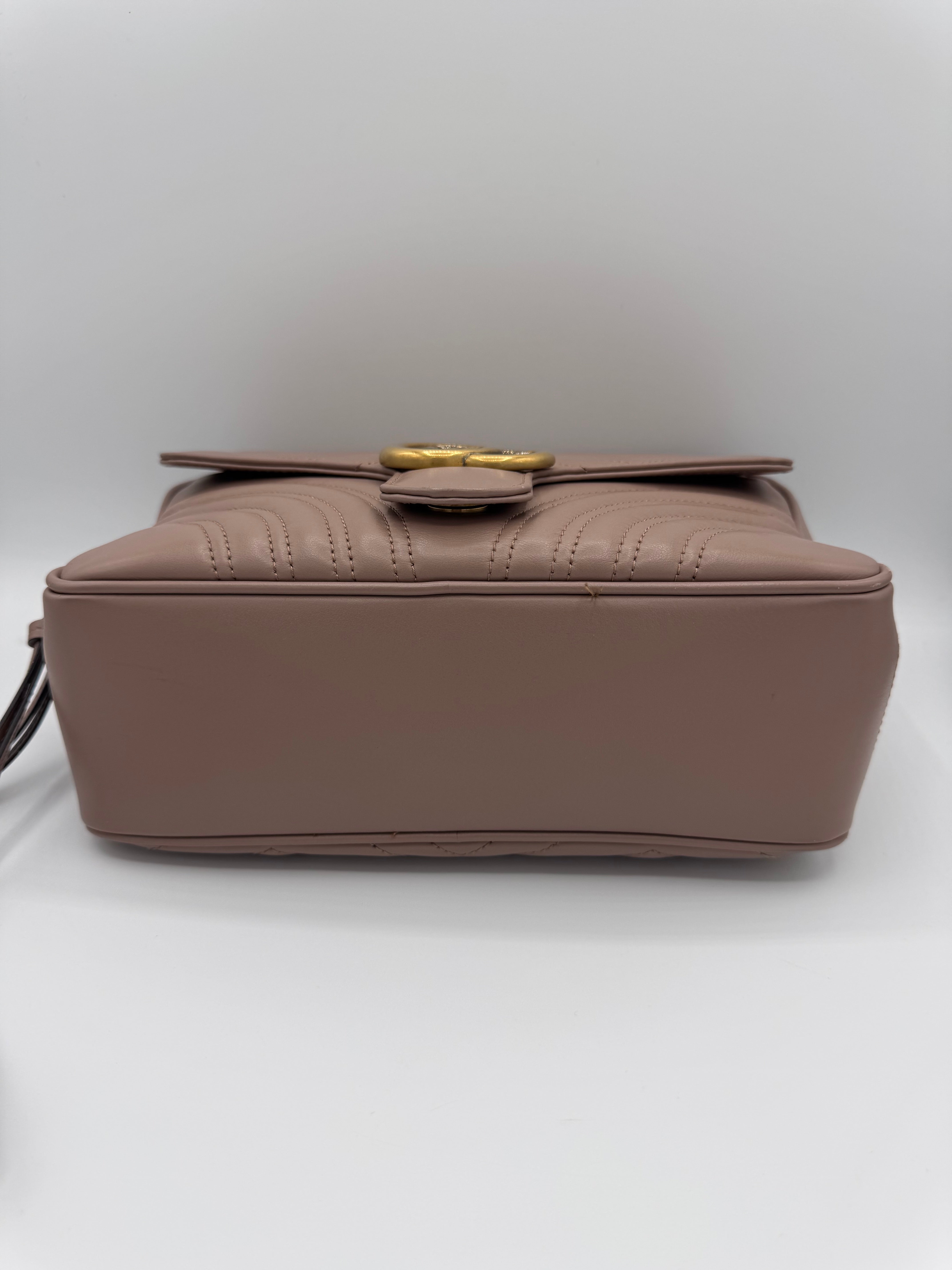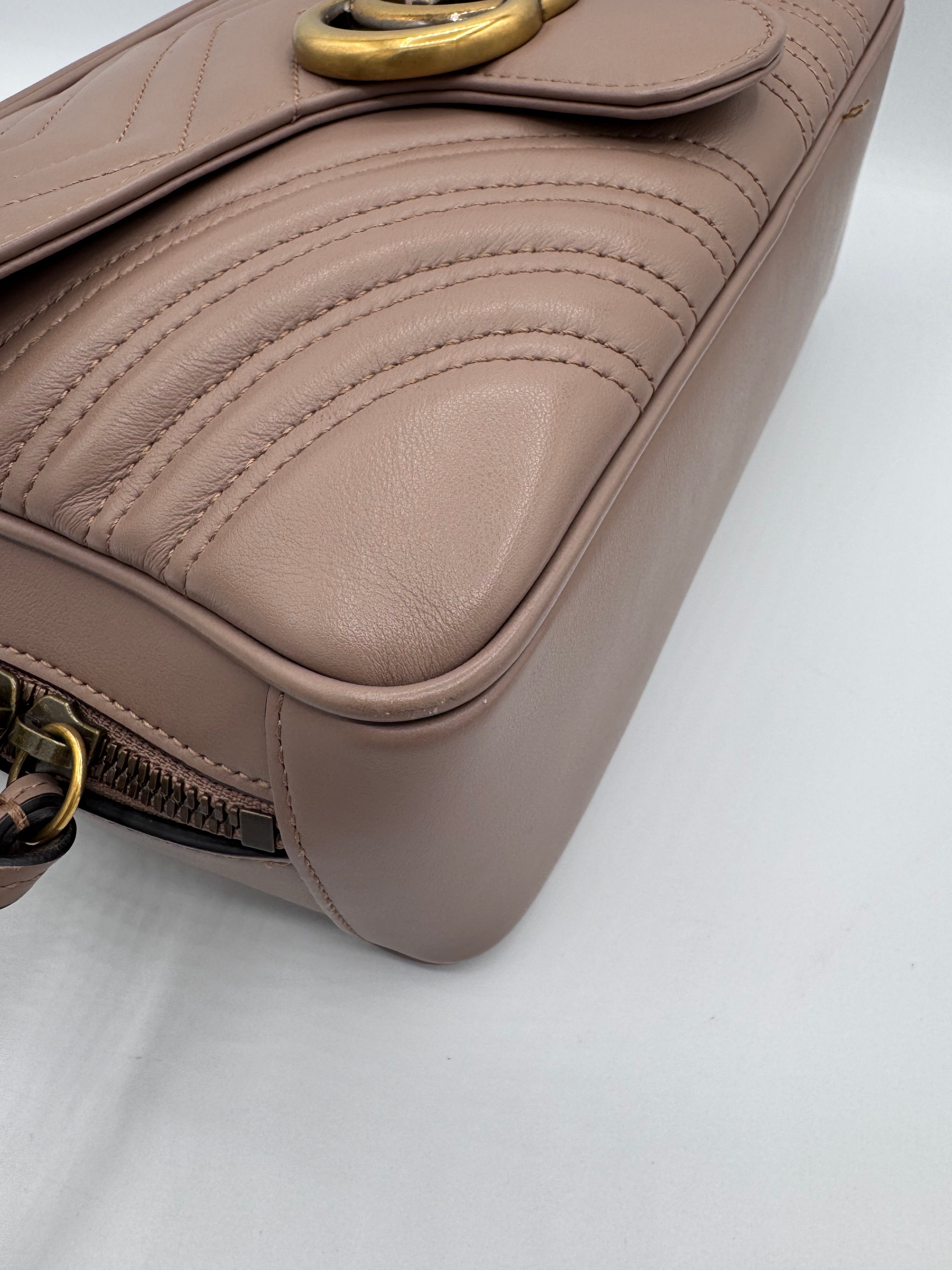 Sac GG Marmont Gucci, en cuir de veau taupe, en état excellent.