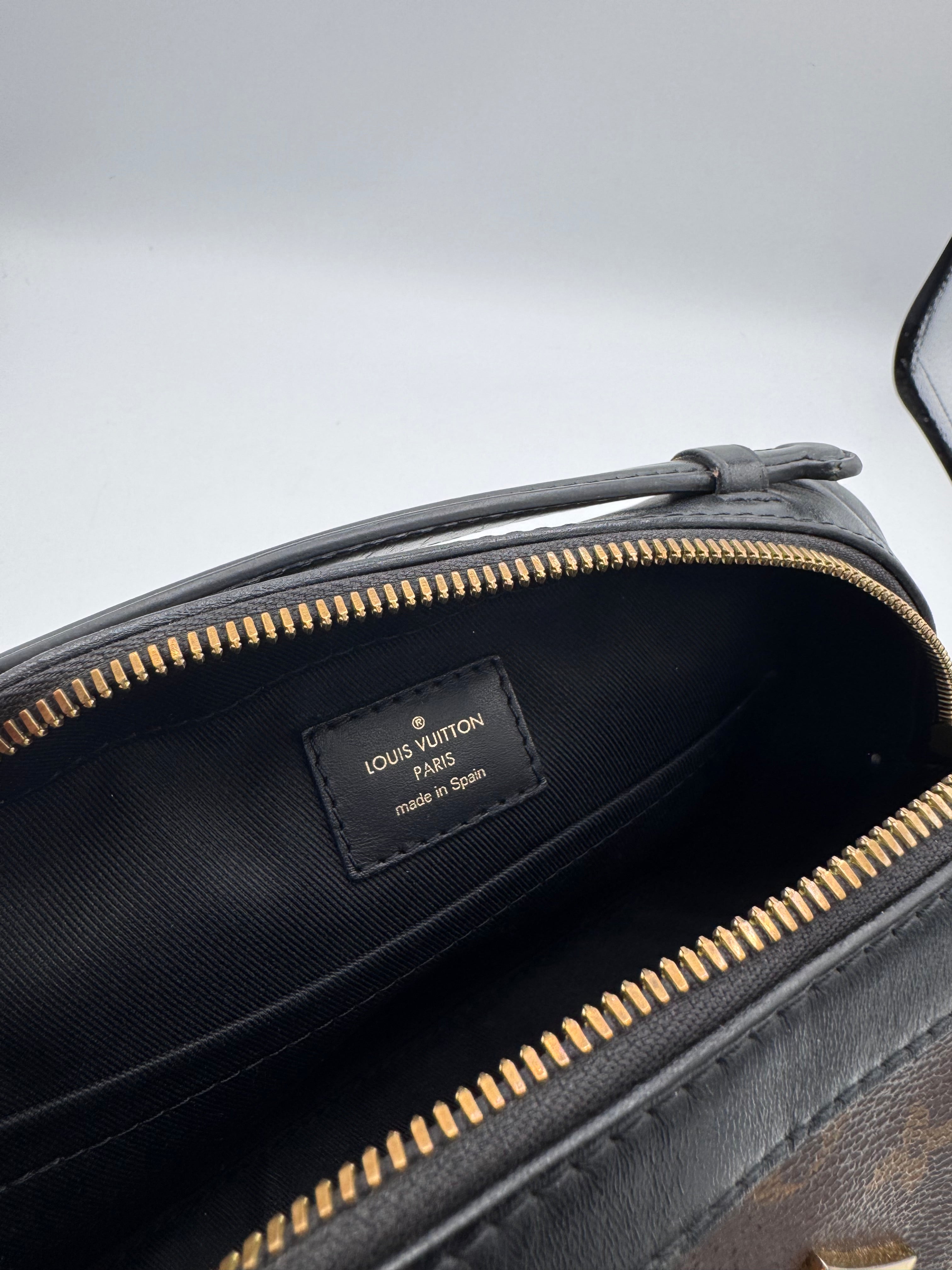 Quelques traces légères sur le dessus au niveau de la poignée et sur le socle, visibles en photos. Bijouterie dorée en très bon état, quelques micro-rayures. (Photos)