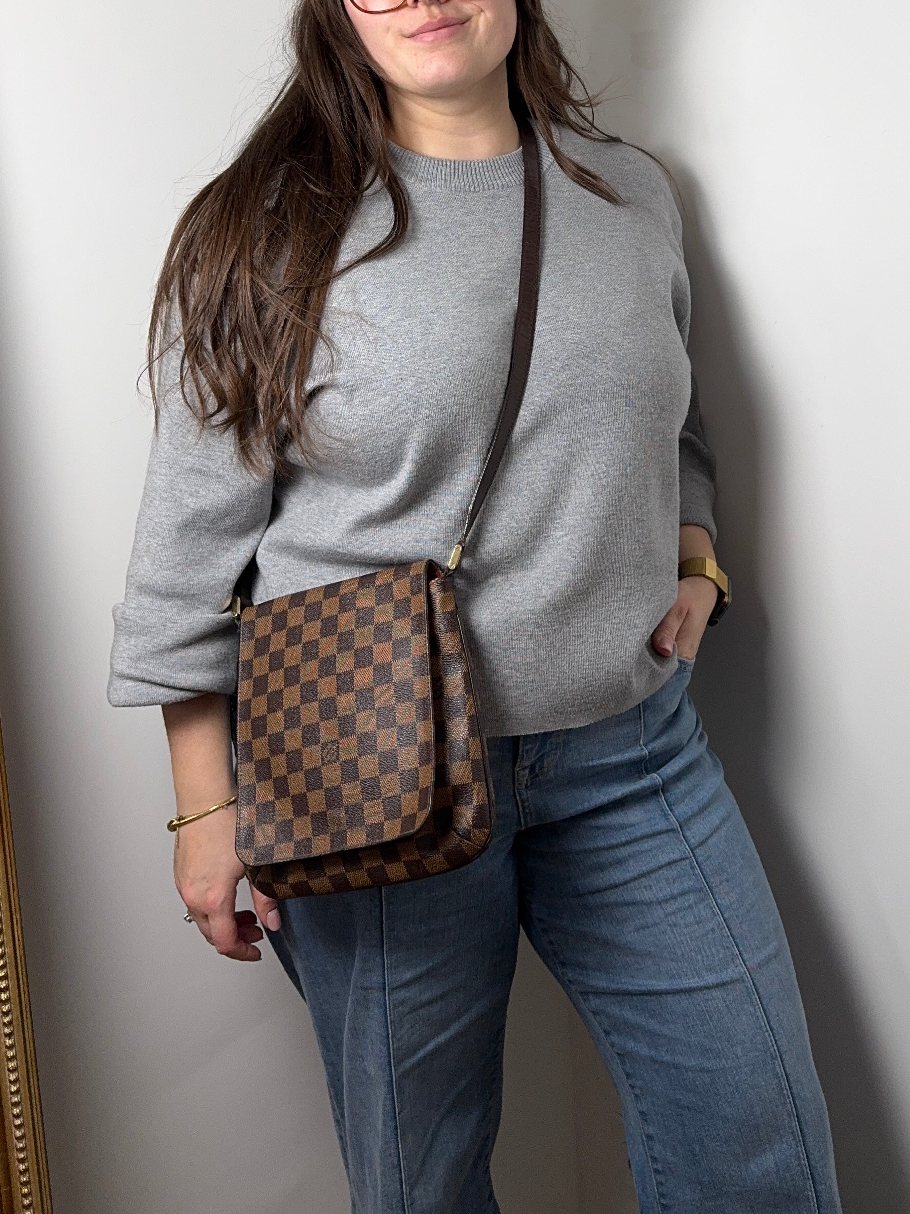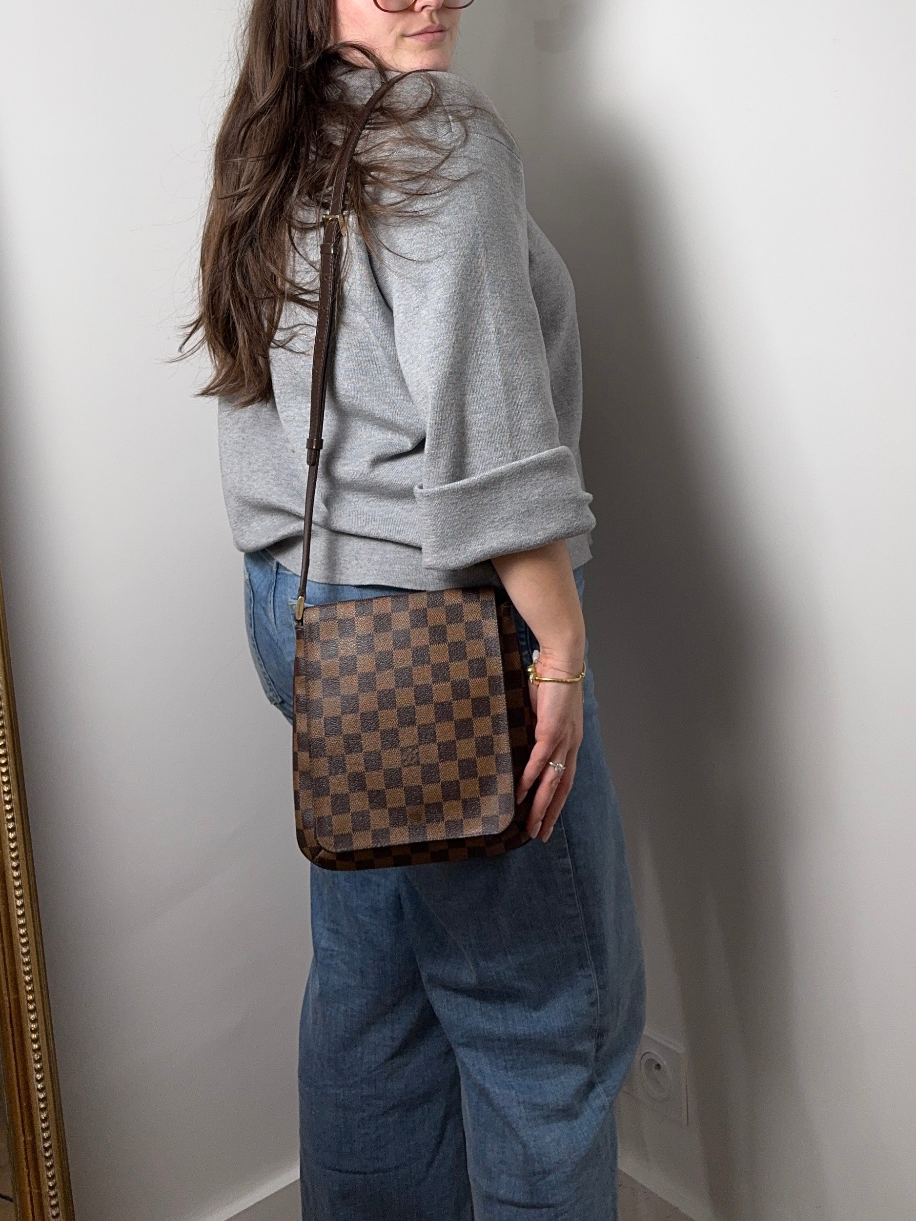Très bon état pour ce sac Salsa PM Louis Vuitton en damier. Bandoulière réglable.