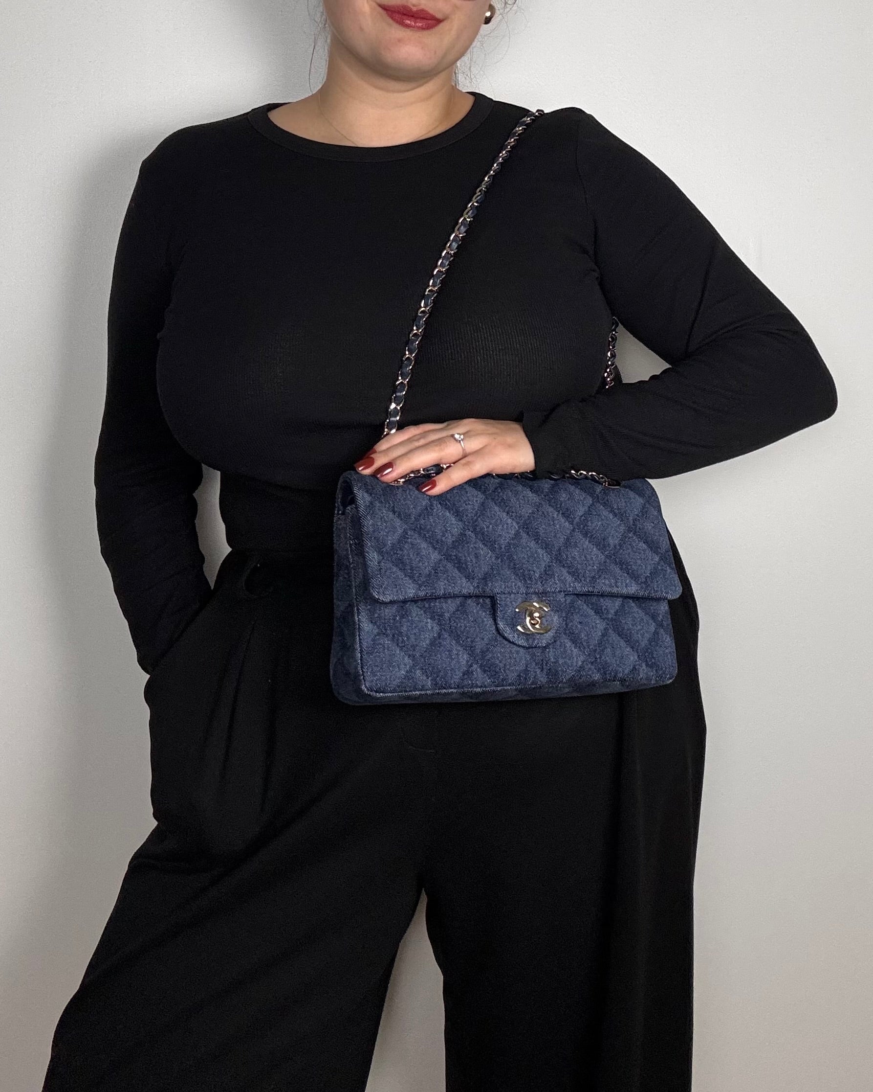 Se porte crossbody court, épaule en double chaîne ou en longue.