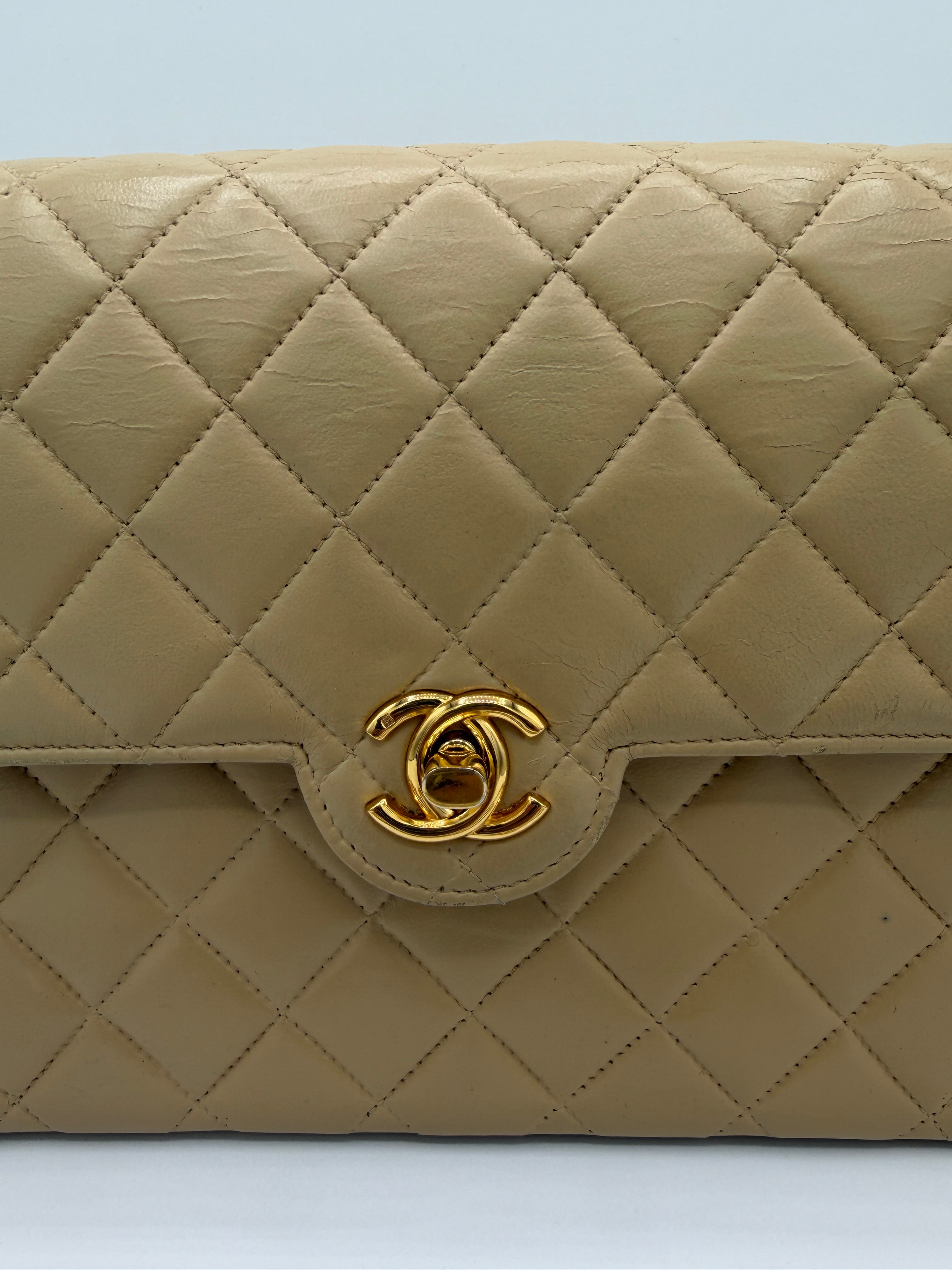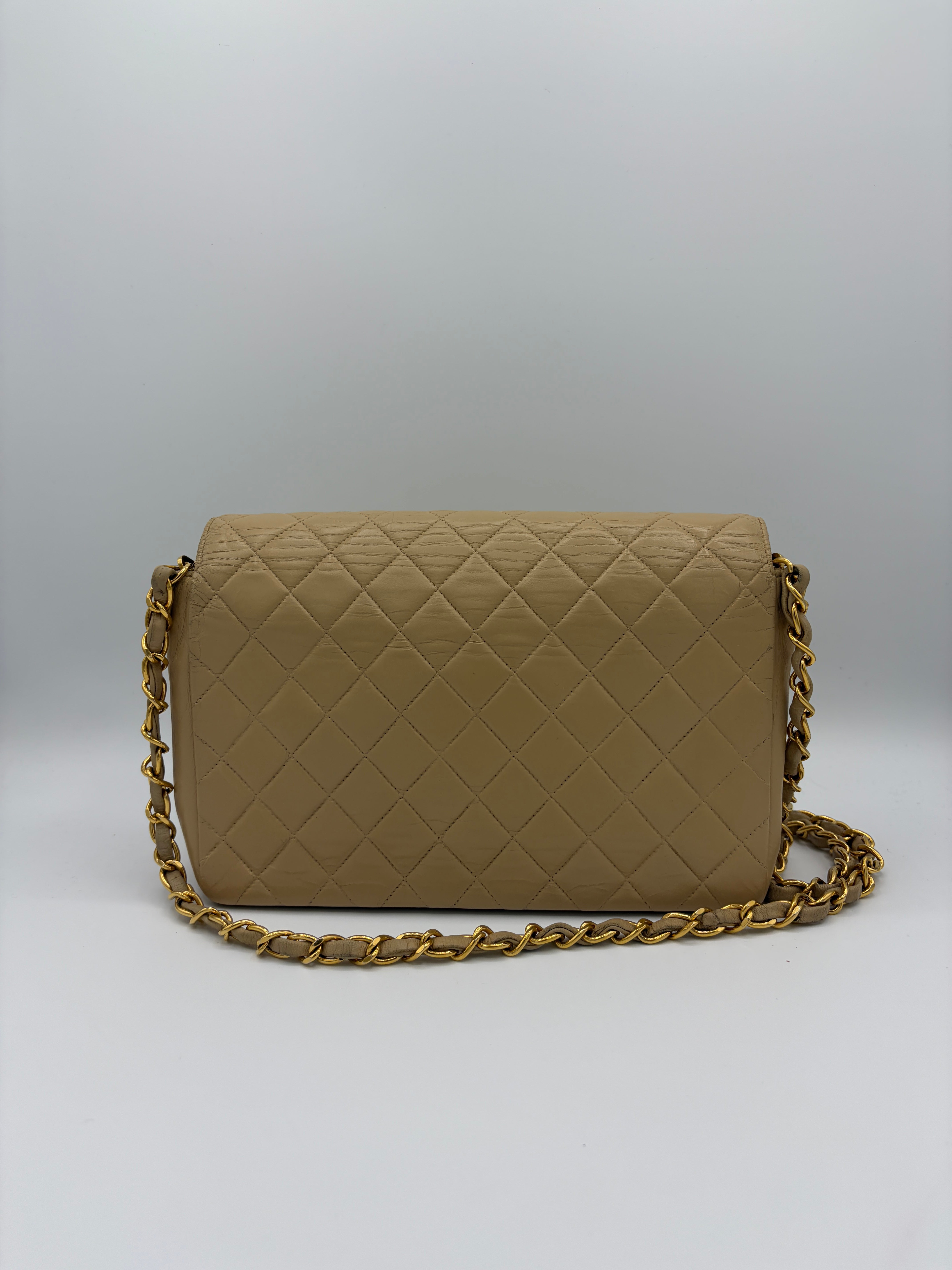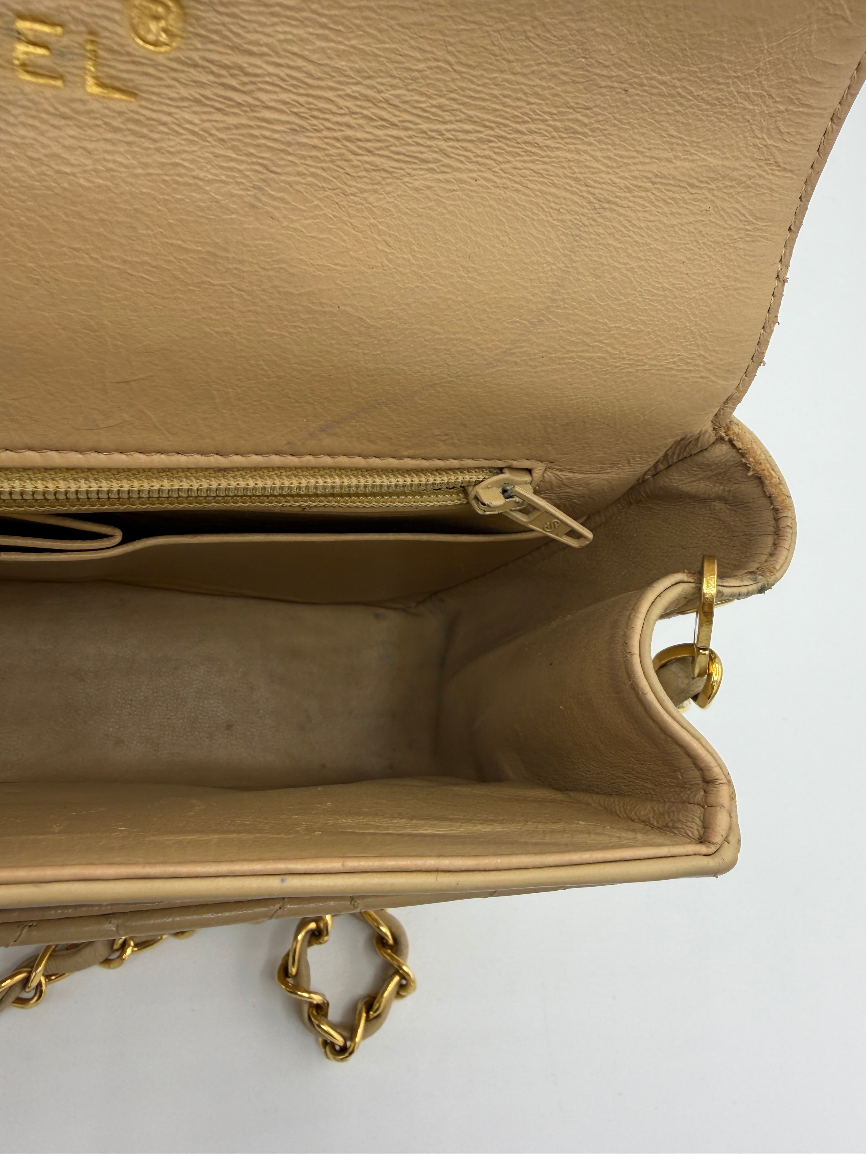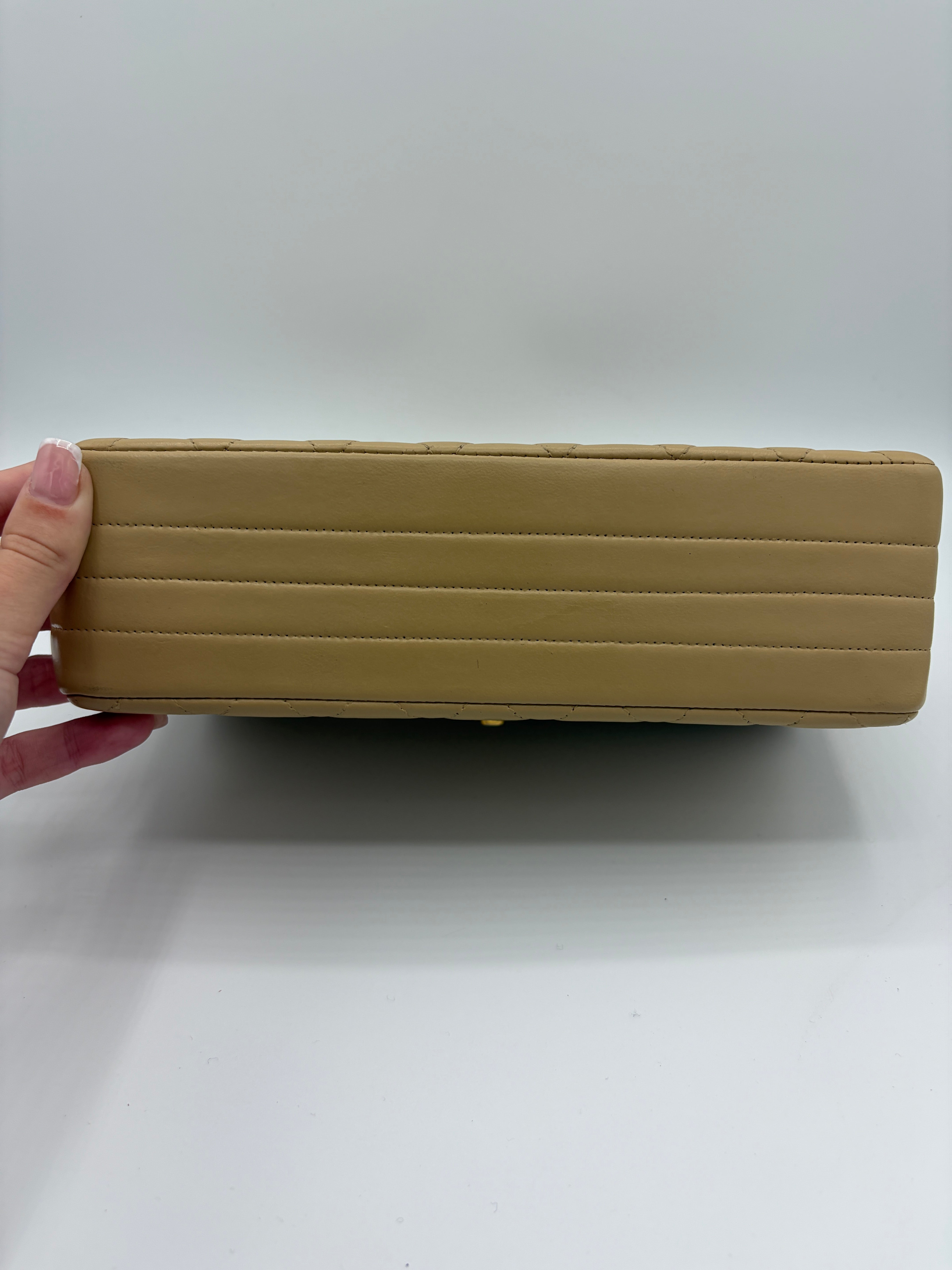 Ce Sac Timeless Vintage de chez Chanel est en bon état, en cuir d'agneau beige et bijouterie plaquée or 24 carats.