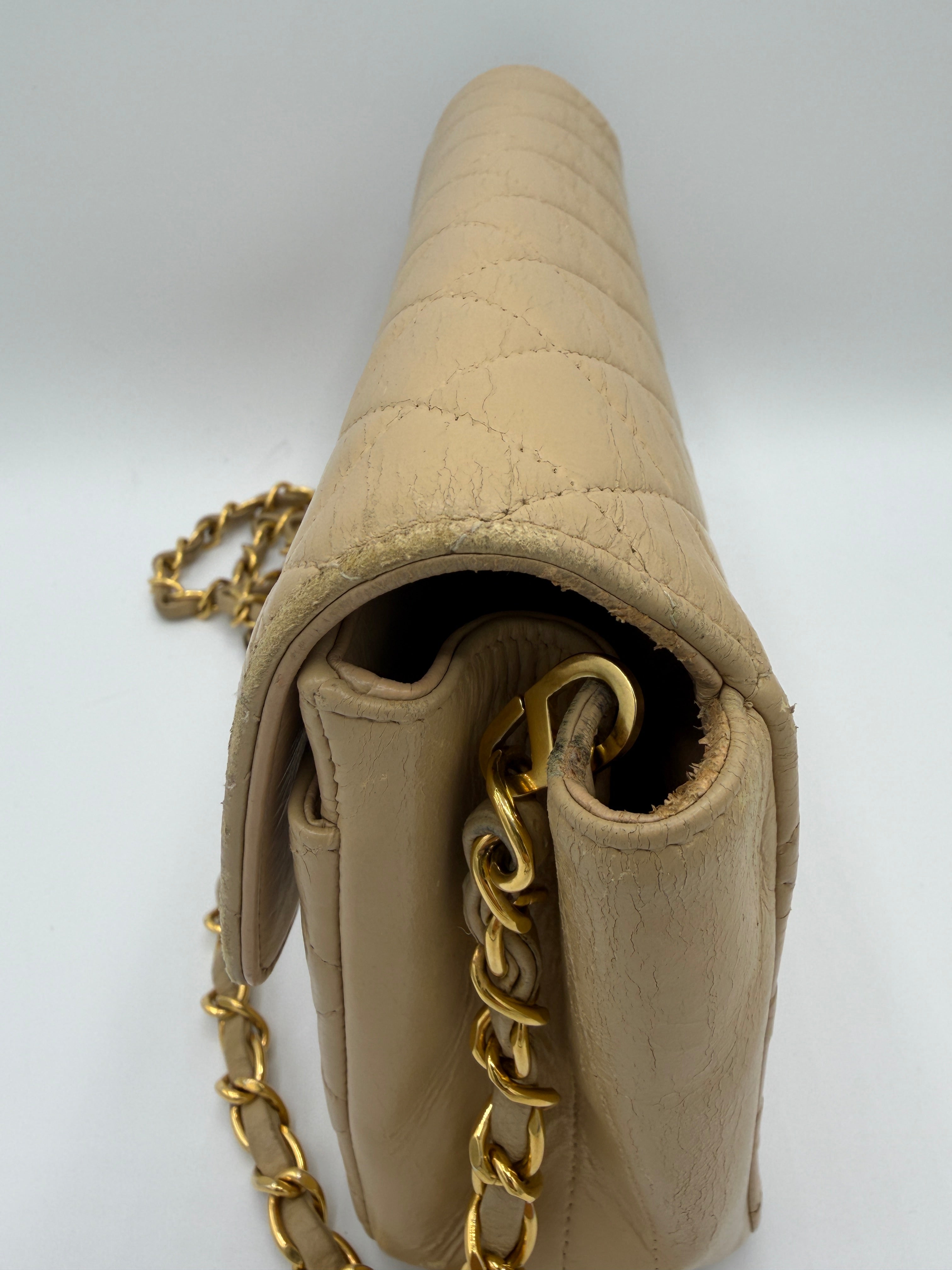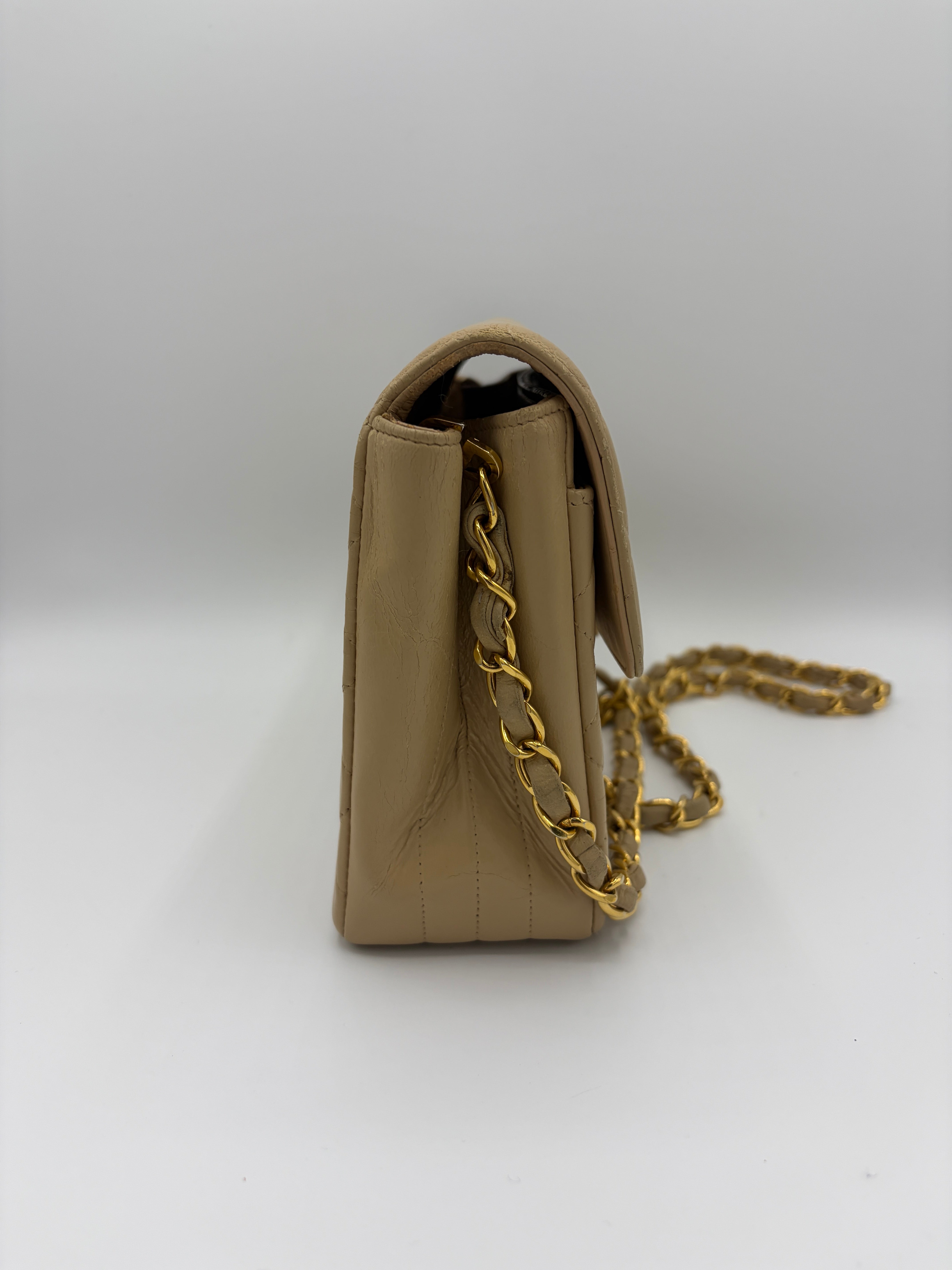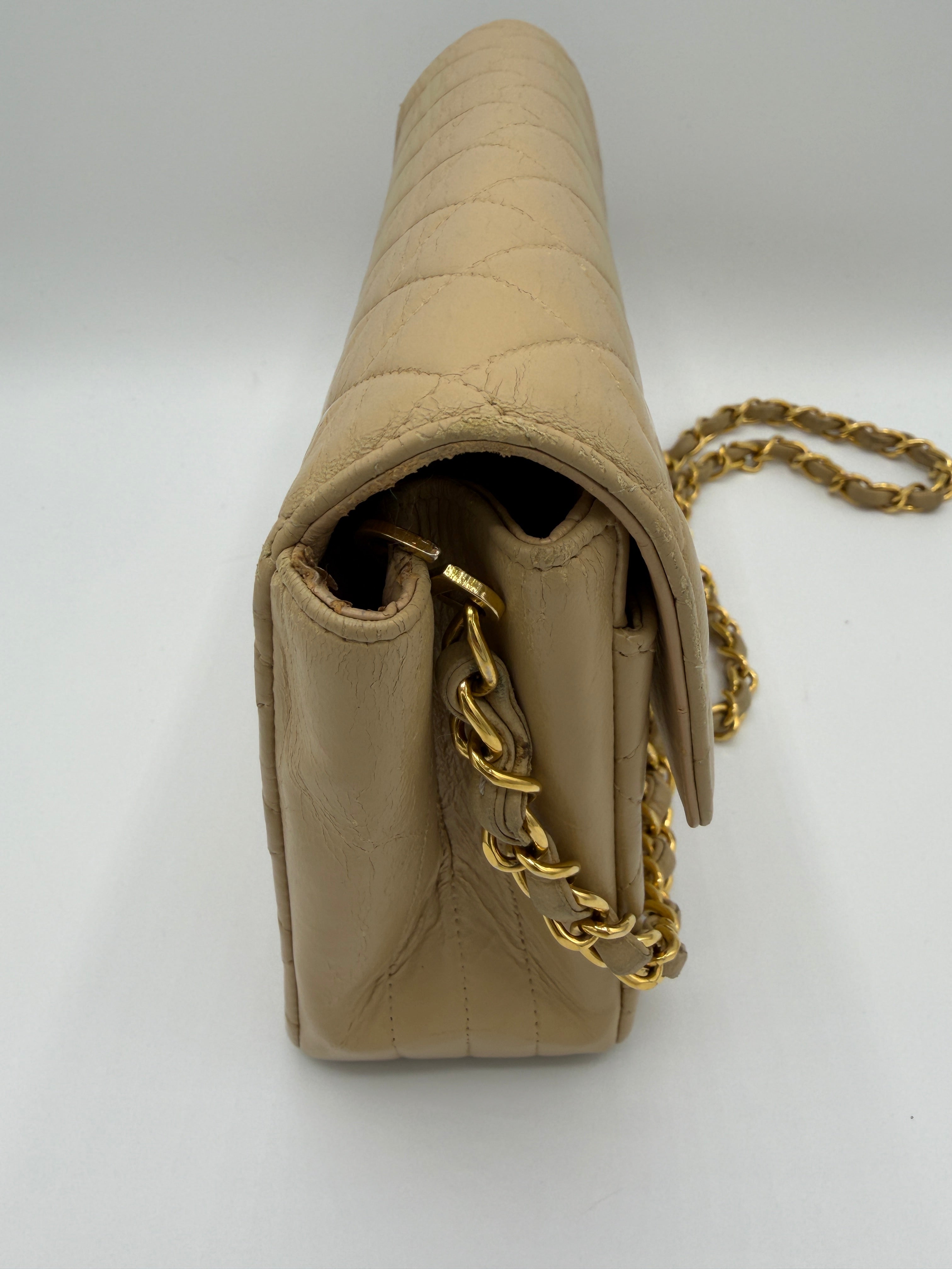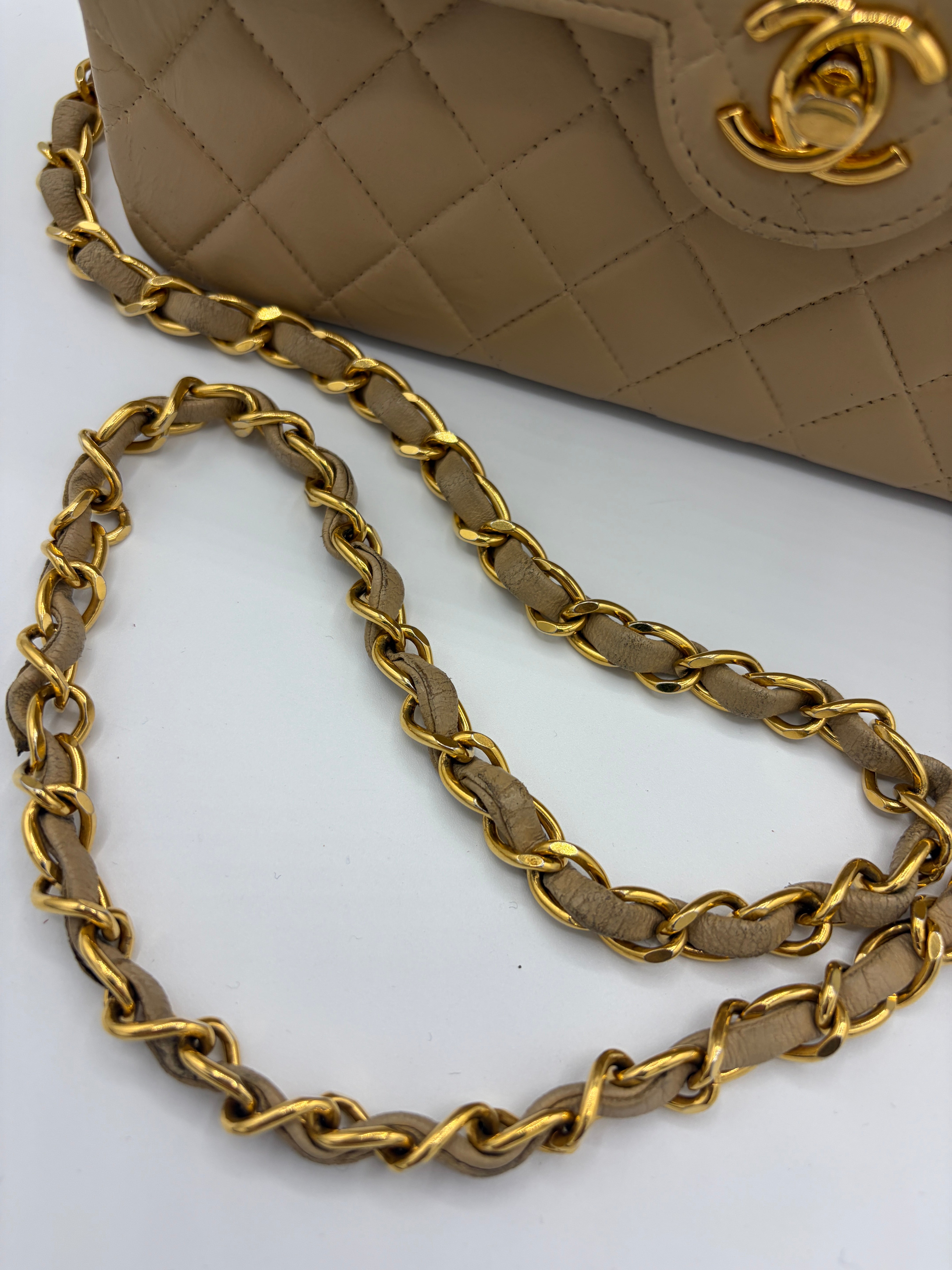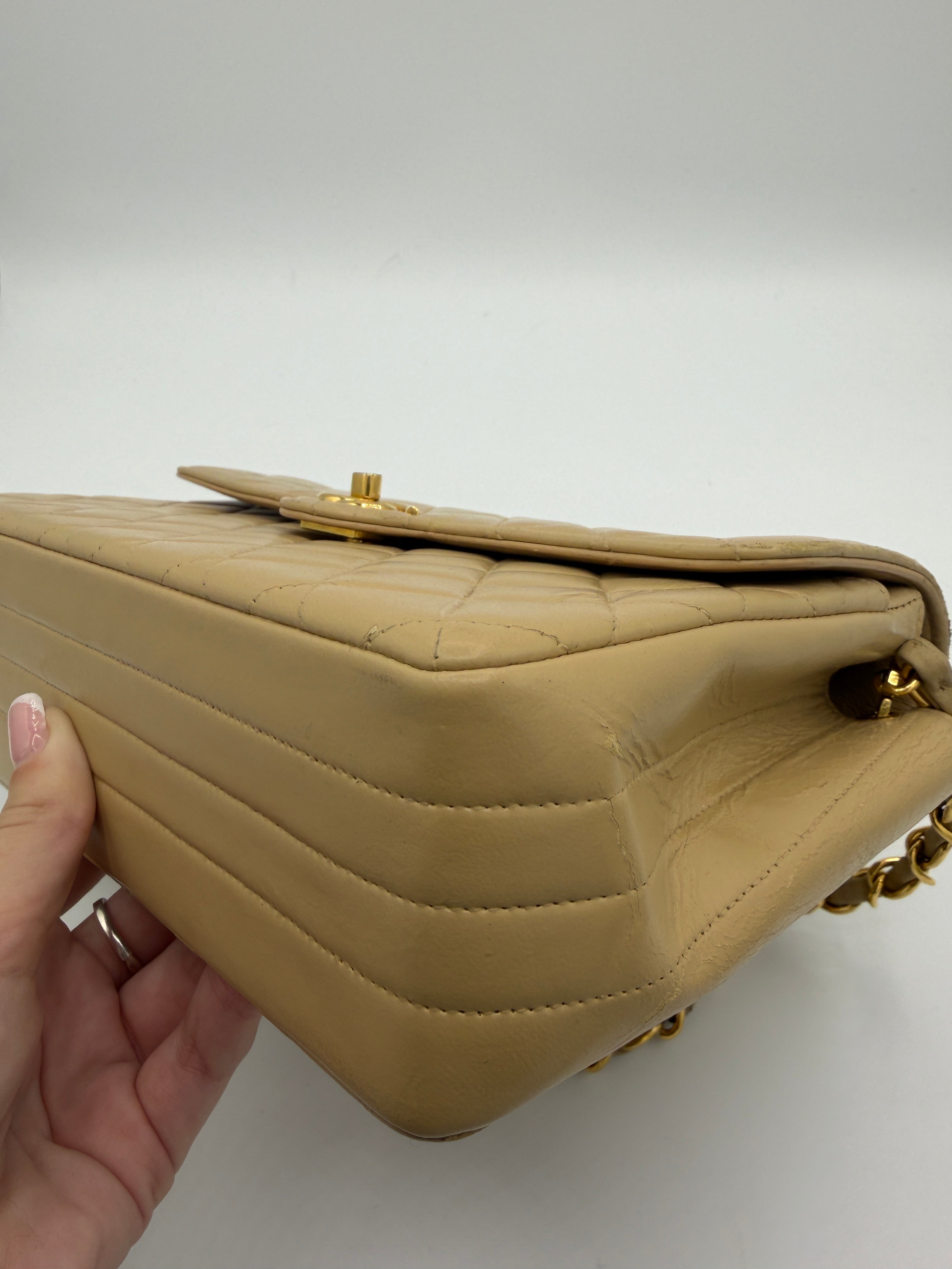 Ce Sac Timeless Vintage de chez Chanel est en bon état, en cuir d'agneau beige et bijouterie plaquée or 24 carats.