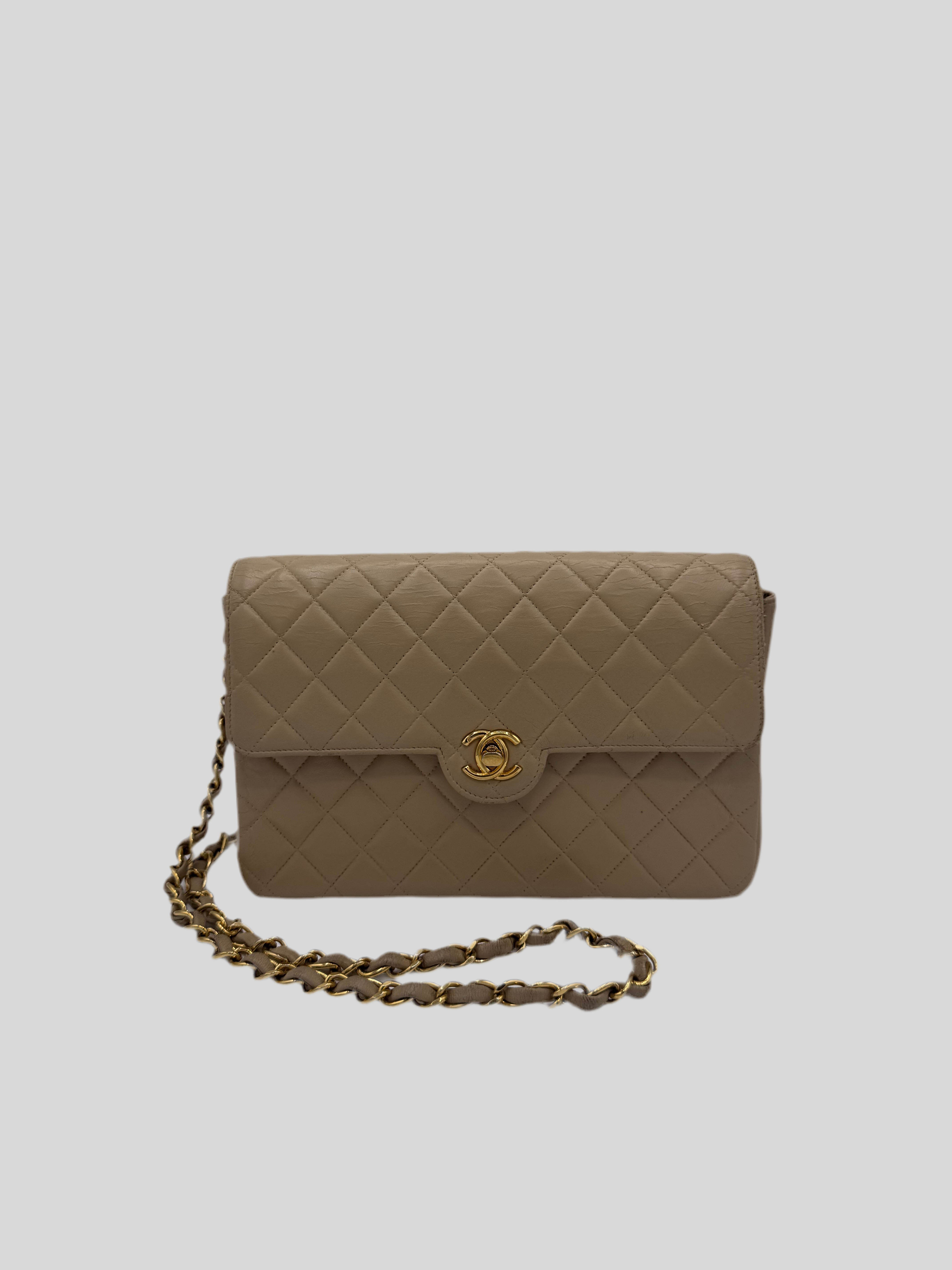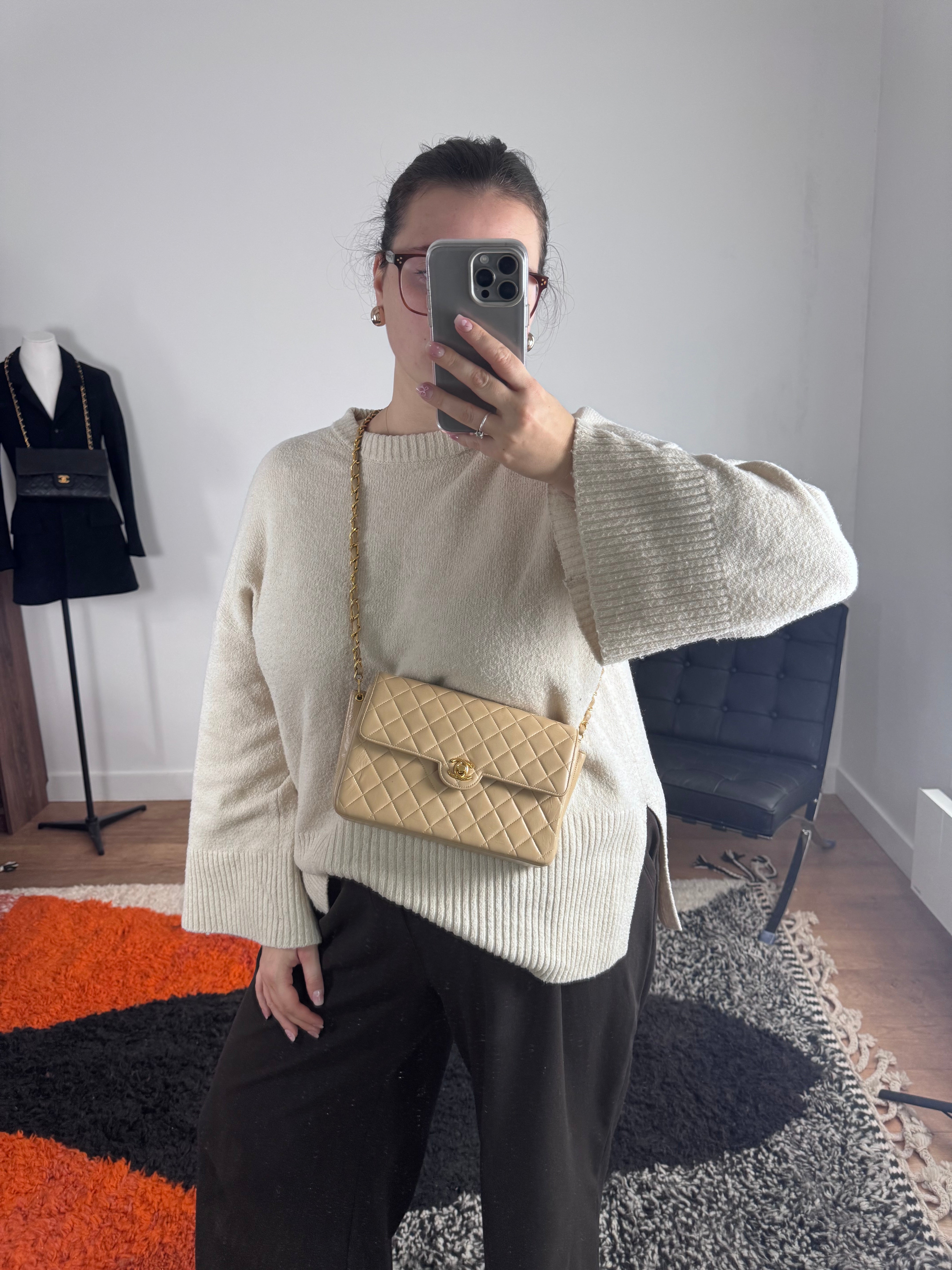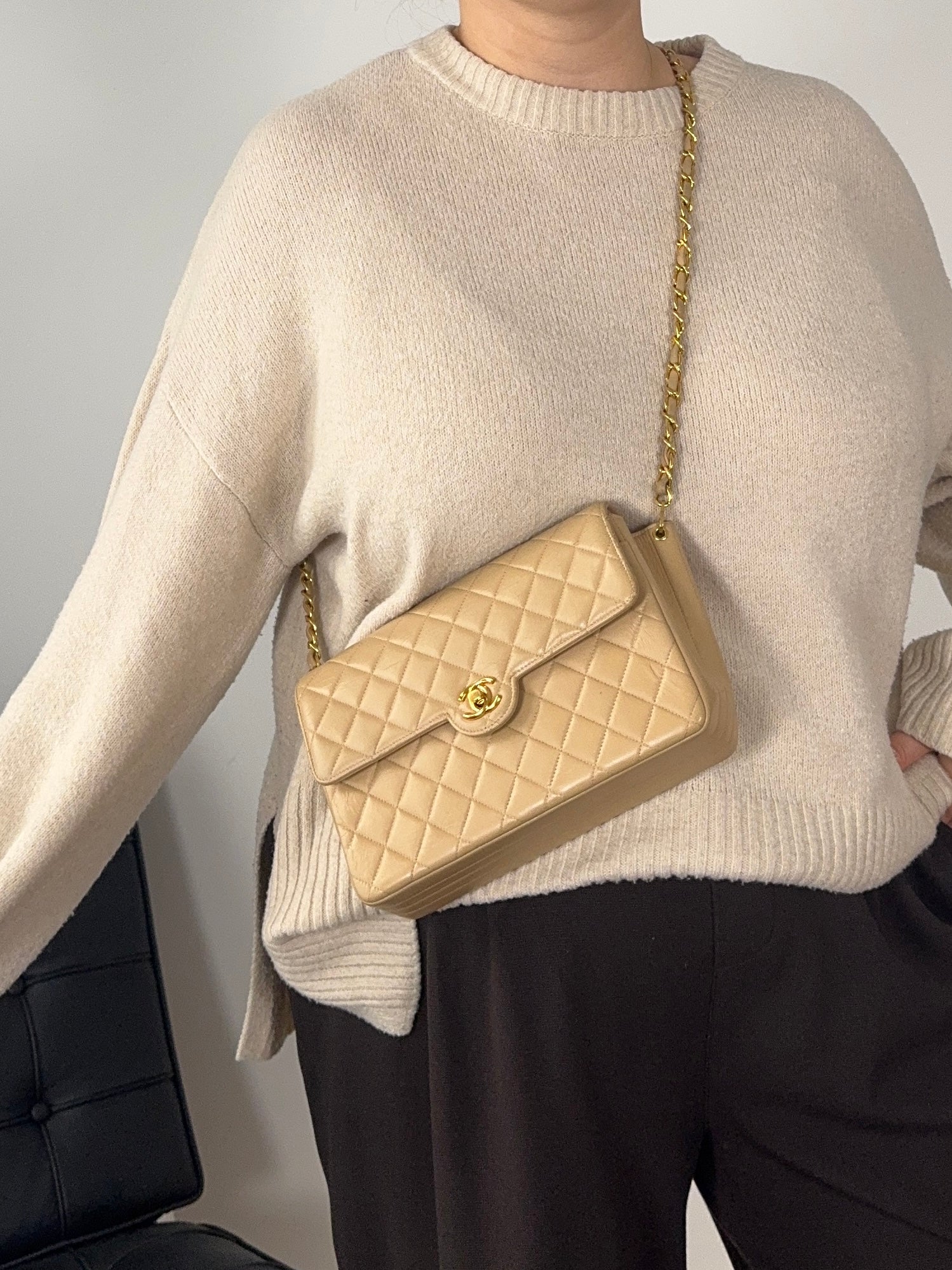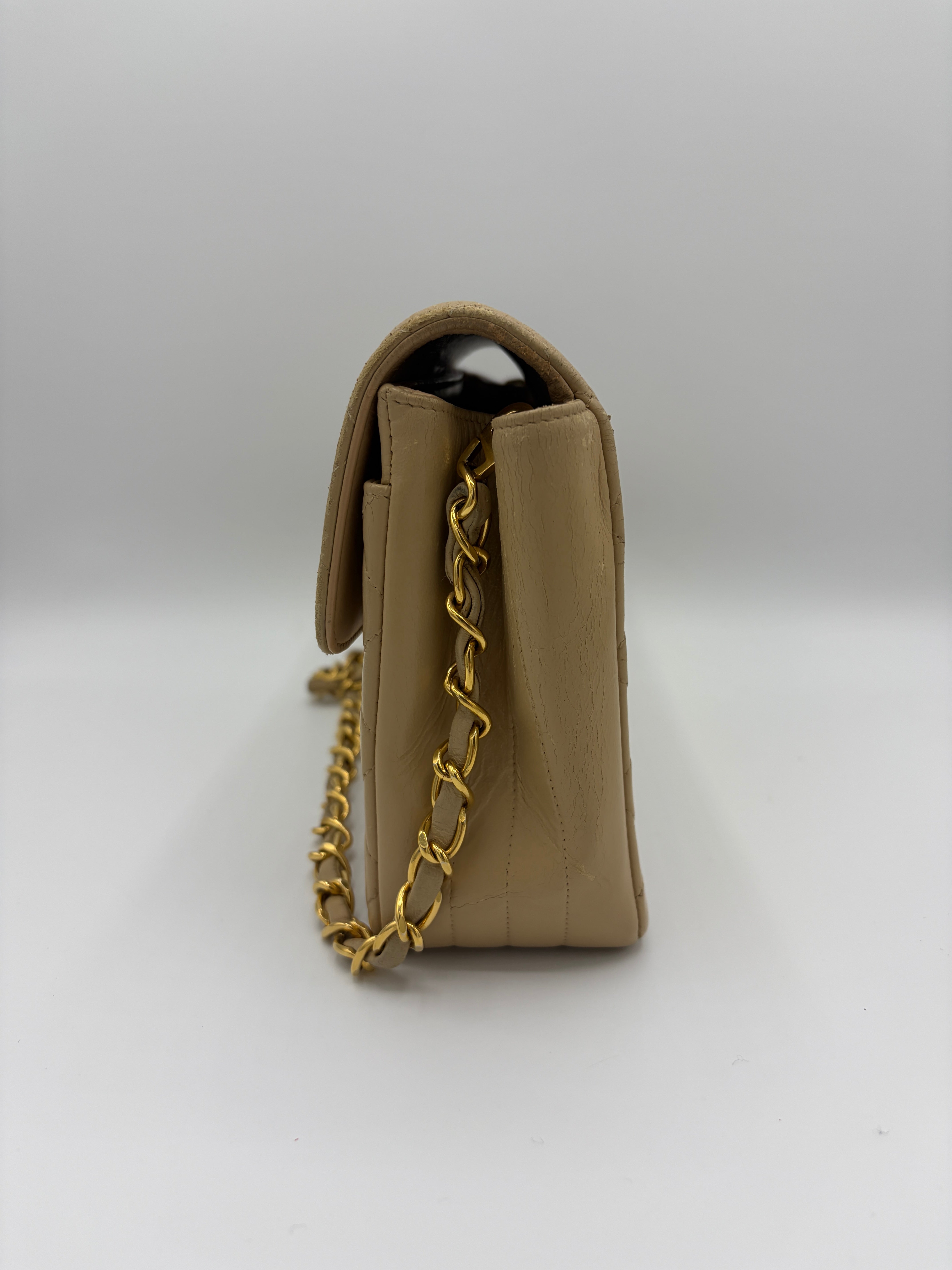 Ce Sac Timeless Vintage de chez Chanel est en bon état, en cuir d'agneau beige et bijouterie plaquée or 24 carats.
