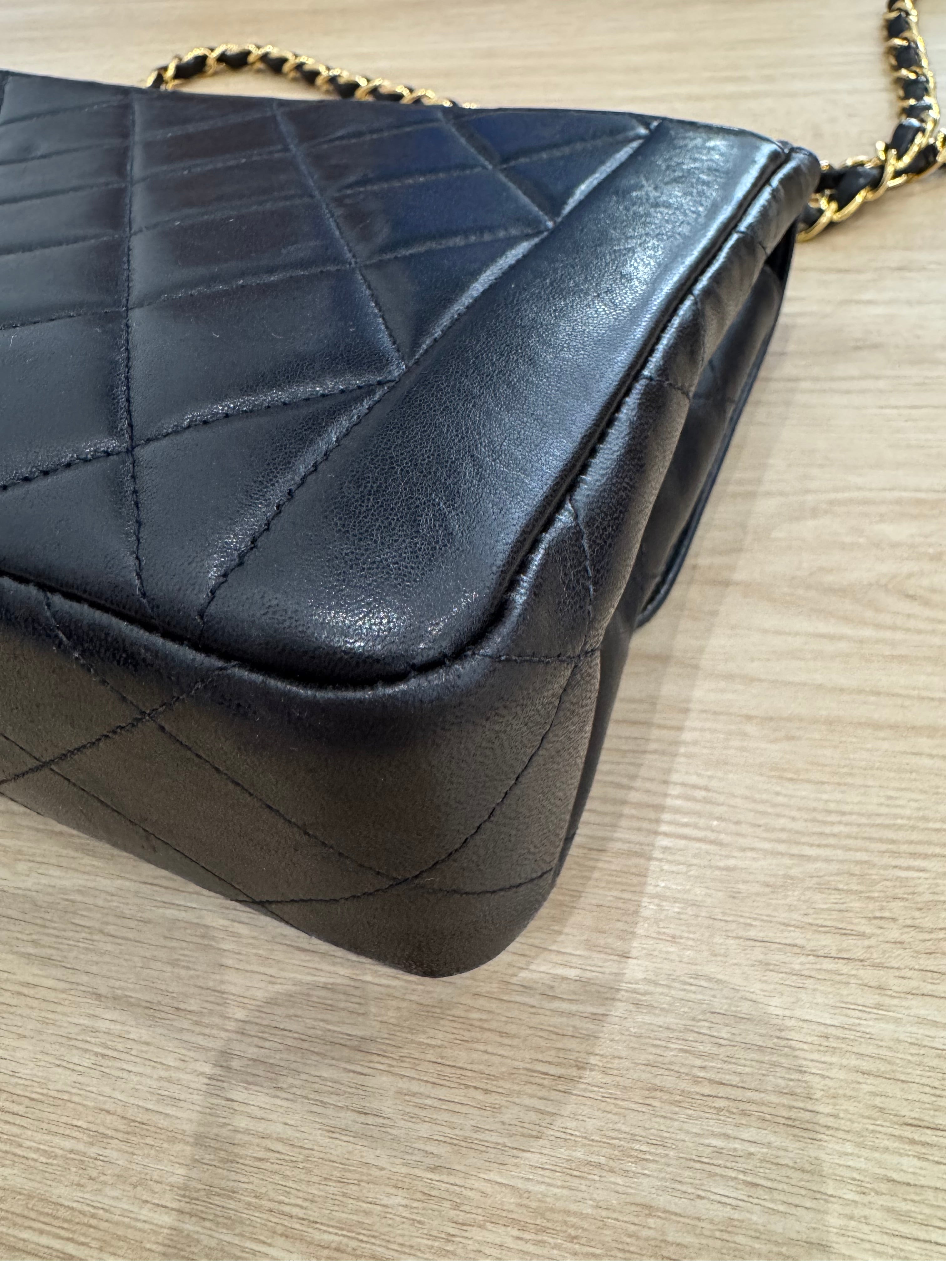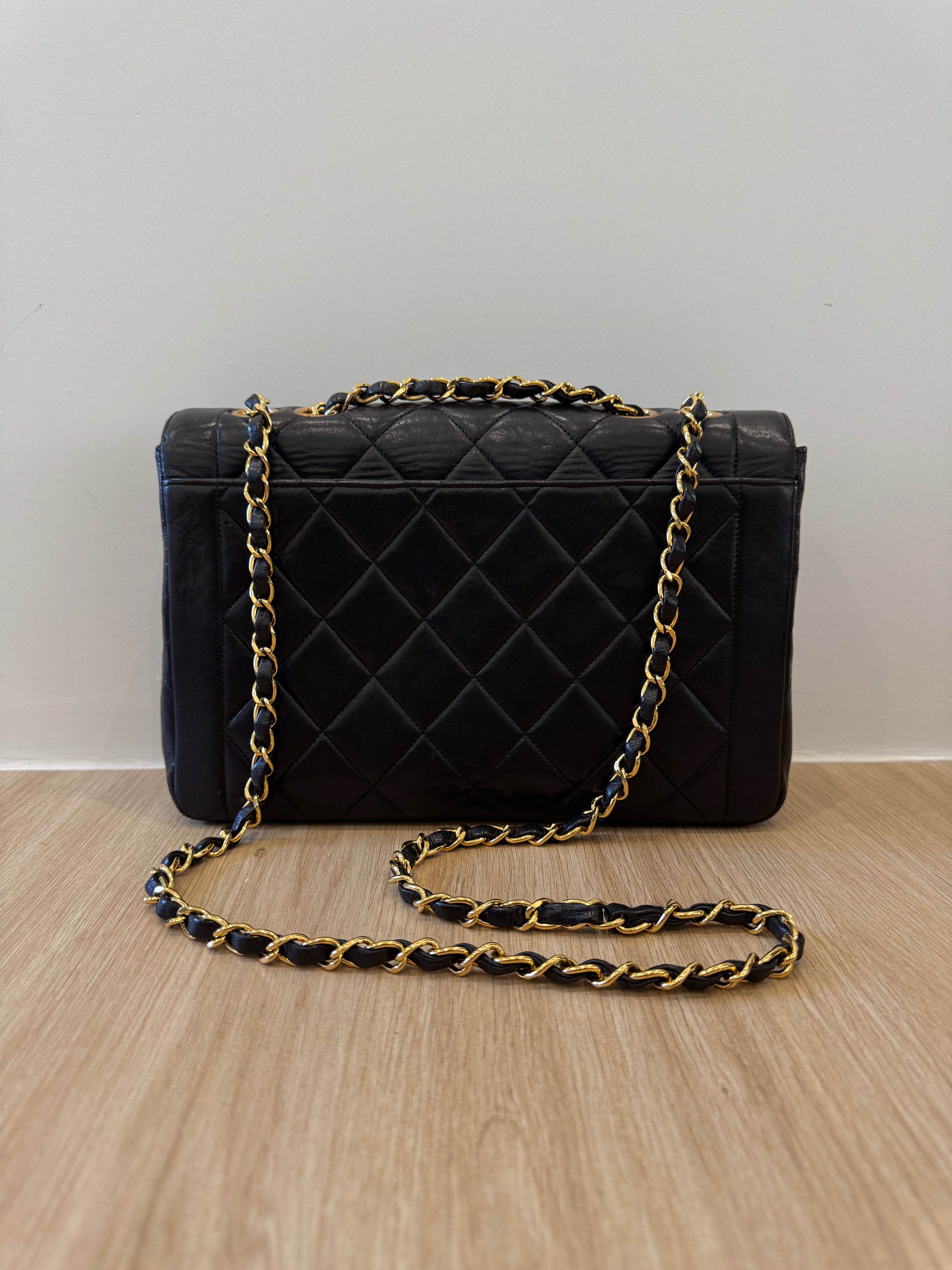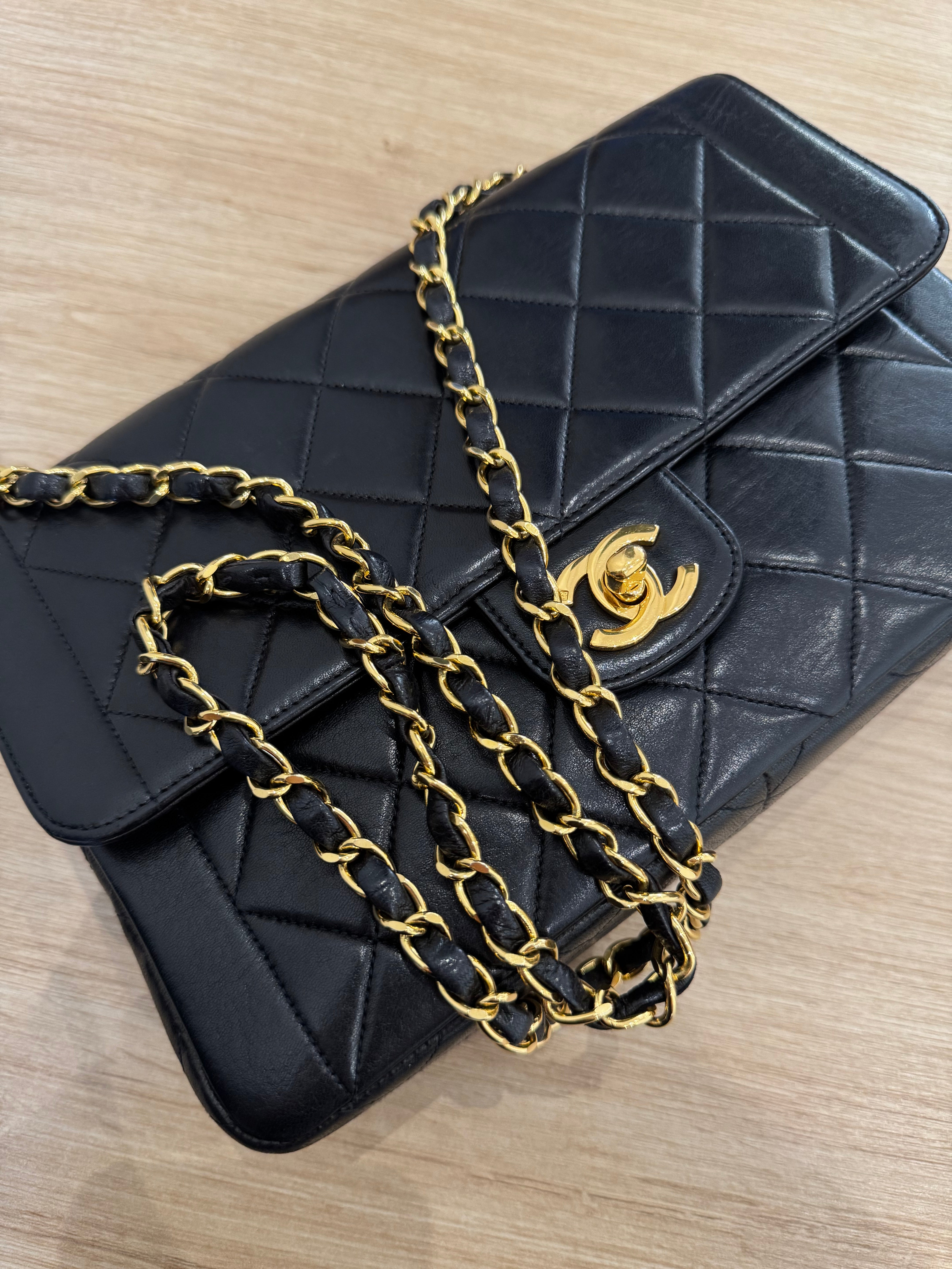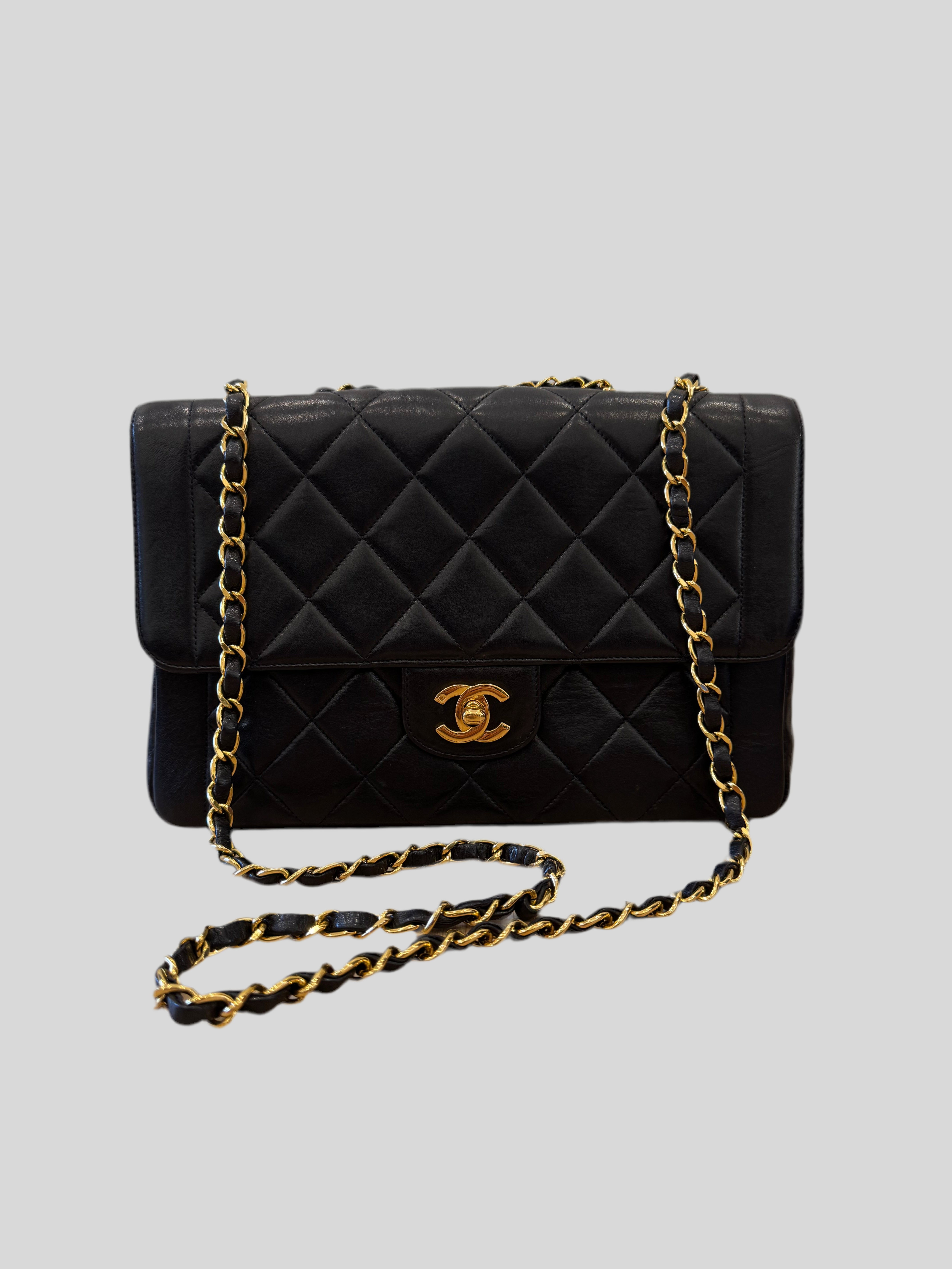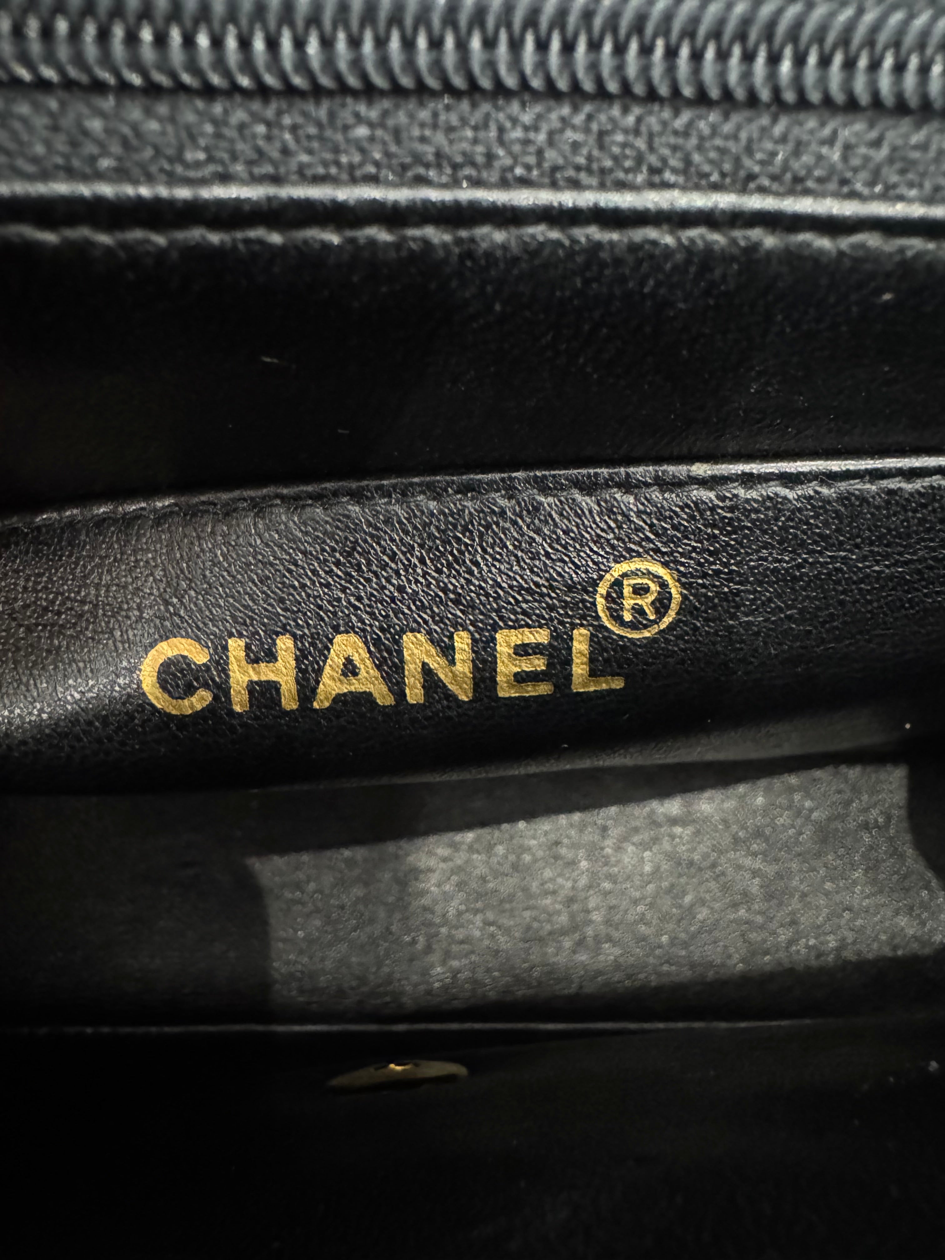 Le Sac Chanel Timeless à Rabat Droit, en cuir d'agneau noir et bijouterie plaqué or 24 carats, est en très bon état. C'est un magnifique vintage.