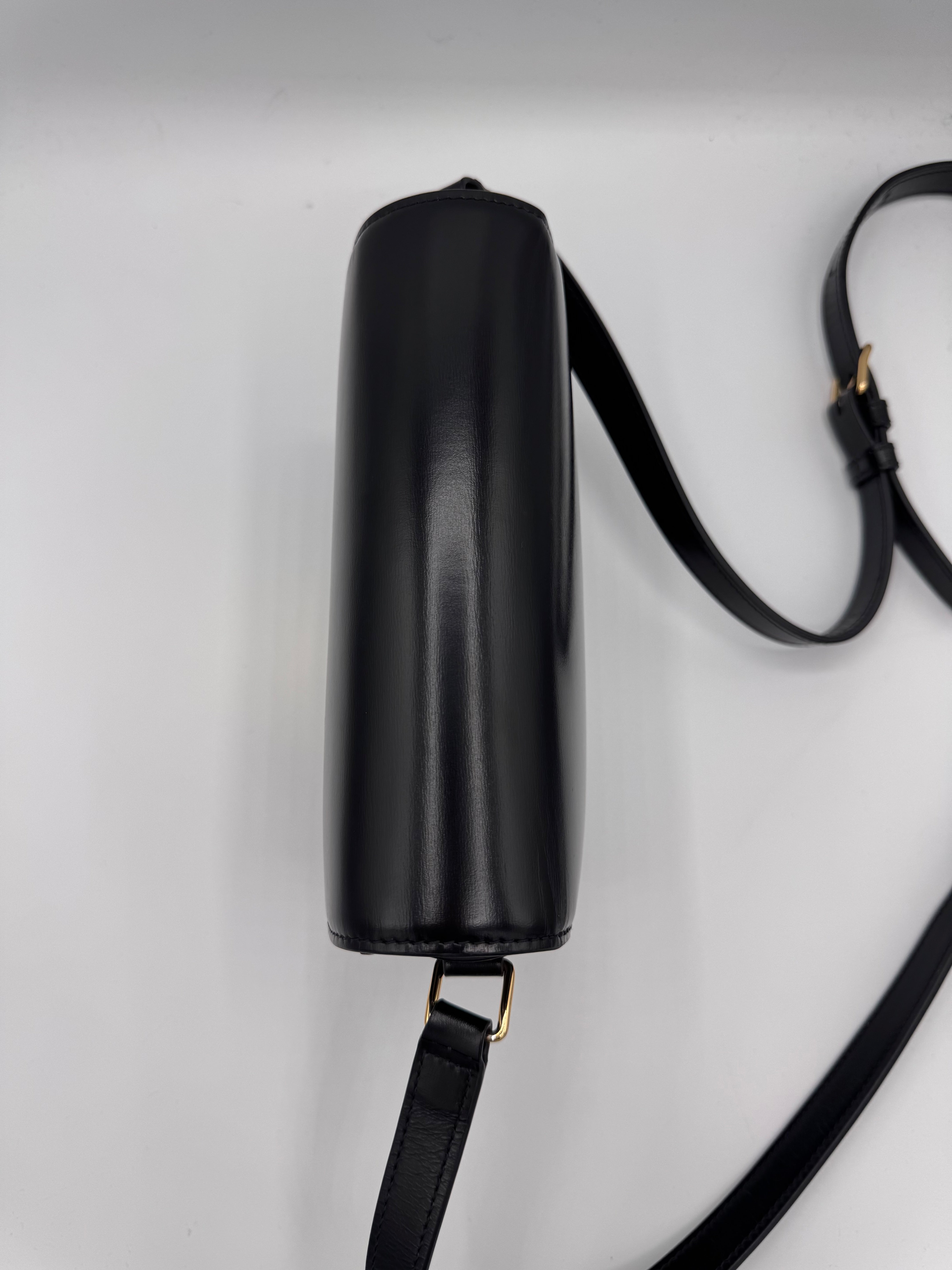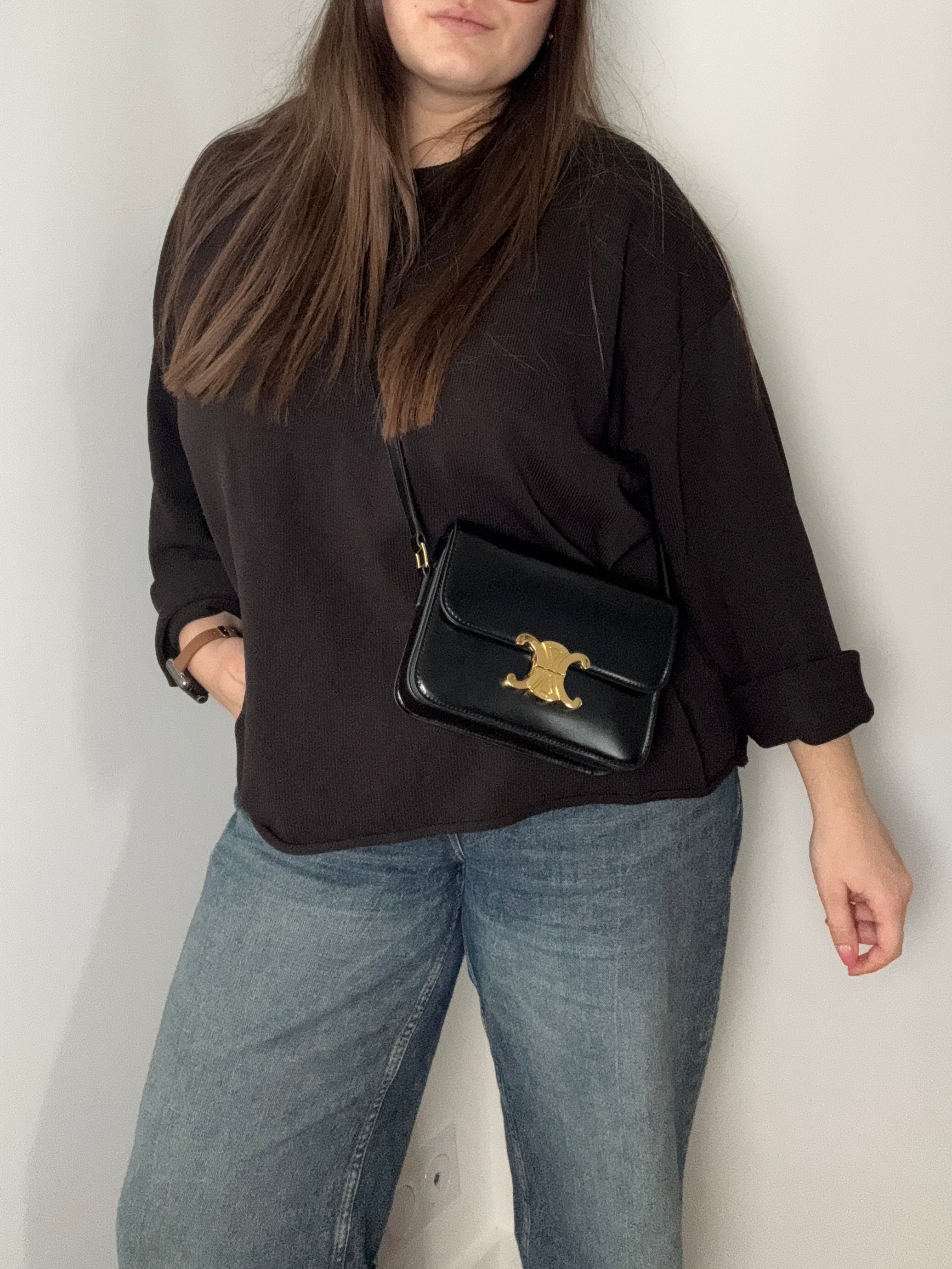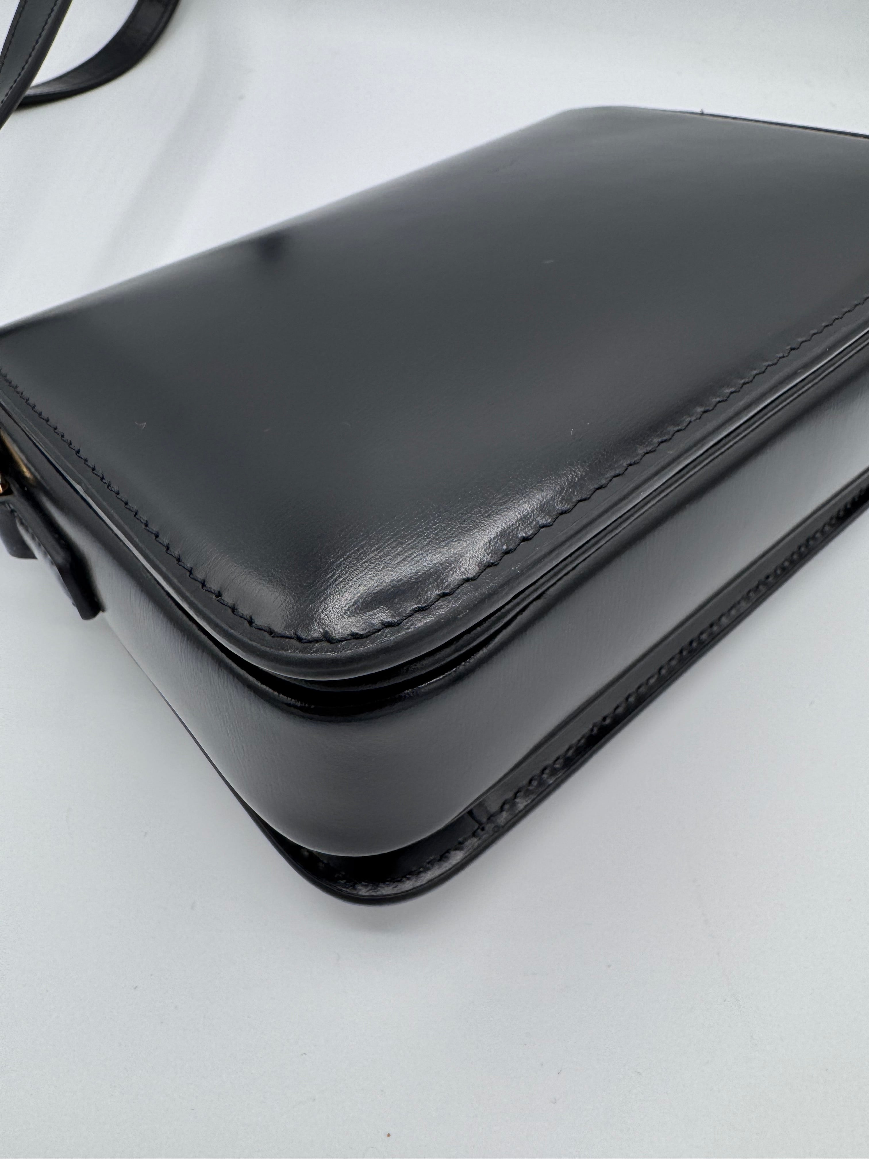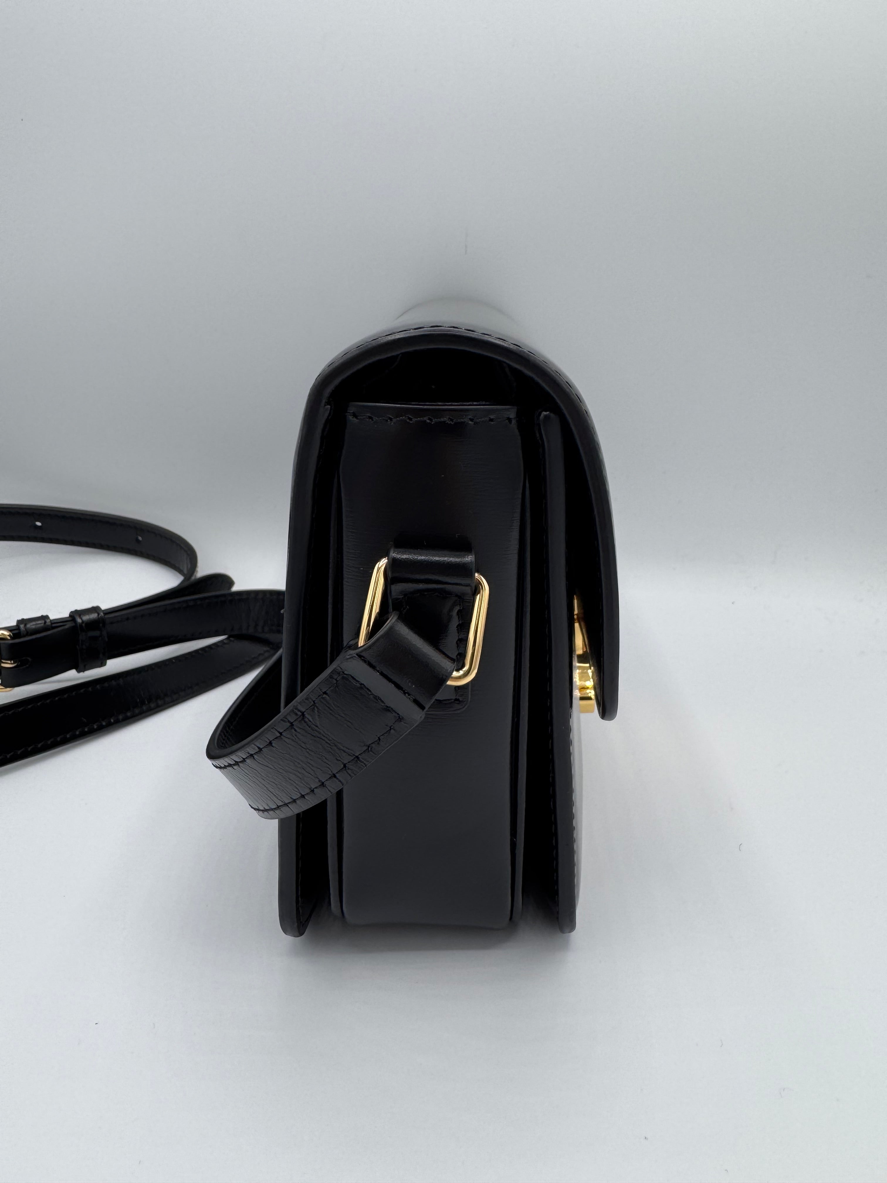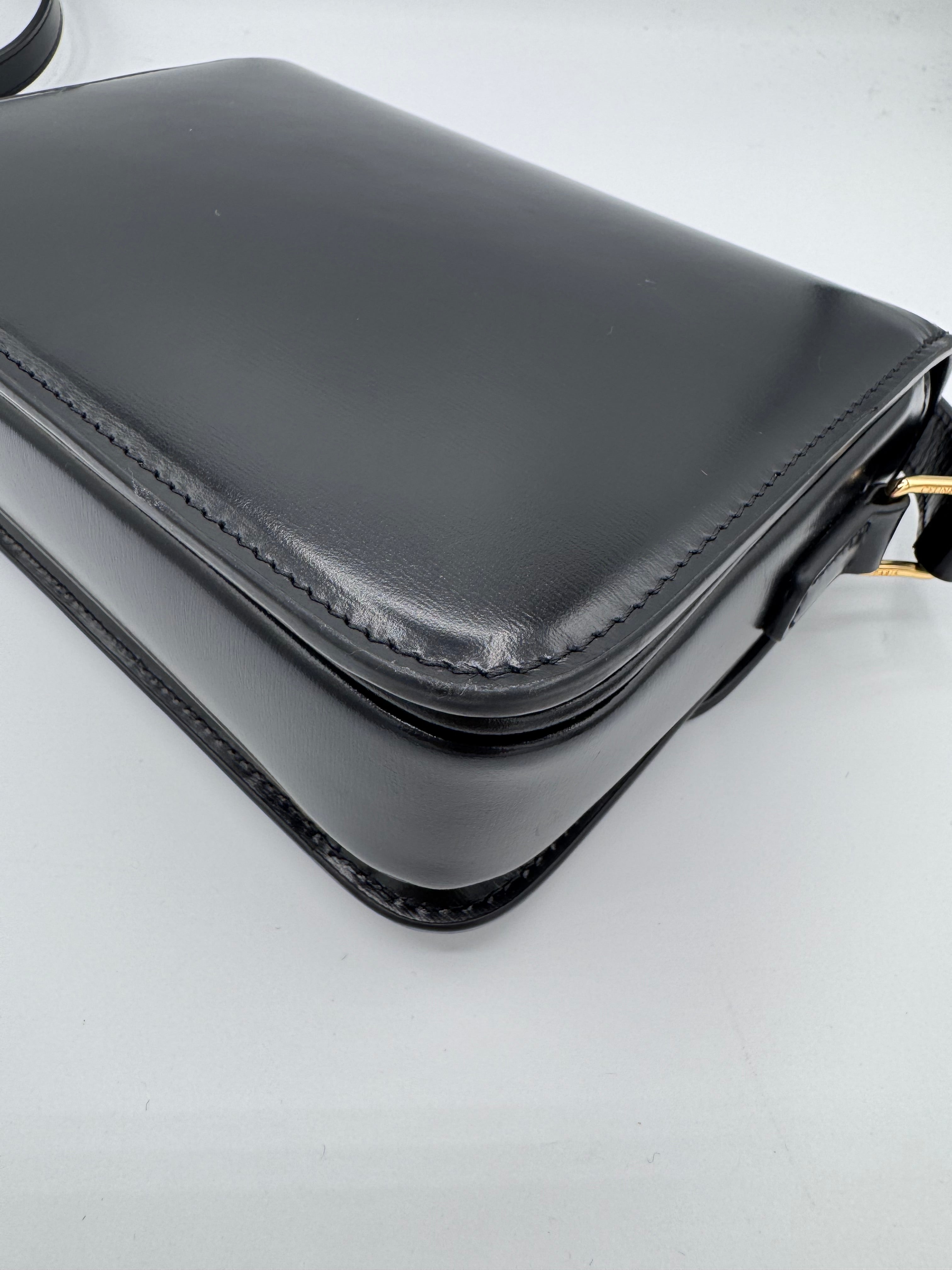 Sac Triomphe Teen de chez Céline en cuir noir et bijouterie dorée en très bon état.